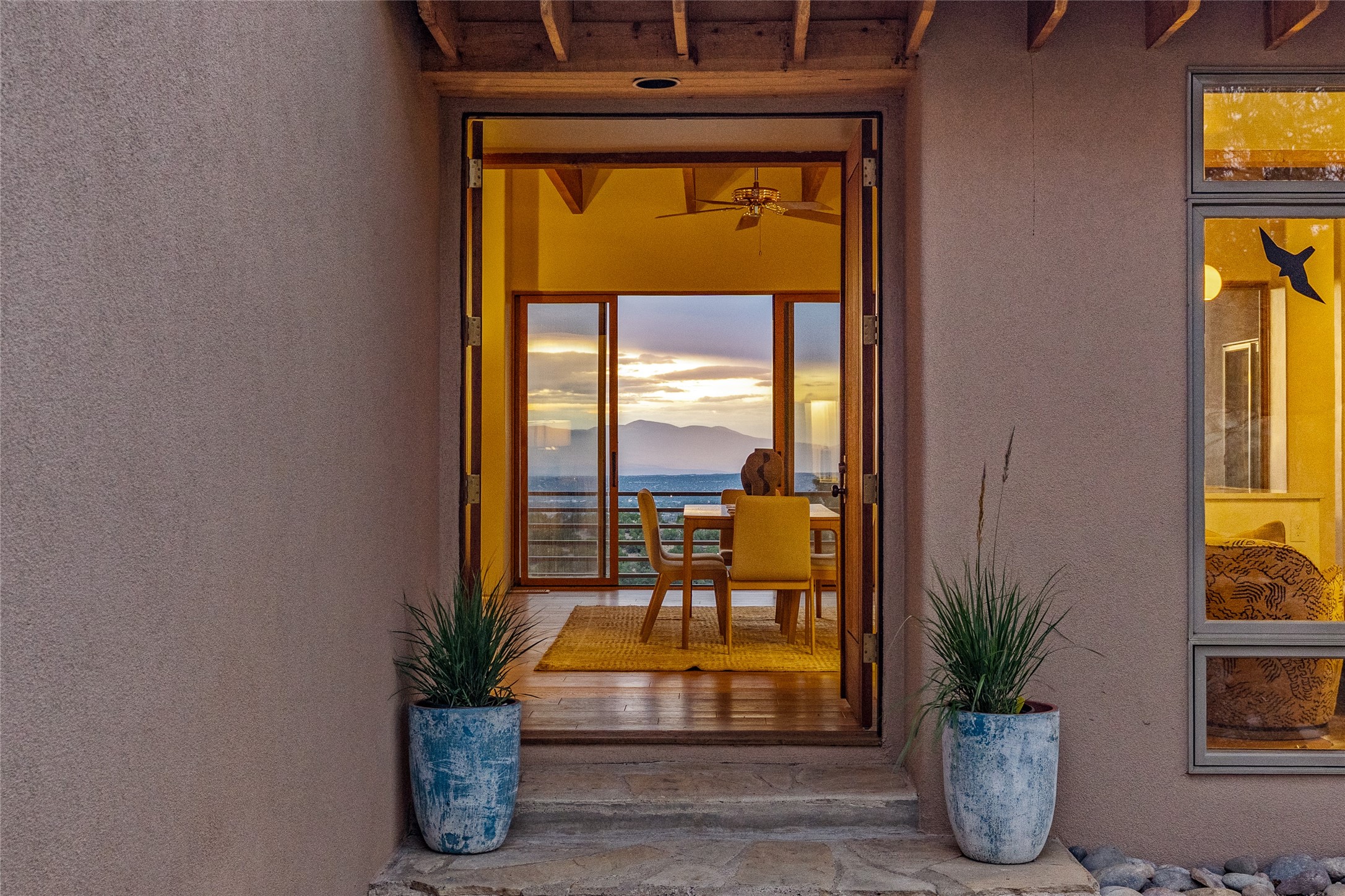 Welcome to your own hilltop "Heaven". A stunning, fully renovated retreat where refined living meets the serenity of sky-high vistas. Perched on 10 private acres, this exceptional residence offers unobstructed panoramic views of the majestic Jemez Mountains, framed by natural rock outcroppings and open skies in every direction.Extensively updated inside and out, the home seamlessly blends custom craftsmanship with modern luxury. Dramatic Mahogany double entry doors and hand-carved doors in the primary suite set a tone of timeless elegance. Recent exterior upgrades include a brand-new roof and fresh stucco for lasting curb appeal.Inside, a chef's dream kitchen awaits--featuring sleek quartz countertops and top-tier stainless steel appliances, ideal for both quiet evenings and lively entertaining. Rich wood floors flow through light-filled open living spaces that draw the eye to the breathtaking landscape beyond.Designed for year-round comfort, the home includes a new tankless water heater, furnace, and central air conditioning. Guests will enjoy a beautifully updated bathroom and a thoughtfully designed floor plan that offers privacy and separation between the primary suite and guest quarters.Step outside onto newly refreshed decks and savor the peace of your elevated retreat--perfect for sunset cocktails, morning coffee, or stargazing under New Mexico's vast night skies.Elegant, tranquil, and truly move-in ready, this one-of-a-kind property invites you to live above it all--where natural beauty, modern amenities, and quiet luxury come together in perfect harmony.