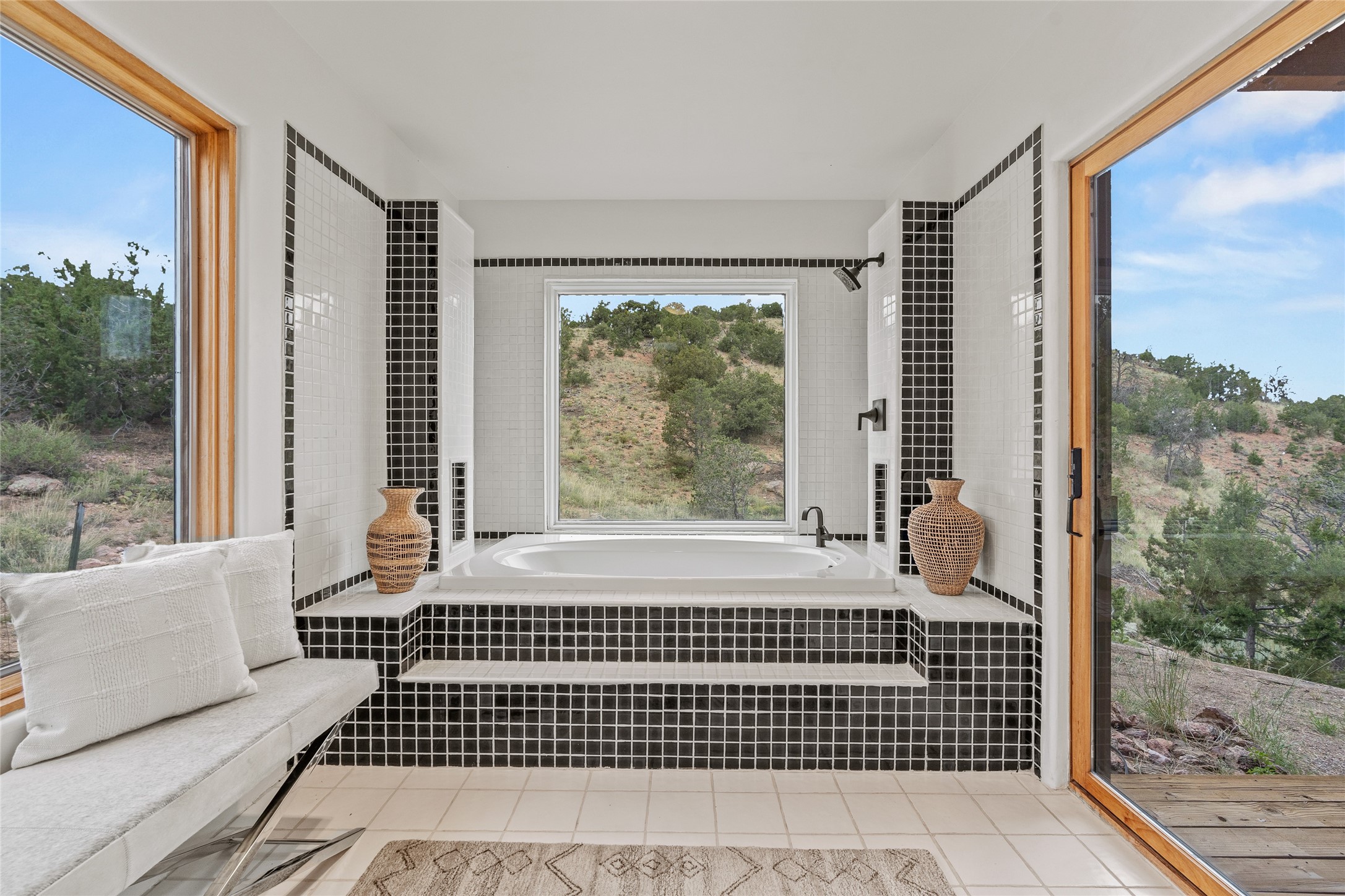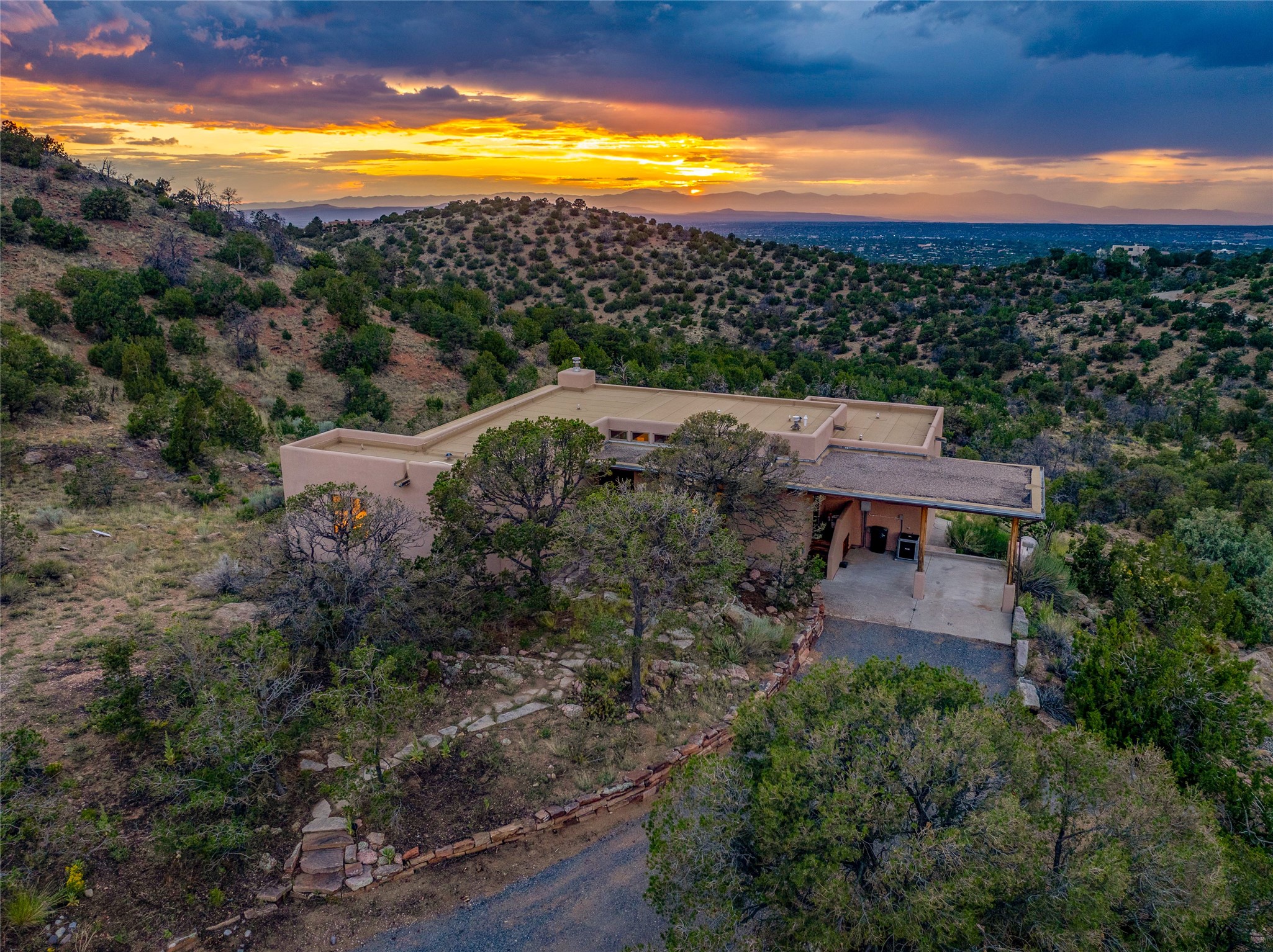 Welcome to your own hilltop "Heaven". A stunning, fully renovated retreat where refined living meets the serenity of sky-high vistas. Perched on 10 private acres, this exceptional residence offers unobstructed panoramic views of the majestic Jemez Mountains, framed by natural rock outcroppings and open skies in every direction.Extensively updated inside and out, the home seamlessly blends custom craftsmanship with modern luxury. Dramatic Mahogany double entry doors and hand-carved doors in the primary suite set a tone of timeless elegance. Recent exterior upgrades include a brand-new roof and fresh stucco for lasting curb appeal.Inside, a chef's dream kitchen awaits--featuring sleek quartz countertops and top-tier stainless steel appliances, ideal for both quiet evenings and lively entertaining. Rich wood floors flow through light-filled open living spaces that draw the eye to the breathtaking landscape beyond.Designed for year-round comfort, the home includes a new tankless water heater, furnace, and central air conditioning. Guests will enjoy a beautifully updated bathroom and a thoughtfully designed floor plan that offers privacy and separation between the primary suite and guest quarters.Step outside onto newly refreshed decks and savor the peace of your elevated retreat--perfect for sunset cocktails, morning coffee, or stargazing under New Mexico's vast night skies.Elegant, tranquil, and truly move-in ready, this one-of-a-kind property invites you to live above it all--where natural beauty, modern amenities, and quiet luxury come together in perfect harmony.