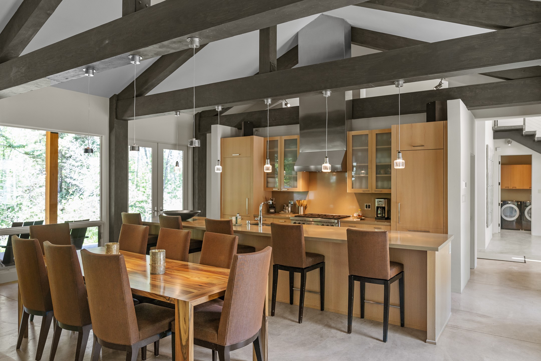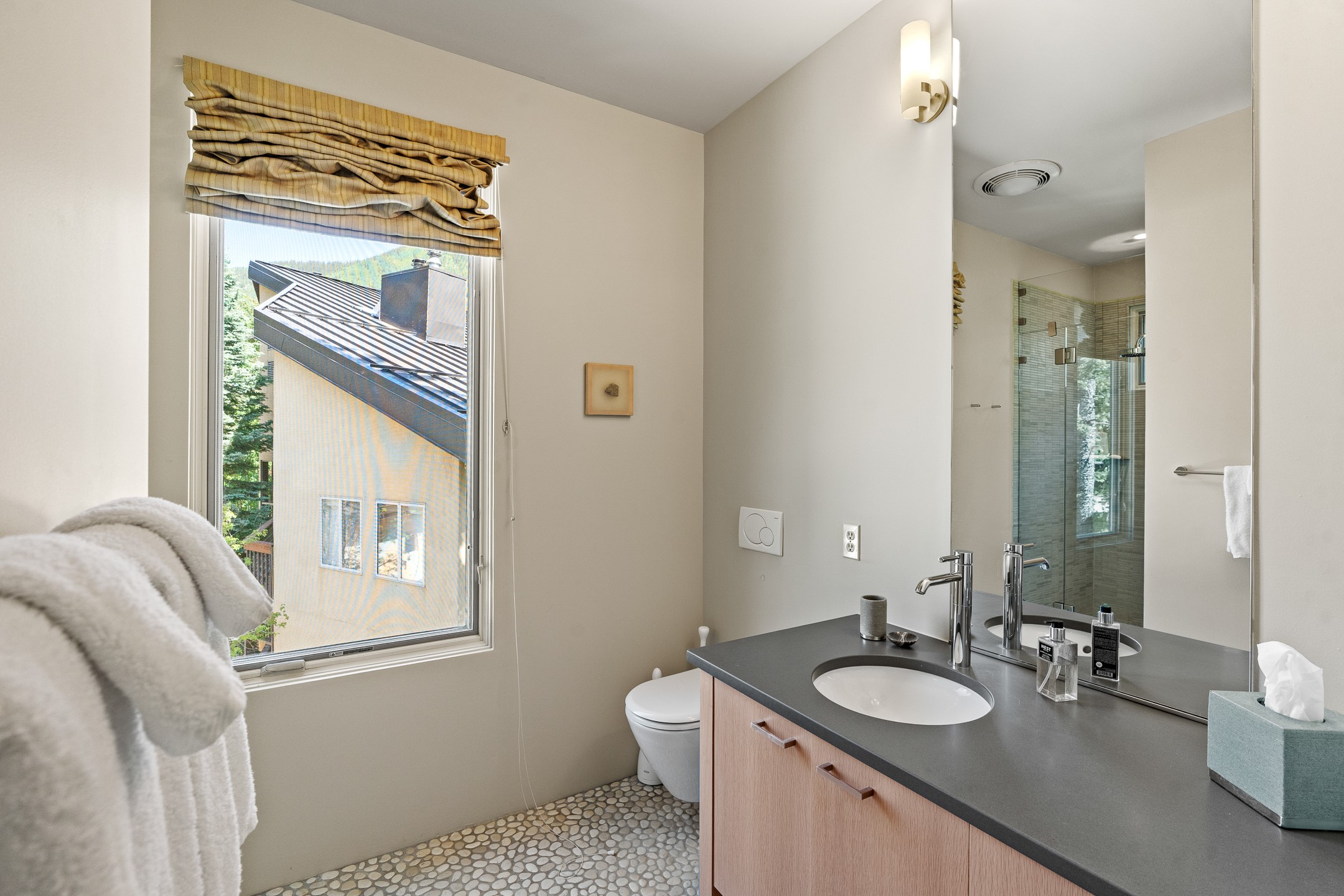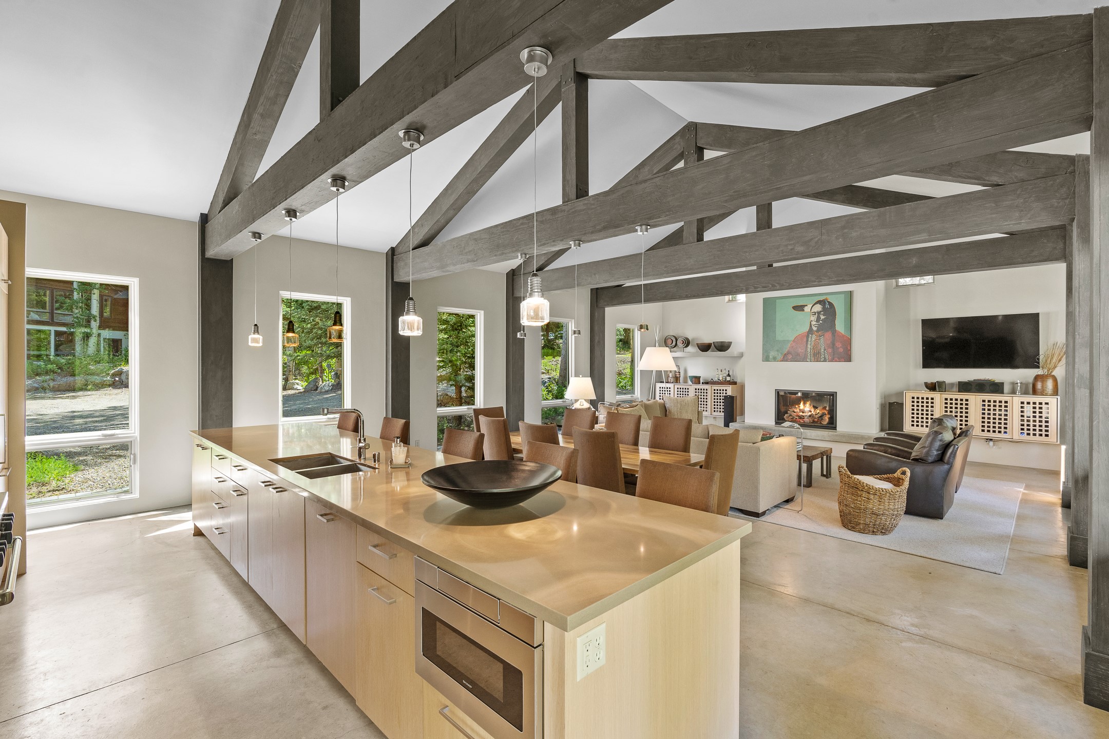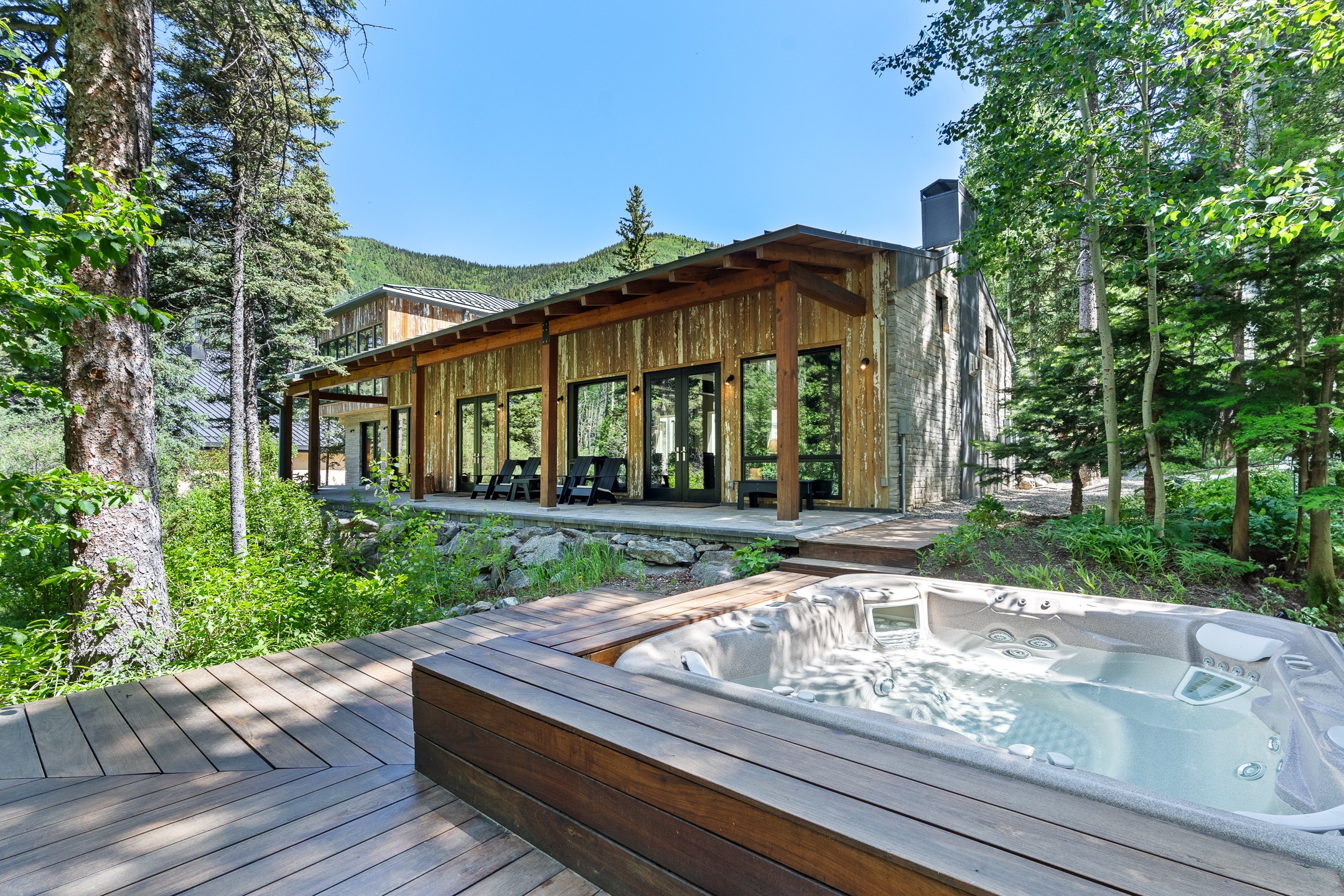 Situated in the heart of Taos Ski Valley, this one-of-a-kind Contemporary Modern Mountain Home redefines alpine luxury. Set on a rare corner lot spanning over one-third of an acre, the property is graced with more than 150 feet of the Rio Hondo River, flowing beneath two custom-built bridges that provide direct ski-in/ski-out access. Just a short walk to the base area's two main lifts, the location is simply unmatched. Every detail of this stunning home exudes sophistication and modern elegance. Designed for both comfort and performance, it features high-end finishes throughout, including automated sun shades, radiant in-floor heating, a chef's kitchen with premium appliances, and a luxurious steam shower in the primary suite. A dramatic zinc standing seam roof--engineered to last 80 to 100years--crowns the home, while a natural gas standby generator ensures seamless year-round living. Step outside to the elevated hot tub perched above the river and enjoy serene mountain ambiance like no other. The heated driveway and stone paver walkways offer effortless winter access, while the oversized 3-car garage--with one bay currently transformed into a game room--adds versatility and comfort. A dedicated ski storage room with private locker space and a separate entrance completes the alpine lifestyle experience. The home's thoughtful floor plan offers exceptional privacy and flow. The primary suite features a private office, steam shower, and complete separation from the guest quarters, which are adjacent to a spacious family lounge. A guest suite on the lower level provides additional convenience and flexibility. From its unparalleled riverfront setting to its extraordinary finishes and amenities, there is simply no other home of this caliber in Taos Ski Valley. This is more than a residence--it's an elevated mountain sanctuary. Home is being sold fully furnished, including most artwork.
