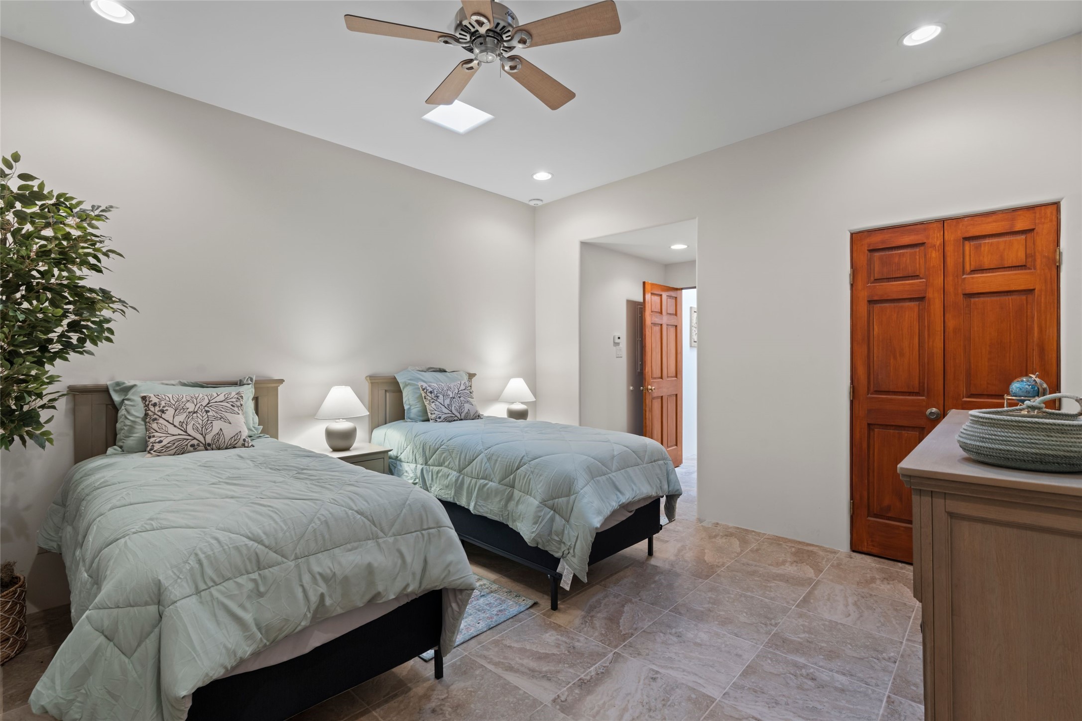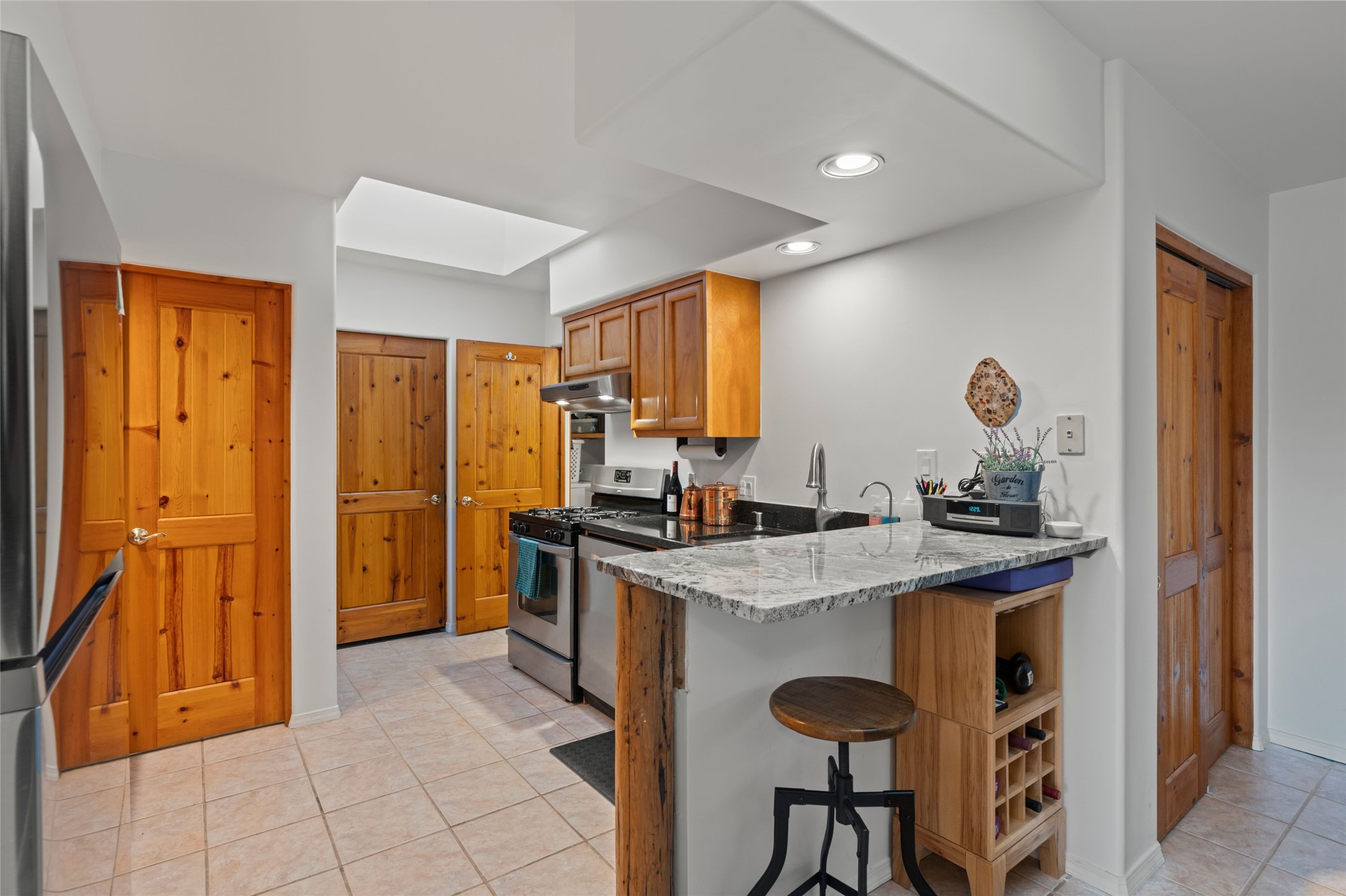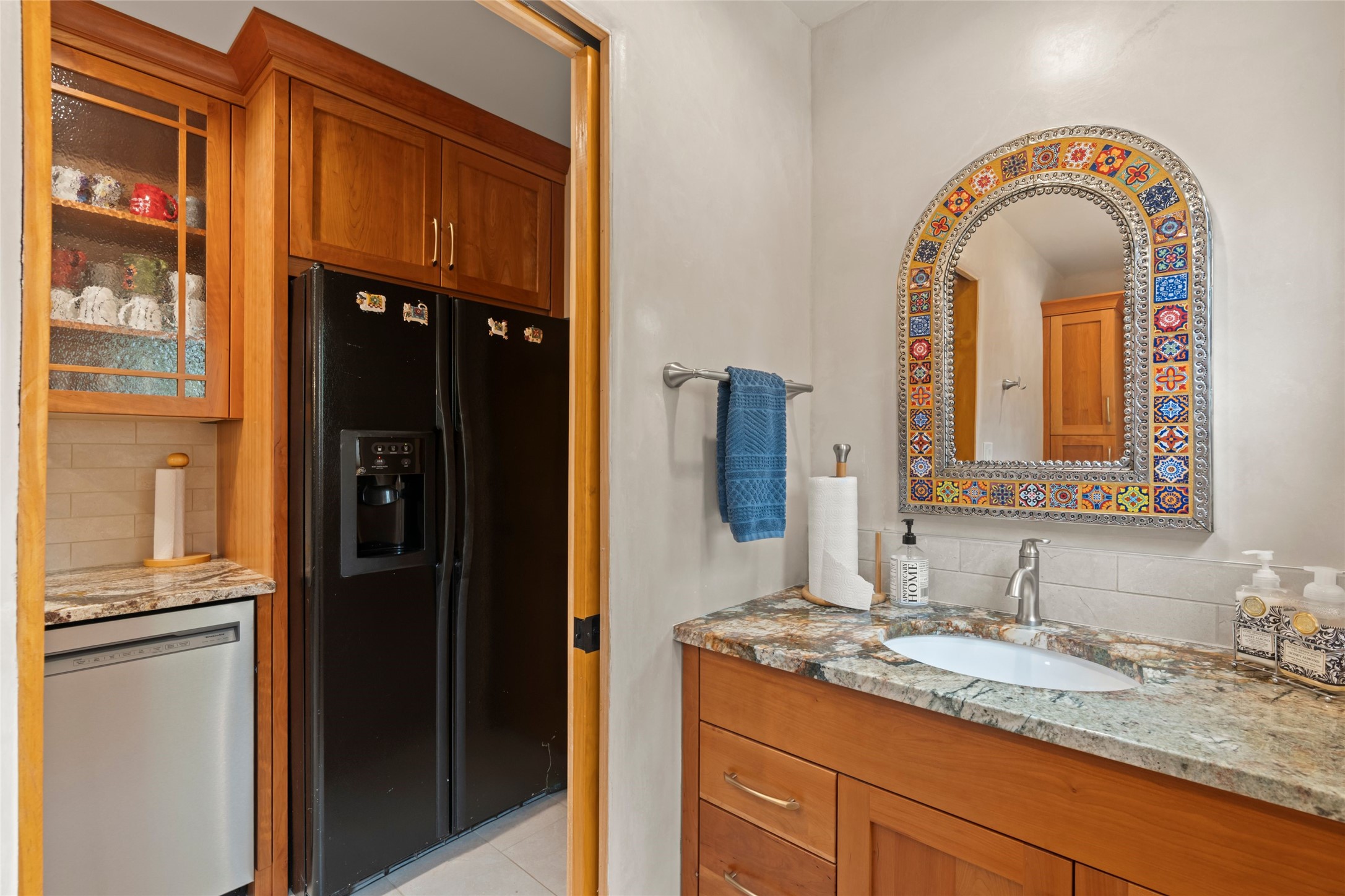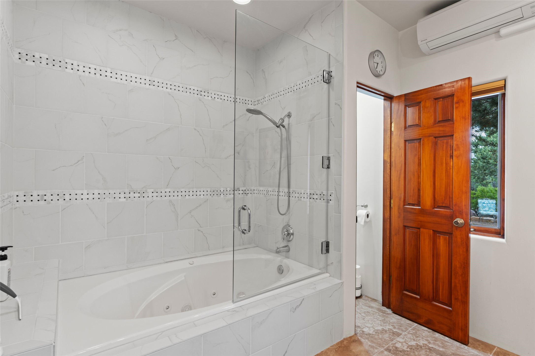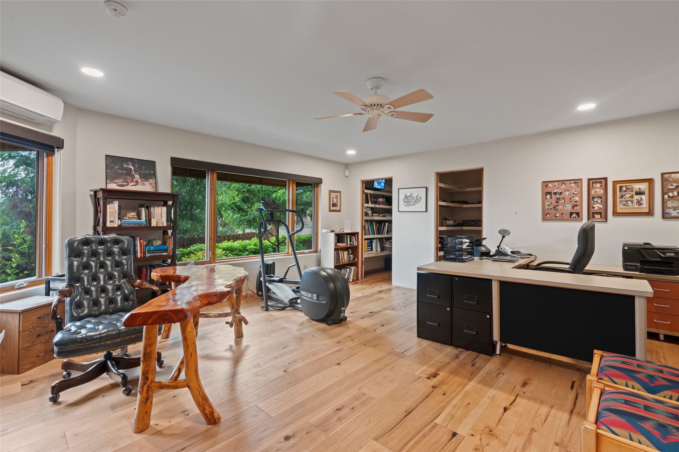 A true Santa Fe masterpiece, this luxurious estate seamlessly blends art, architecture, and nature on a serene 2.46-acre lot with breathtaking views of the Sangre de Cristo mountains. Designed for comfort, sustainability, and inspired living, this extraordinary property offers every amenity for the discerning homeowner.Notable features include double and single-car garages plus a large RV garage, ideal for car enthusiasts, adventure seekers or workshop. The 62-panel solar system and five 2,500-gallon interconnected buried cisterns support an eco-conscious lifestyle, while the extensive drip irrigation system nourishes a lush 1,000 sq. ft. irrigated vegetable garden, orchard (peach, apple, and plum trees), a berry patch bursting with blueberries, blackberries, and raspberries.Enjoy miles of hiking, biking, and horseback riding trails just across the street, or relax in your private oasis with green space bordering the eastern edge of the property, a tranquil water feature with Koi pond, and multiple covered outdoor entertaining spaces, including a plumbed gas fire pit and a fully insulated hot tub.Inside, comfort and luxury abound with radiant floor heating throughout, mini-split systems for cooling, and a security system with cameras. The heart of the home is the spectacular Great Hall, anchored by a gas fireplace, and offering soaring ceilings and an atmosphere of timeless elegance and opening to outdoor spaces. Additional highlights include a top-of-the-line chef's kitchen, butler's pantry, and a quilting/art studio.The estate also includes a charming 2-bedroom guest house and a spacious 2-bedroom studio, also with Sangre de Cristo mountains views. Perfect for guests, extended family, or creative workspaces.There is ample parking for guests and extra vehicles, this estate is ideal for entertaining or enjoying peaceful privacy and solitude. A rare opportunity to own a truly magical home that celebrates the best of indoor-outdoor living in Santa Fe.