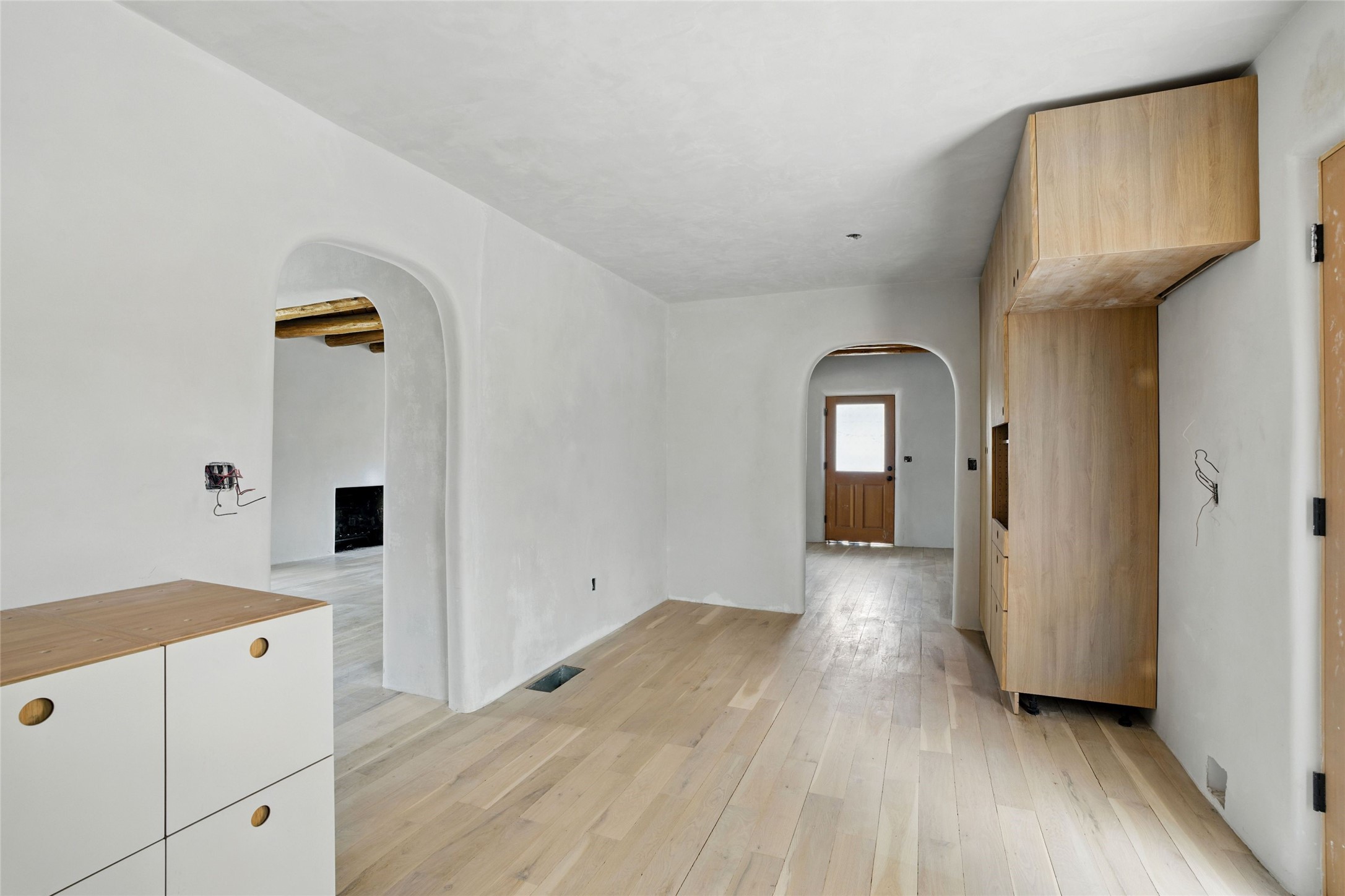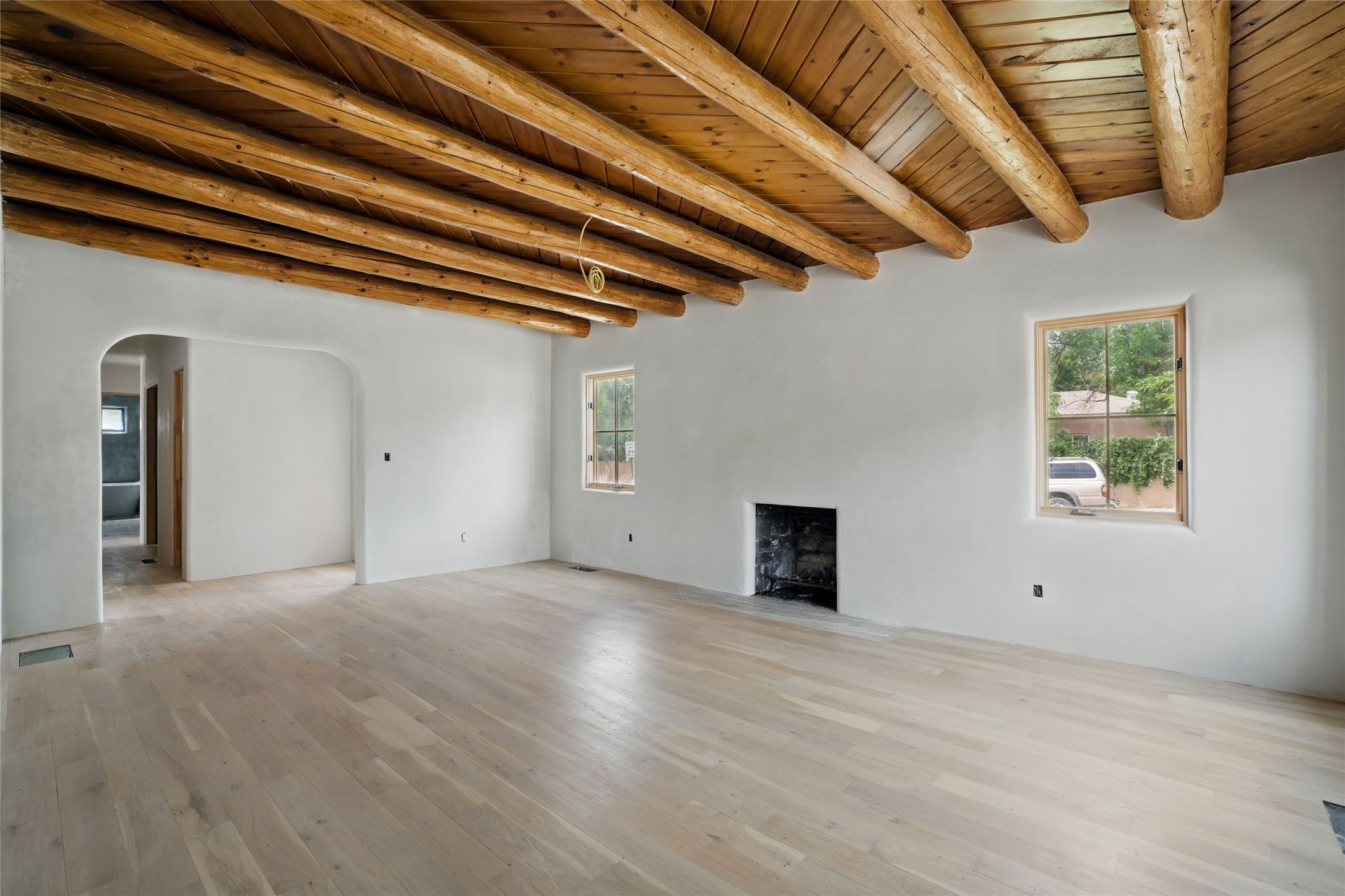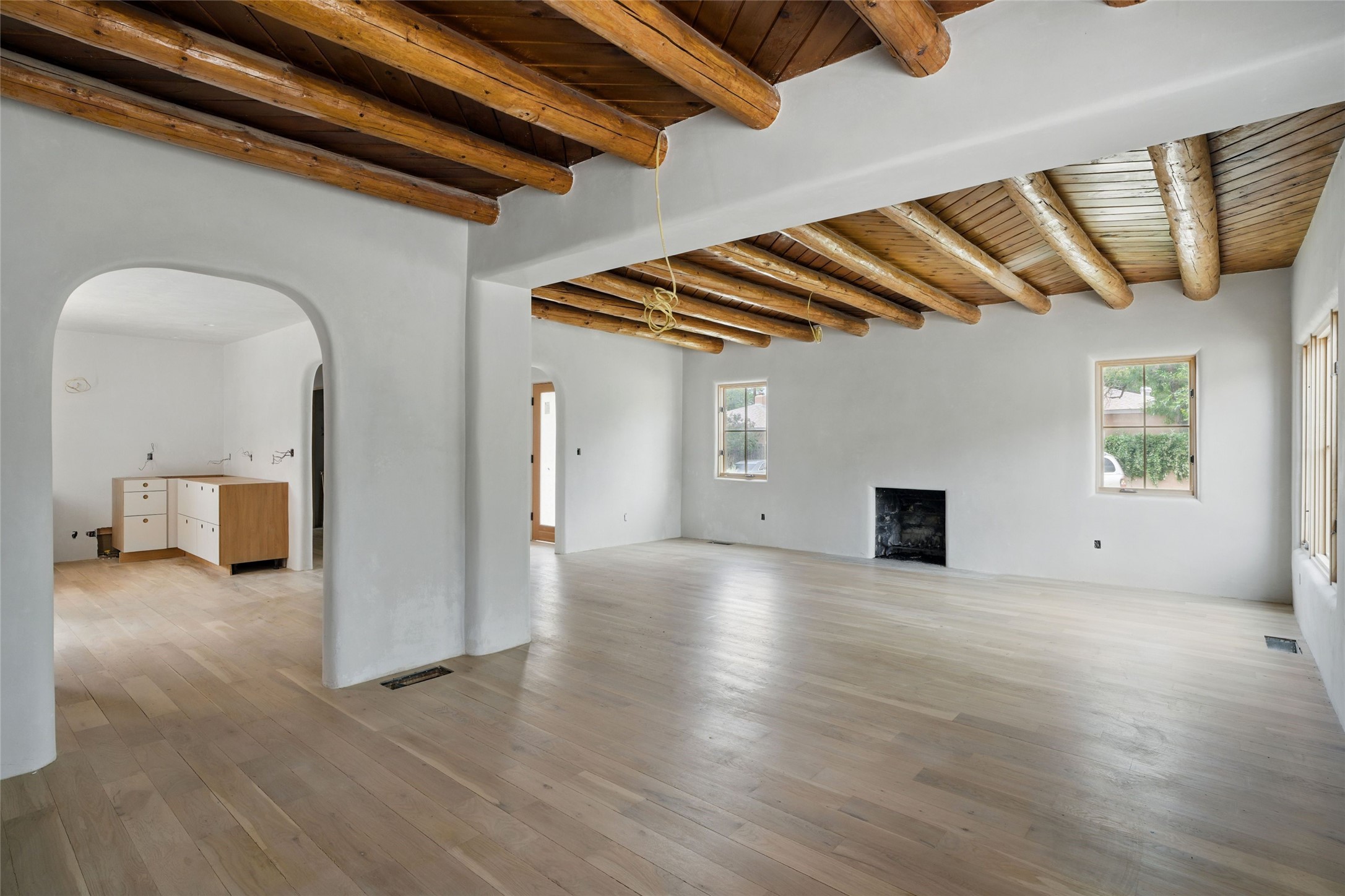 This 2-bedroom, 1.5-bath home in the sought-after South Capitol neighborhood offers an exceptional canvas for your aspirations. Experience the ease of single-level living, thoughtfully designed with no steps throughout. Partially renovated and brimming with potential, this residence features modern plumbing and electrical systems, providing a solid foundation for your creative flair. Freshly installed windows bathe the interior in natural light, while sleek, Danish cabinets invite culinary exploration. The new flooring sets the stage for your artistic expression, ready to be customized at your discretion. Vigas and beams echo traditional craftsmanship, complemented by a welcoming fireplace that adds warmth and charm to the living space. An expansive backyard features a magnificent apricot tree that offers delightful shade for outdoor gatherings or tranquil moments. One-car attached garage. Positioned within a vibrant community and minutes from the Harvey Cornell Rose Garden, the thriving Santa Fe Railyard Arts District, and a plethora of dining options, shopping, and entertainment venues, including the iconic Santa Fe Plaza. This property is priced to allow new owners the freedom to finalize their vision and transform it into a distinctive home.