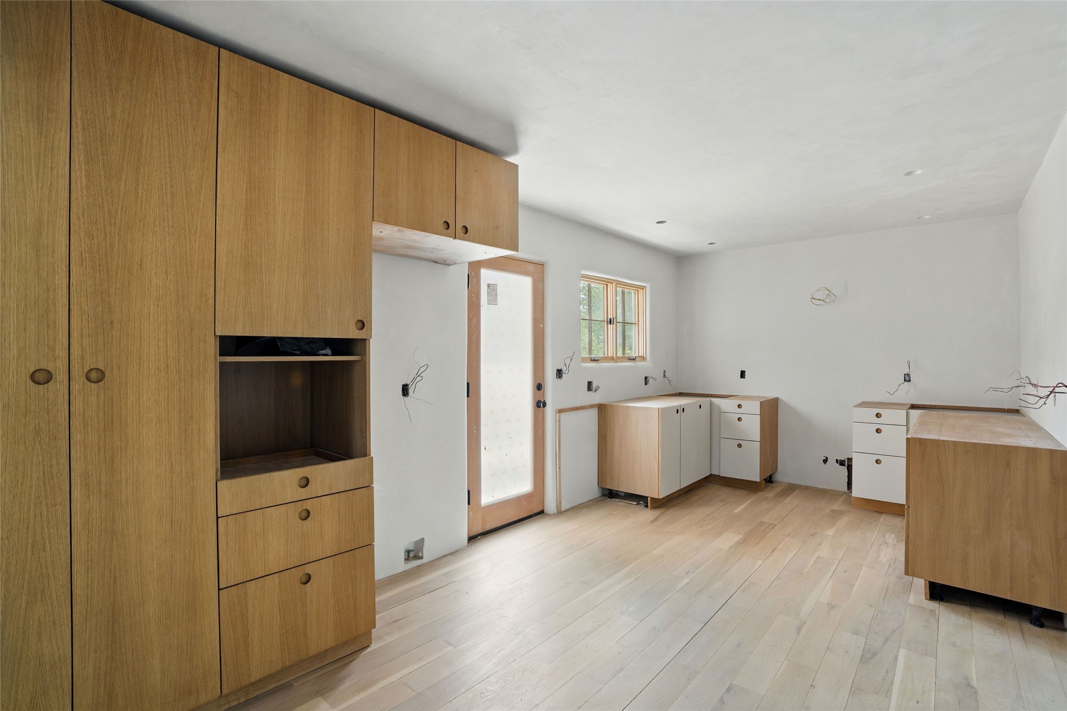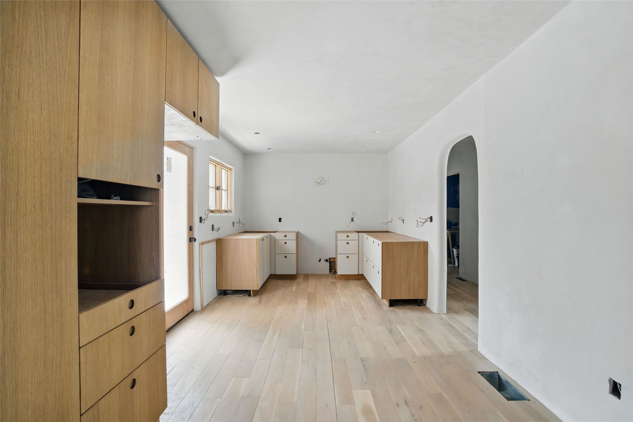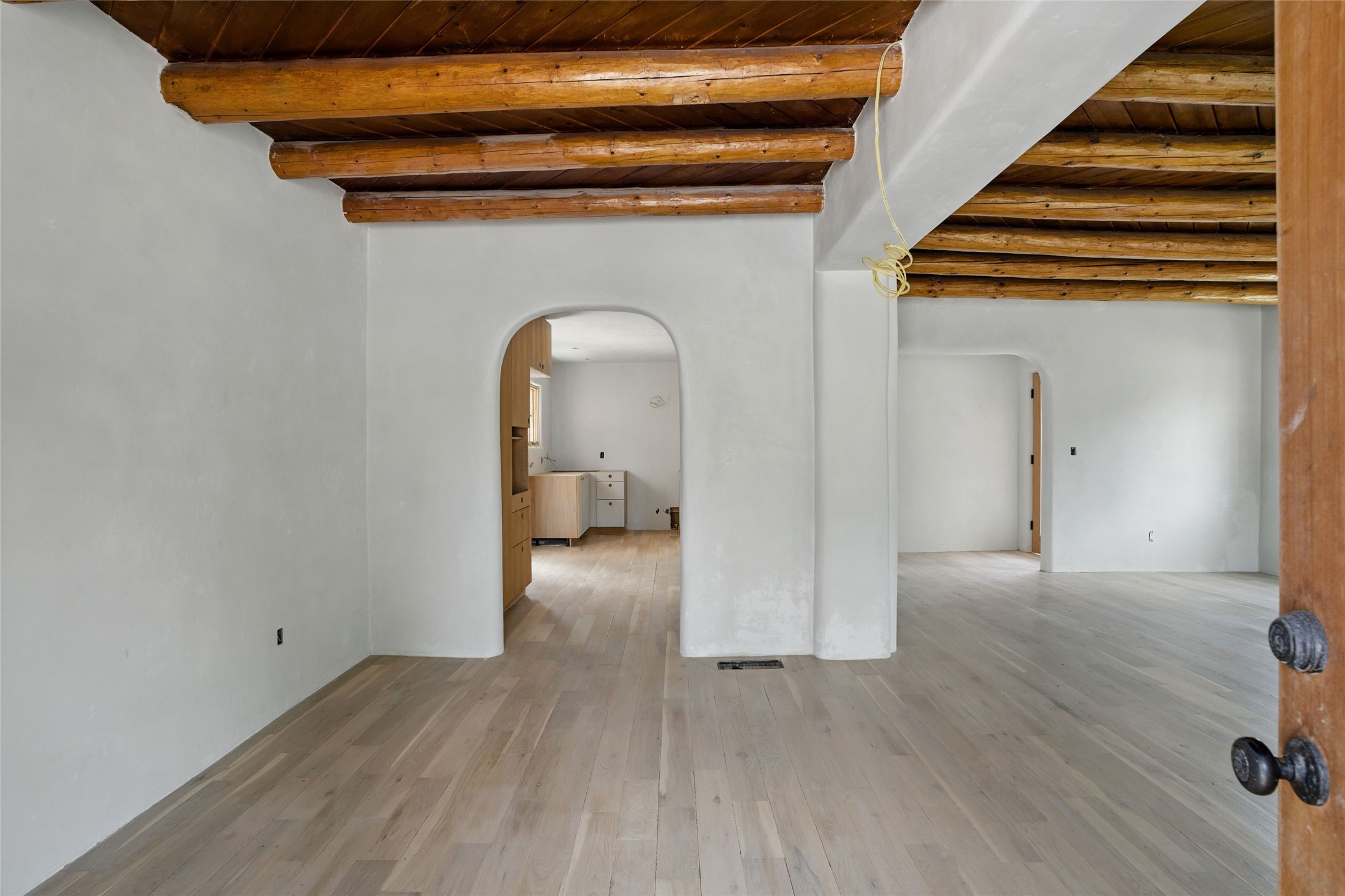 This 2-bedroom, 1.5-bath home in the sought-after South Capitol neighborhood offers an exceptional canvas for your aspirations. Experience the ease of single-level living, thoughtfully designed with no steps throughout. Partially renovated and brimming with potential, this residence features modern plumbing and electrical systems, providing a solid foundation for your creative flair. Freshly installed windows bathe the interior in natural light, while sleek, Danish cabinets invite culinary exploration. The new flooring sets the stage for your artistic expression, ready to be customized at your discretion. Vigas and beams echo traditional craftsmanship, complemented by a welcoming fireplace that adds warmth and charm to the living space. An expansive backyard features a magnificent apricot tree that offers delightful shade for outdoor gatherings or tranquil moments. One-car attached garage. Positioned within a vibrant community and minutes from the Harvey Cornell Rose Garden, the thriving Santa Fe Railyard Arts District, and a plethora of dining options, shopping, and entertainment venues, including the iconic Santa Fe Plaza. This property is priced to allow new owners the freedom to finalize their vision and transform it into a distinctive home.