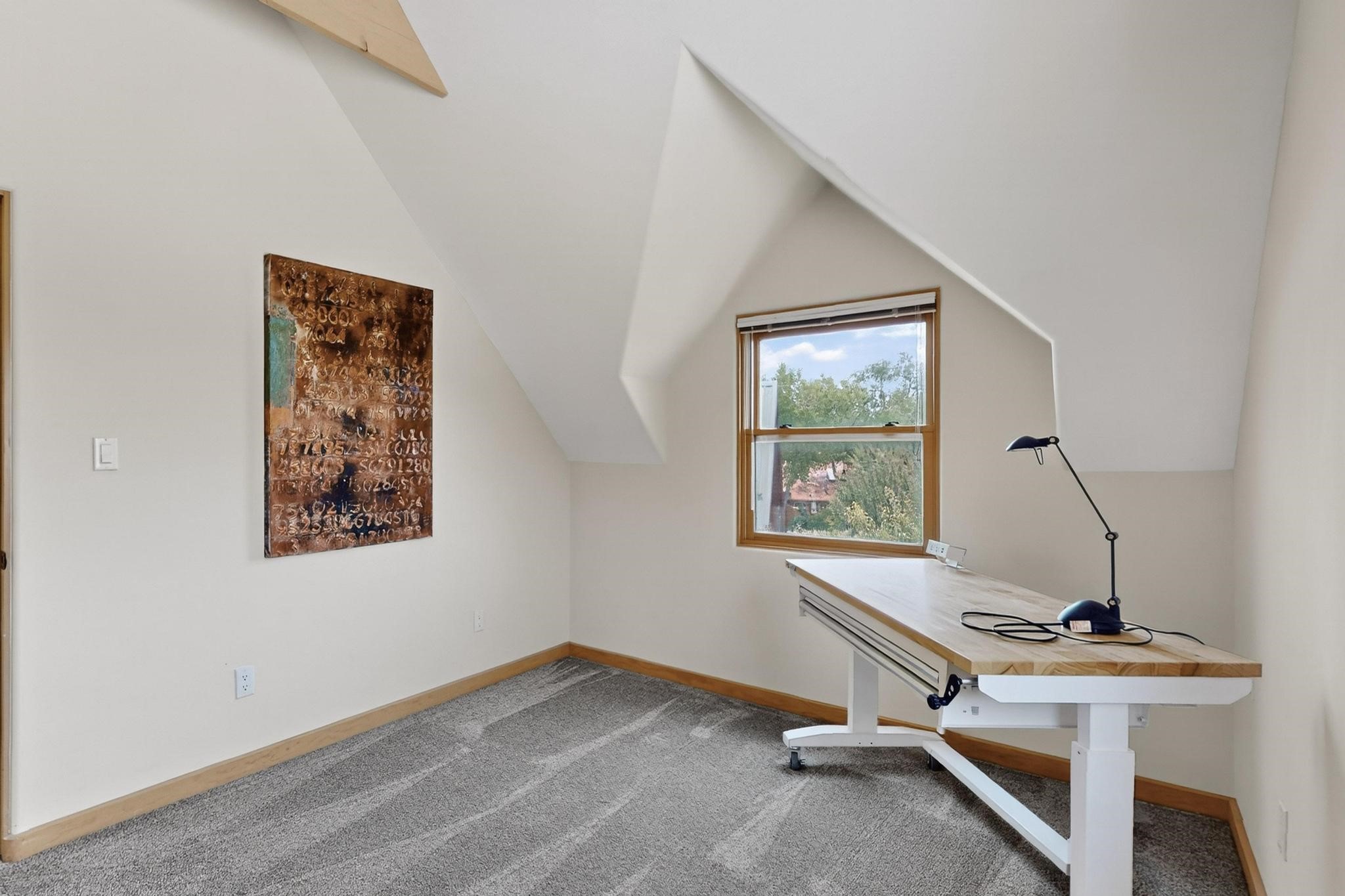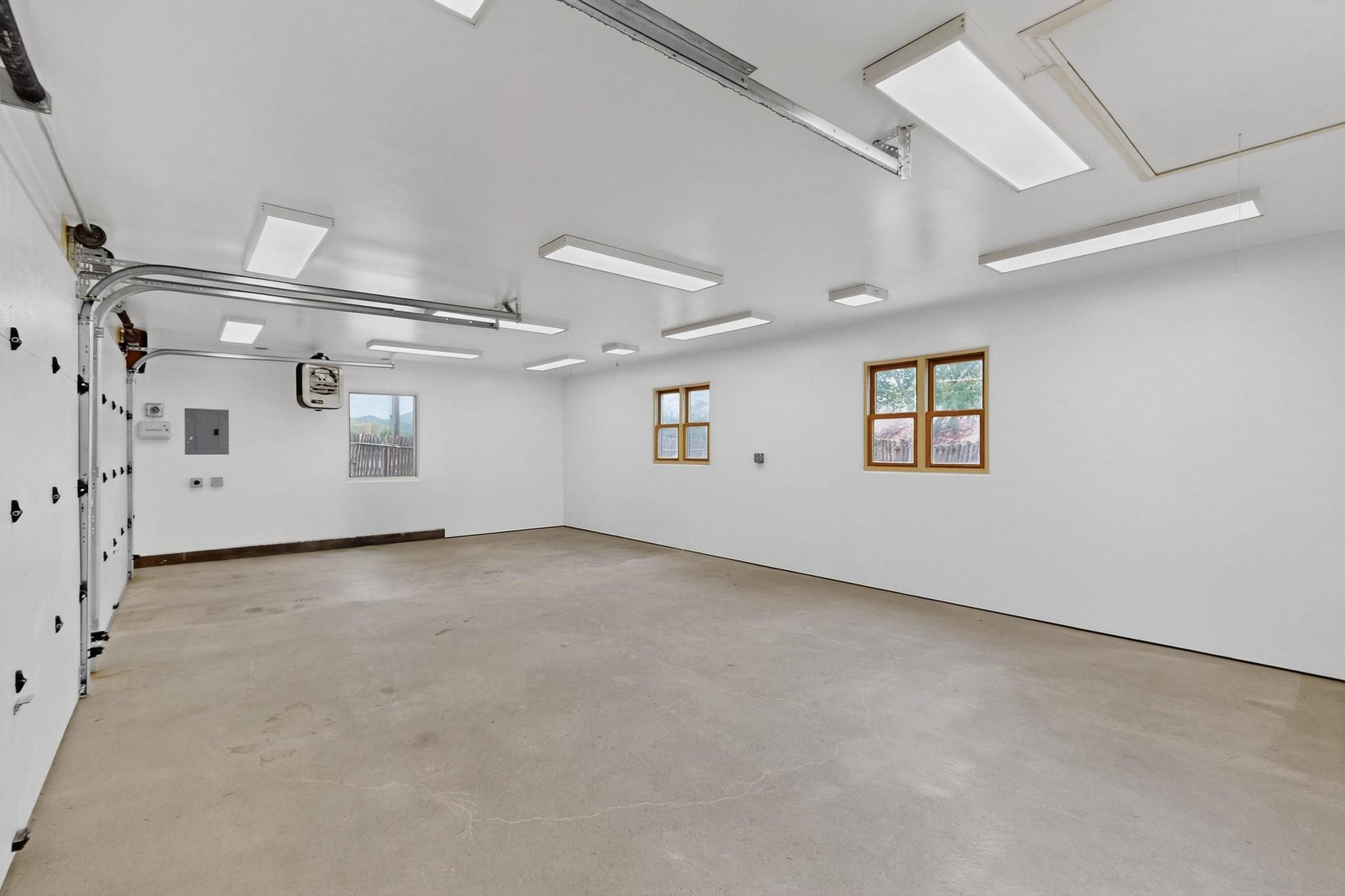 Smartly updated, Northern New Mexico Style, passive solar home. First Energy Starhome in New Mexico featuring high quality construction and outstanding efficiency!Inside you will find stained concrete radiant floors, new high-quality carpet upstairs andan abundance of beautiful natural light throughout the home. Tasteful finishes havebeen newly added to the kitchen and baths including new quartz countertops, sinks,matching faucets, lighting accents as well as brand new Wi-Fi ready Samsung StainlessSteel appliances. Other recent updates include a Lutron wireless automated lightingsystem, new smart smoke/CO detectors and thermostats, Moen Flow water leakdetection system and a filtered drinking water system. Feel at ease with brand newradiant heat boiler and control system as well as new domestic hot water heater. Thehome enjoys lovely Sangre de Cristo Mountain views from the primary upstairsbedroom with walk in closet. Outside you will find copious parking for guests and toys.The extensive low maintenance landscaping surrounding the property brings a pastoralfeeling with blue grama, Aspen trees and flowers amongst artful custom stone walls allautomatically watered with a Wi-Fi controlled irrigation and drip system. The detached580 sq/ft heated, insulated and finished garage could easily serve as an excellentworkshop, studio, or guest house. The garage also boasts a full, equally sized attic forextra storage or the option to finish. This would be a great location for the LANL commuter or someone looking for an ultra-convenient location just minutes from Plaza, the Railyard, and the Montanita Co-op. Enjoy a very short walk to the river trail, Frank Ortiz dog park and city open space trails, or a quick mountain bike ride from this hometo La Tierra trails and more. This home offers easy connection to all that Santa Fe has to offer!