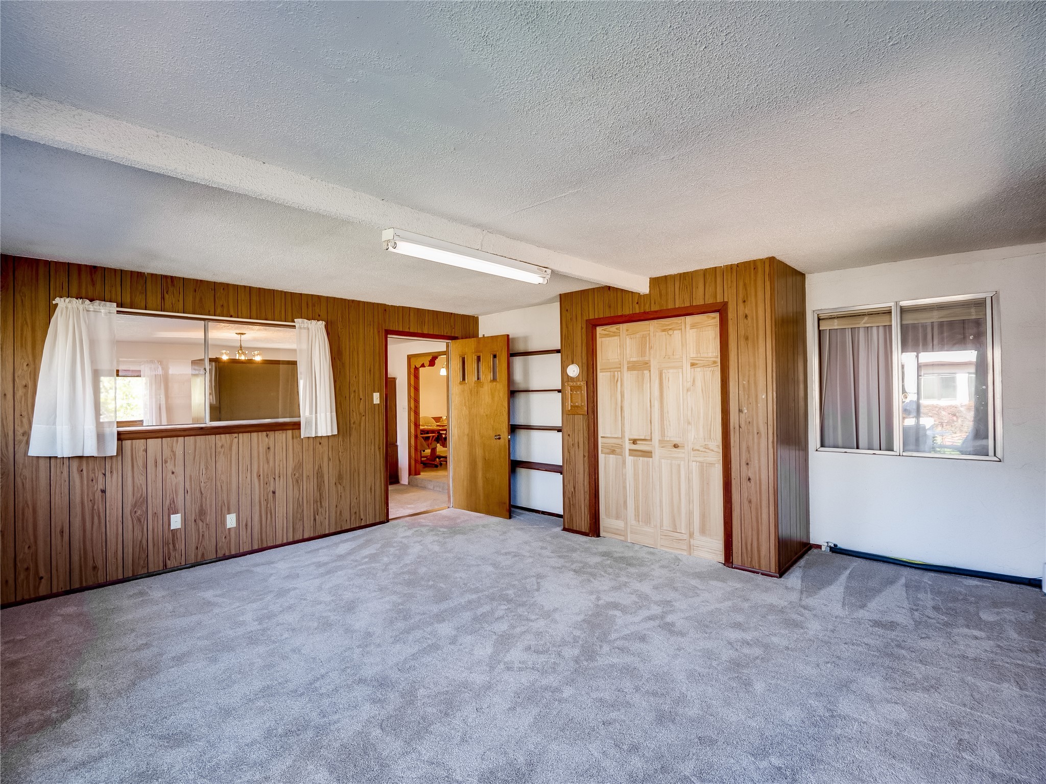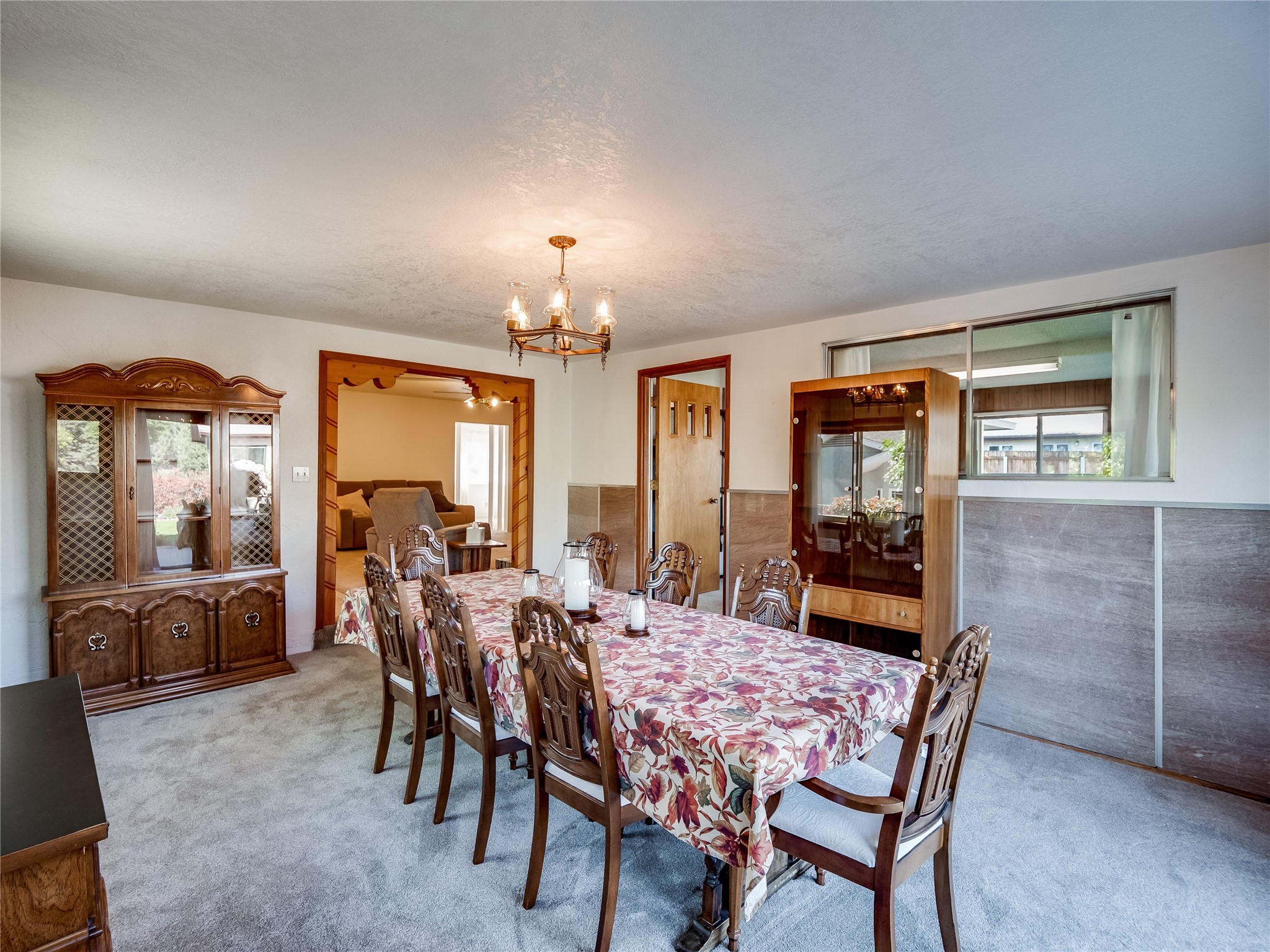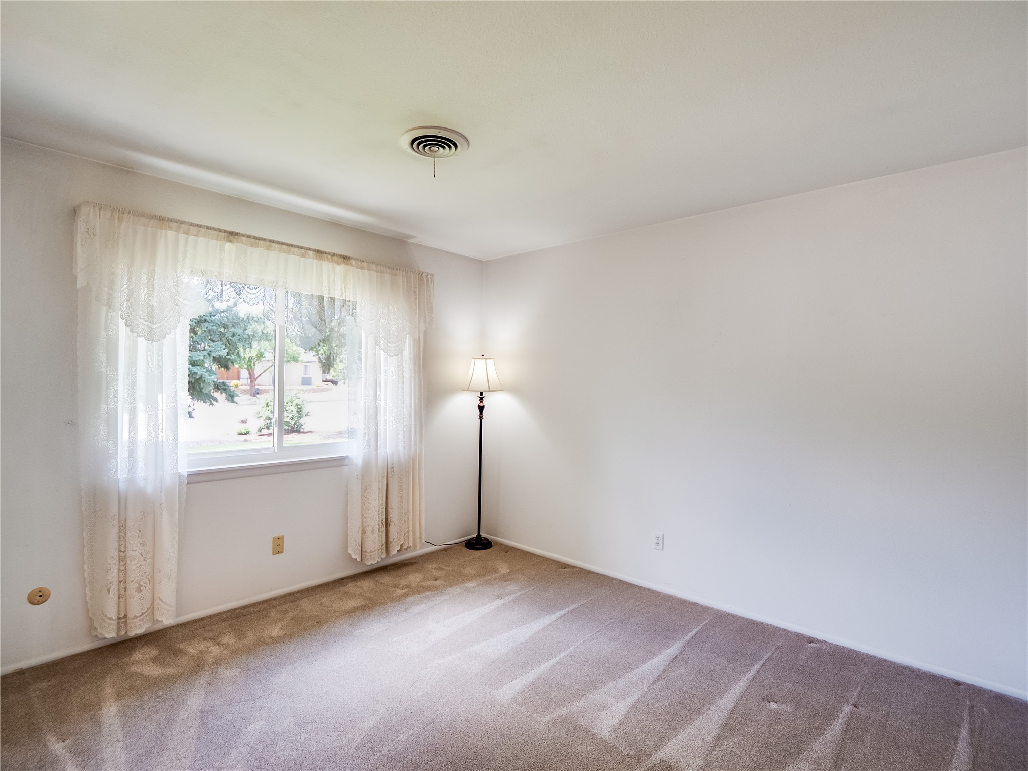 Welcome to this sensational ranch-style home in White Rock with beautiful curb appeal. A lush, green lawn and mature shade trees frame the front of the property, complemented by colorful flower beds that create a warm and inviting entrance. Step inside to find plush carpet flooring that runs throughout, adding comfort and continuity. Just off the entryway to the left is a versatile bonus room or den--ideal for a home office, study, or creative space--framed by elegant pillars that give the area a sense of separation and style. Continue forward into the cozy living room featuring a wood-burning fireplace, perfect for chilly evenings and relaxing with loved ones. The adjacent galley-style kitchen includes wood cabinets with chrome hardware and offers ample prep space, as well as a designated dining area for casual meals A 260 sq. ft. bonus room with access to backyard can be a kids play room, exercise room, a room for arts and crafts, a fifth bedroom or a great man cave! Nearby is access to the two-car garage and a convenient laundry space, providing everyday functionality. Step down into the formal dining room, filled with natural light from the surrounding windows and glass sliders that lead directly to the back patio and yard. Connected to this space is a large family room, offering another access point to the backyard, a perfect setting for gatherings, movie nights, or game days. A beautifully renovated modern guest bathroom with a white single sink vanity and a fully tiled shower/tub combo. At the end of the hall, the spacious primary en-suite overlooks the peaceful backyard and includes a walk-in closet and a private bathroom with a tiled walk-in shower and single sink vanity. The expansive backyard is a true oasis, with a lush green lawn, vibrant flower gardens, and irrigated vegetable planters--perfect for any green thumb. There's also side-yard access to park a vehicle or RV. A large patio area is ideal for outdoor dining and entertaining under the open sky.