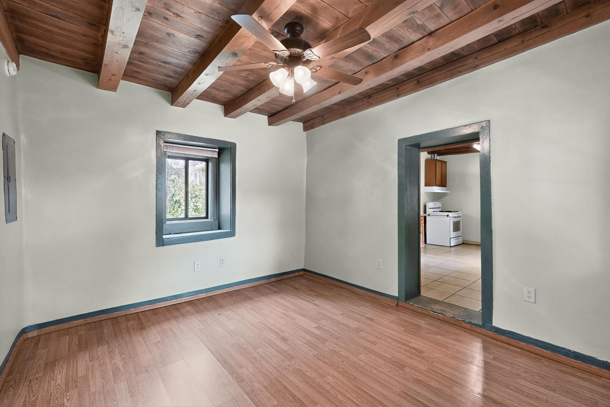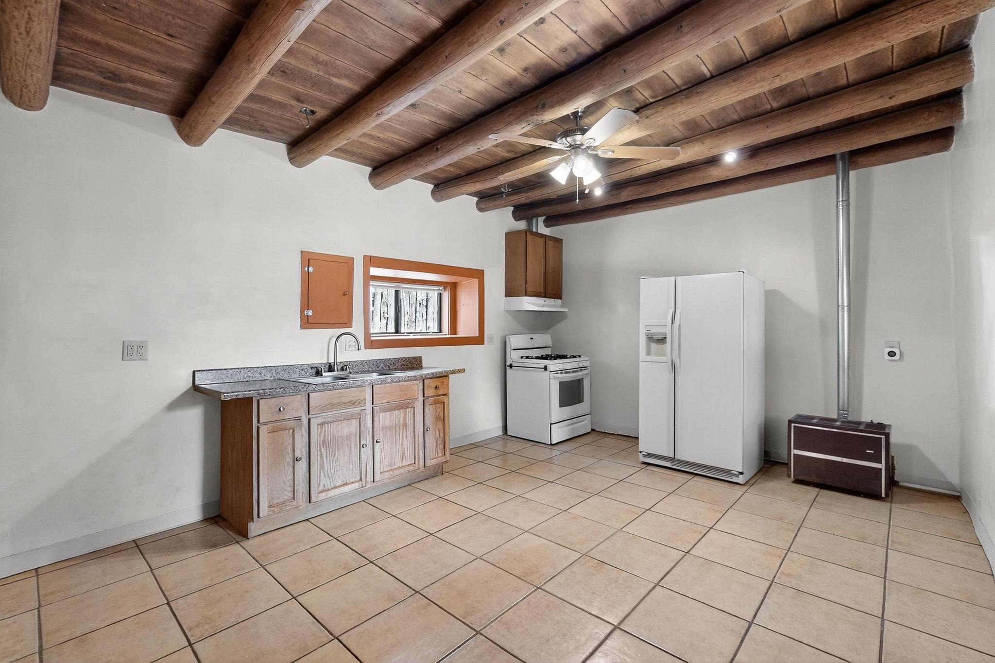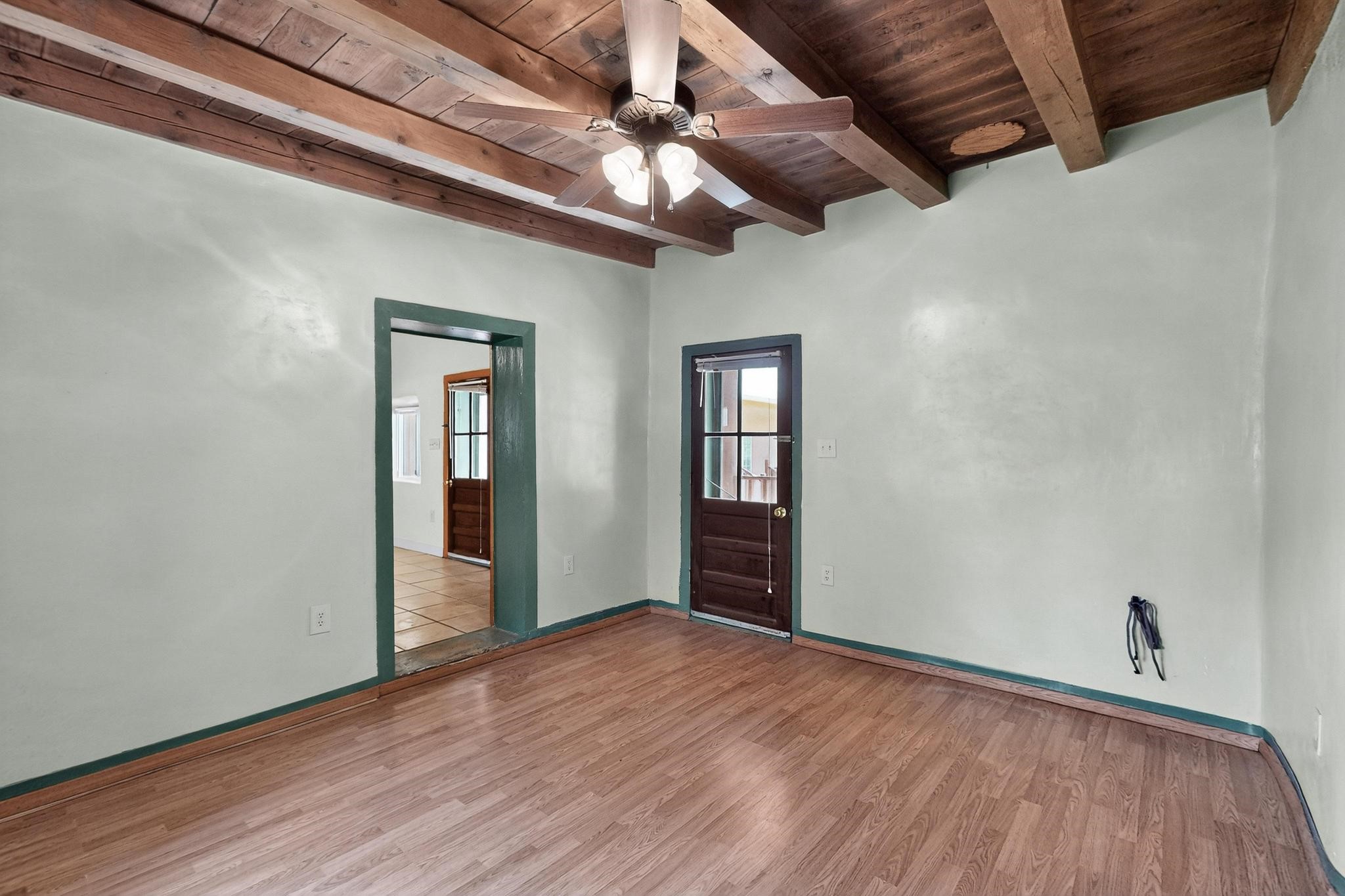 Charming Adobe Home with Classic New Mexico CharacterThis beautifully preserved adobe home offers timeless Southwestern charm and features a welcoming front porch--perfect for enjoying your morning coffee or watching the sunset.The layout includes:On one end: a private one-bedroom suite with kitchen and bathOn the other side: one additional bedroom, a second bath, and a laundry roomRarely do historic adobe homes like this come available in such excellent condition. Interior highlights include diamond-finish plaster walls, high ceilings, and exposed wood beams that showcase the true character of New Mexico architecture.Don't miss this unique opportunity to own a piece of local history.
