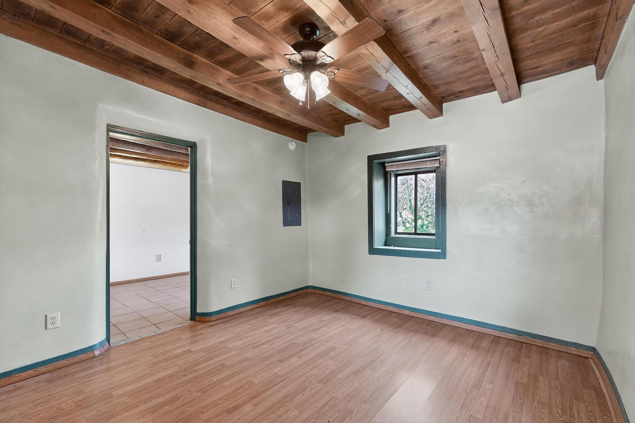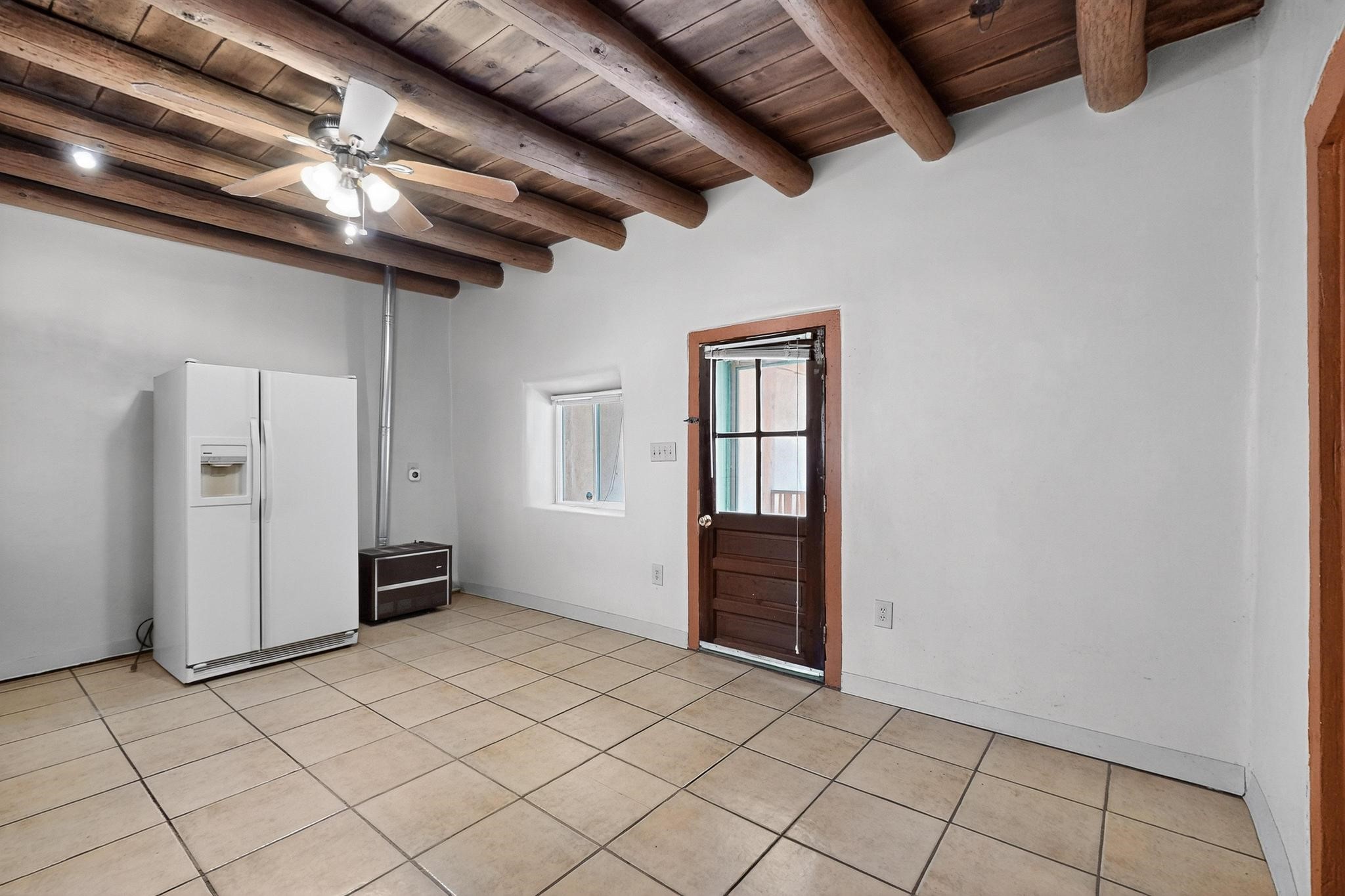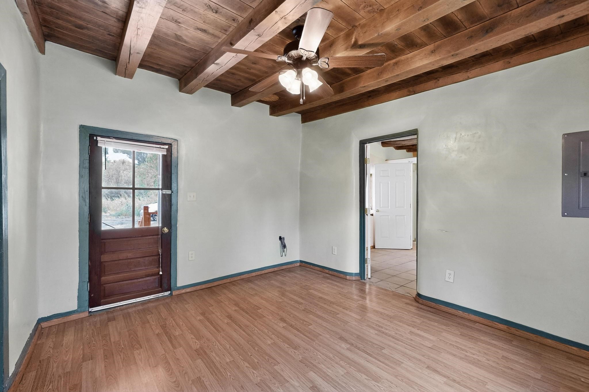 Charming Adobe Home with Classic New Mexico CharacterThis beautifully preserved adobe home offers timeless Southwestern charm and features a welcoming front porch--perfect for enjoying your morning coffee or watching the sunset.The layout includes:On one end: a private one-bedroom suite with kitchen and bathOn the other side: one additional bedroom, a second bath, and a laundry roomRarely do historic adobe homes like this come available in such excellent condition. Interior highlights include diamond-finish plaster walls, high ceilings, and exposed wood beams that showcase the true character of New Mexico architecture.Don't miss this unique opportunity to own a piece of local history.