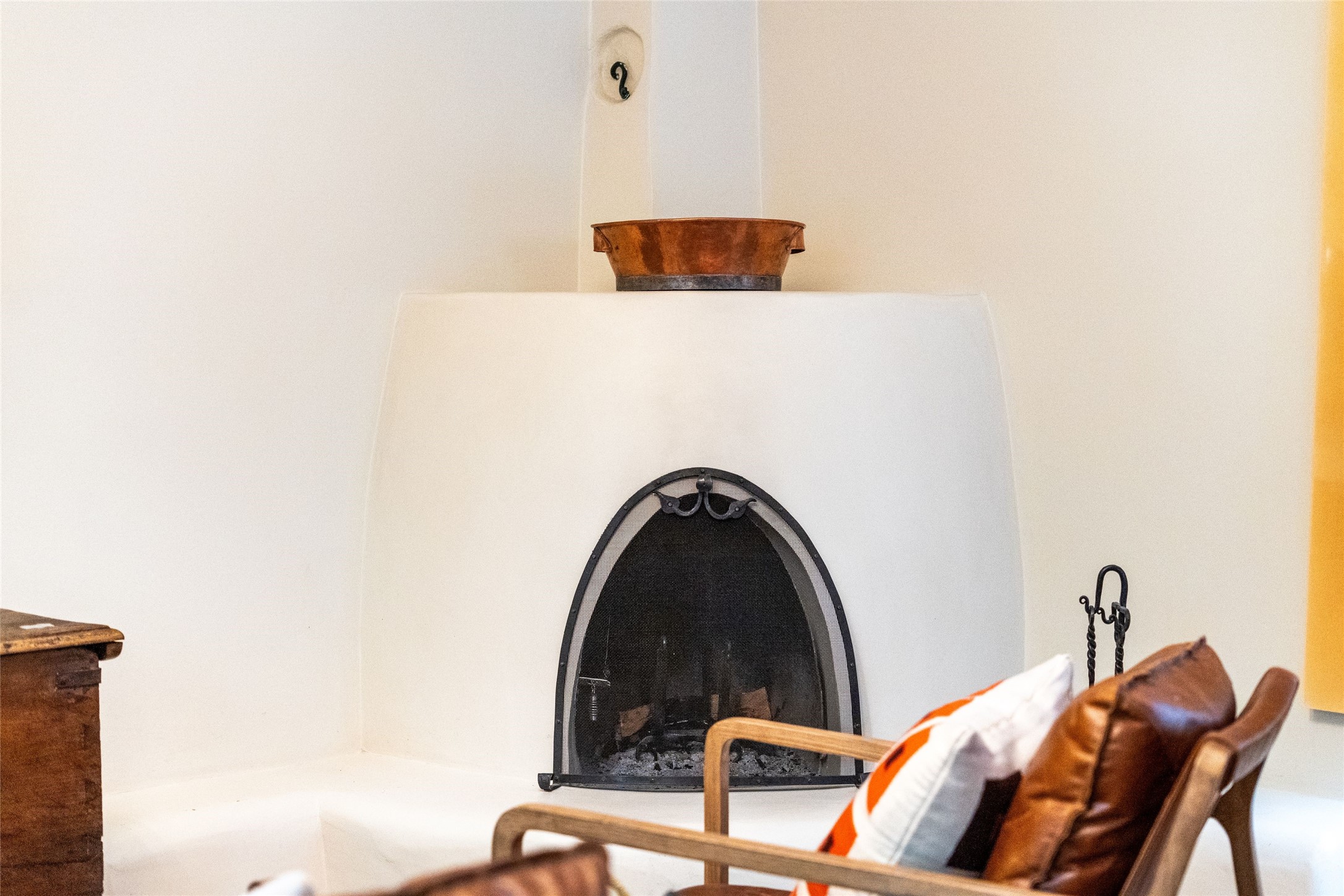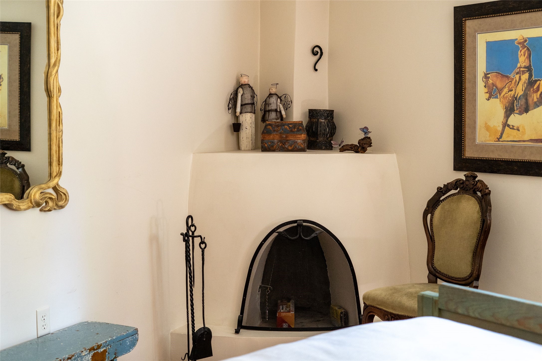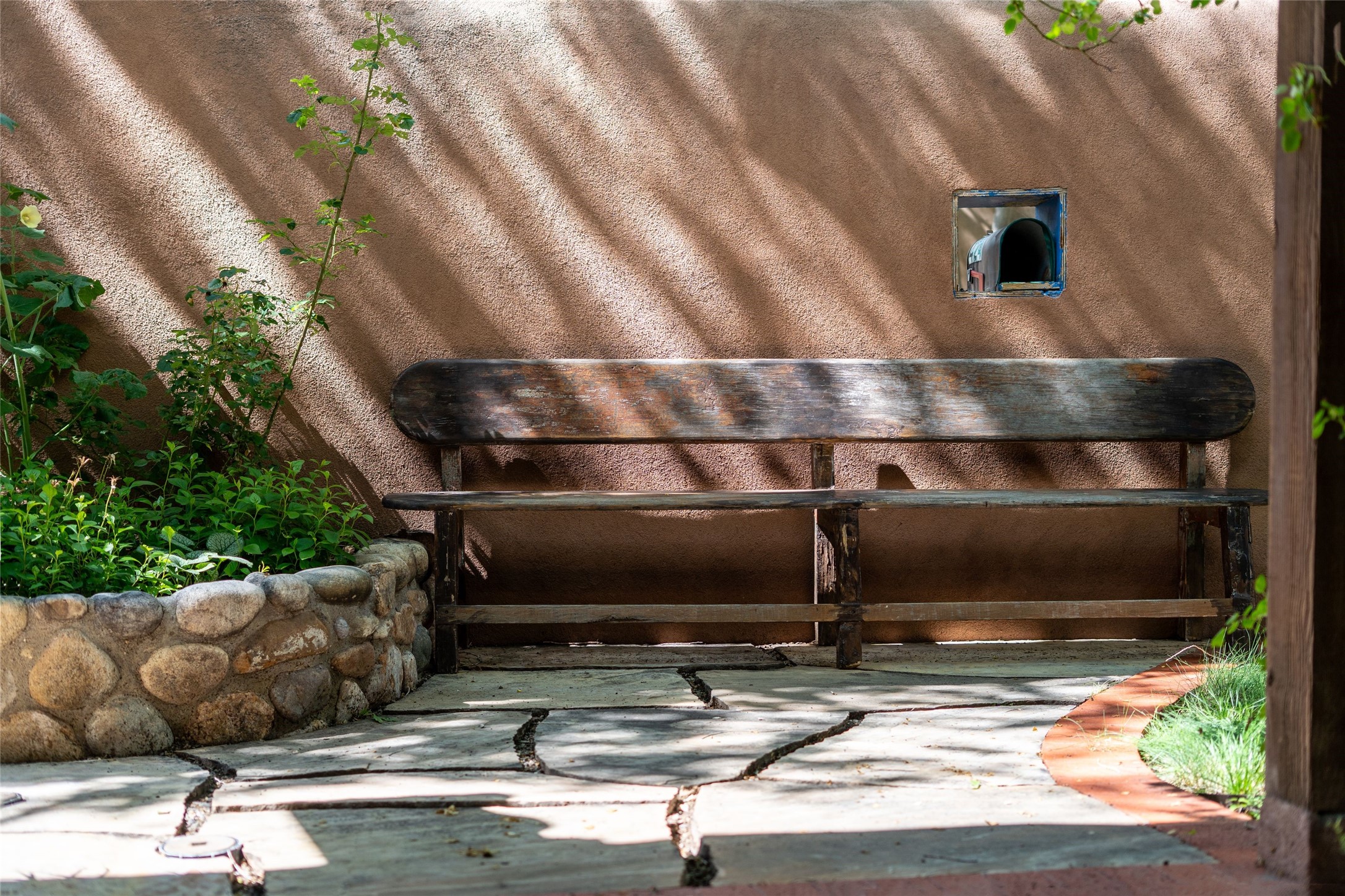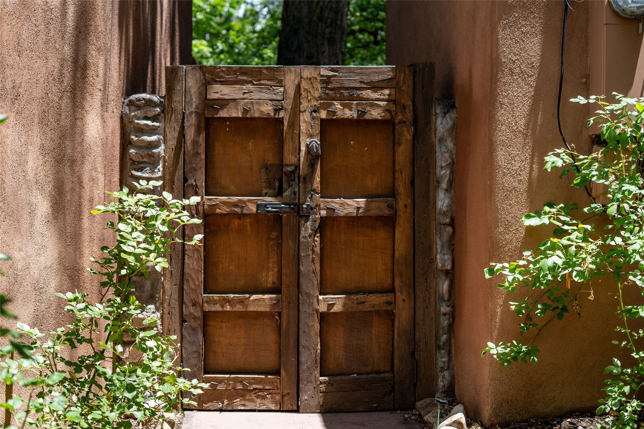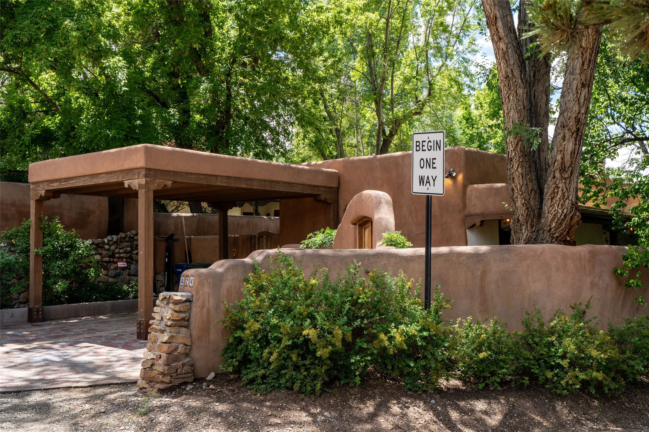 3 BED, 3 BATH ADOBE HOME | |2390 SQFT | HISTORIC EASTSIDE | Nestled on one of Santa Fe's most cherished streets, this exceptional adobe estate offers timeless charm and an unbeatable location--just 3 blocks from Canyon Road and Downtown Subscription, and six blocks from the historic Plaza. Enter through classic wooden gates into a private oasis featuring three lush, landscaped outdoor areas. The heart of the home is a vibrant kitchen adorned with hand-painted Talavera tile and custom tinwork by a local artisan. The adjacent dining area features mullioned windows framing garden views and a table that comfortably seats eight--perfect for entertaining. A step down from the dining room leads to the inviting living area, where a kiva fireplace, leather armchairs, and a cozy sofa create a warm and intimate gathering space. Each of the three bedrooms includes its own en suite bathroom and is brimming with Santa Fe style. The vast primary suite features a sitting room and its own outdoor sitting area. The first guest bedroom includes its own kiva fireplace and an office. The second guest bedroom opens directly onto a covered portal through double glass doors. The portal is designed for year-round enjoyment, with a large outdoor kiva fireplace, a built-in BBQ, a dining table for six, and ample lounge seating. Beyond, meandering garden paths lead to peaceful sitting areas enclosed by privacy walls--an ideal sanctuary for reading, relaxing, or soaking up Santa Fe's famous light.