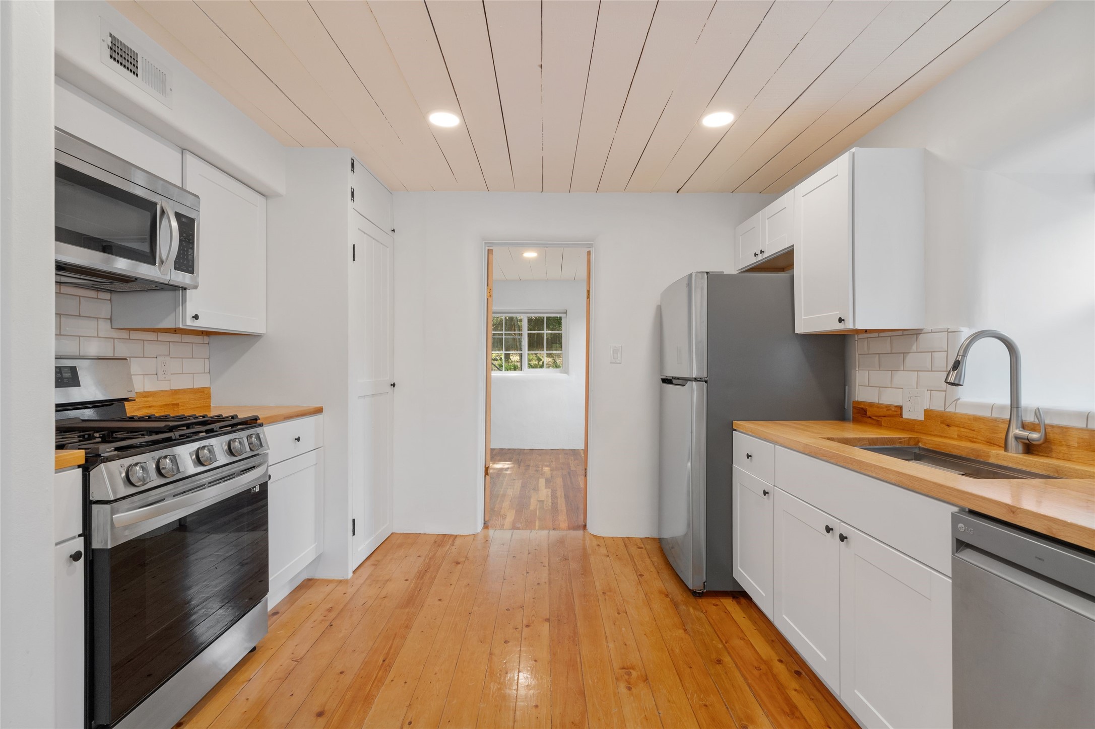 Six blocks north of The Plaza, this downtown pied--terre is located at the end of a short, dead-end road and is the perfect opportunity for someone wishing to have close proximity to downtown Santa Fe as well as offering the opportunity to remodel and/or expand. Enter through a walled and fenced courtyard to the front door where you'll be greeted by an open living room and dining area with a large fireplace. The bedroom opens to a rear patio and an expansive, fully fenced back yard with mature trees. This 1-BR, 1-B home, originally built in 1950, has been updated with modern conveniences.