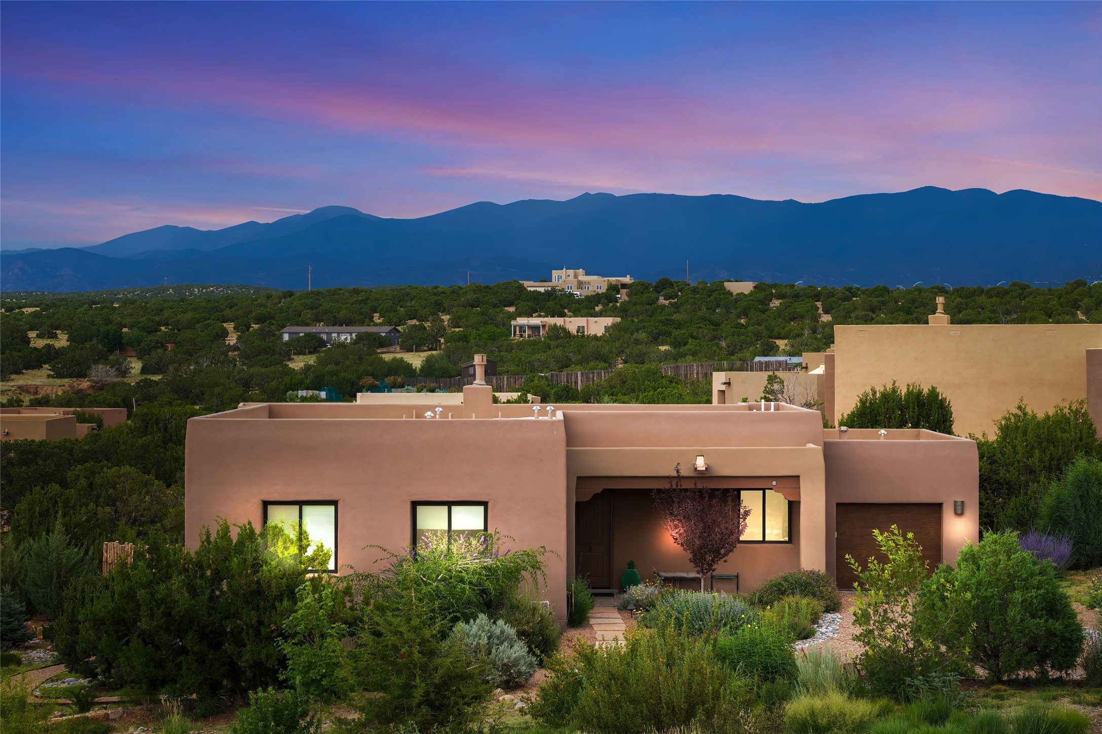 Affordable Luxury in Tessera!-- Welcome to 8 Via Harena, a beautifully positioned 3-bedroom, 2-bathroom home in the highly desirable Tessera community. Offering a thoughtfully designed living space, this residence stands out for its unmatched east-facing views of the Sangre de Cristo Mountains and its exceptional outdoor living areas-- --a combination that sets this property apart within the Tessera community.Owned and meticulously cared for by the original owners, the property showcases a lush, established native landscape that blends seamlessly with the surrounding high desert environment. Two distinct outdoor living spaces provide ideal settings for entertaining, relaxing, or simply taking in Santa Fe's dramatic skies and ever-changing mountain light.Inside, the home offers a bright and efficient floor plan with strong indoor-outdoor flow. The living room is anchored by a warm gas kiva fireplace, creating a comfortable focal point for cooler evenings and year-round enjoyment. The living, dining, and kitchen areas connect seamlessly for everyday living, while three well-proportioned bedrooms offer flexibility for guests, a home office, or full-time residence.Adding to the home's appeal, the sellers have completed a pre-listing inspection and have invested in a series of thoughtful upgrades and improvements since their purchase, all contributing to a well-maintained and move-in-ready offering.Tessera is known for its sweeping mountain views and generous open space, all while offering convenient proximity to the Santa Fe Plaza, the Santa Fe County Regional Airport, and extensive trail systems. With its rare combination of breathtaking views, established landscaping, multiple outdoor living areas, and proactive ownership, 8 Via Harena presents a compelling opportunity in one of Santa Fe's most desirable communities.