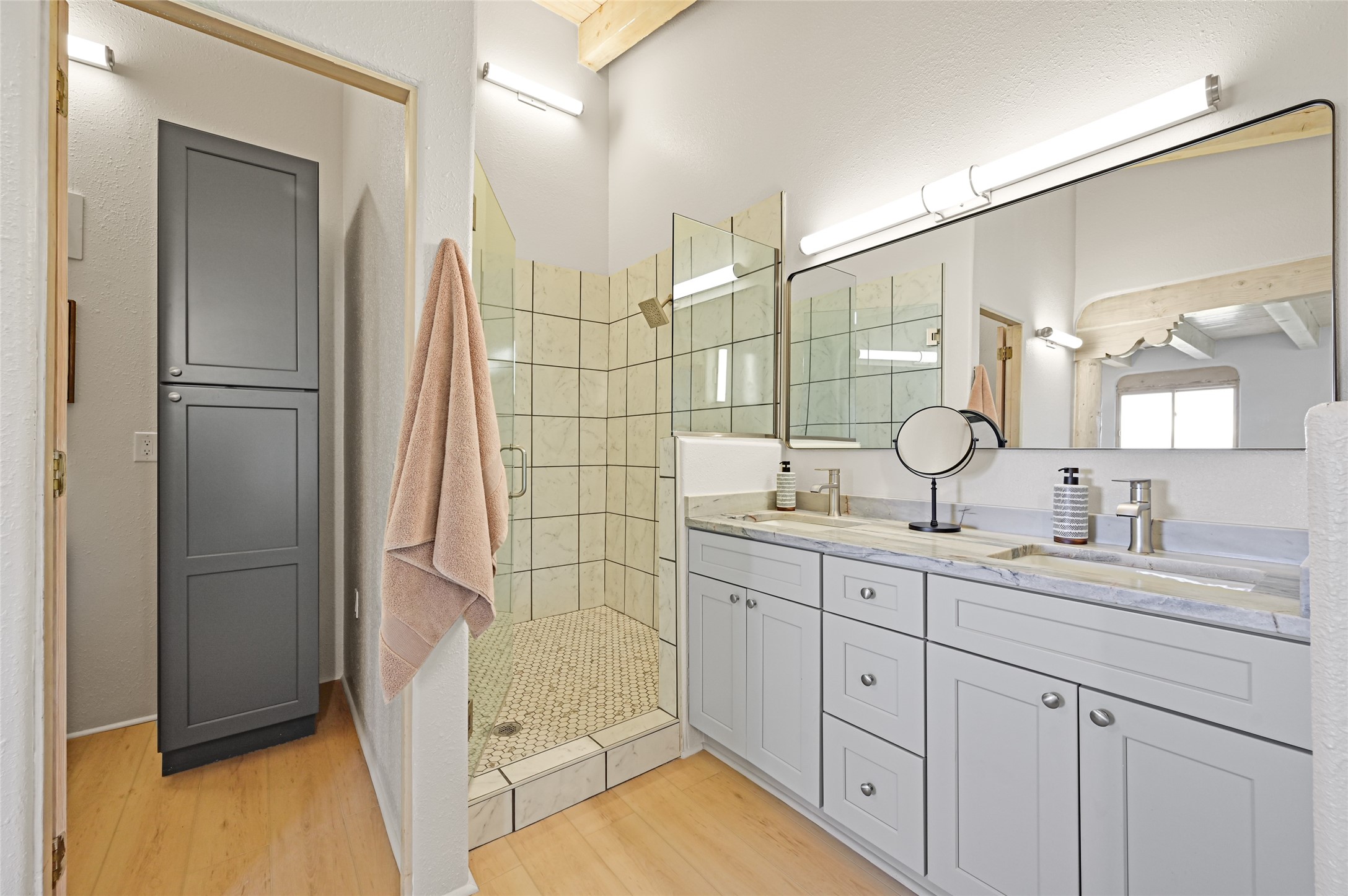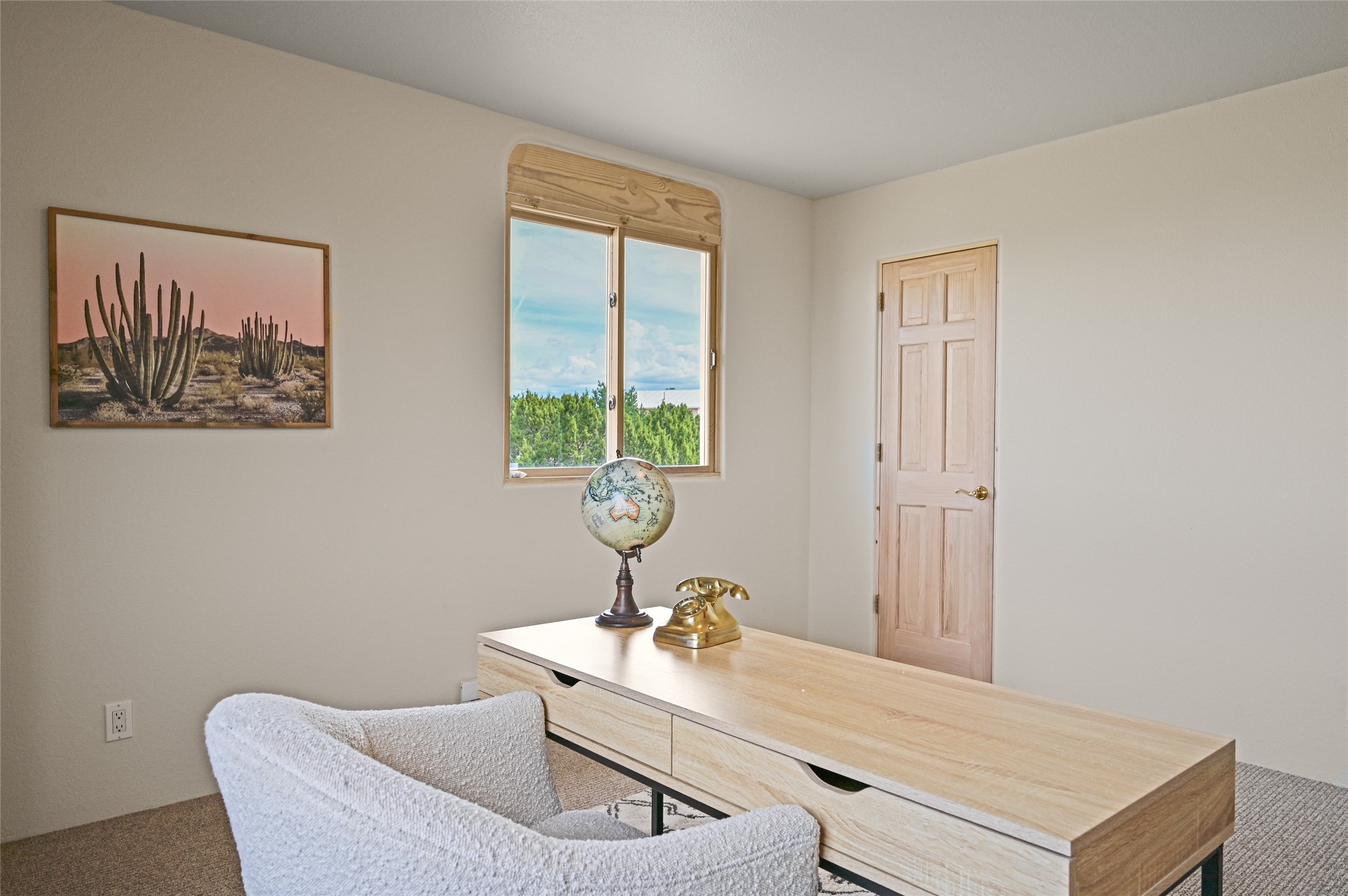 Experience the perfect blend of serenity and sophistication at this 3,220 sq. ft. retreat, set on 1.49 gated acres. Surrounded by privacy, the home invites you in with its warm Santa Fe character enhanced by modern updates. The kitchen shines with sleek quartz countertops, while upgraded bathrooms and a refreshed laundry room add comfort and style. New carpet and thoughtful finishes create a polished, move-in-ready atmosphere. Designed for relaxation, entertaining, and soaking in the beauty of the desert sky. This property is more than a home--it's a haven where timeless charm meets modern luxury