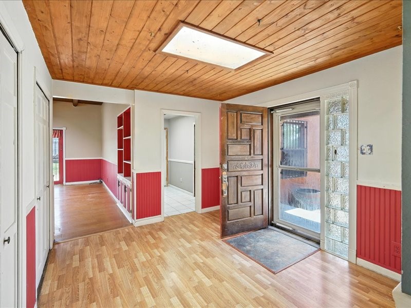 An incredible opportunity awaits on this one-acre horse friendly property. Nestled in town, in a quiet Santa Fe neighborhood, this home offers a solid foundation and generous square footage but is in need of a little love. The lot features mature trees, flat open space, and a pond that adds peace and tranquility. With room to expand, garden, or build an additional home, this property is full of promise.