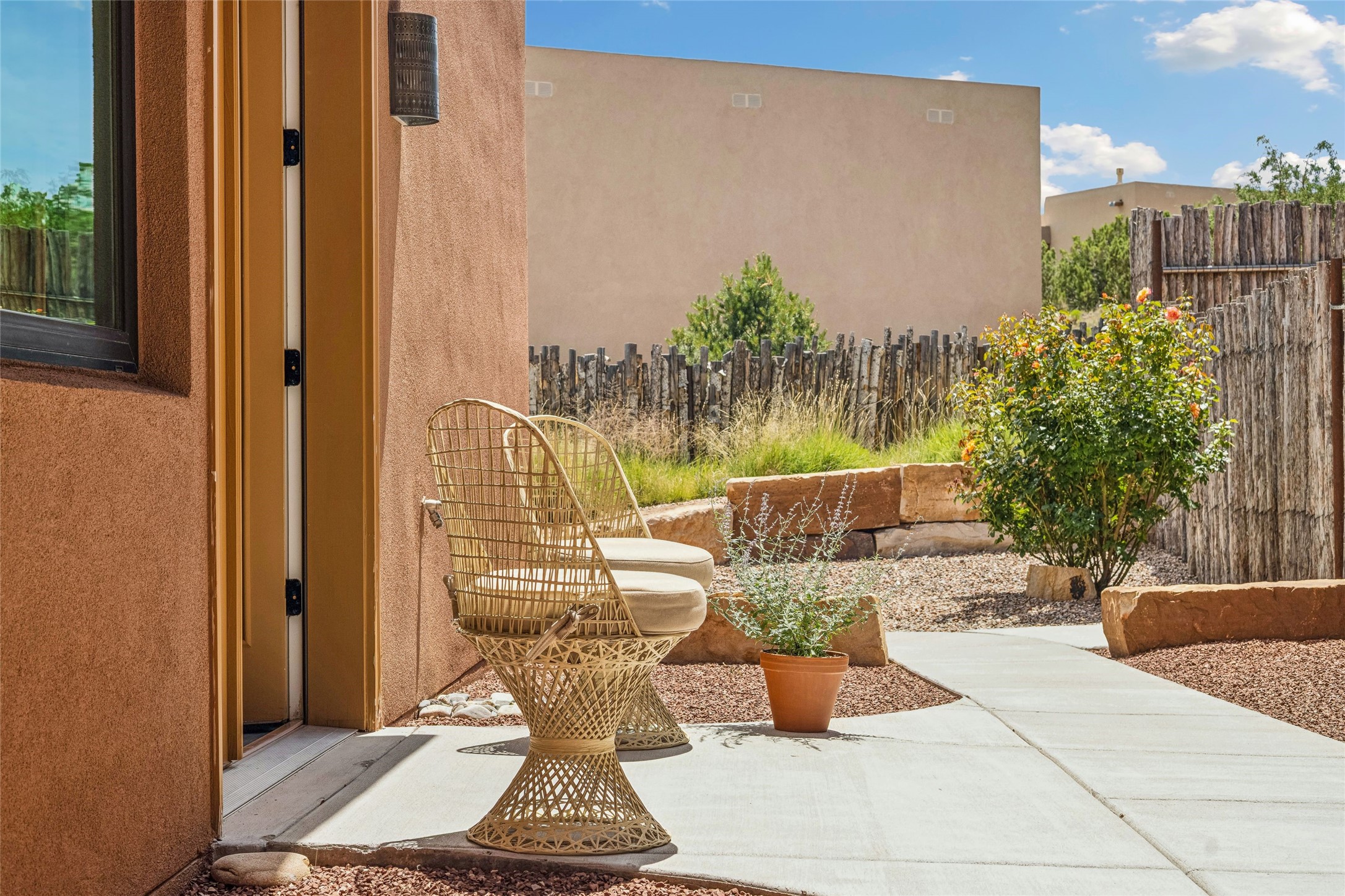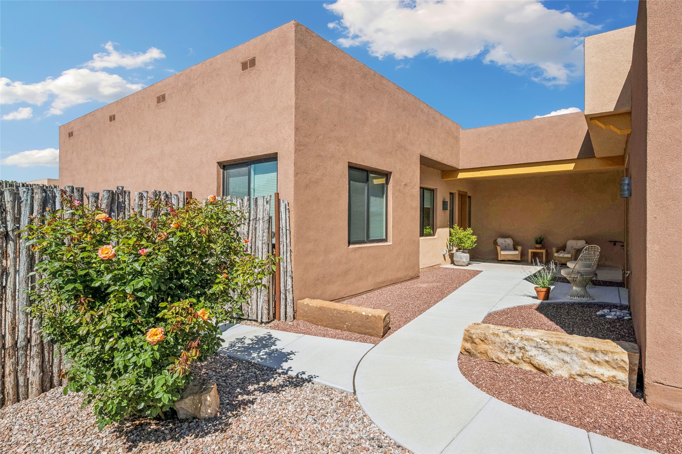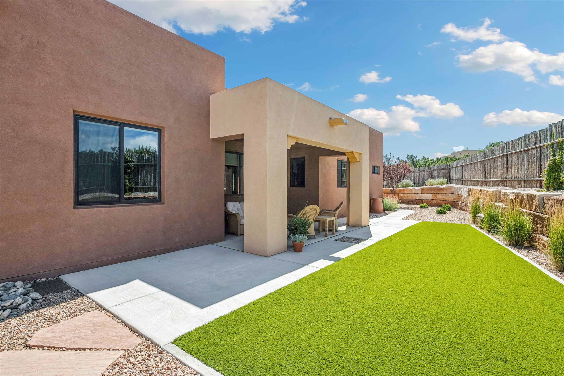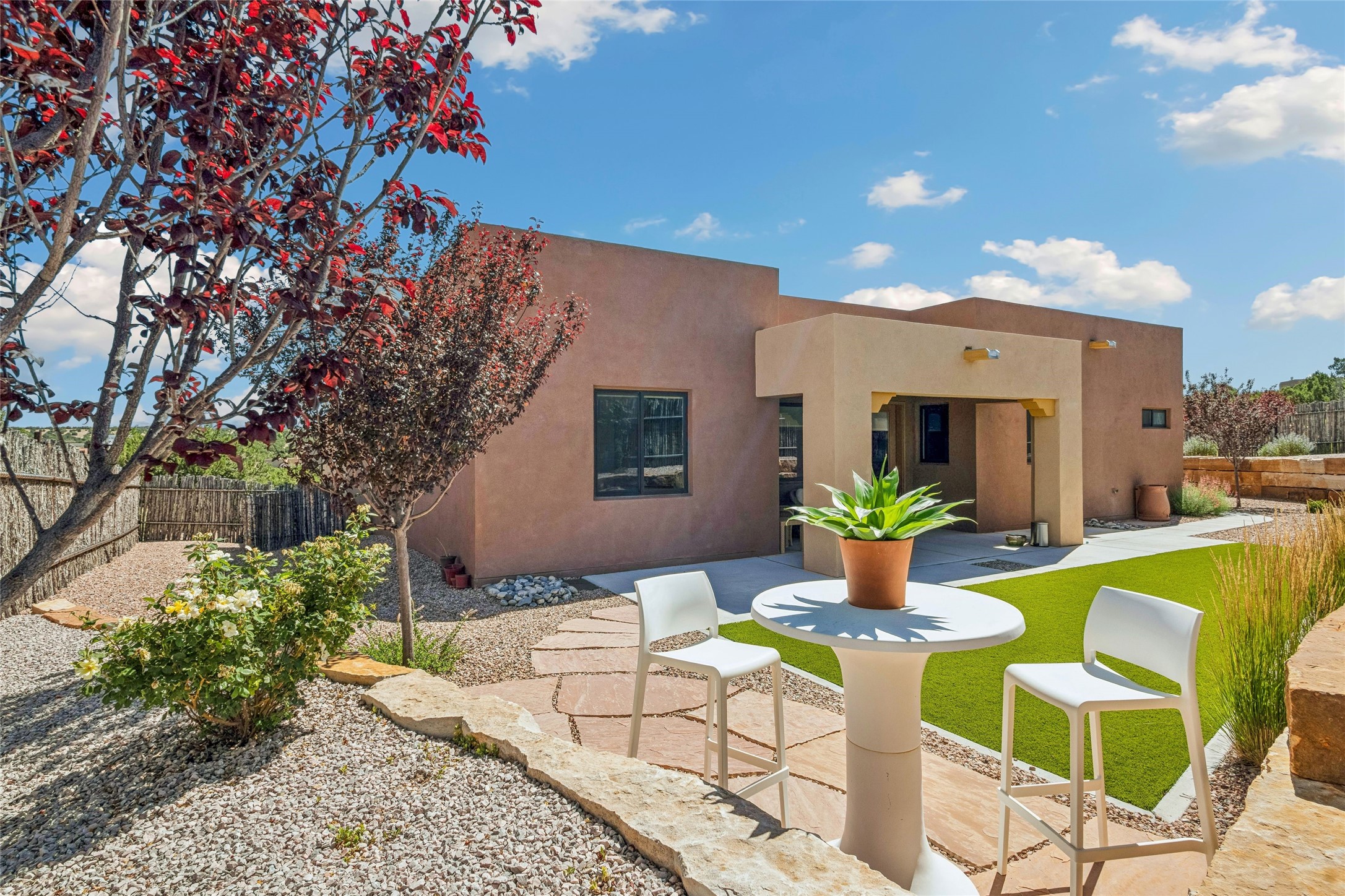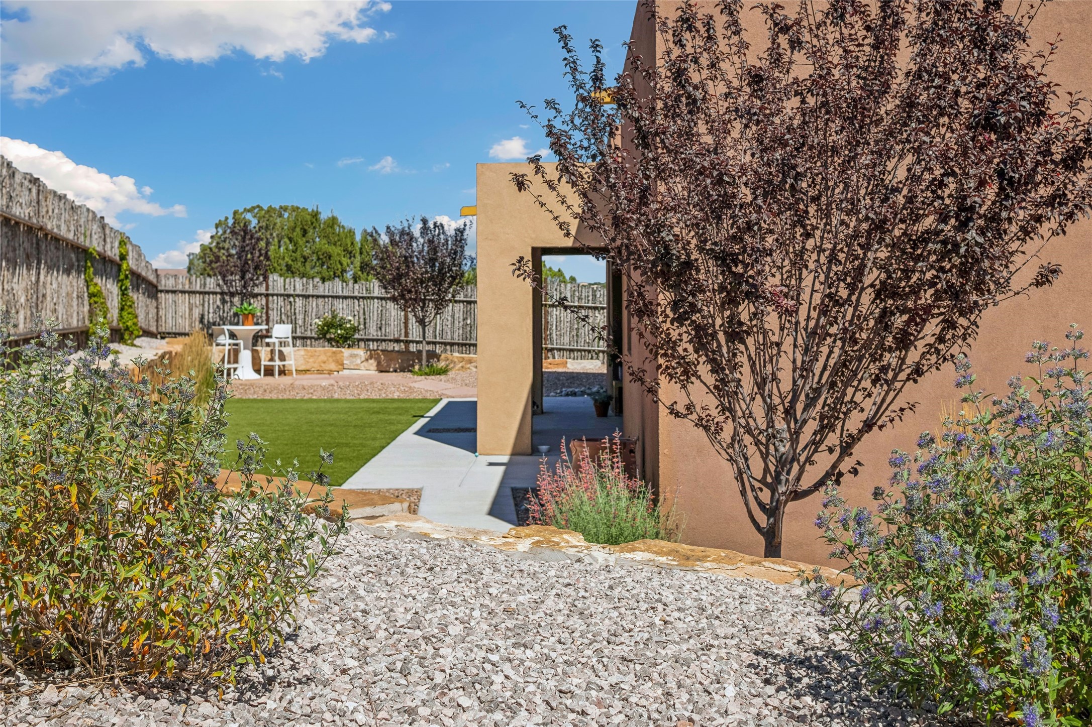Contemporary Pueblo-Style Home with Casita, Viking Kitchen, and Mountain Views:Welcome to 9 Via Harena, a beautifully sited Contemporary Pueblo-style residence in the highly sought-after community of Tessera. Built in 2020 and originally the model home for the neighborhood, this thoughtfully designed property features a 3-bedroom, 2-bathroom main house and a separate 1-bedroom, 1-bathroom casita--ideal for guests, multi-generational living, or a private studio.Enjoy breathtaking Sangre de Cristo views from both the front portal and the casita, offering the perfect backdrop for morning coffee or evening gatherings. Inside, the open-concept living area is filled with natural light and clean, modern finishes. The kitchen is a standout, outfitted with premium Viking appliances and designed for both daily living and entertaining, with seamless flow to the dining and living areas.The spacious primary suite includes two walk-in closets and a generous en-suite bath. Two guest bedrooms share a nearby bath. The detached casita offers its own entrance, a bright and comfortable living space, and a bath--perfect for hosting guests or creating a private workspace.Since purchasing the home, the current owners have transformed the backyard into a beautifully landscaped, low-maintenance retreat with stone retaining walls and coyote fencing that blend naturally into the high desert surroundings. Additional features include a two-car garage, central HVAC, and easy access to walking trails and open space.Tessera is prized for its sweeping mountain views, access to an extensive trail system, and close proximity to Highway 599, the Santa Fe Plaza, and the Santa Fe County Regional Airport.Whether you're seeking a peaceful retreat or a refined space to entertain, 9 Via Harena offers exceptional comfort, style, and views in one of Santa Fe's most desirable neighborhoods.