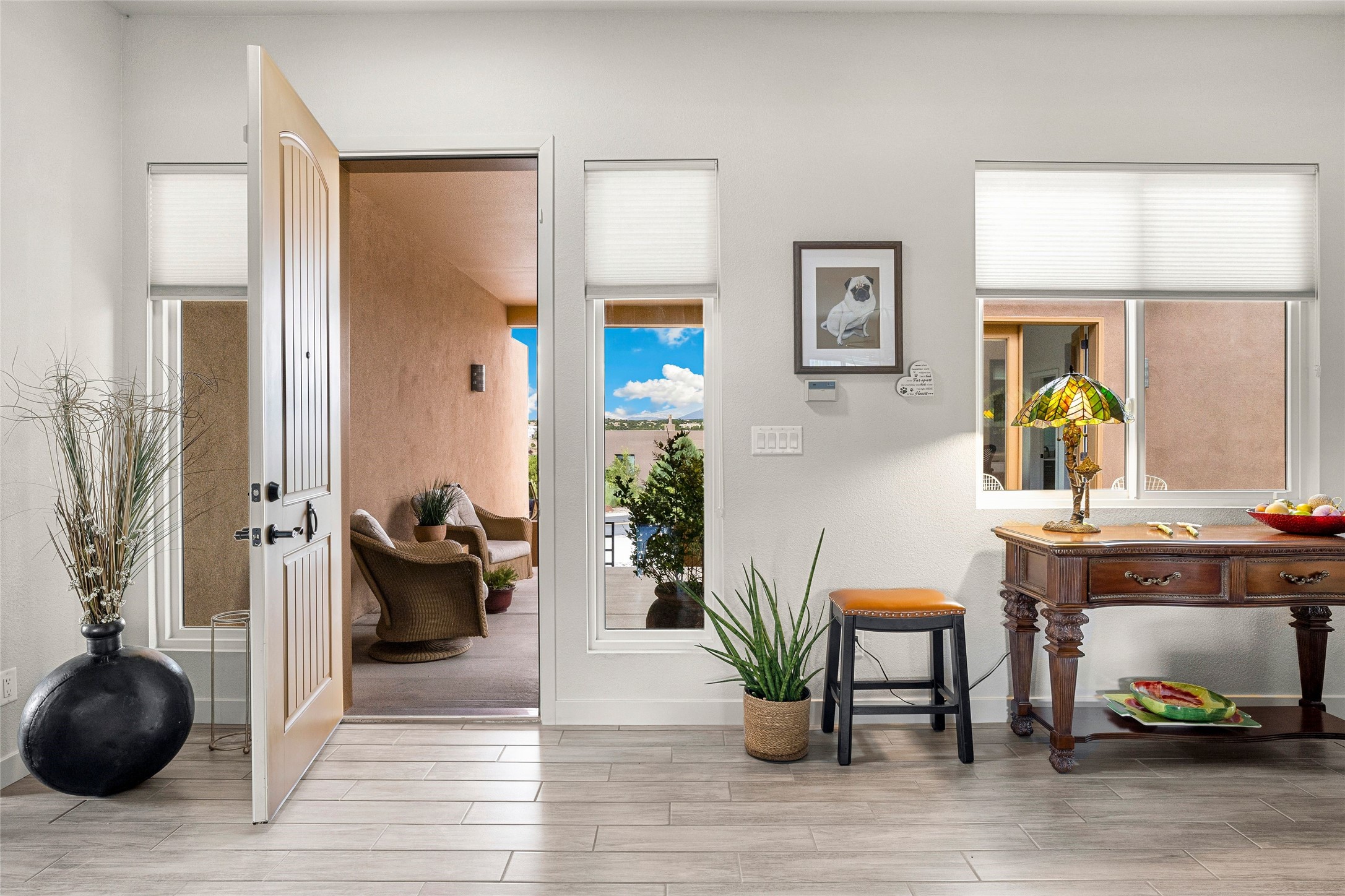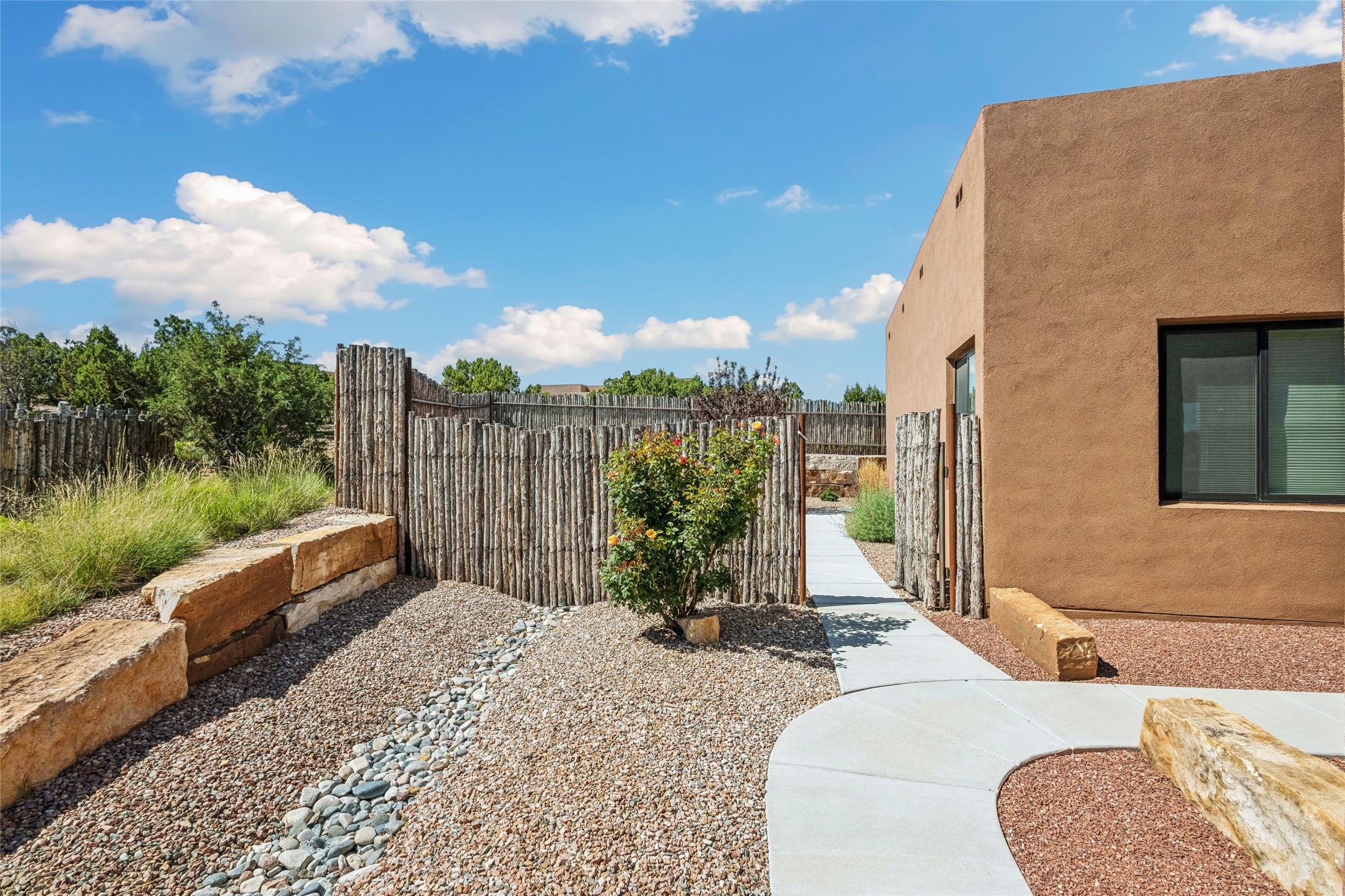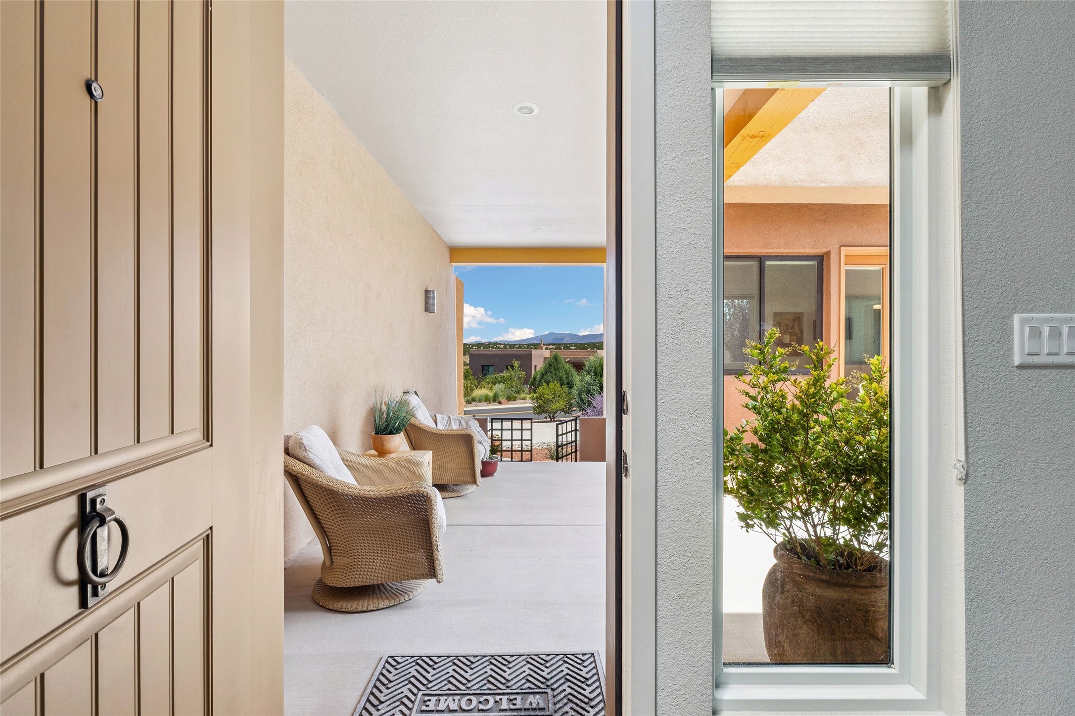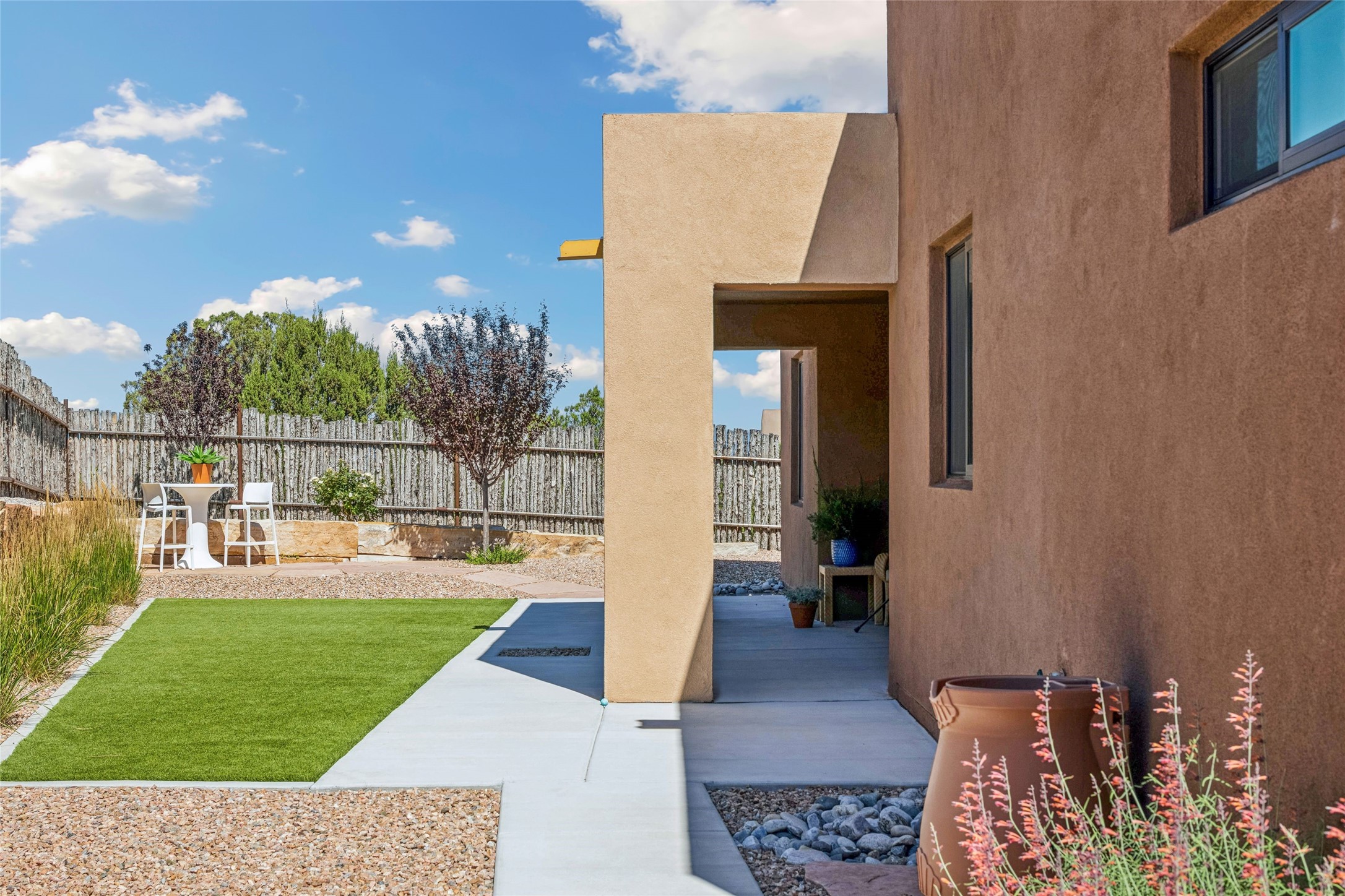 Contemporary Pueblo-Style Home with Casita, Viking Kitchen, and Mountain Views:Welcome to 9 Via Harena, a beautifully sited Contemporary Pueblo-style residence in the highly sought-after community of Tessera. Built in 2020 and originally the model home for the neighborhood, this thoughtfully designed property features a 3-bedroom, 2-bathroom main house and a separate 1-bedroom, 1-bathroom casita--ideal for guests, multi-generational living, or a private studio.Enjoy breathtaking Sangre de Cristo views from both the front portal and the casita, offering the perfect backdrop for morning coffee or evening gatherings. Inside, the open-concept living area is filled with natural light and clean, modern finishes. The kitchen is a standout, outfitted with premium Viking appliances and designed for both daily living and entertaining, with seamless flow to the dining and living areas.The spacious primary suite includes two walk-in closets and a generous en-suite bath. Two guest bedrooms share a nearby bath. The detached casita offers its own entrance, a bright and comfortable living space, and a bath--perfect for hosting guests or creating a private workspace.Since purchasing the home, the current owners have transformed the backyard into a beautifully landscaped, low-maintenance retreat with stone retaining walls and coyote fencing that blend naturally into the high desert surroundings. Additional features include a two-car garage, central HVAC, and easy access to walking trails and open space.Tessera is prized for its sweeping mountain views, access to an extensive trail system, and close proximity to Highway 599, the Santa Fe Plaza, and the Santa Fe County Regional Airport.Whether you're seeking a peaceful retreat or a refined space to entertain, 9 Via Harena offers exceptional comfort, style, and views in one of Santa Fe's most desirable neighborhoods.