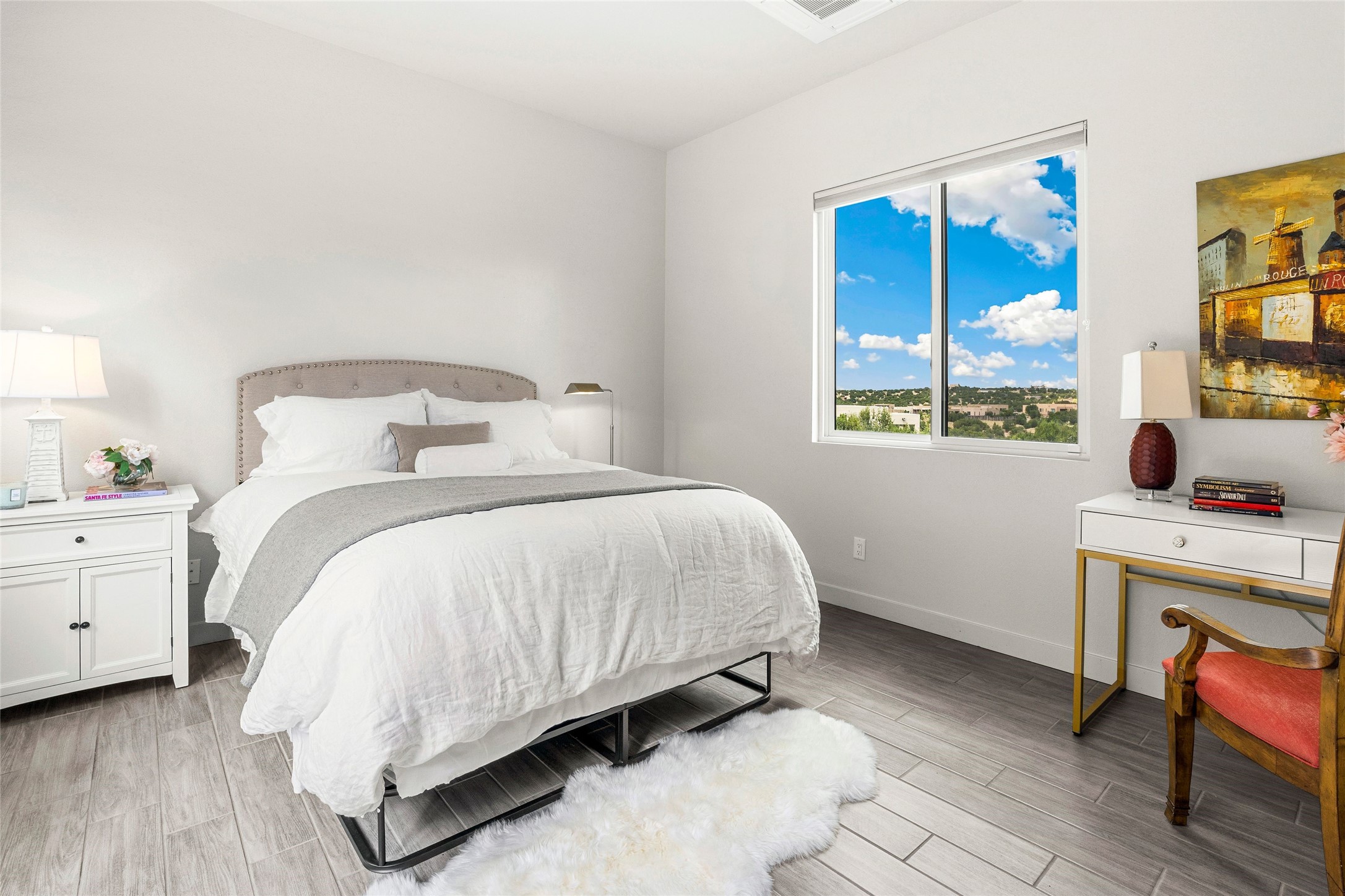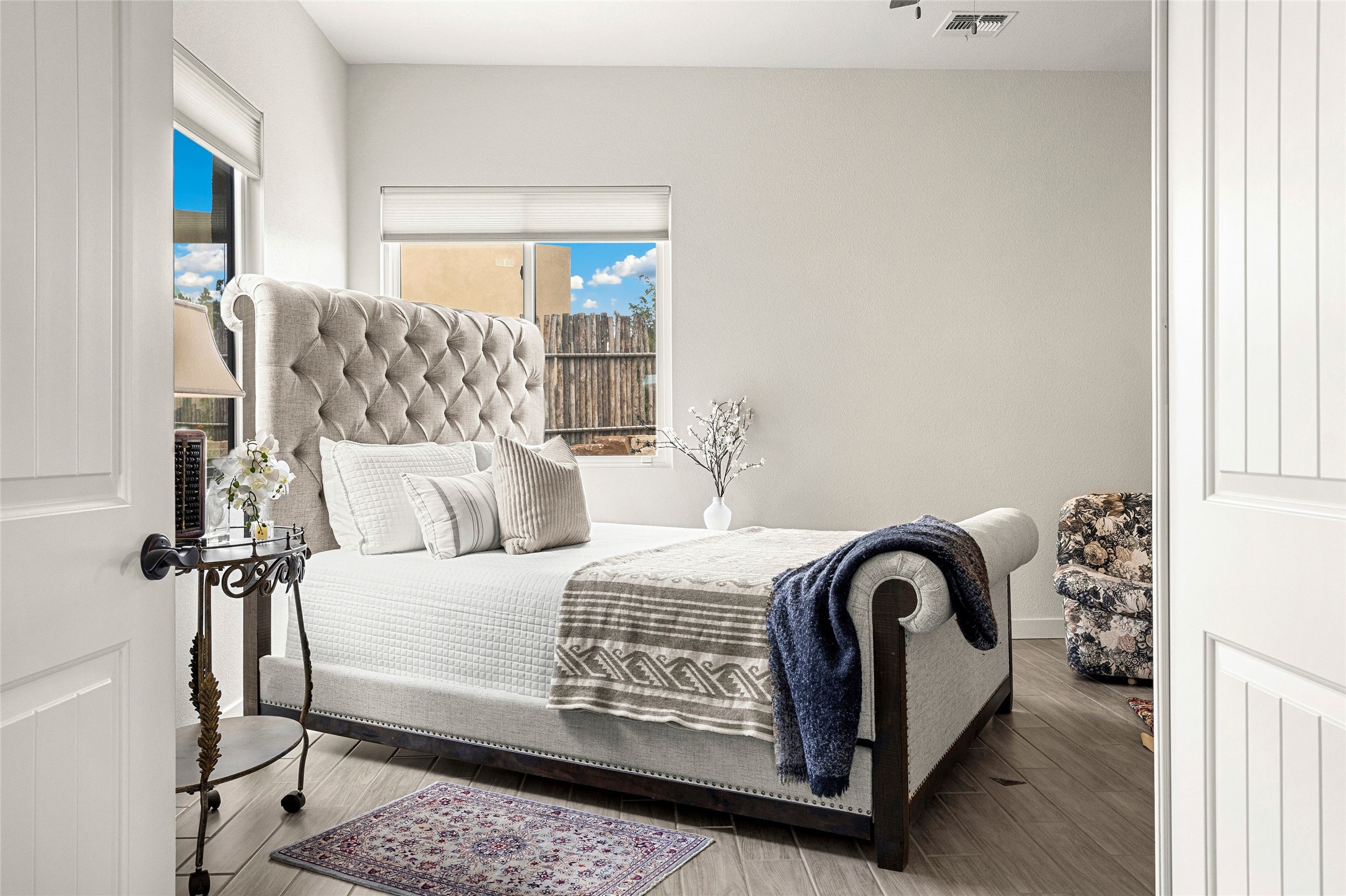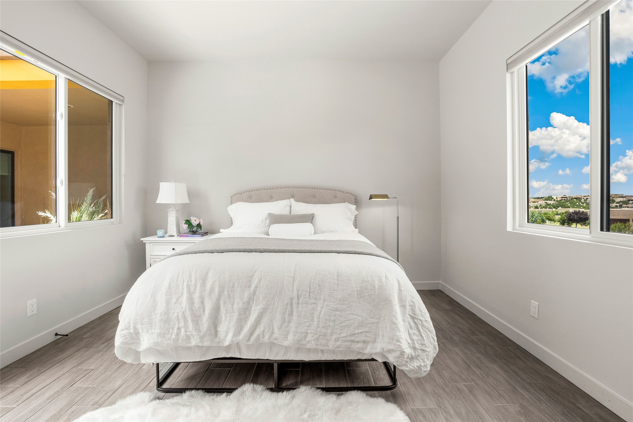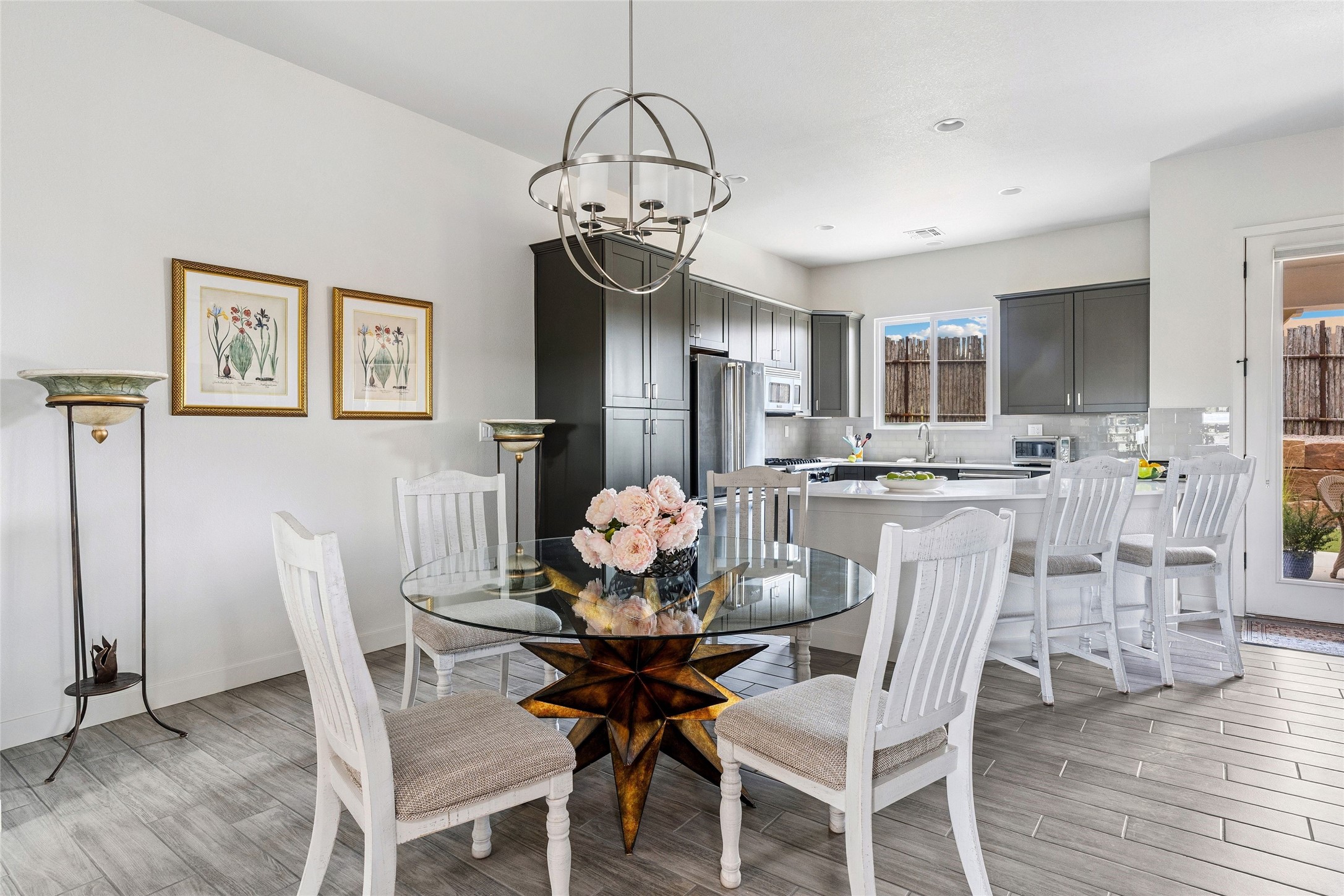 Contemporary Pueblo-Style Home with Casita, Viking Kitchen, and Mountain Views:Welcome to 9 Via Harena, a beautifully sited Contemporary Pueblo-style residence in the highly sought-after community of Tessera. Built in 2020 and originally the model home for the neighborhood, this thoughtfully designed property features a 3-bedroom, 2-bathroom main house and a separate 1-bedroom, 1-bathroom casita--ideal for guests, multi-generational living, or a private studio.Enjoy breathtaking Sangre de Cristo views from both the front portal and the casita, offering the perfect backdrop for morning coffee or evening gatherings. Inside, the open-concept living area is filled with natural light and clean, modern finishes. The kitchen is a standout, outfitted with premium Viking appliances and designed for both daily living and entertaining, with seamless flow to the dining and living areas.The spacious primary suite includes two walk-in closets and a generous en-suite bath. Two guest bedrooms share a nearby bath. The detached casita offers its own entrance, a bright and comfortable living space, and a bath--perfect for hosting guests or creating a private workspace.Since purchasing the home, the current owners have transformed the backyard into a beautifully landscaped, low-maintenance retreat with stone retaining walls and coyote fencing that blend naturally into the high desert surroundings. Additional features include a two-car garage, central HVAC, and easy access to walking trails and open space.Tessera is prized for its sweeping mountain views, access to an extensive trail system, and close proximity to Highway 599, the Santa Fe Plaza, and the Santa Fe County Regional Airport.Whether you're seeking a peaceful retreat or a refined space to entertain, 9 Via Harena offers exceptional comfort, style, and views in one of Santa Fe's most desirable neighborhoods.