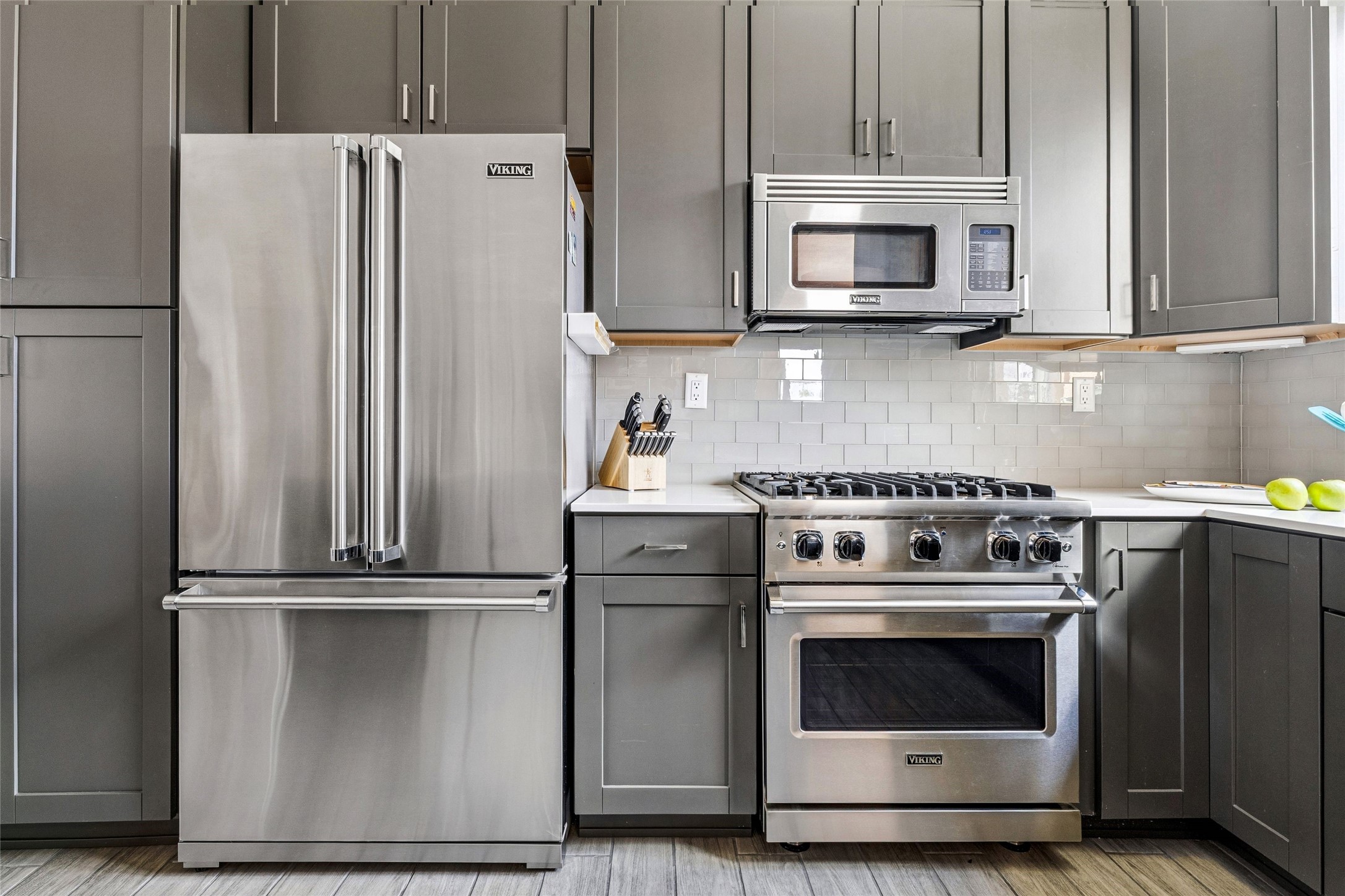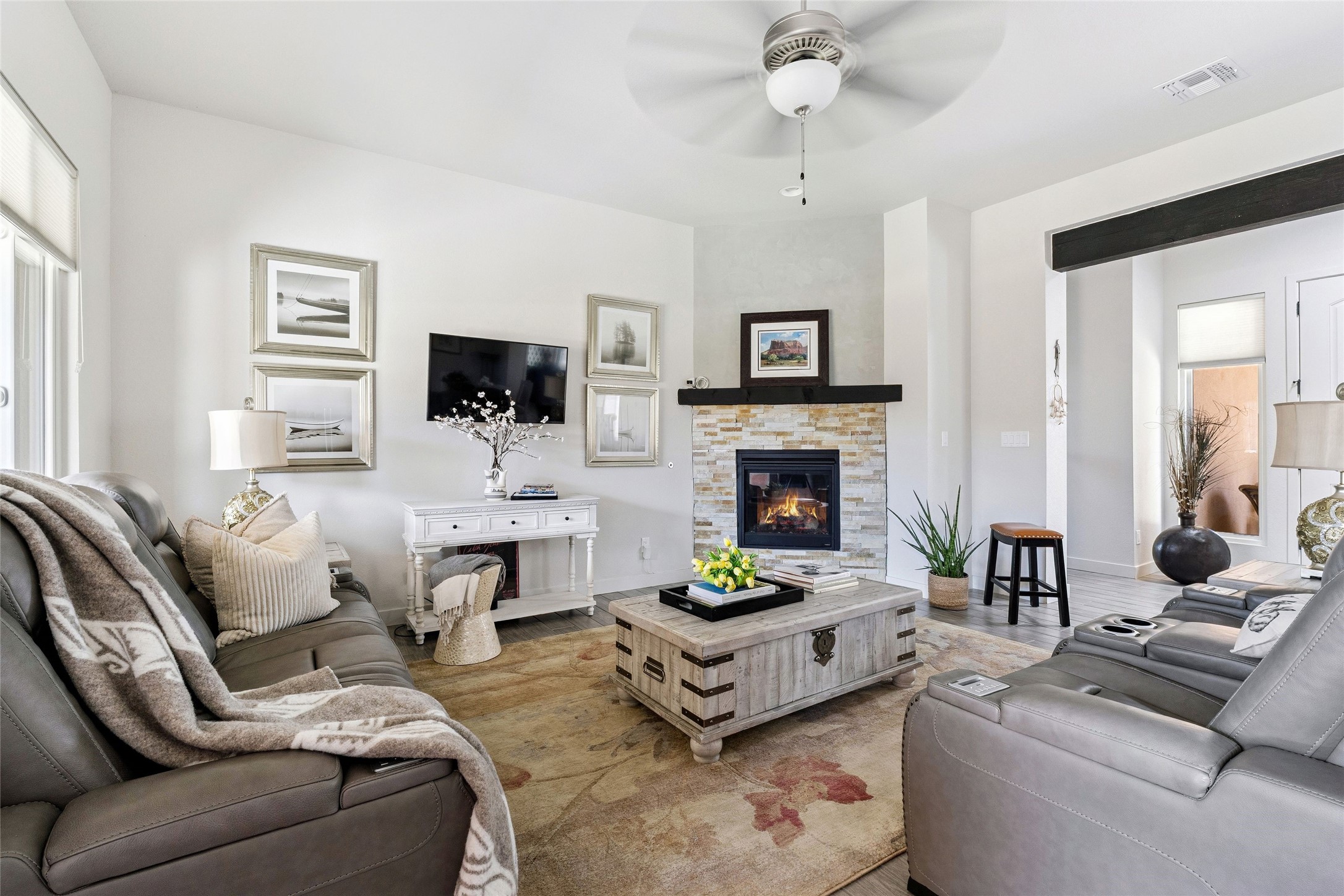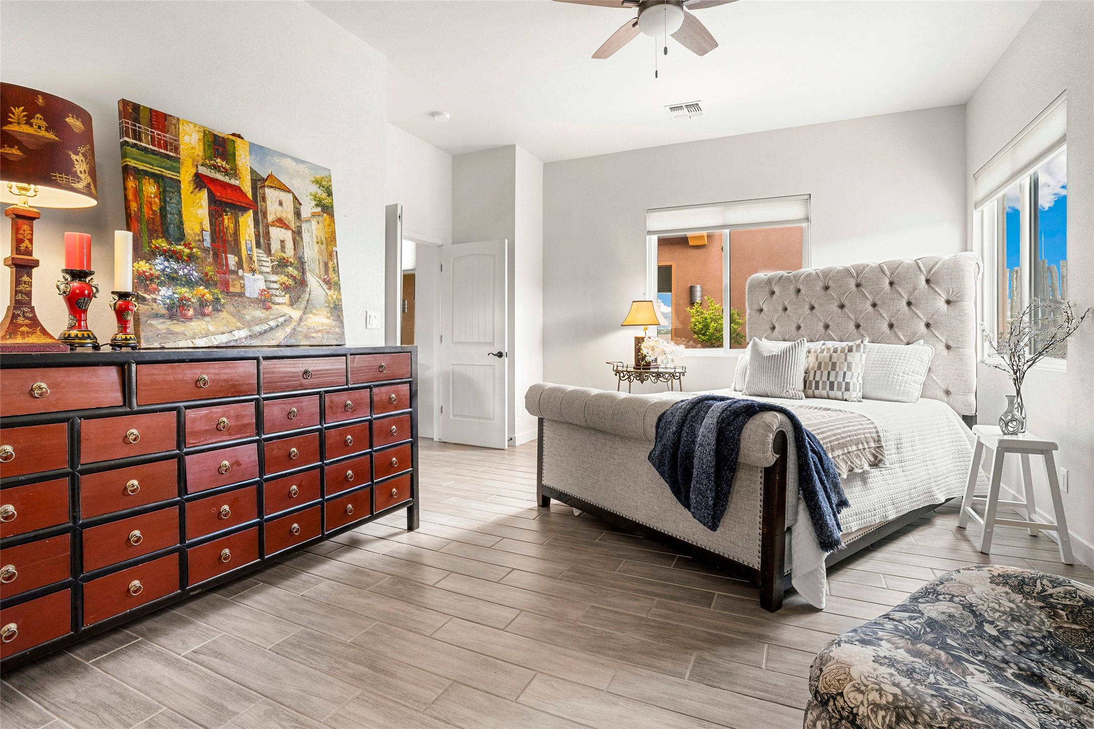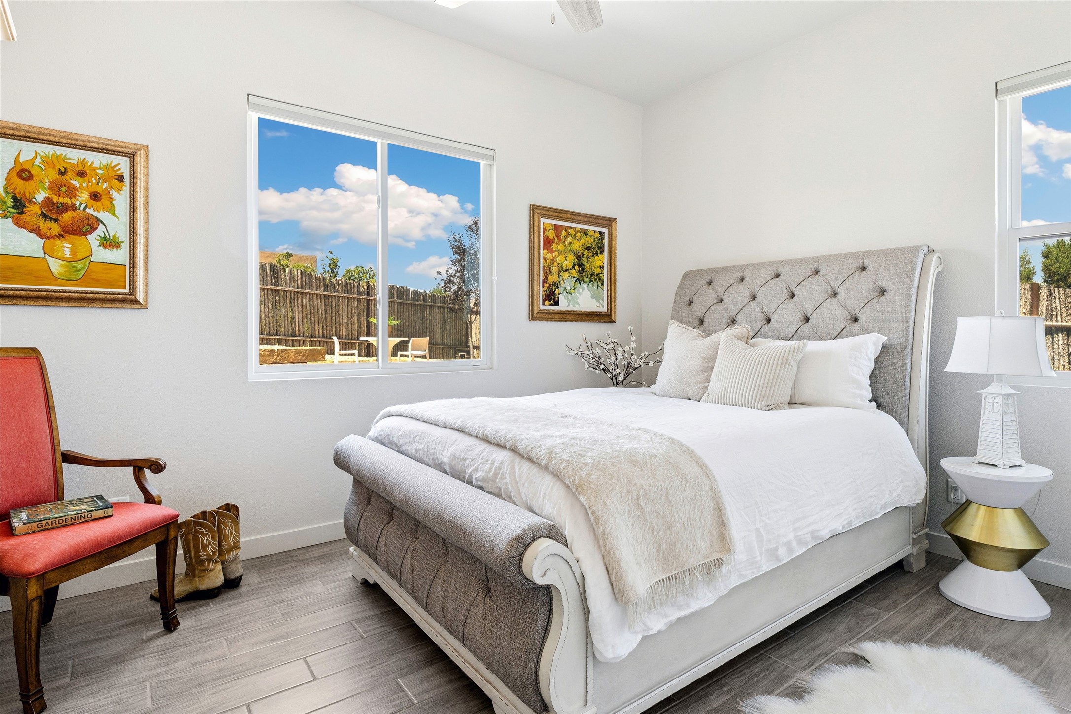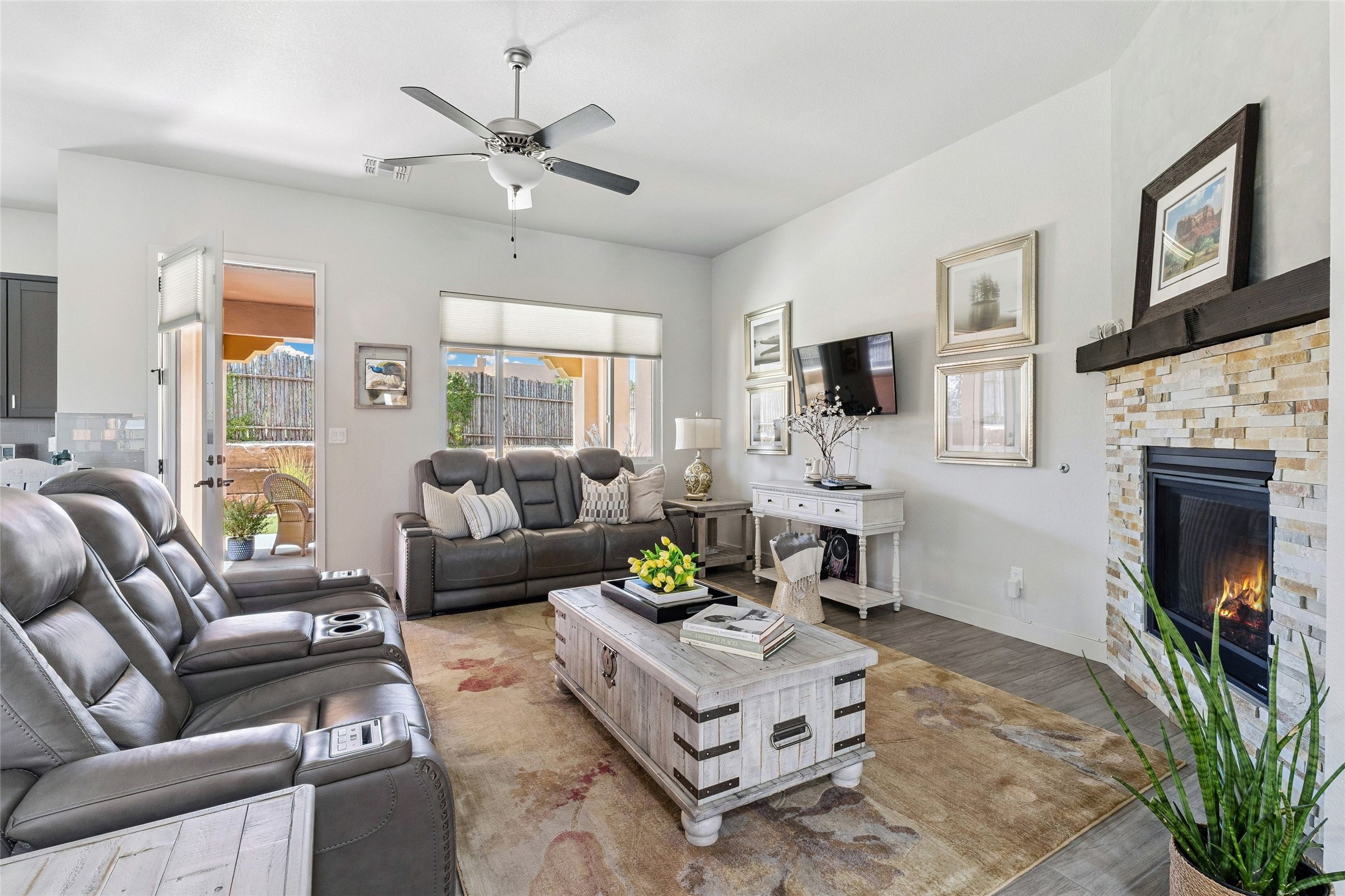 Contemporary Pueblo-Style Home with Casita, Viking Kitchen, and Mountain Views:Welcome to 9 Via Harena, a beautifully sited Contemporary Pueblo-style residence in the highly sought-after community of Tessera. Built in 2020 and originally the model home for the neighborhood, this thoughtfully designed property features a 3-bedroom, 2-bathroom main house and a separate 1-bedroom, 1-bathroom casita--ideal for guests, multi-generational living, or a private studio.Enjoy breathtaking Sangre de Cristo views from both the front portal and the casita, offering the perfect backdrop for morning coffee or evening gatherings. Inside, the open-concept living area is filled with natural light and clean, modern finishes. The kitchen is a standout, outfitted with premium Viking appliances and designed for both daily living and entertaining, with seamless flow to the dining and living areas.The spacious primary suite includes two walk-in closets and a generous en-suite bath. Two guest bedrooms share a nearby bath. The detached casita offers its own entrance, a bright and comfortable living space, and a bath--perfect for hosting guests or creating a private workspace.Since purchasing the home, the current owners have transformed the backyard into a beautifully landscaped, low-maintenance retreat with stone retaining walls and coyote fencing that blend naturally into the high desert surroundings. Additional features include a two-car garage, central HVAC, and easy access to walking trails and open space.Tessera is prized for its sweeping mountain views, access to an extensive trail system, and close proximity to Highway 599, the Santa Fe Plaza, and the Santa Fe County Regional Airport.Whether you're seeking a peaceful retreat or a refined space to entertain, 9 Via Harena offers exceptional comfort, style, and views in one of Santa Fe's most desirable neighborhoods.