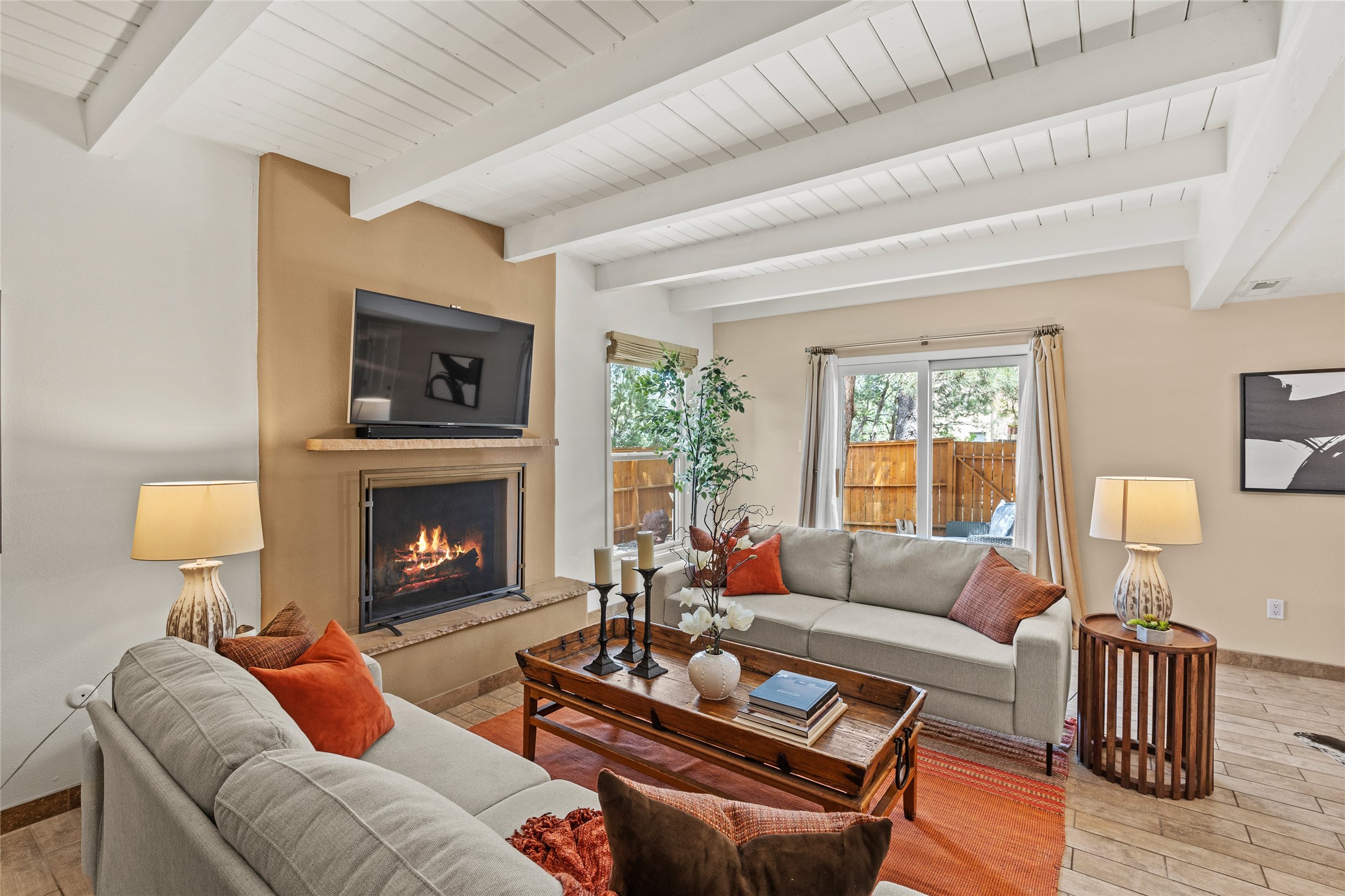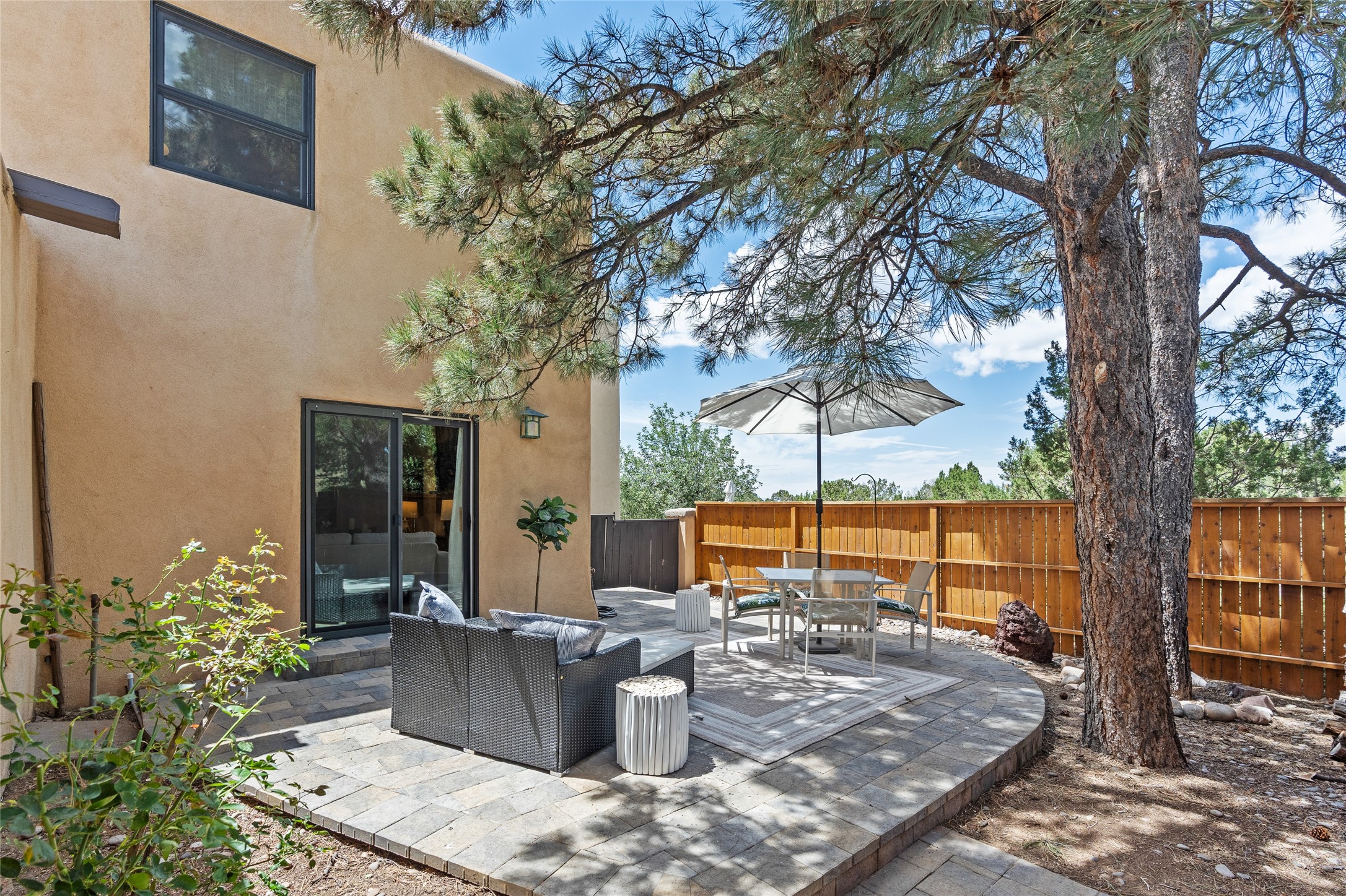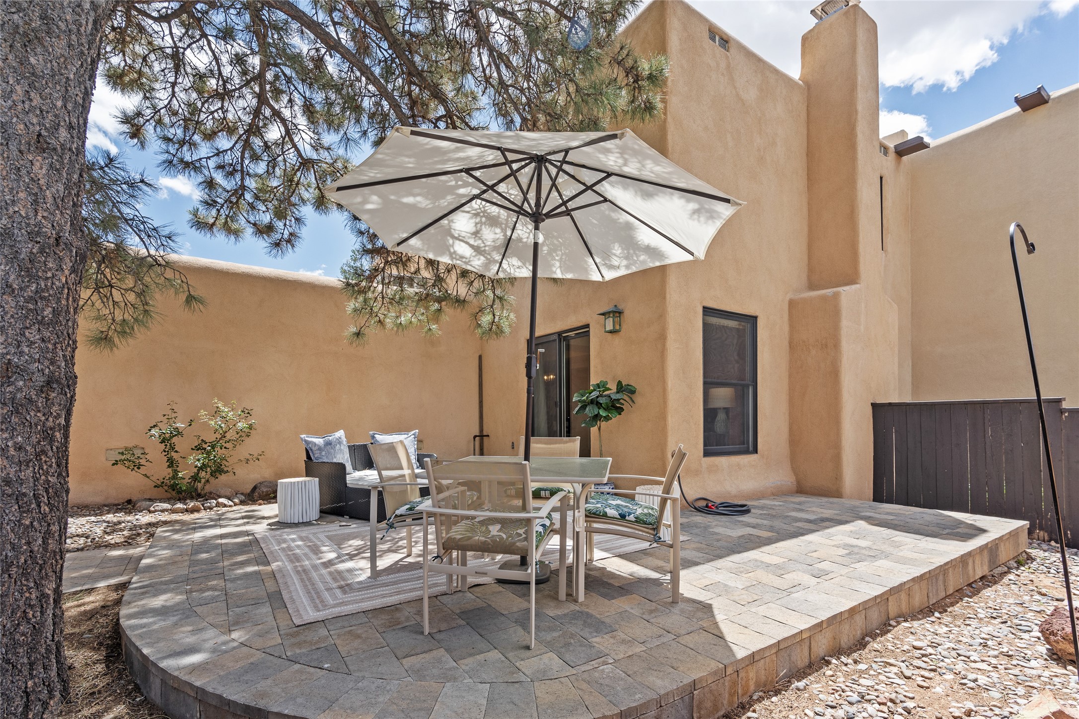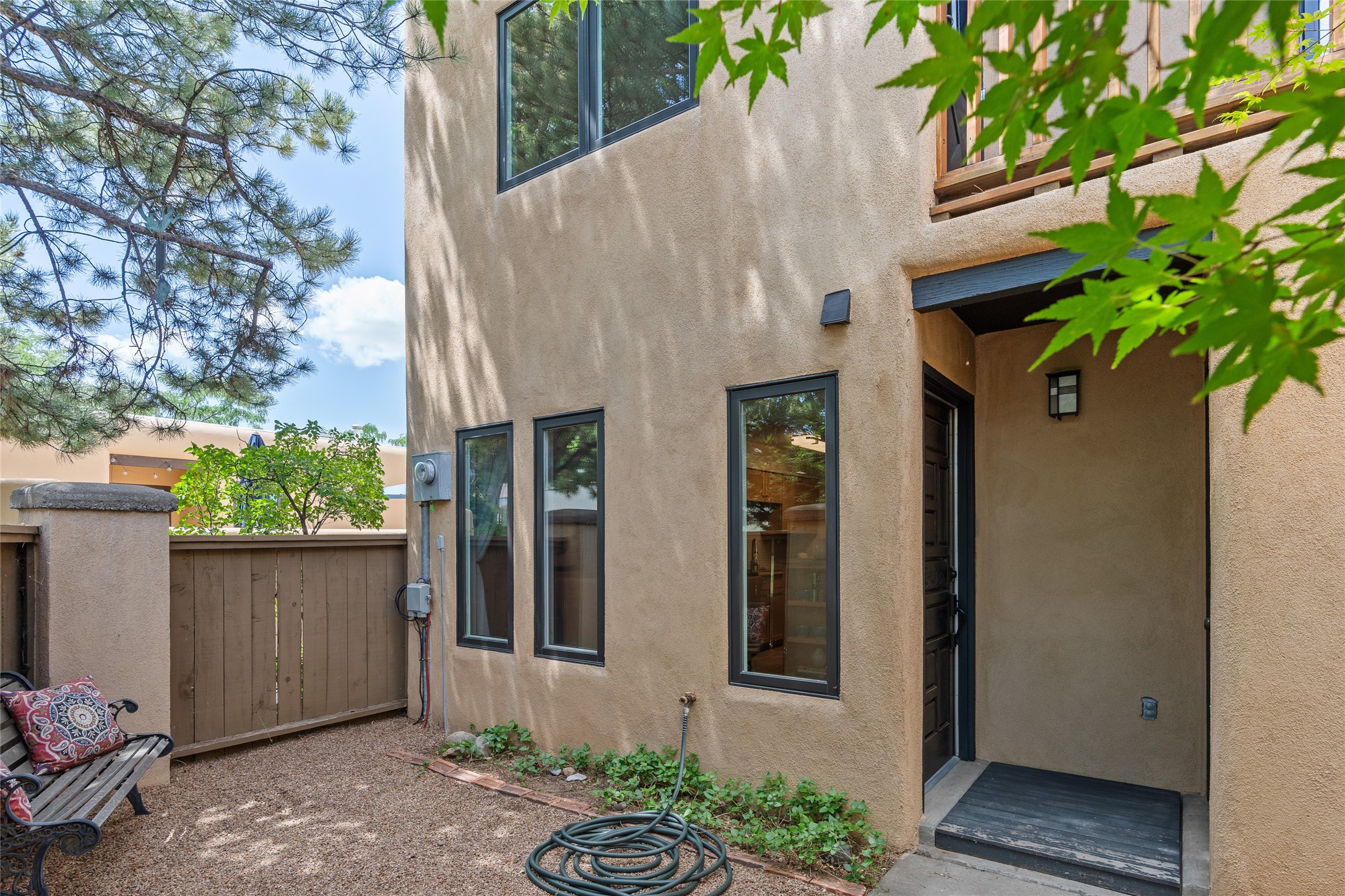 Thisbeautifully updated 3-bedroom, 2.5-bath townhome is located just a few miles south of the historic Santa Fe Plaza, and close to schools, shopping, and restaurants. Nestled in the heart of the desirable Park Plazas community, this home combines comfort, style, and exceptional amenities including approx. $75,000 in recent improvements.Inside, you'll find a light-filled living room with charming beamed ceilings, a cozy fireplace, and a sliding glass door that opens to a lovely stone patio -- perfect for morning coffee or evening gatherings. The main level features elegant tile flooring throughout, while the staircase and upstairs hallway and bedrooms are finished with plush wool carpeting.All three bedrooms are located upstairs, including a spacious primary suite with an en-suite bath and a private deck for enjoying Santa Fe's beautiful skies. The home has been thoughtfully upgraded with a newer roof and skylights (installed approx. October 2020), a central HVAC system with air conditioning (added in February 2022), a water filtration system, and more.Park Plazas is known for its serene, tree-filled environment and extensive amenities, including over eight miles of paved walking paths, tennis and pickleball courts, a parcourse fitness circuit, off-leash dog park, RV parking, community garden, children's playgrounds, and even a ptanque court.Whether you're seeking a full-time residence or a Santa Fe getaway, 3132 Plaza Blanca offers comfort, convenience, and connection to the best of Santa Fe living.