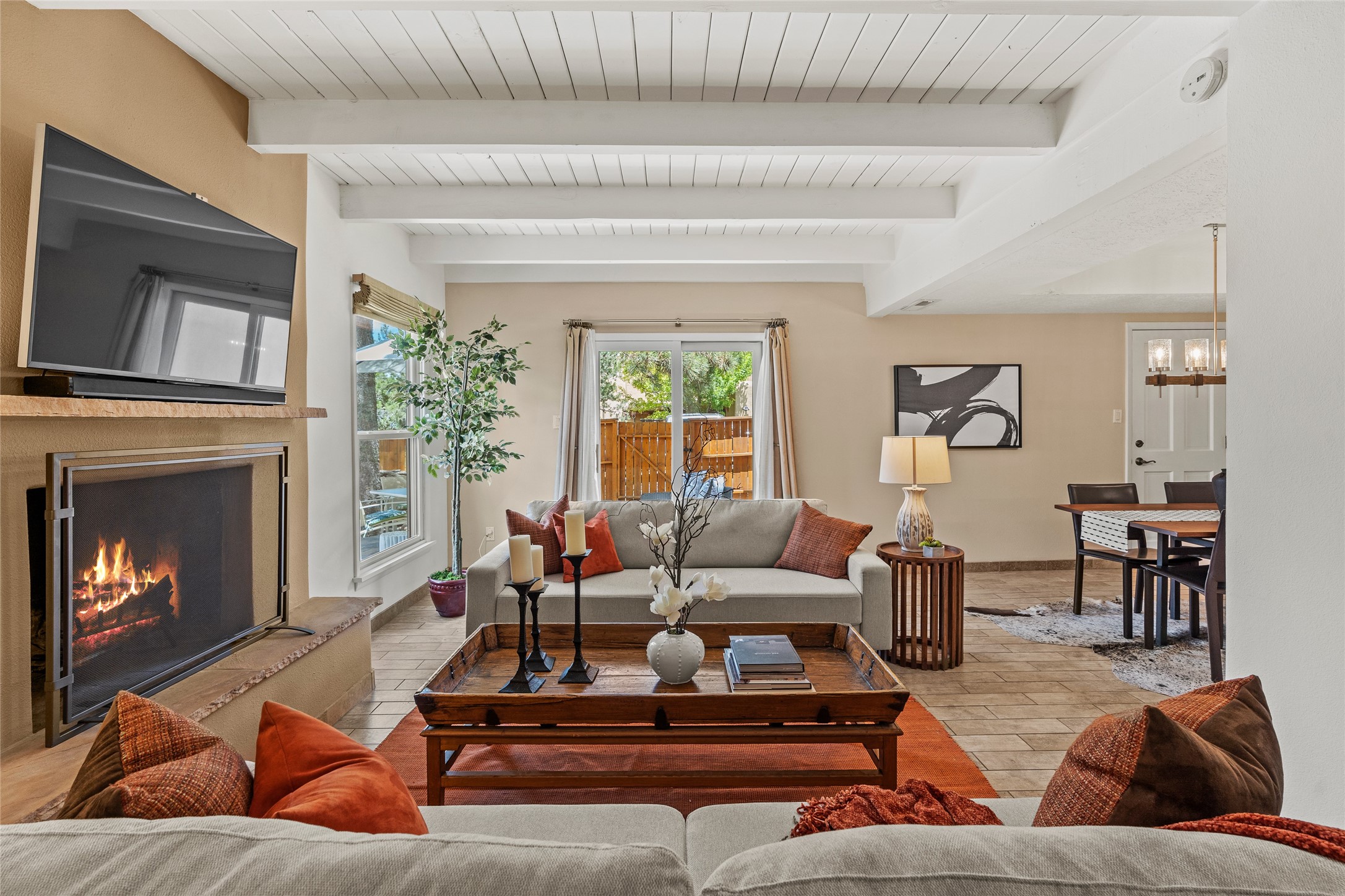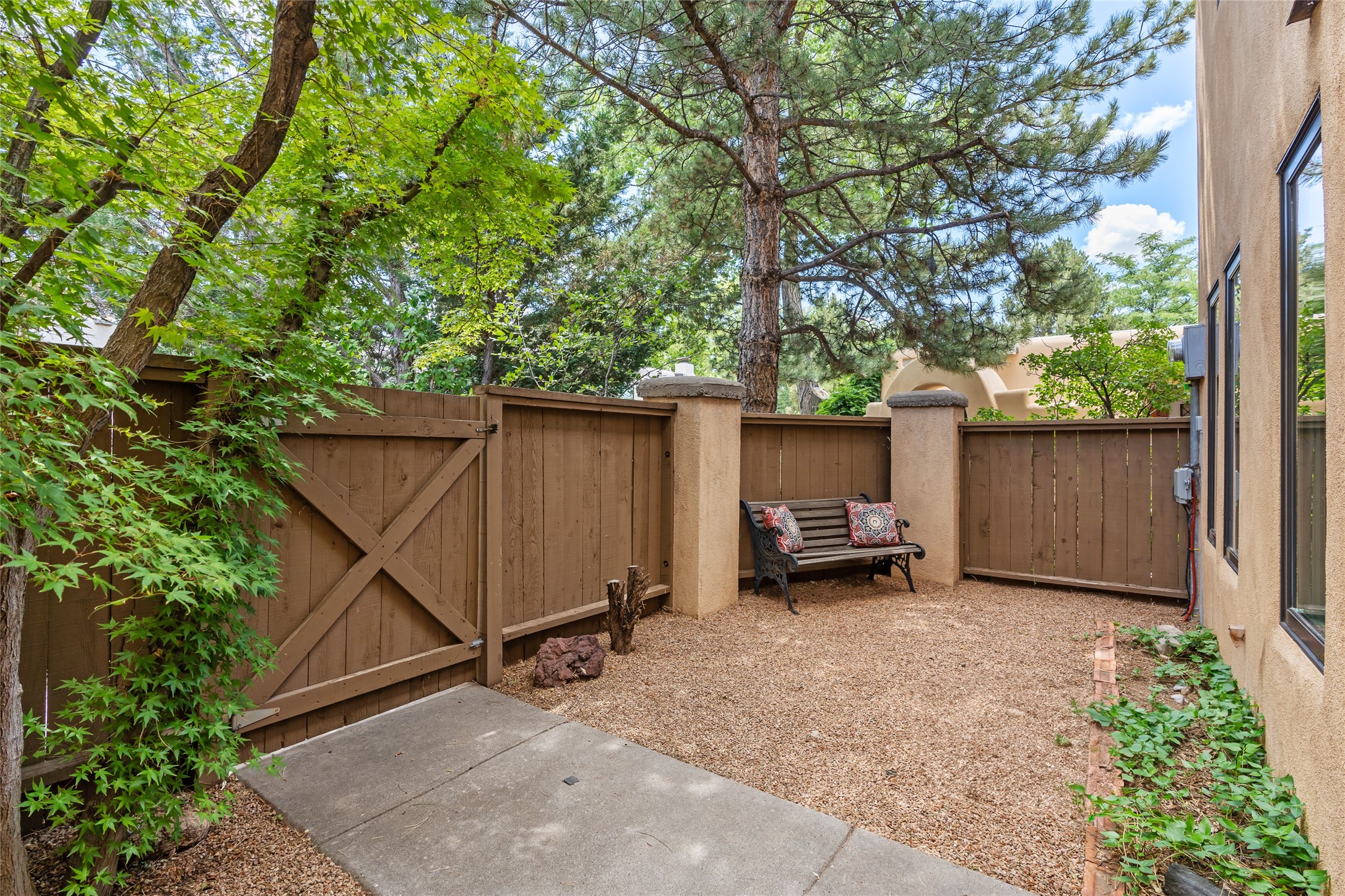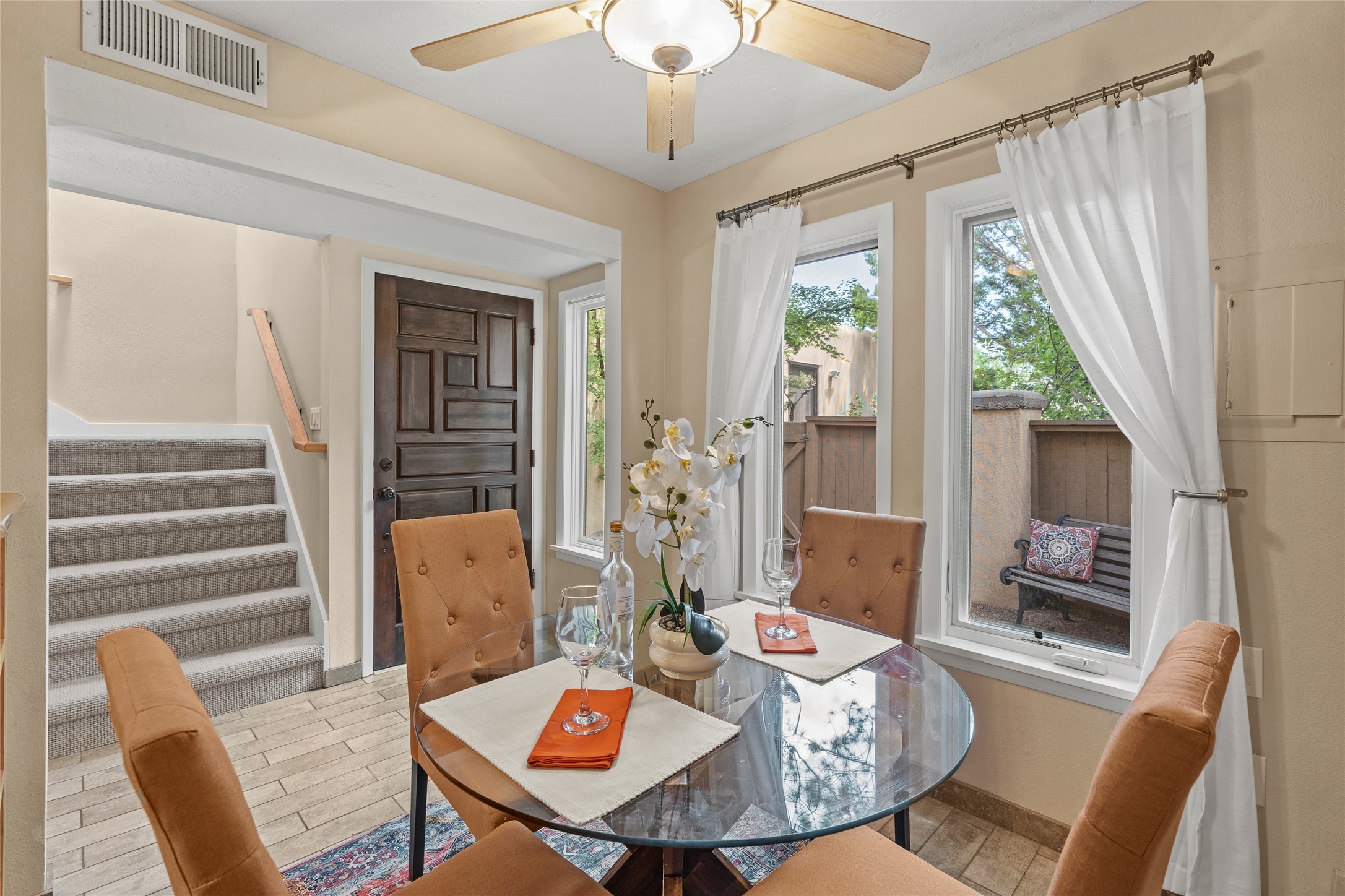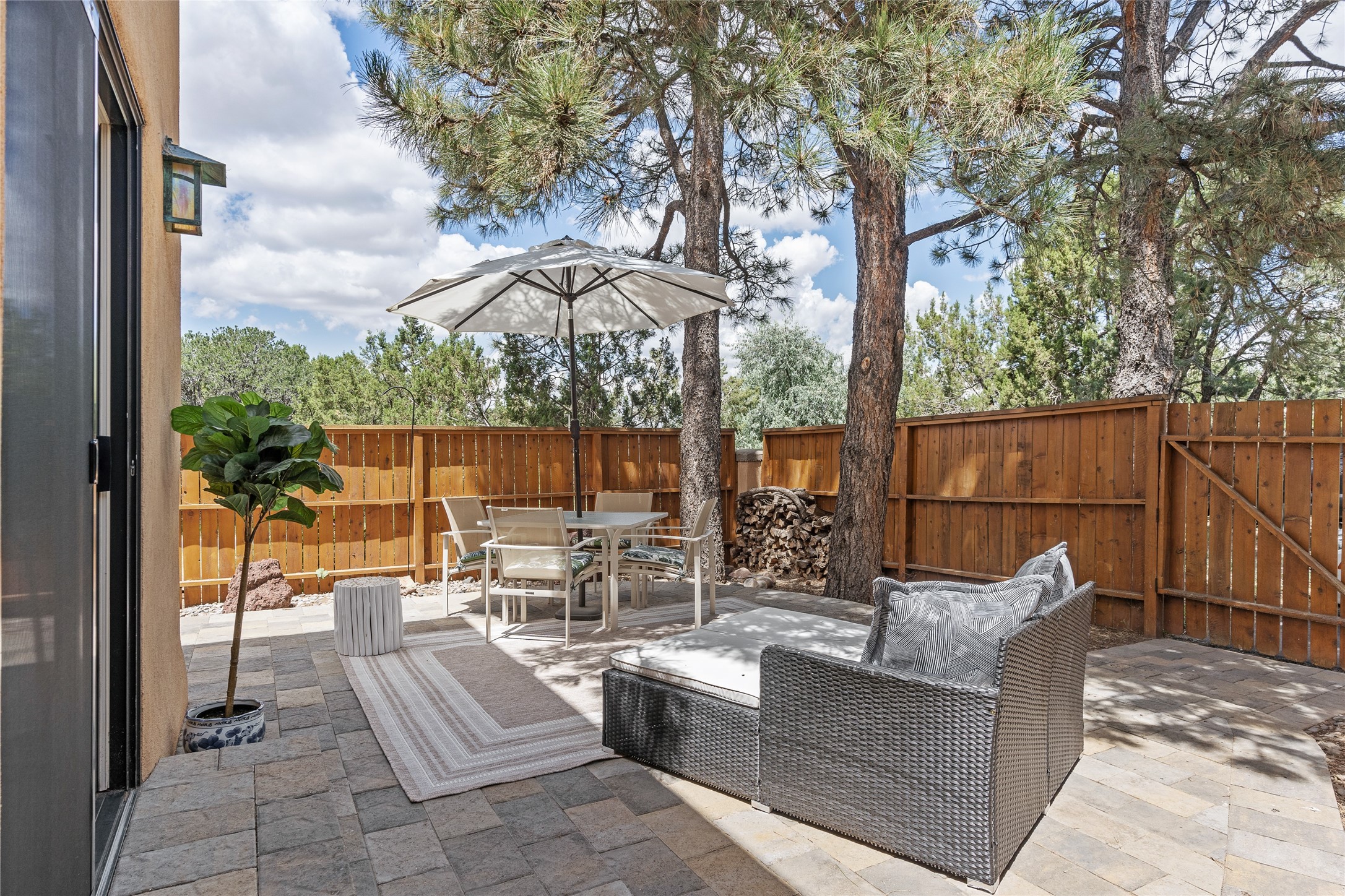 Thisbeautifully updated 3-bedroom, 2.5-bath townhome is located just a few miles south of the historic Santa Fe Plaza, and close to schools, shopping, and restaurants. Nestled in the heart of the desirable Park Plazas community, this home combines comfort, style, and exceptional amenities including approx. $75,000 in recent improvements.Inside, you'll find a light-filled living room with charming beamed ceilings, a cozy fireplace, and a sliding glass door that opens to a lovely stone patio -- perfect for morning coffee or evening gatherings. The main level features elegant tile flooring throughout, while the staircase and upstairs hallway and bedrooms are finished with plush wool carpeting.All three bedrooms are located upstairs, including a spacious primary suite with an en-suite bath and a private deck for enjoying Santa Fe's beautiful skies. The home has been thoughtfully upgraded with a newer roof and skylights (installed approx. October 2020), a central HVAC system with air conditioning (added in February 2022), a water filtration system, and more.Park Plazas is known for its serene, tree-filled environment and extensive amenities, including over eight miles of paved walking paths, tennis and pickleball courts, a parcourse fitness circuit, off-leash dog park, RV parking, community garden, children's playgrounds, and even a ptanque court.Whether you're seeking a full-time residence or a Santa Fe getaway, 3132 Plaza Blanca offers comfort, convenience, and connection to the best of Santa Fe living.