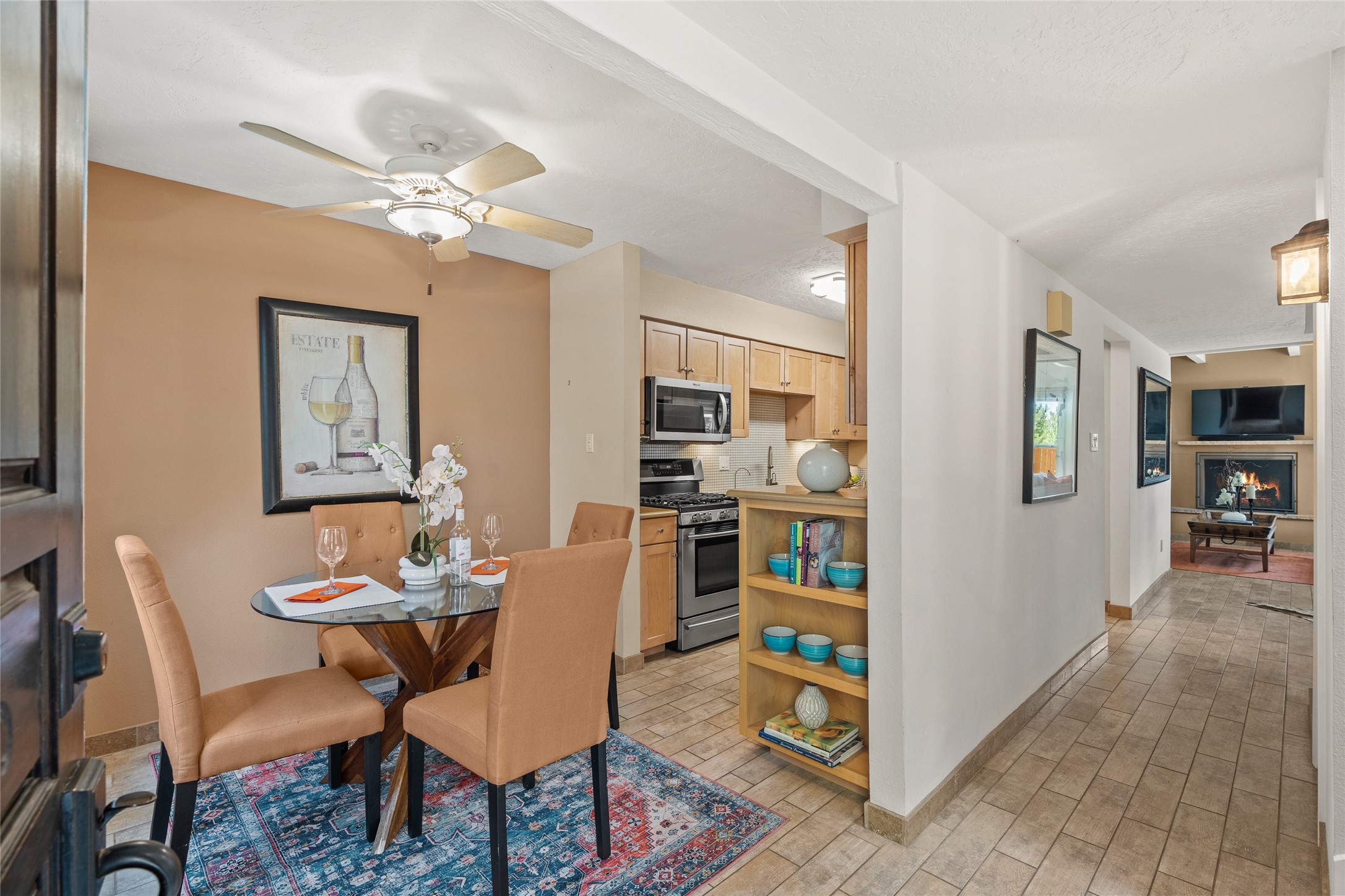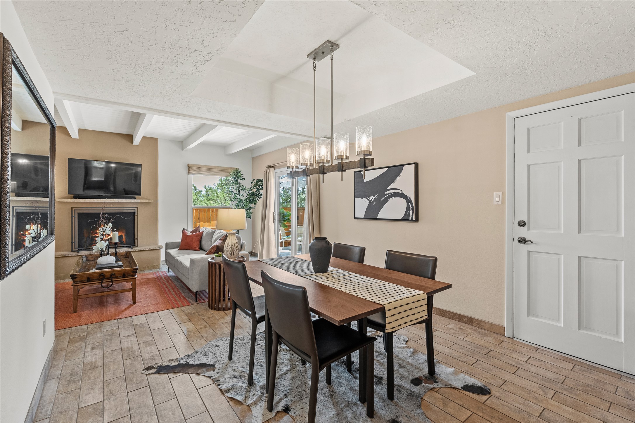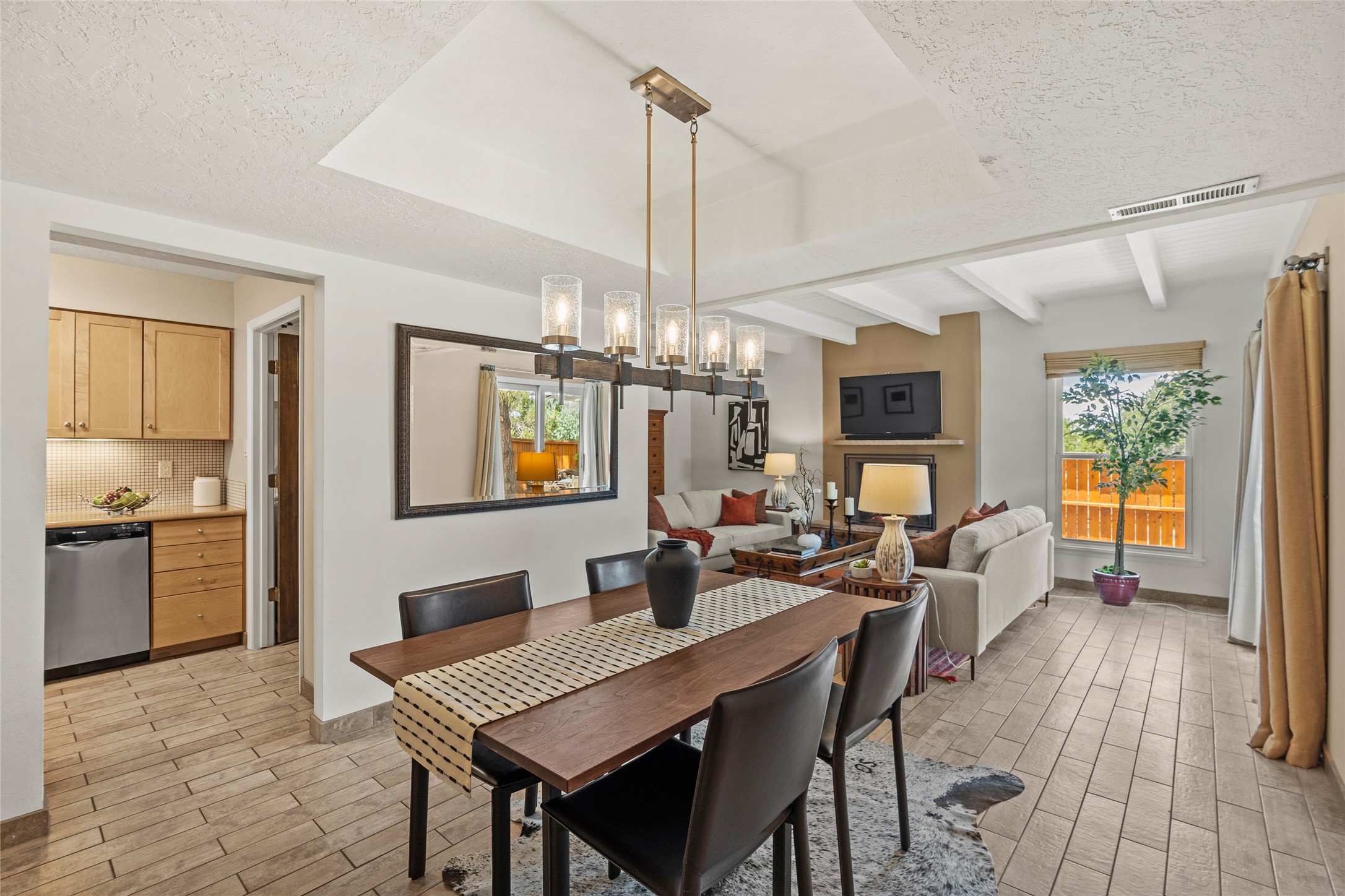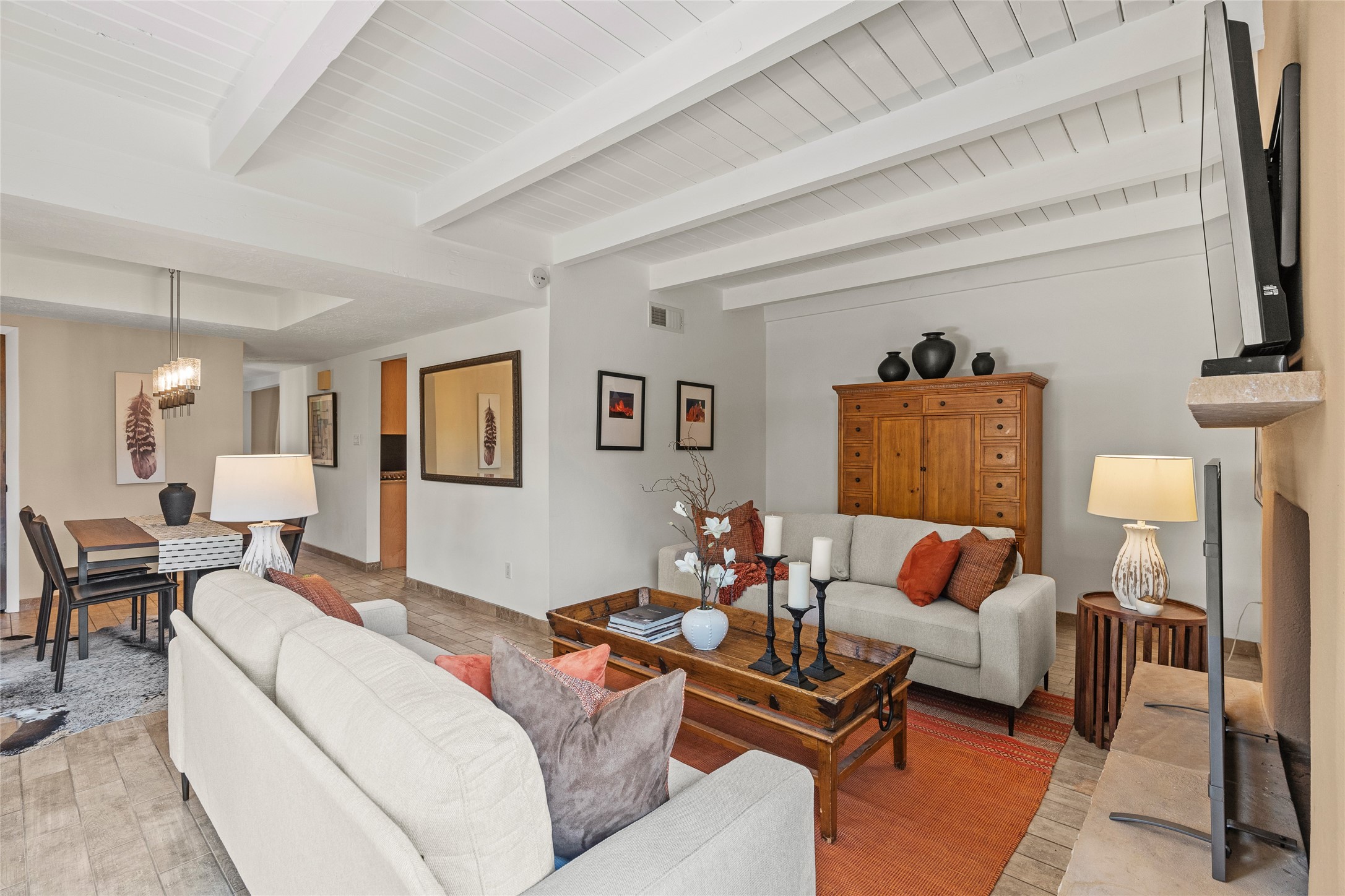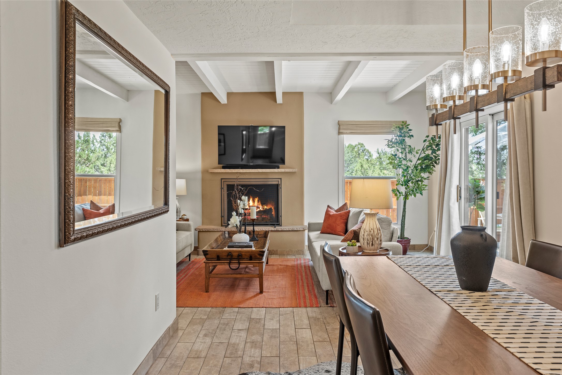 Thisbeautifully updated 3-bedroom, 2.5-bath townhome is located just a few miles south of the historic Santa Fe Plaza, and close to schools, shopping, and restaurants. Nestled in the heart of the desirable Park Plazas community, this home combines comfort, style, and exceptional amenities including approx. $75,000 in recent improvements.Inside, you'll find a light-filled living room with charming beamed ceilings, a cozy fireplace, and a sliding glass door that opens to a lovely stone patio -- perfect for morning coffee or evening gatherings. The main level features elegant tile flooring throughout, while the staircase and upstairs hallway and bedrooms are finished with plush wool carpeting.All three bedrooms are located upstairs, including a spacious primary suite with an en-suite bath and a private deck for enjoying Santa Fe's beautiful skies. The home has been thoughtfully upgraded with a newer roof and skylights (installed approx. October 2020), a central HVAC system with air conditioning (added in February 2022), a water filtration system, and more.Park Plazas is known for its serene, tree-filled environment and extensive amenities, including over eight miles of paved walking paths, tennis and pickleball courts, a parcourse fitness circuit, off-leash dog park, RV parking, community garden, children's playgrounds, and even a ptanque court.Whether you're seeking a full-time residence or a Santa Fe getaway, 3132 Plaza Blanca offers comfort, convenience, and connection to the best of Santa Fe living.