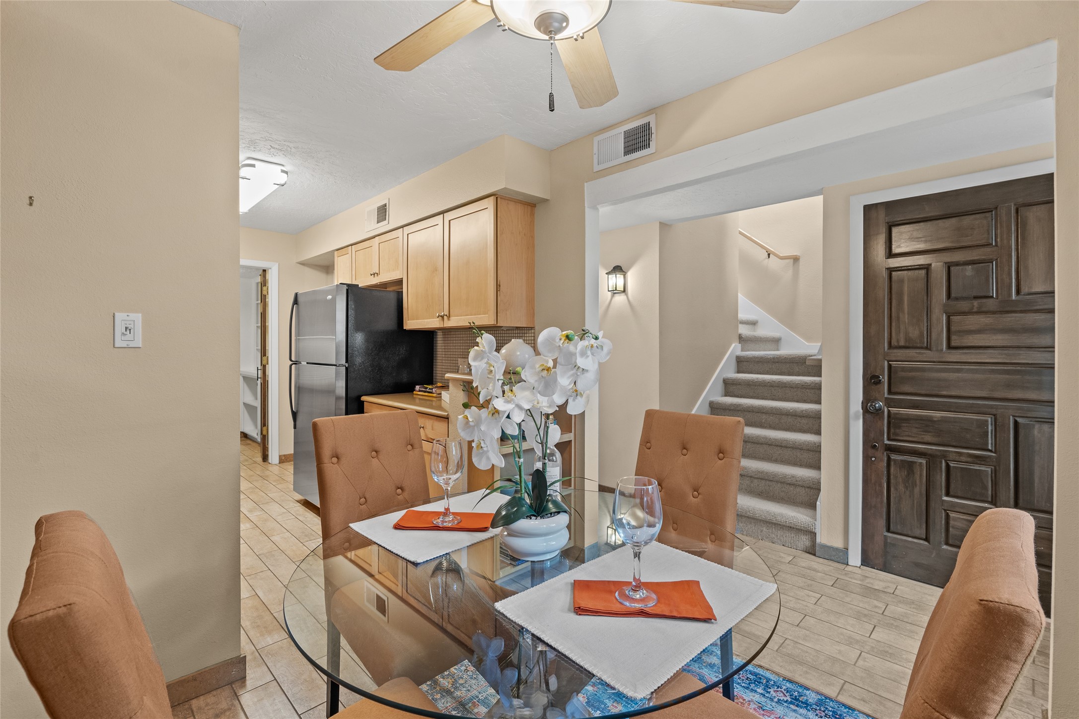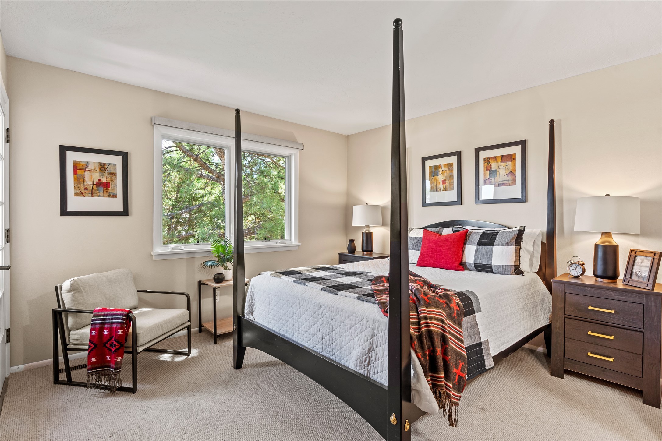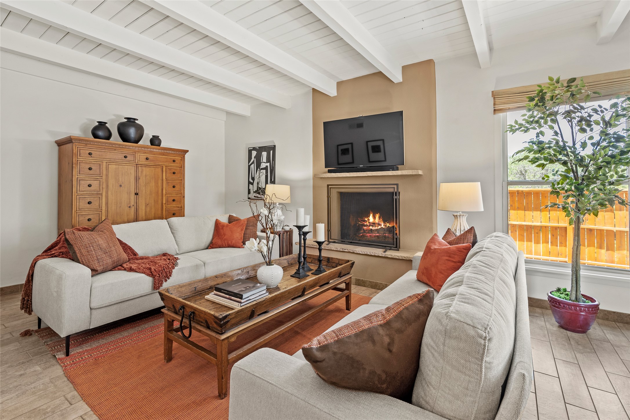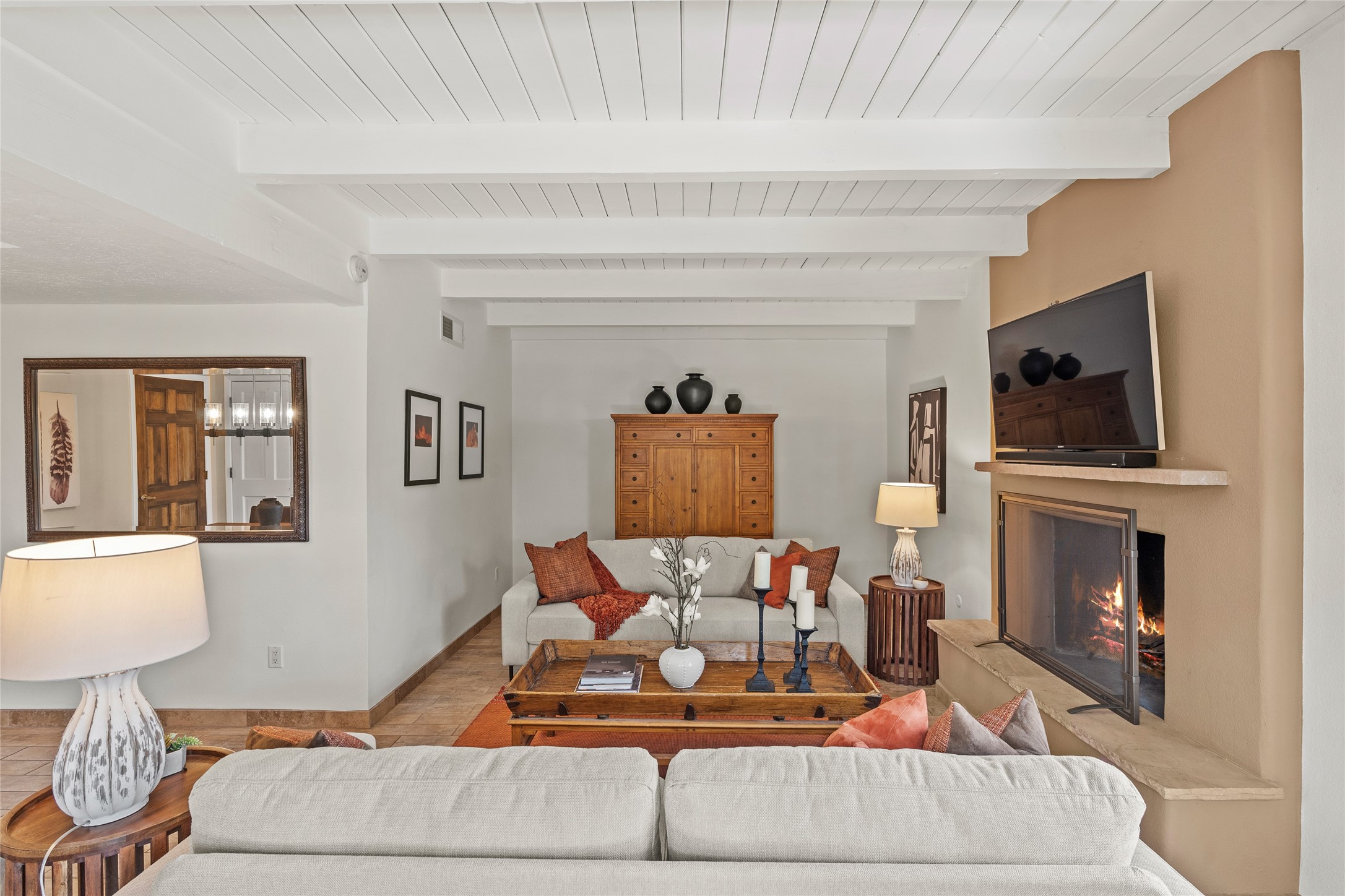 Thisbeautifully updated 3-bedroom, 2.5-bath townhome is located just a few miles south of the historic Santa Fe Plaza, and close to schools, shopping, and restaurants. Nestled in the heart of the desirable Park Plazas community, this home combines comfort, style, and exceptional amenities including approx. $75,000 in recent improvements.Inside, you'll find a light-filled living room with charming beamed ceilings, a cozy fireplace, and a sliding glass door that opens to a lovely stone patio -- perfect for morning coffee or evening gatherings. The main level features elegant tile flooring throughout, while the staircase and upstairs hallway and bedrooms are finished with plush wool carpeting.All three bedrooms are located upstairs, including a spacious primary suite with an en-suite bath and a private deck for enjoying Santa Fe's beautiful skies. The home has been thoughtfully upgraded with a newer roof and skylights (installed approx. October 2020), a central HVAC system with air conditioning (added in February 2022), a water filtration system, and more.Park Plazas is known for its serene, tree-filled environment and extensive amenities, including over eight miles of paved walking paths, tennis and pickleball courts, a parcourse fitness circuit, off-leash dog park, RV parking, community garden, children's playgrounds, and even a ptanque court.Whether you're seeking a full-time residence or a Santa Fe getaway, 3132 Plaza Blanca offers comfort, convenience, and connection to the best of Santa Fe living.