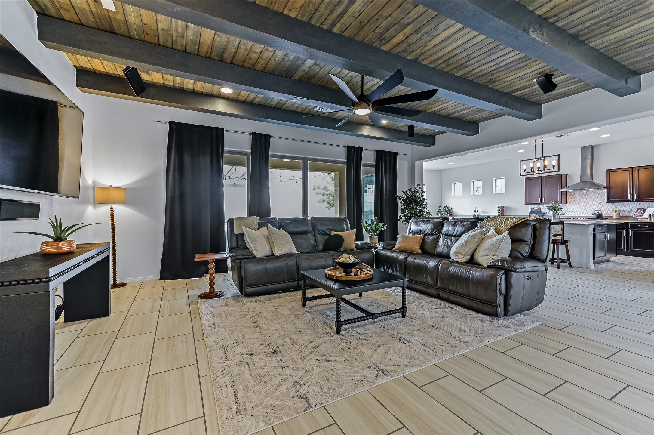 - Interior FeaturesBeamed Ceilings, No Interior Steps