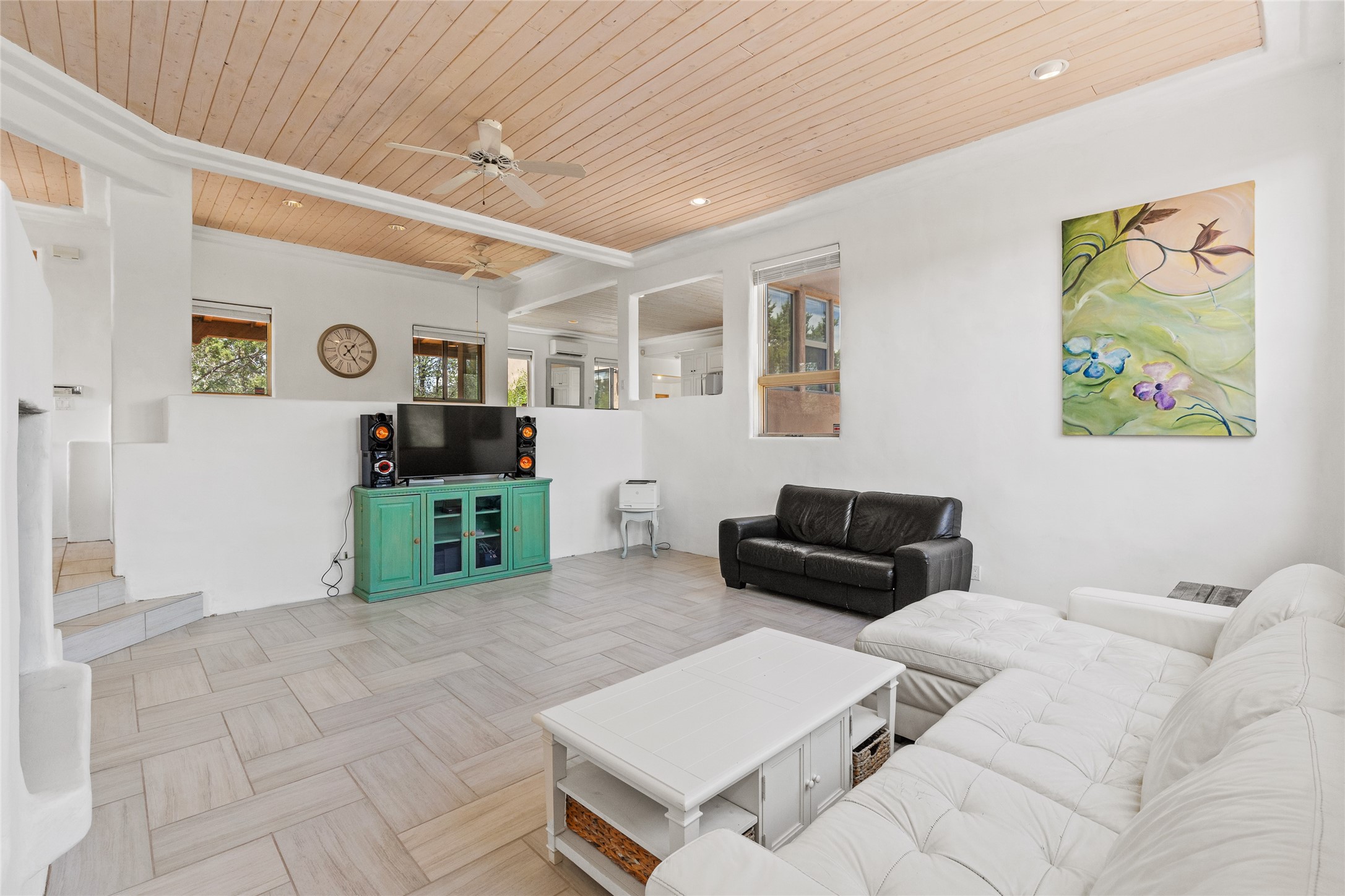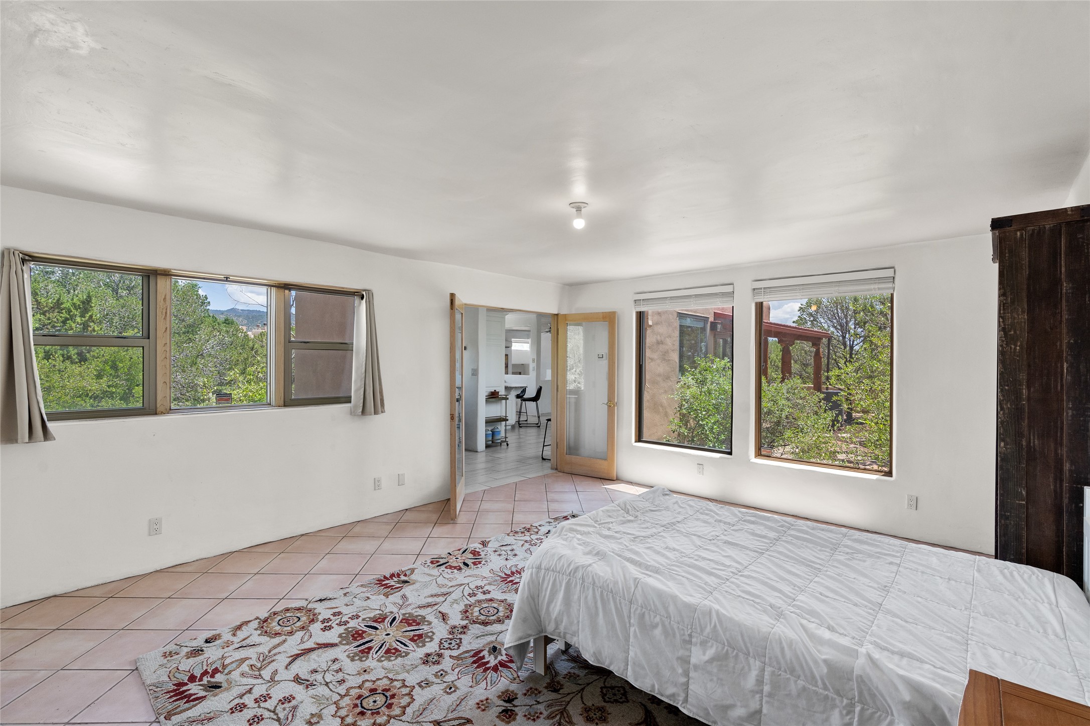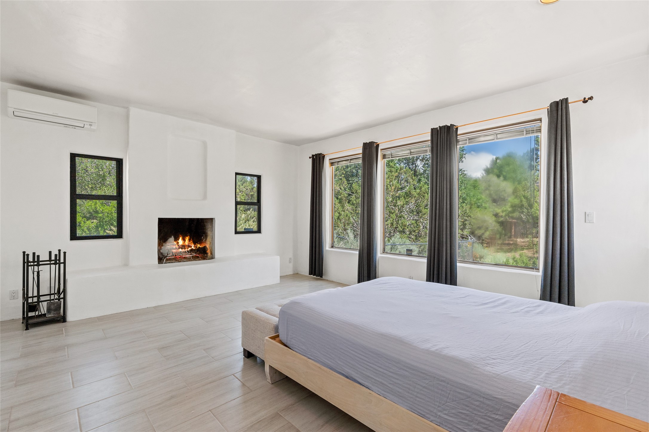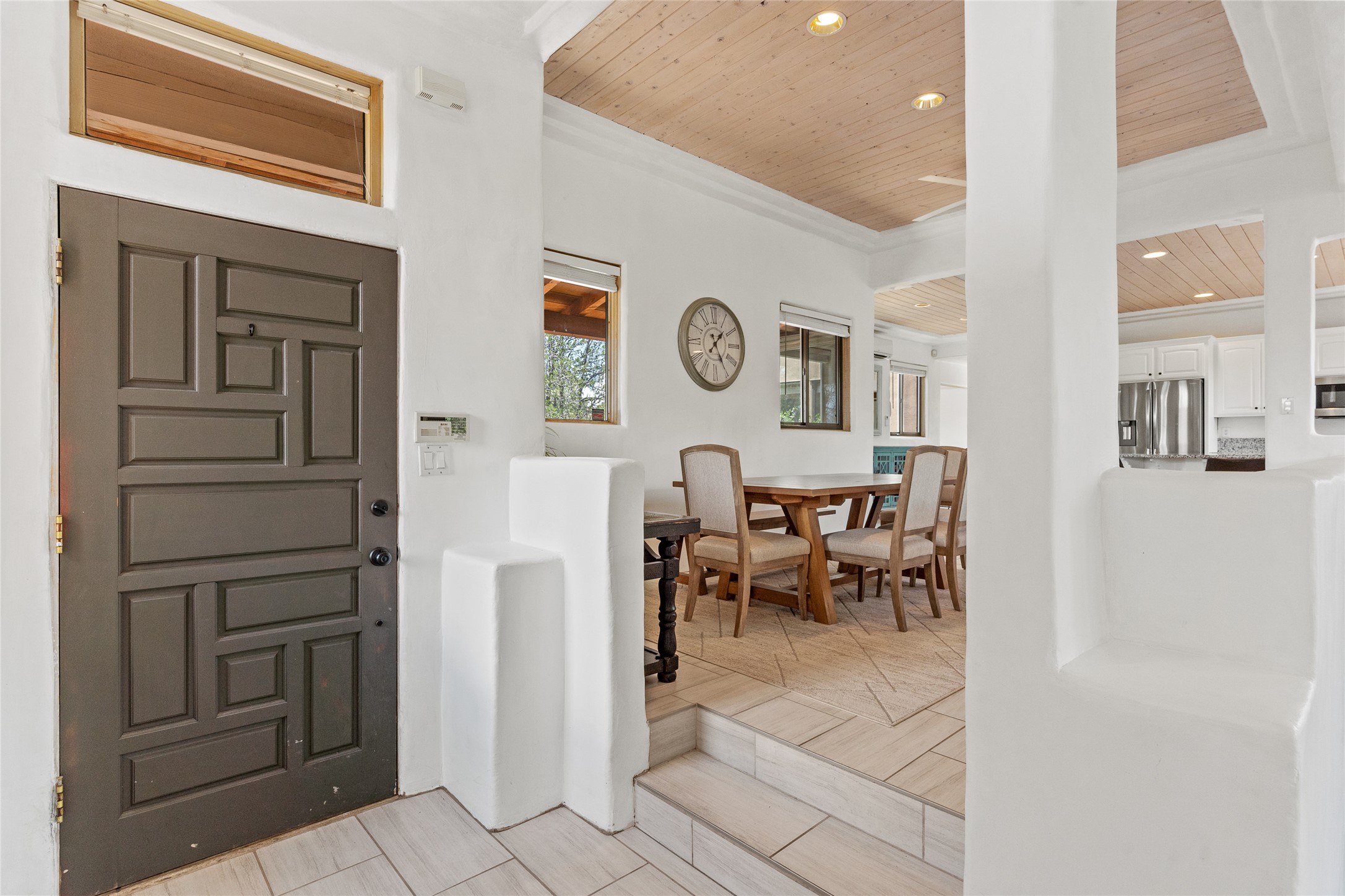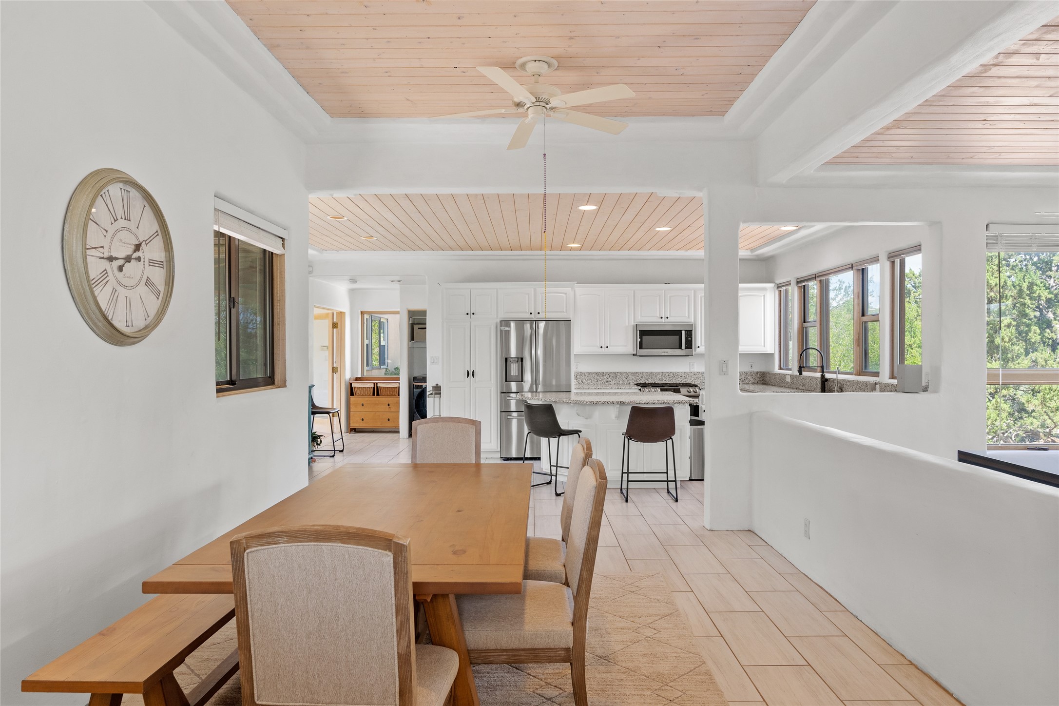 Located on over an acre with unbeatable access to all that Santa Fe has to offer, this beautifully updated home offers views of Sun andMoon Mountains and an open, flexible layout ideal for modern living. Tongue-and-groove ceilings with recessed lighting run throughout themain living areas, complementing the abundant natural light that pours in through large windows. The updated kitchen features new granitecountertops, newer Bosch and Samsung appliances, plus a RO filtration in the kitchen. The kitchen flows seamlessly into the open-conceptliving and dining spaces. Two cozy fireplaces create warmth and ambiance, while radiant heating and mini splits provide efficient heatingand cooling year-round. With three spacious bedrooms--including two that function well as primary suites. A standout feature is theattached studio with its own entrance, carport, skylights, and plentiful windows--perfect for an art space, home office, or guest retreat.Outside, the expansive lot offers endless possibilities for gardening, recreation, or expansion. Just a 5-minute walk from Christus St.Vincent Regional Medical Center and only 10 minutes to the historic Santa Fe Plaza, this home combines peaceful privacy with centralconvenience. Don't miss this rare opportunity to own a flexible, light-filled property in one of Santa Fe's most desirable locations.