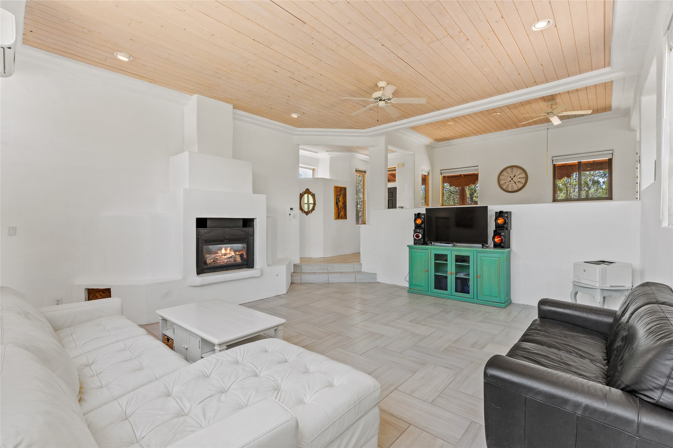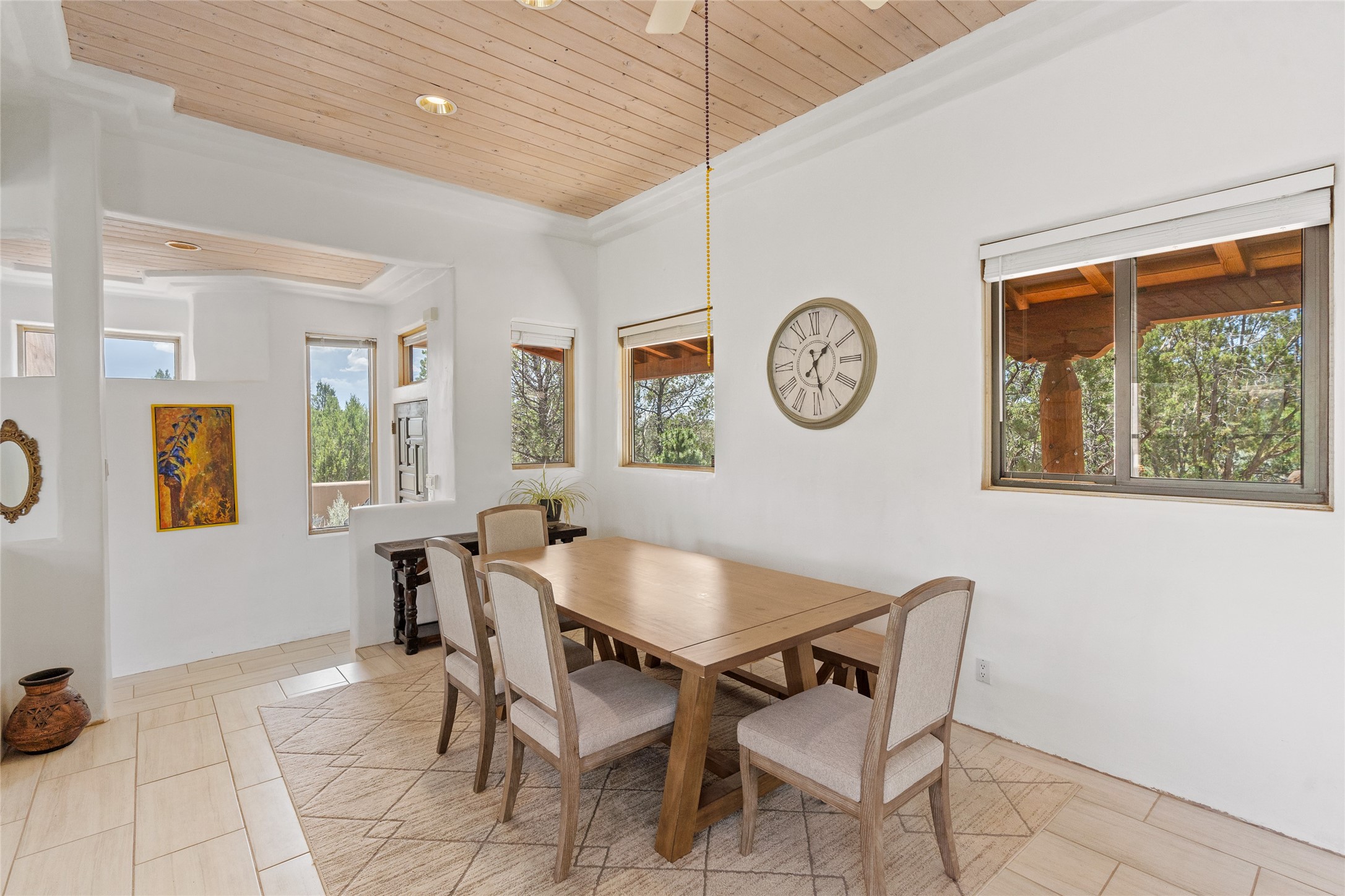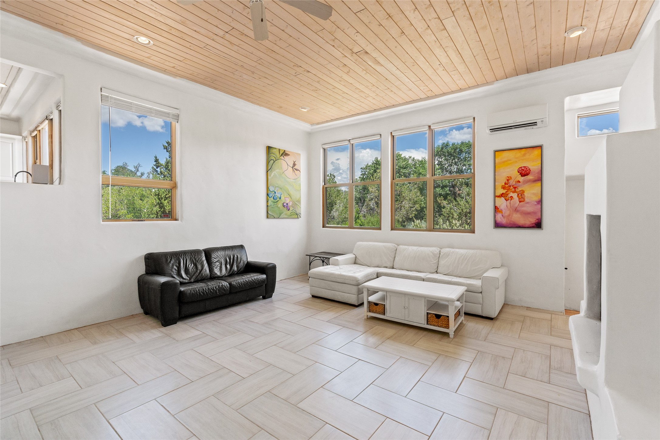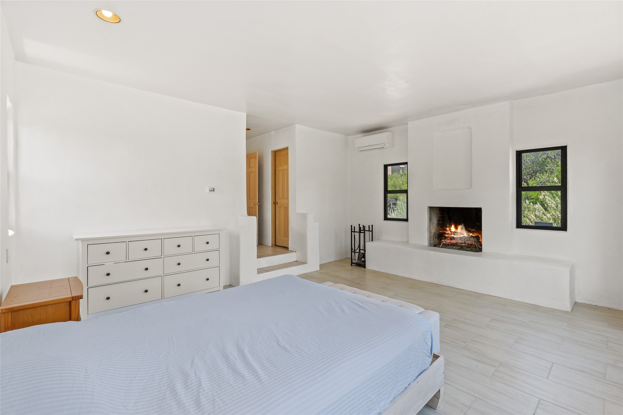Located on over an acre with unbeatable access to all that Santa Fe has to offer, this beautifully updated home offers views of Sun andMoon Mountains and an open, flexible layout ideal for modern living. Tongue-and-groove ceilings with recessed lighting run throughout themain living areas, complementing the abundant natural light that pours in through large windows. The updated kitchen features new granitecountertops, newer Bosch and Samsung appliances, plus a RO filtration in the kitchen. The kitchen flows seamlessly into the open-conceptliving and dining spaces. Two cozy fireplaces create warmth and ambiance, while radiant heating and mini splits provide efficient heatingand cooling year-round. With three spacious bedrooms--including two that function well as primary suites. A standout feature is theattached studio with its own entrance, carport, skylights, and plentiful windows--perfect for an art space, home office, or guest retreat.Outside, the expansive lot offers endless possibilities for gardening, recreation, or expansion. Just a 5-minute walk from Christus St.Vincent Regional Medical Center and only 10 minutes to the historic Santa Fe Plaza, this home combines peaceful privacy with centralconvenience. Don't miss this rare opportunity to own a flexible, light-filled property in one of Santa Fe's most desirable locations.