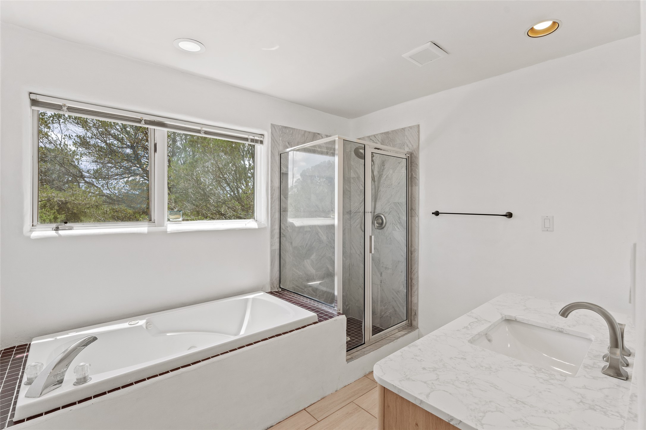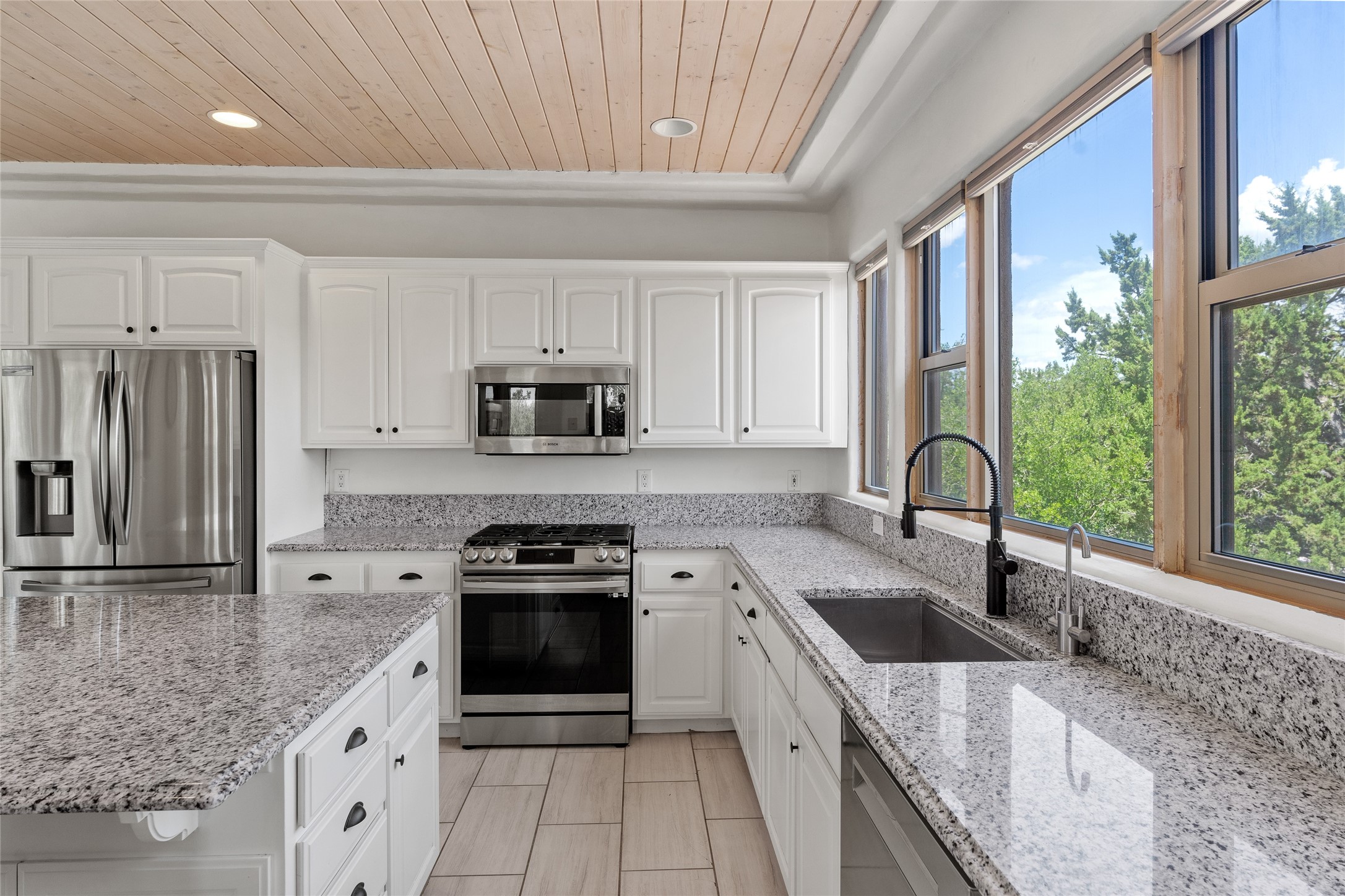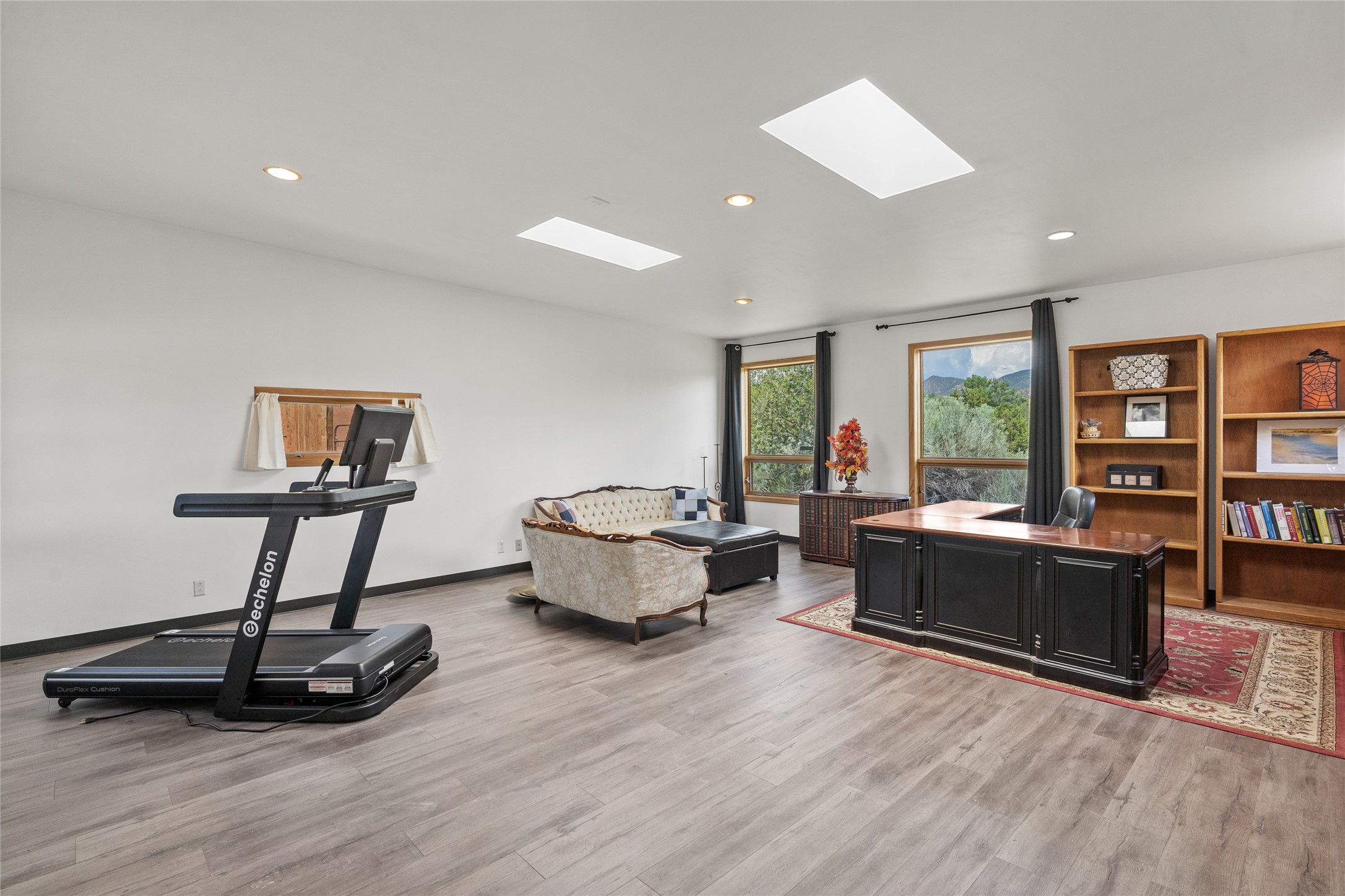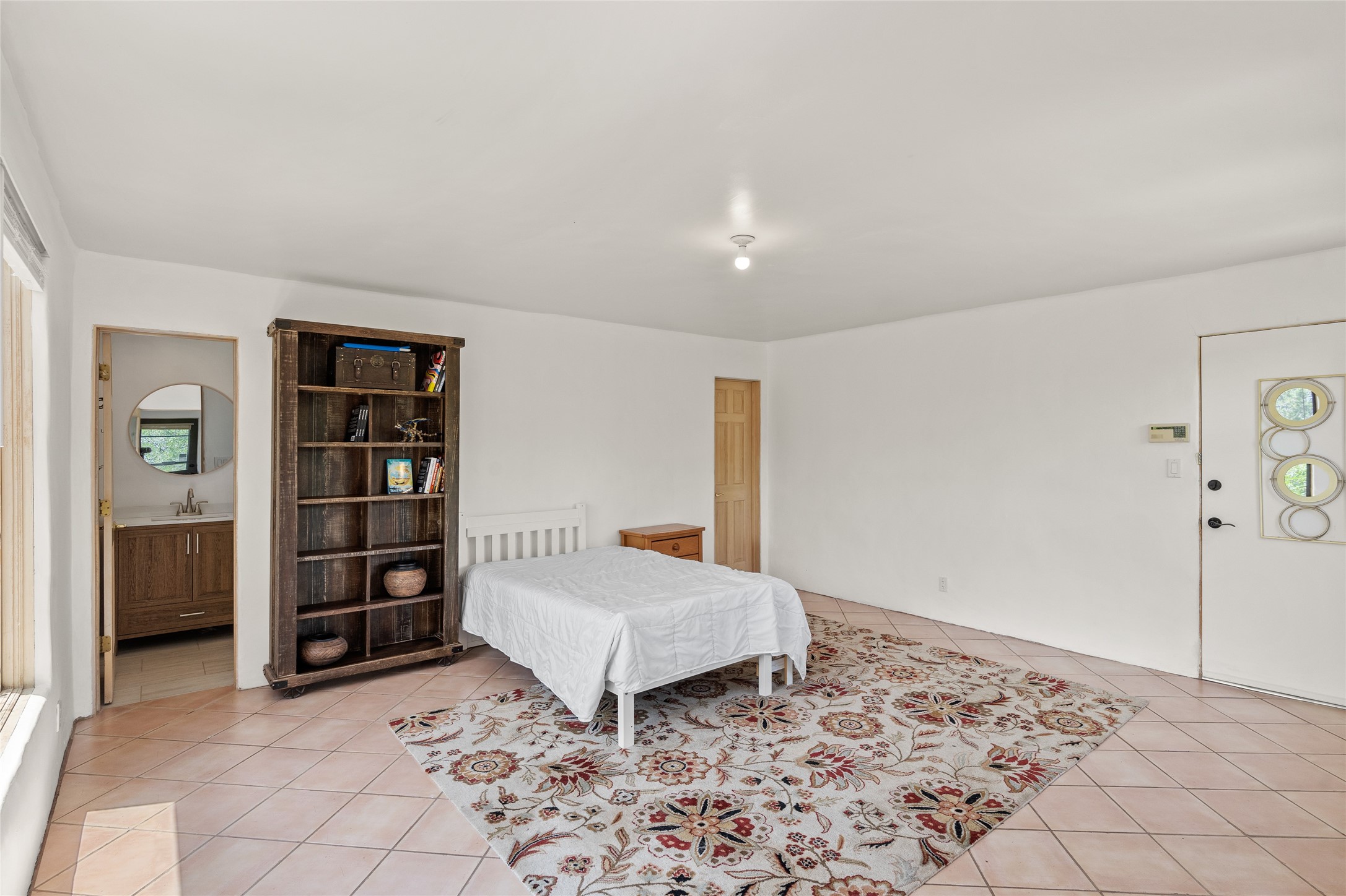 Located on over an acre with unbeatable access to all that Santa Fe has to offer, this beautifully updated home offers views of Sun andMoon Mountains and an open, flexible layout ideal for modern living. Tongue-and-groove ceilings with recessed lighting run throughout themain living areas, complementing the abundant natural light that pours in through large windows. The updated kitchen features new granitecountertops, newer Bosch and Samsung appliances, plus a RO filtration in the kitchen. The kitchen flows seamlessly into the open-conceptliving and dining spaces. Two cozy fireplaces create warmth and ambiance, while radiant heating and mini splits provide efficient heatingand cooling year-round. With three spacious bedrooms--including two that function well as primary suites. A standout feature is theattached studio with its own entrance, carport, skylights, and plentiful windows--perfect for an art space, home office, or guest retreat.Outside, the expansive lot offers endless possibilities for gardening, recreation, or expansion. Just a 5-minute walk from Christus St.Vincent Regional Medical Center and only 10 minutes to the historic Santa Fe Plaza, this home combines peaceful privacy with centralconvenience. Don't miss this rare opportunity to own a flexible, light-filled property in one of Santa Fe's most desirable locations.