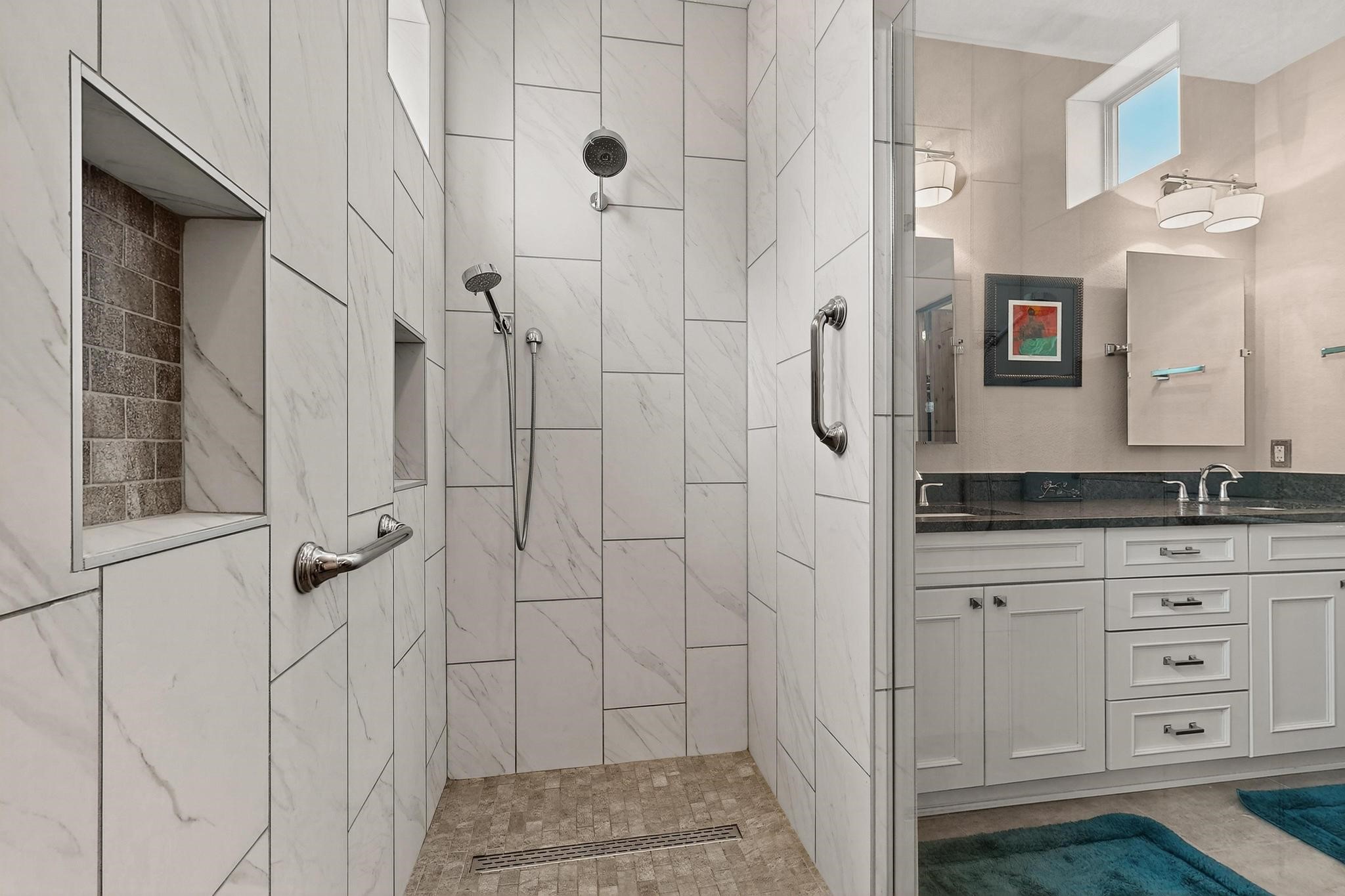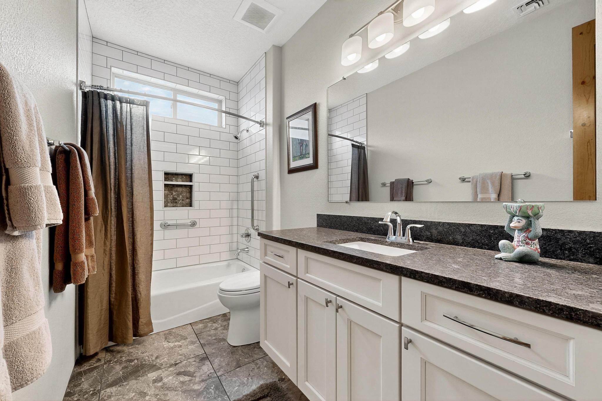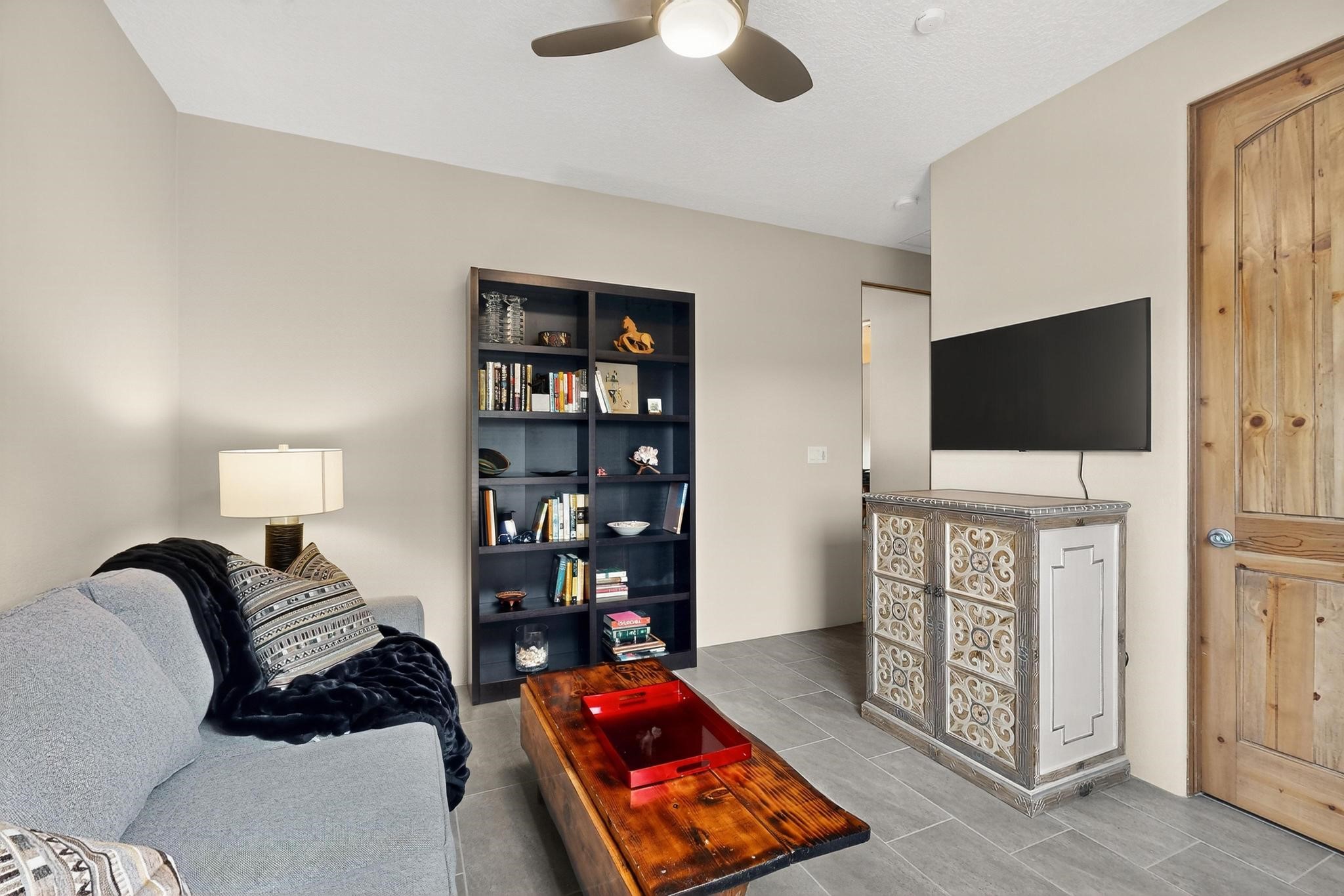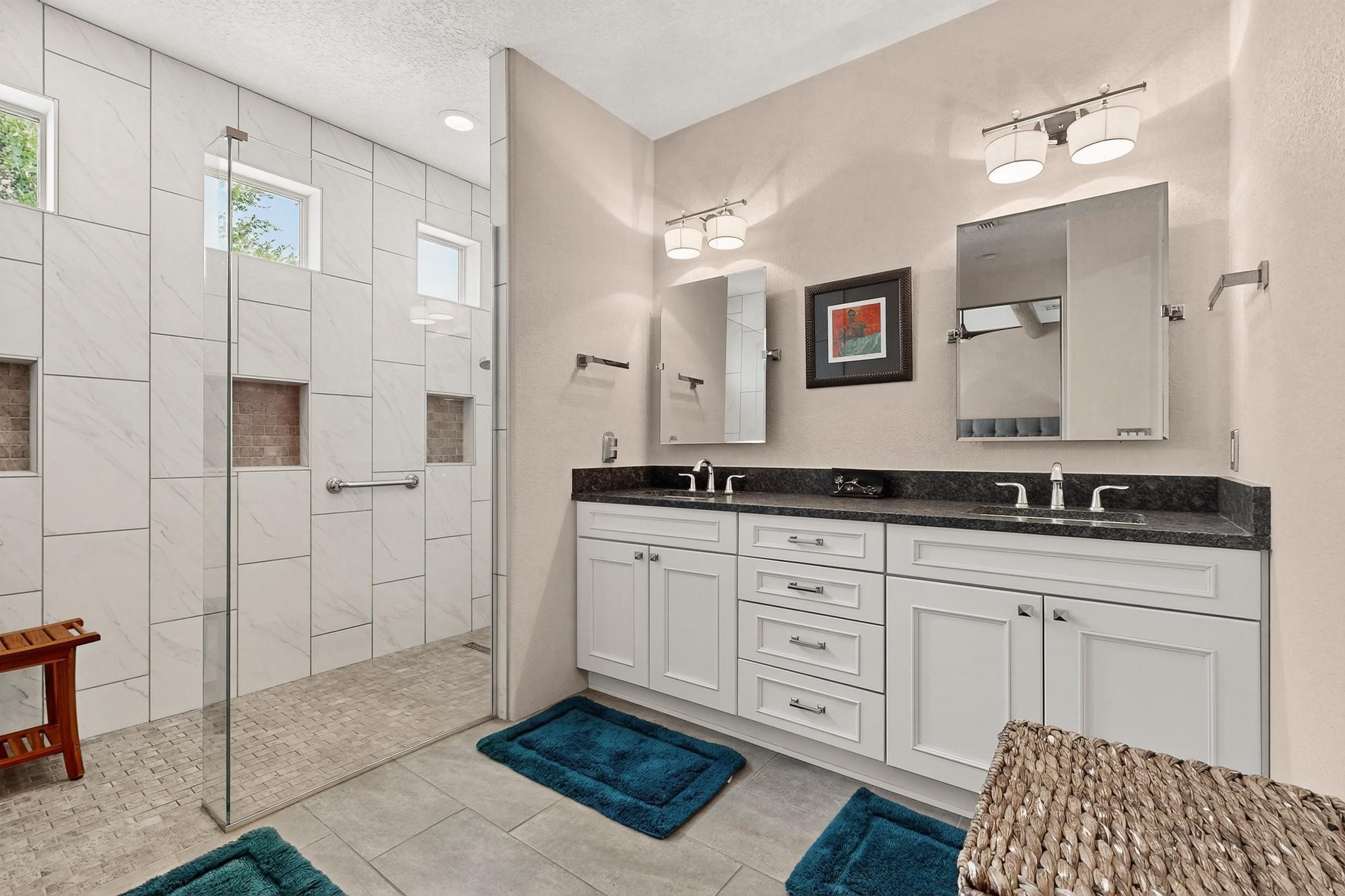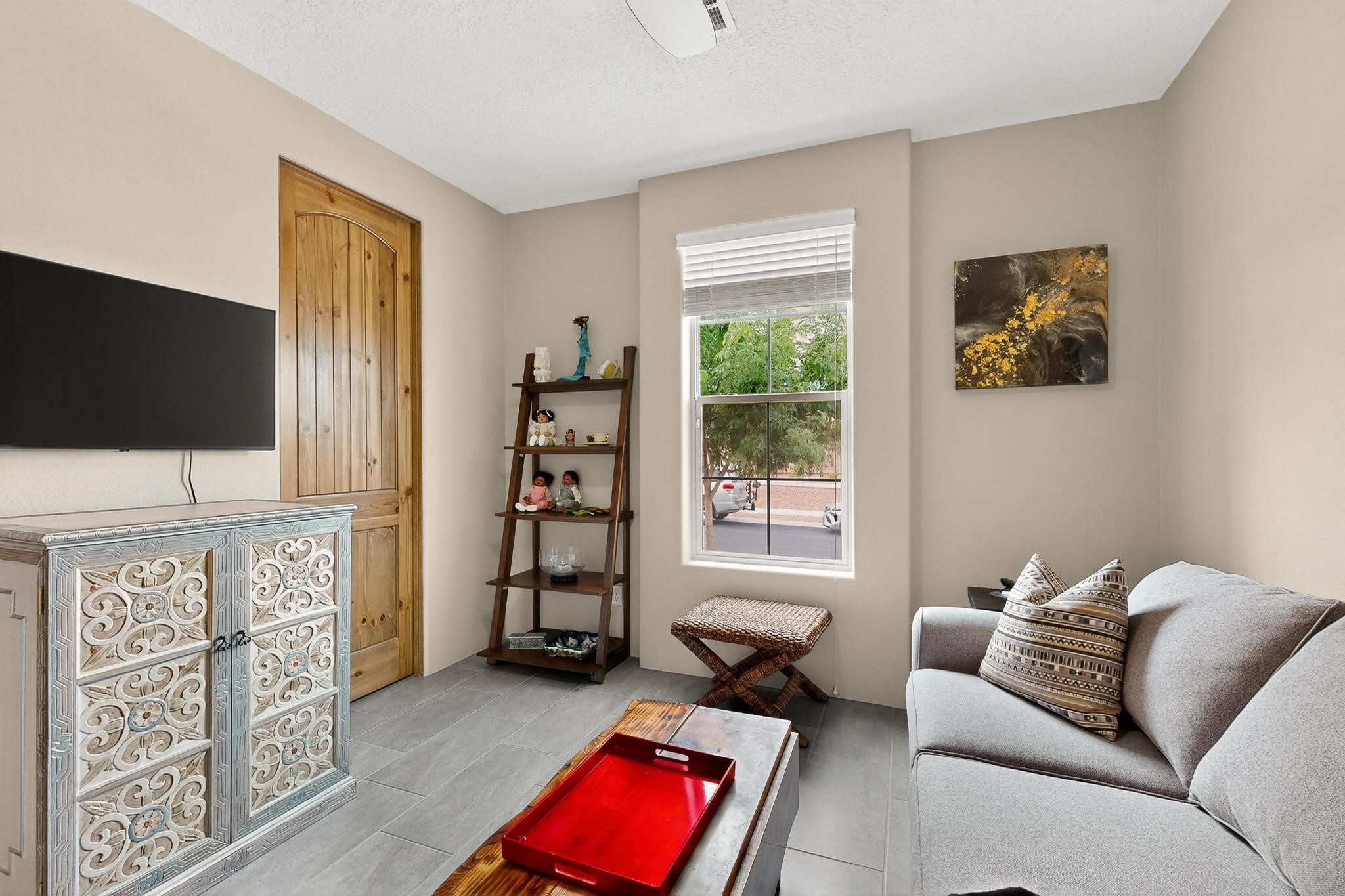 A stunning property on a quarter acre in prestigious Rancho Viejo. A breathtaking view of the mountains, beautiful landscaping, and flavors of Santa Fe inside makes this a home you will love. The Elegancia design has an open floor plan; split bedroom layout between primary bedroom and two guest rooms; and a large office/den. The kitchen is spacious with stainless steel appliances and pantry. The laundry room includes a full-size washer and dryer and sink. There are 2 bathrooms and a fun powder room. The kitchen, 2 bathrooms and laundry include plenty of counter space, storage, and granite countertops. The home includes a custom bar area. The vigas in the great room and primary bedroom, niches and a covered patio portal provide the feeling of timeless Santa Fe charm. The finished 3 car garage and instant hot water throughout the house provides added convenience. The full wall of windows in the great room provides a constant breathtaking view and motorized sunshades allow the view to shine through. Step outside to picturesque landscaping that includes pathways, seating areas, bubbling birdbath, and creative lighting. This is perfect place to enjoy the serenity of the beautiful Santa Fe skies and sunsets. Rancho Viejo provides 500 acres of green space, parks, and over 12 miles of walking and bike trails. Conveniently located by Santa Fe Community College, shopping, restaurants, and 15 minutes to the SF Plaza.