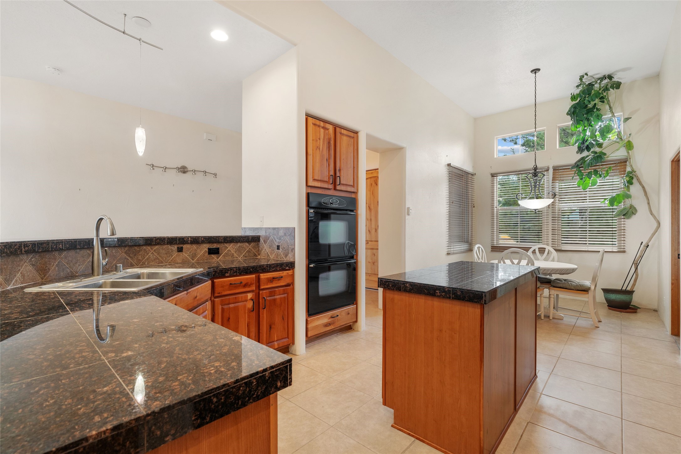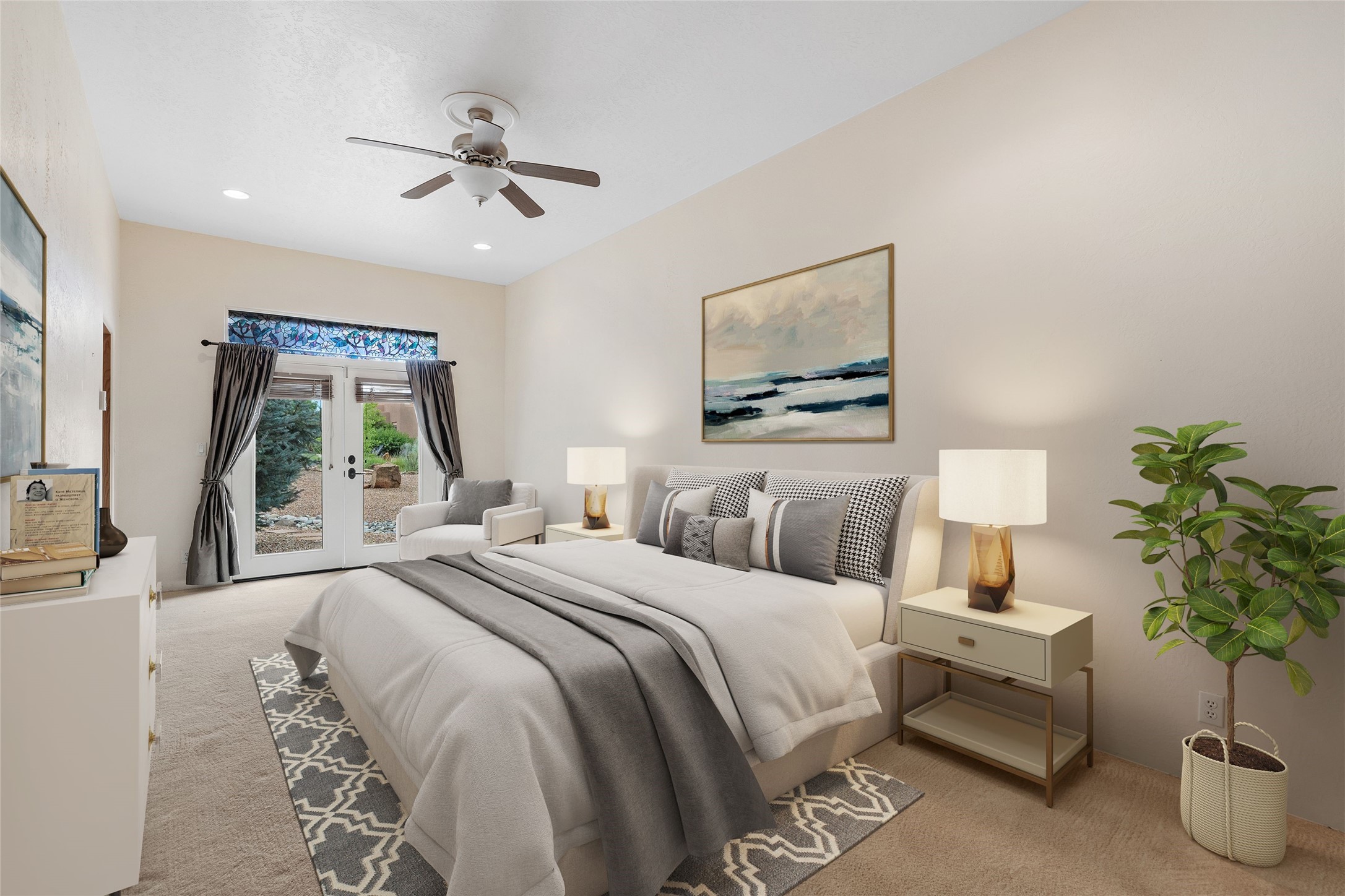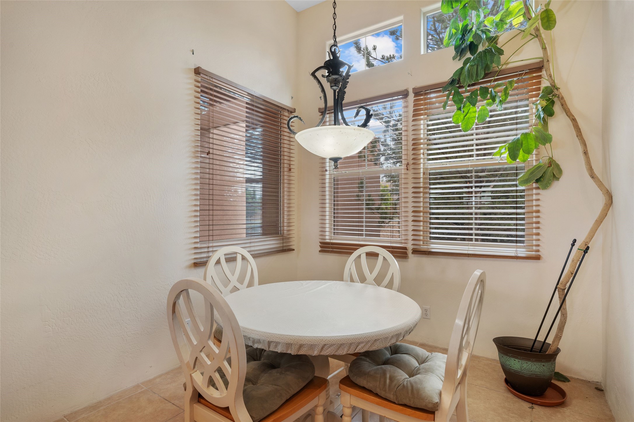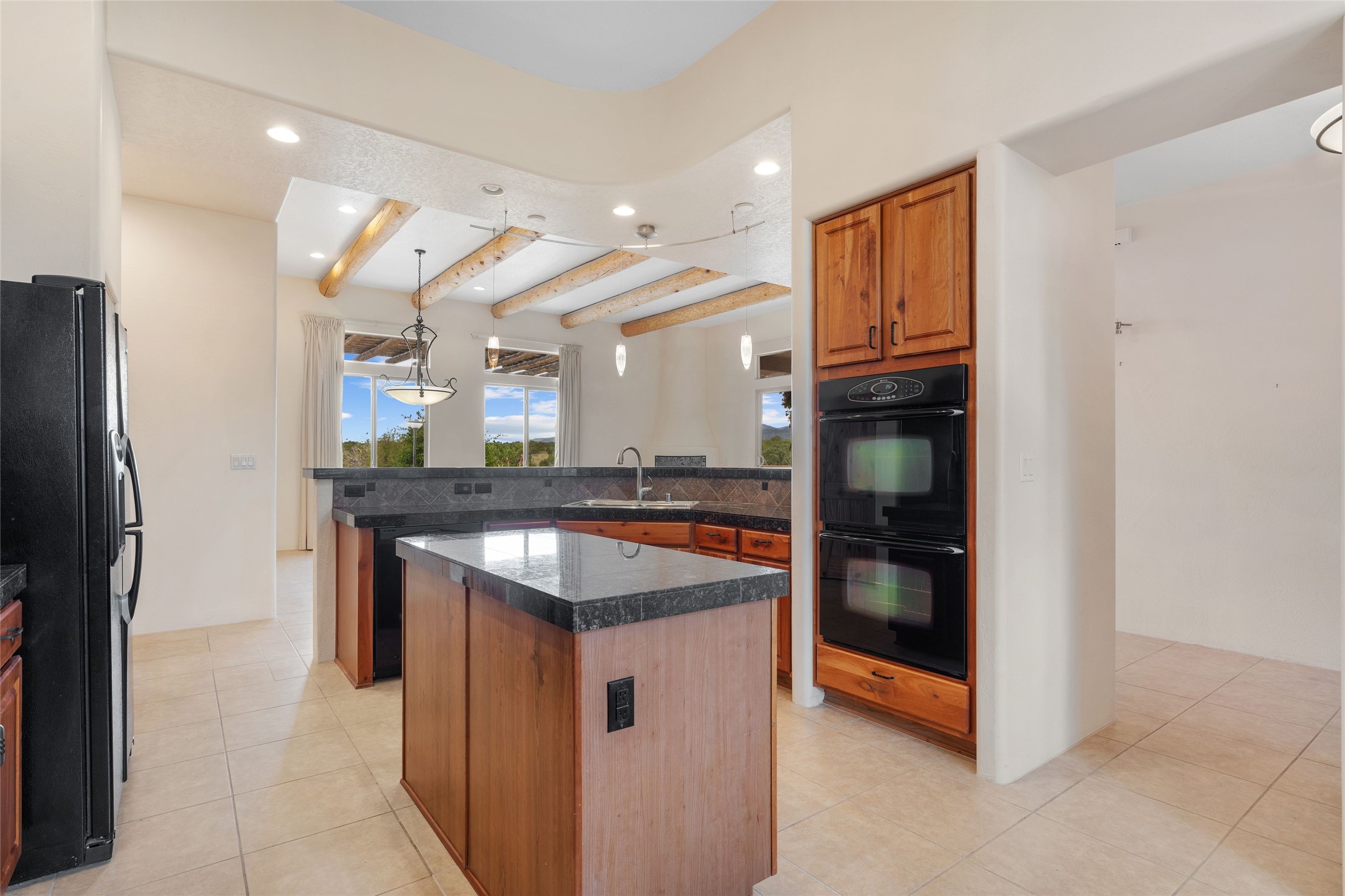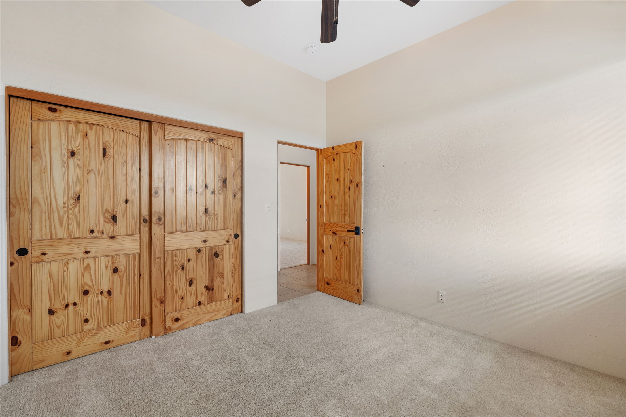 Excellent Opportunity! Sited on acre + conservation lot with expansive dedicated open space and unobstructed Sangre de Cristo and Jemez Mountain views. An immense ramada and solid covered portal embraces the great outdoors and view. Enjoy over 13 miles of private walking and biking trails steps from the back yard and Rancho Viejo's numerous open spaces, parks and playground areas. The spacious home features a large open kitchen, dining and living area floor plan with large view windows, patio/portal access, 12 ft ceilings with vigas, and a corner kiva fireplace with custom screen. The primary suite has total separation, boasts an oversize walk-in closet, a spacious bath with a big double vanity area, jetted tub, walk-in shower and private WC. The substantial 4th bedroom offers versatility with its own French doors entrance for private office, family room or your own desired application. The generous, attractive kitchen has an enviable, bright breakfast area and a nice roomy seating bar for family and guests' comfortable interaction with the cooks. The counter tops are granite tile, and the cabinets are Knotty Alder. The garage is oversize direct entry with extra storage/workshop space. The front yard features large, mature Spruce trees, attractive landscaping and hardscaping detail, irrigation system and water catchment. The backyard is enclosed with a pony wall and adorned with perennials. This special property has lots of custom features including all solid pine doors and an ornamental custom front screen door with security dead bolt. Pre-inspected, move-in ready.
