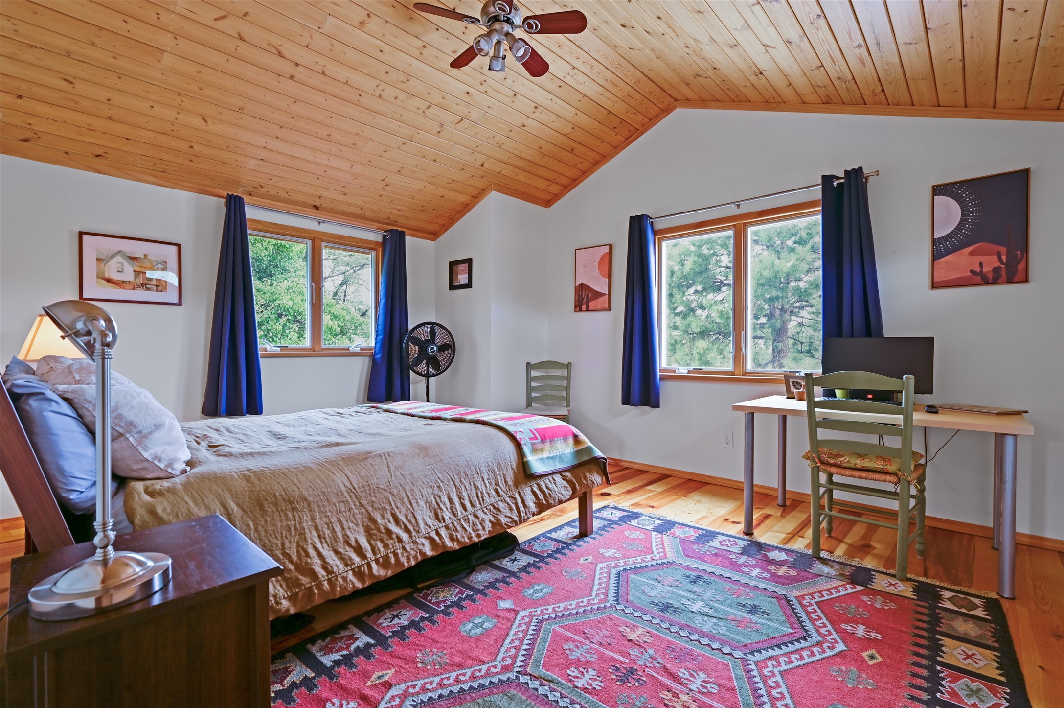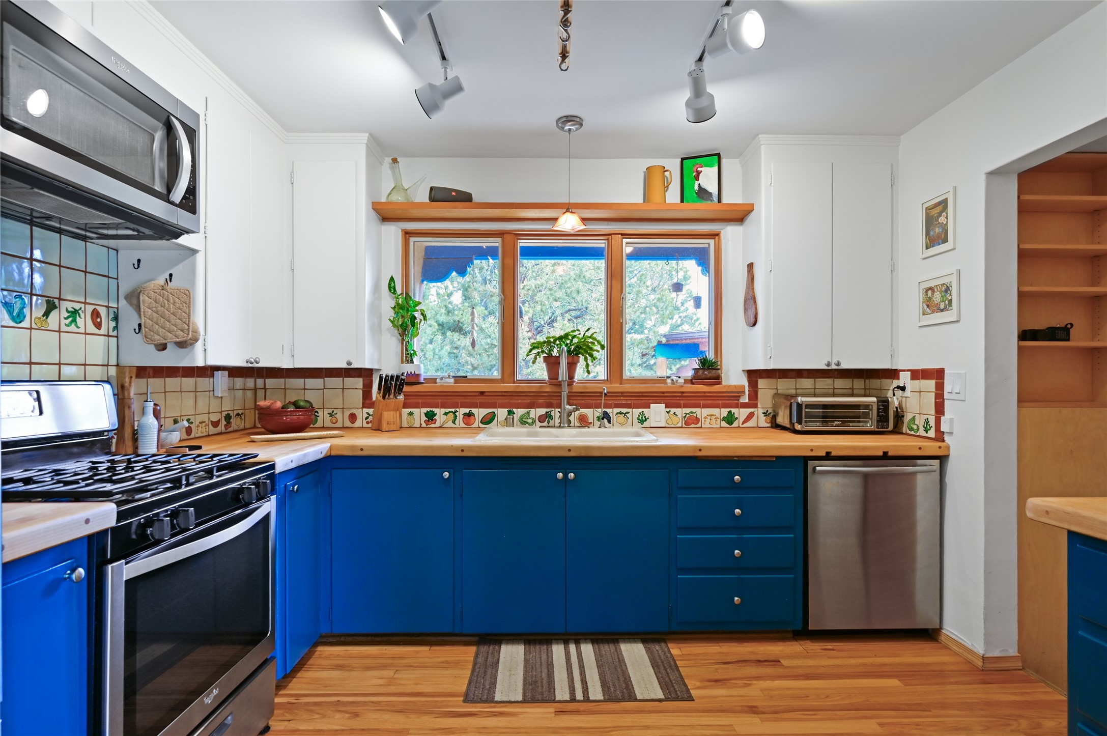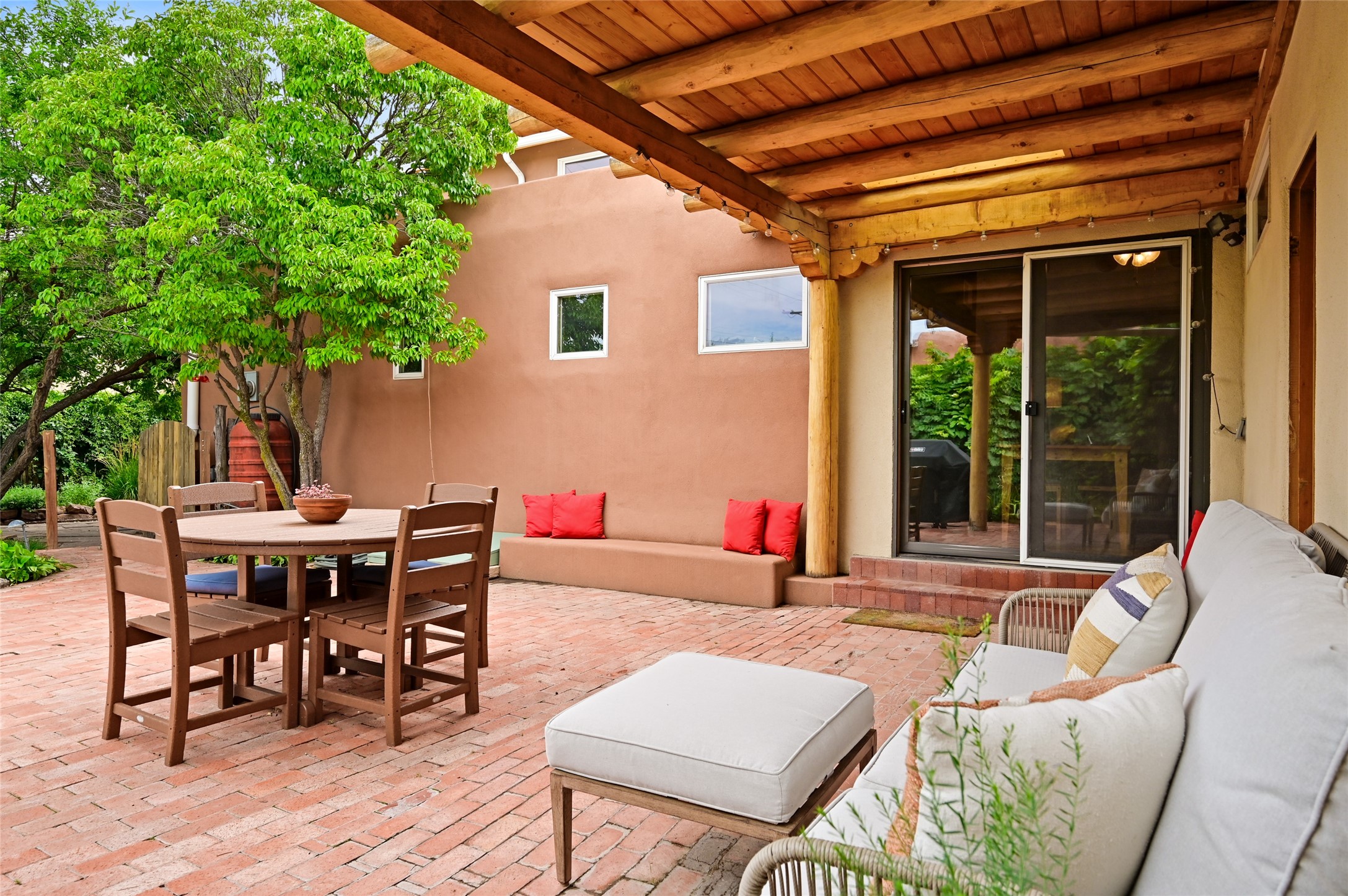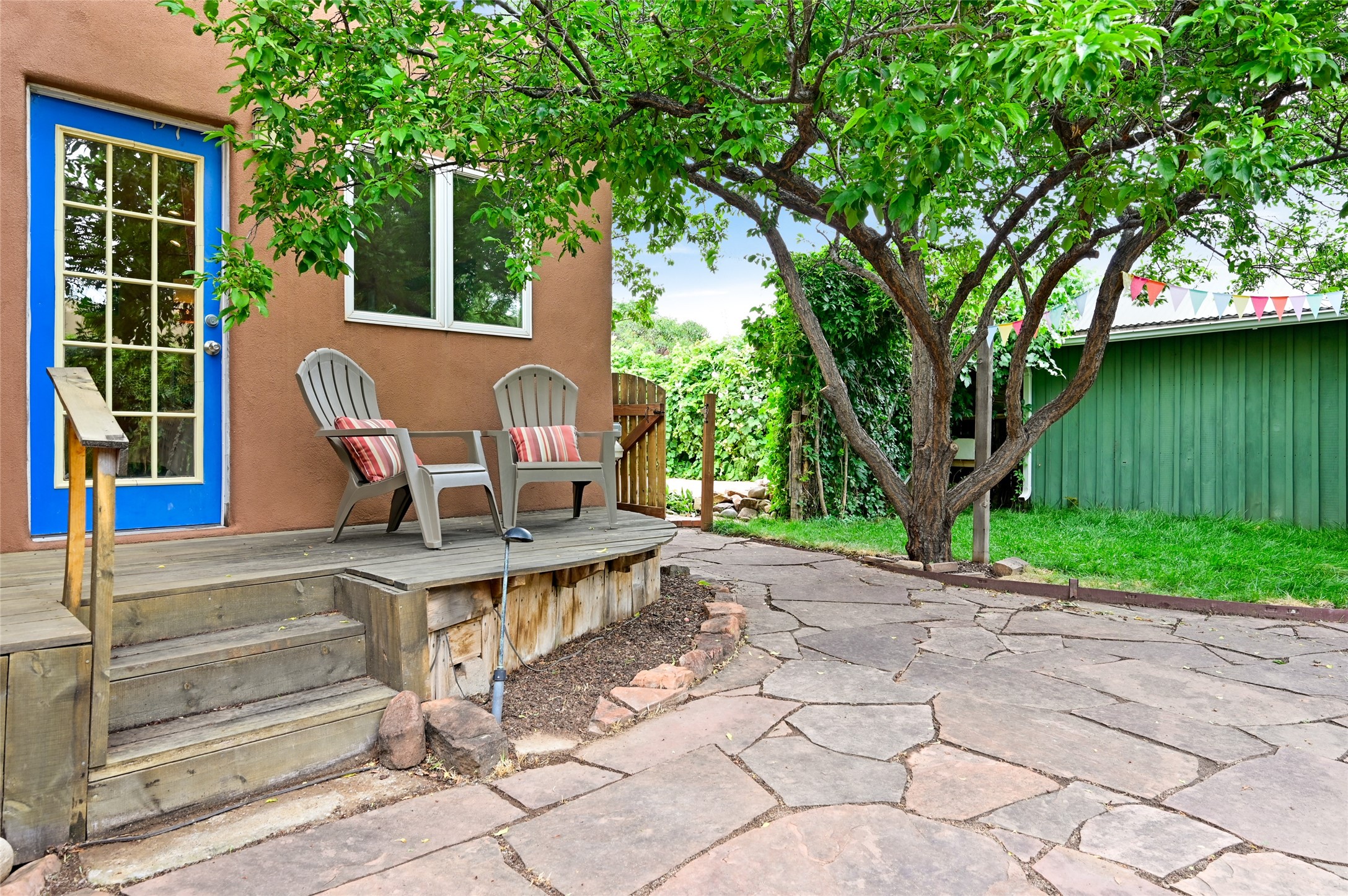 Located in the picturesque Casa Solana neighborhood, this charming 4-bedroom, 3-bathroomreimagined Stamn home offers over 2500 sqft of comfortable living spaces.Step inside to find wood floors that flow throughout the main living areas along with Vigas and aKiva fireplace. The versatile 4th bedroom, currently utilized as a cozy den, can easily transforminto an art studio or flex room to suit your lifestyle. An extra room, with its own bath, adjacent to the laundry areacan be used as another living space or as storage.Retreat to the spacious upstairs bedroom, complete with its own sitting room and privatebalcony, offering ski basin and sunset views for your enjoyment.Enjoy the serene and private outdoor environment on a beautifully landscaped lot that is completely fenced,featuring fruit trees, grape vines and two storage sheds. The tranquil fountain and multipleoutdoor seating areas create the perfect backdrop for entertaining and relaxation.This air conditioned home combines thoughtful design with abundant outdoor charm, making it an ideal havenfor families and entertaining guests alike.Located just blocks from shopping, dining, and the La Montaita Food Co-op, walkable via the River Trail to the Farmers Market,and only minutes to the Plaza. This home will not disappoint!