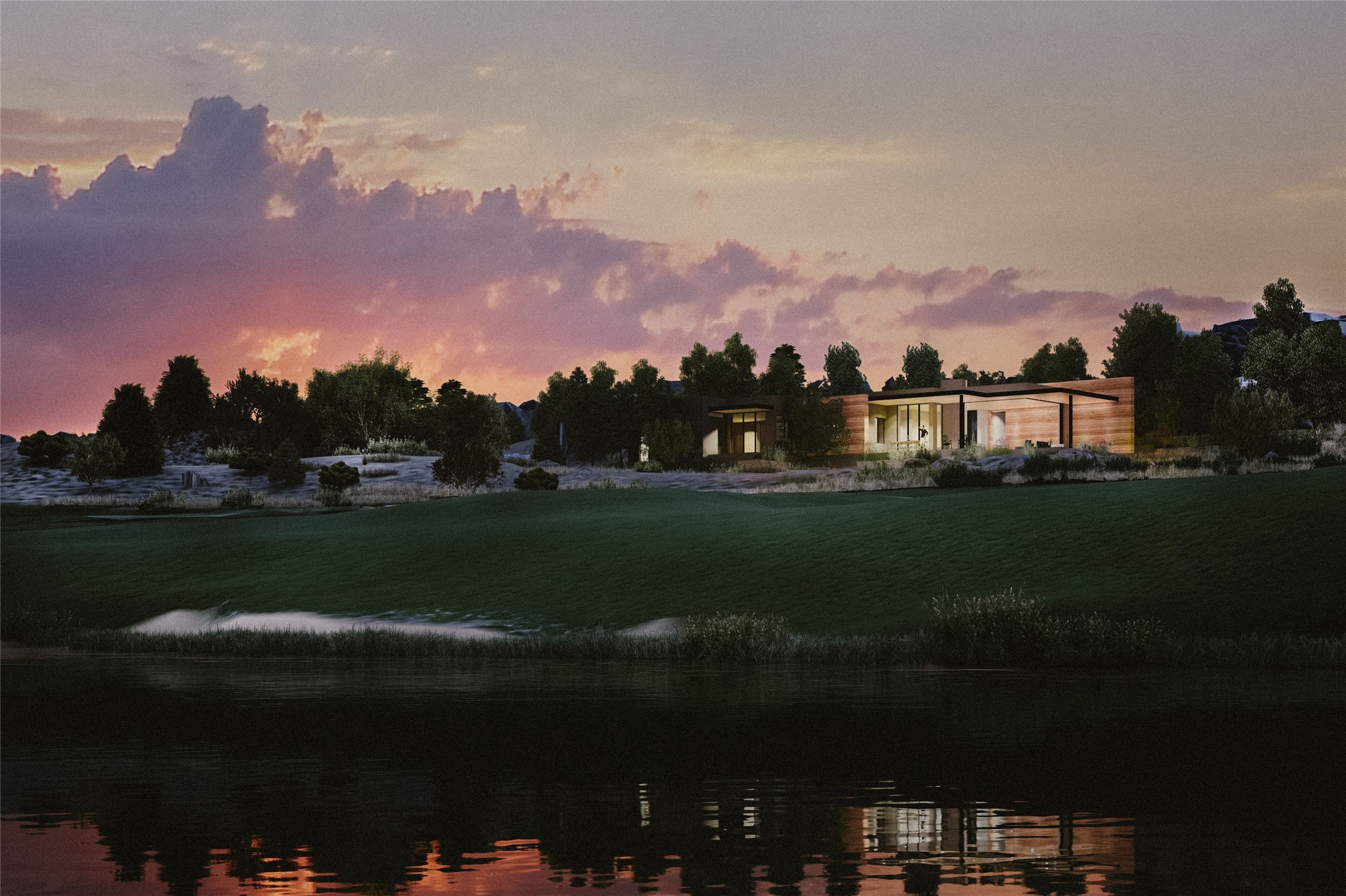 TO BE BUILT. With Las Campanas design approval and a building permit in-hand, groundbreaking can commence within weeks to create this one-of-a kind show place. The award-winning builders Zachary and Sons Homes will bring years of superior construction experience in Santa Fe to the execution of this sophisticated and warm contemporary single-level home. Sited along the fifth hole of the Sunset Golf Course, this coveted Parks Estates location excites with dramatic views of rolling green grass and lake, with a stunning mountain backdrop. New Mexico's own AIA Hunter Tidmore Redman has intentionally complimented the diversity of the landscape to create a masterpiece that will showcase all the principles of modern design and will result in a state-of-the art custom home in one of the most desirable settings in Las Campanas. The smart floor plan with three spacious bedroom suites, a media/flex room, three car garage and open living spaces bring the outdoors inside with walls of glass opening to central gardens and over 1700 square feet of outdoor living under the covered portals. A well-appointed chef's kitchen with an entertainment island will be the heart of the home. The builder will convey the architect's innovations with the use of modern materials like concrete, glass and steel combining seamlessly with traditional wood ceilings and walls complimented by natural stone elements. The buyer will be able to choose custom finishes and the striking result will provide not only an elegant framework for sophisticated living but a retreat that allows for the maximum absorption of the surrounding landscape and dramatic displays of Northern New Mexico light. Come live the dream and all that the gated community of Las Campanas has to offer which includes golf, spa, fitness, swimming, tennis, pickleball, equestrian center, dog park, trail systems, 24 hour security and a grand clubhouse with world class dining.