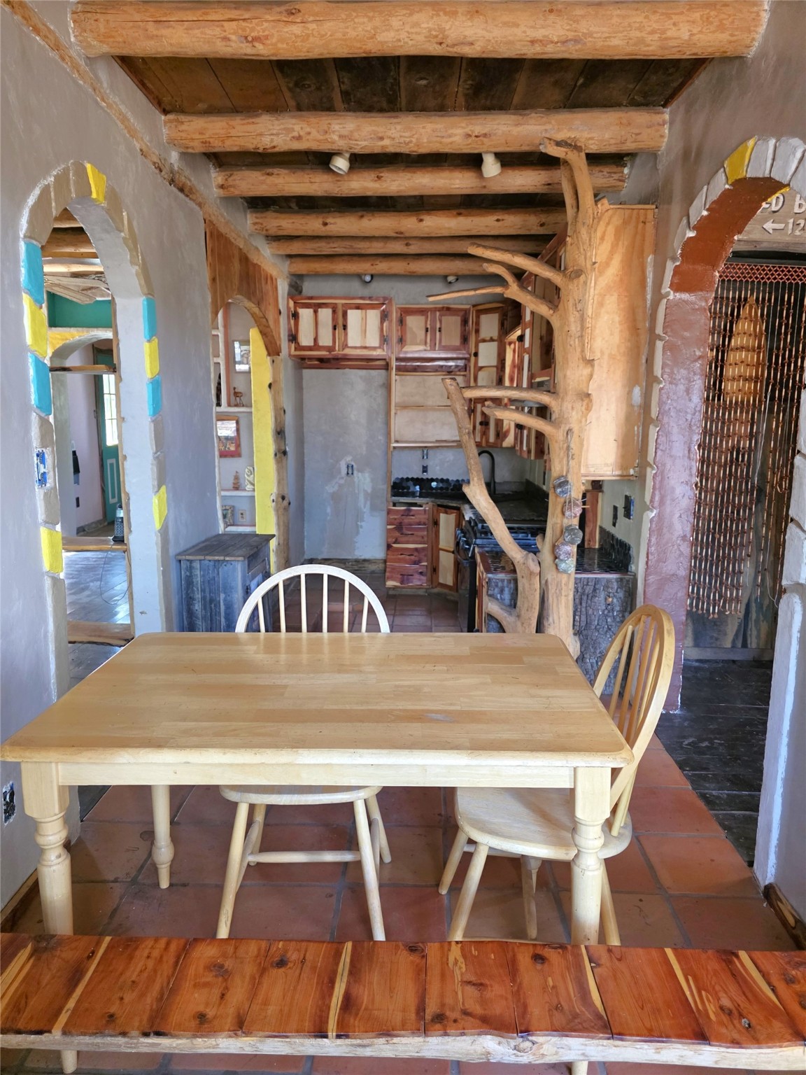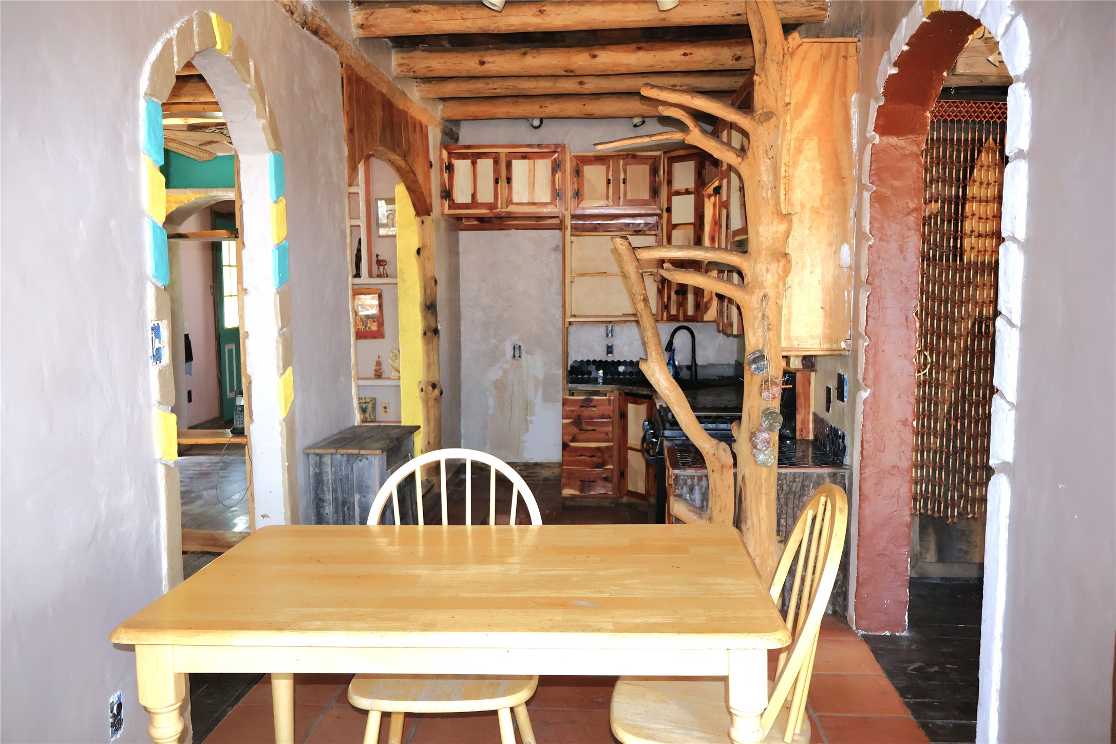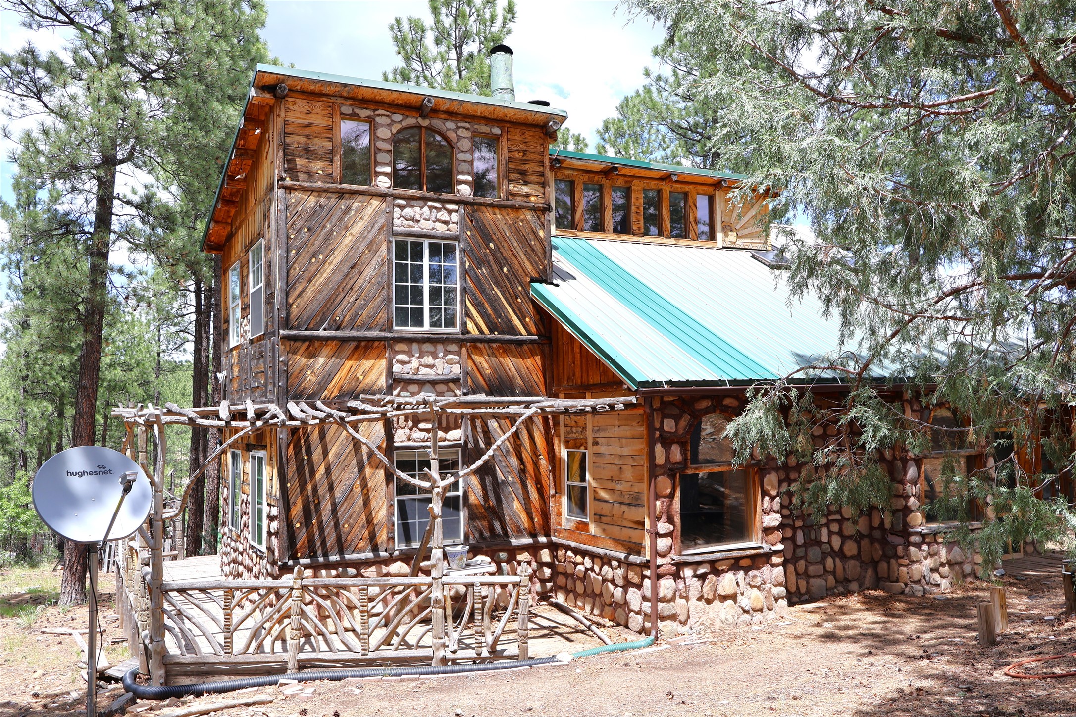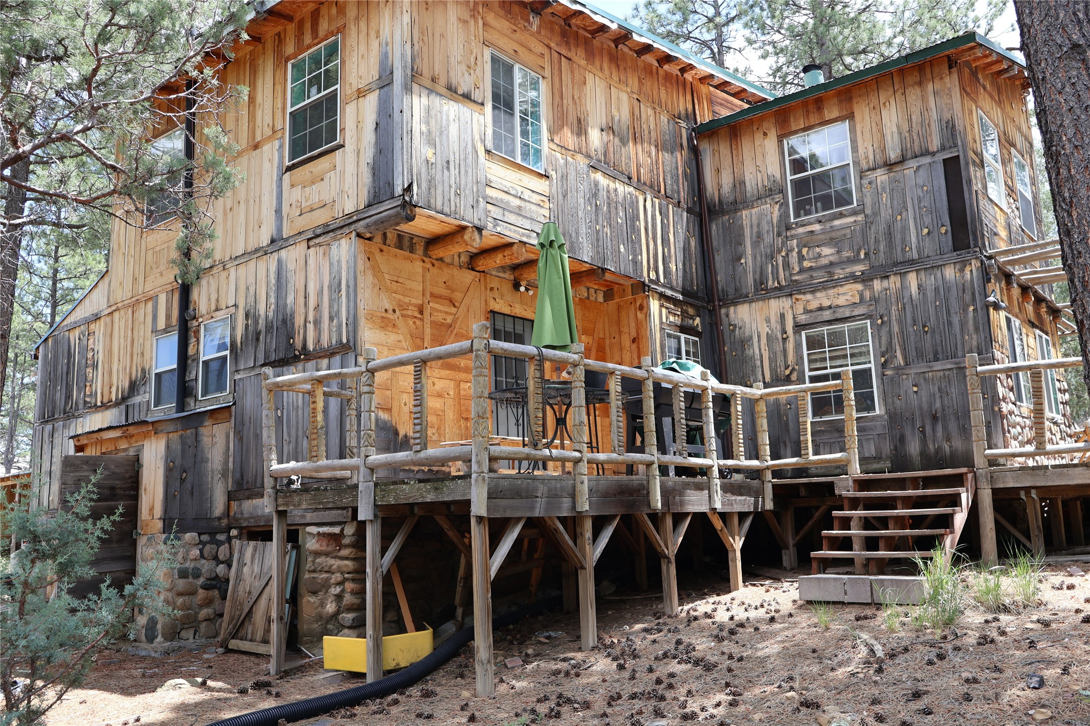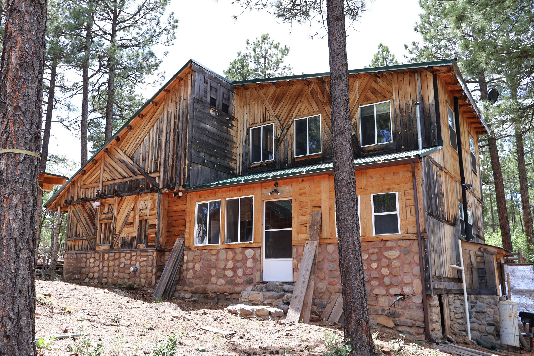 Experience the lush Sherwood Forest Subdivision in Torreon, NM! This carefully crafted 2-Bedroom 1-Bath home sits on nearly half an acre surrounded by tranquil forest. This property is ideal as a mountain getaway / retreat or as a primary residence! Enjoy the warmth of the kiva fireplace downstairs, a large primary bedroom and landing / loft upstairs. This home is spacious with a living area and den. Enjoy the detached carport coupled with two attached spaces for additional storage. An open deck overlooks the spacious backyard with a large pond. This home has mountains of potential, come and make it yours today!