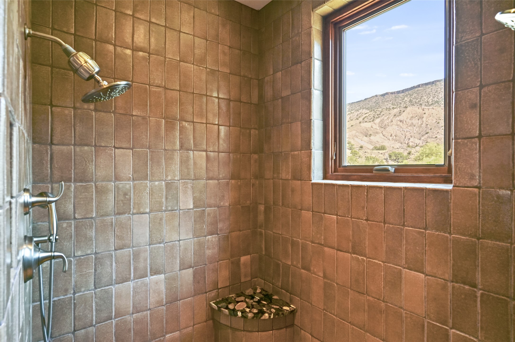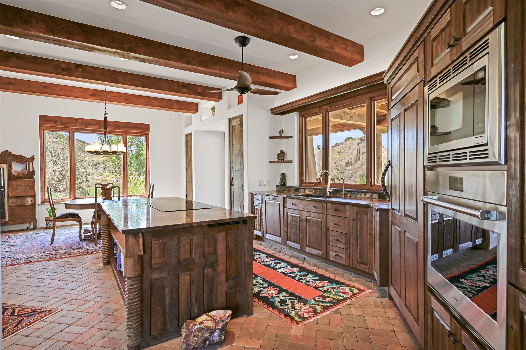 A rare opportunity to own a private wilderness sanctuary, on the market for the first time. This 39-acre self-sustaining refuge, lovingly named Rincn Escondido, "Hidden Corner," is tucked away in the foothills of Sierra Negra and borders Carson National Forest, offering unparalleled privacy just one hour from Santa Fe. Panoramic views of Cerro Pedernal, Sierra Negra, and the Jmez Mountains stretch across rewilded meadows, pollinator gardens, and a tranquil pond with a cascading waterfall.The 4,032 sq ft property combines a 3,059 sq ft residence with a heated garage and storage room, offering an additional 973 sq ft of versatile space. The home blends timeless Southwestern architecture with refined modern finishes, including hand-carved wood doors, artisan detailing, and locally sourced Namb brick floors that flow throughout. Each room is designed to maximize natural light and frame dramatic vistas. A chef's kitchen features a Sub-Zero fridge/freezer, Wolf oven, induction cooktop, and custom craftsmanship, while the spa-inspired primary suite offers a deep soaking tub and walk-in shower.Built for environmental stewardship, the home is fully powered by a grid-tied 20.16 kW photovoltaic system with four Tesla Powerwall 3 batteries and solar-thermal hot water. Passive solar design, radiant in-floor heating and cooling, and high-efficiency systems ensure year-round comfort.Whether a spiritual retreat, sustainable homestead, or luxury escape, this private refuge is more than a home--it is a living sanctuary.Video Link: https://youtu.be/VyCAPihgIhU