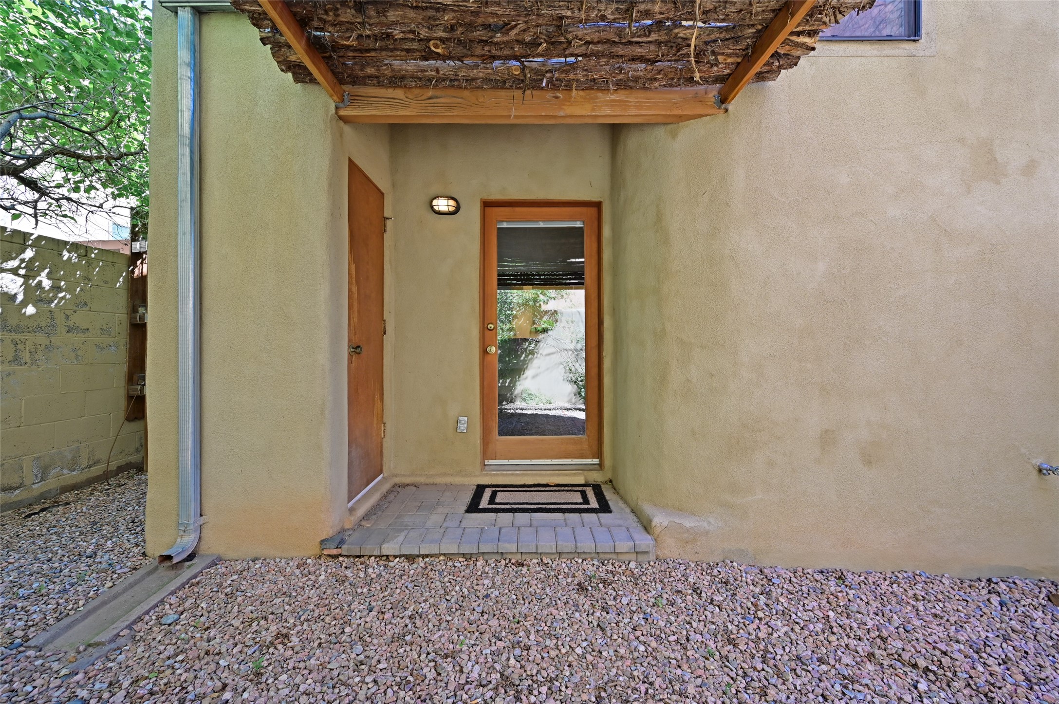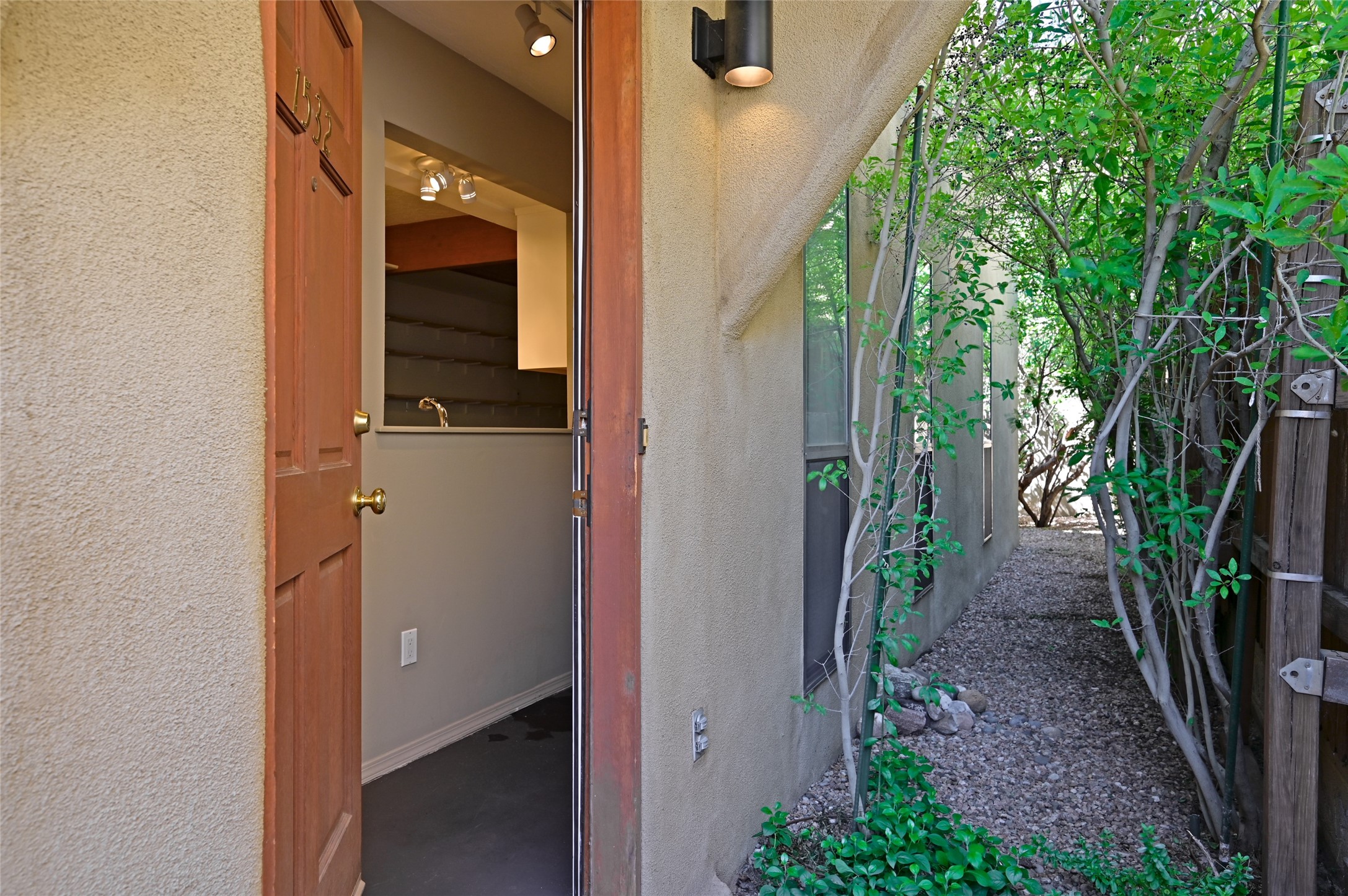 A charming townhome in the Las Americas development, located in the heart of Santa Fe. This inviting open-concept layout flows seamlessly from the living room to the kitchen. The living area features a cozy kiva fireplace, built-in bookshelves, and soaring vaulted ceilings. Upstairs, you'll find a spacious studio with a private balcony offering scenic views, while the primary bedroom is conveniently located on the main level along with a full bath for easy accessibility. The property also includes a fenced backyard with mature landscaping, perfect for relaxing or entertaining. Centrally located, this townhome offers close access to Santa Fe's vibrant shops, restaurants, and beautiful natural spaces. With several nearby trails, it provides the ideal balance of urban living and outdoor adventure.