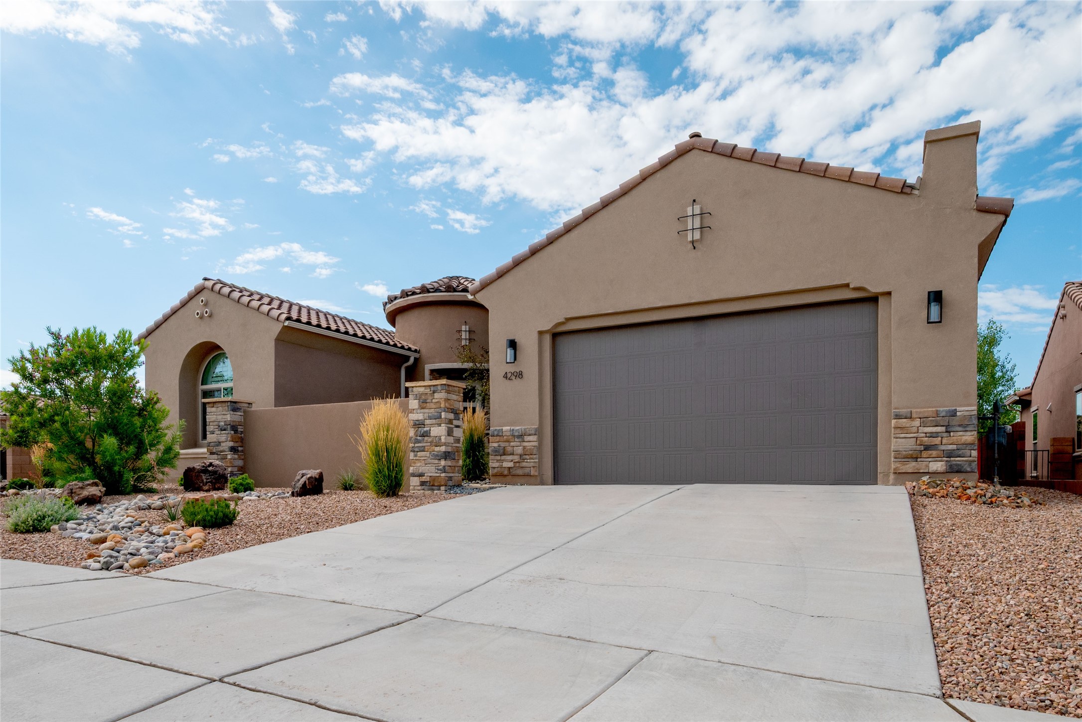 Discover the perfect blend of comfort, style, and convenience in this beautifully designed 2019 home, featuring two private en-suite bedrooms ideal for hosting guests with ease. High-level finishes throughout create a refined yet inviting atmosphere, while the thoughtfully landscaped yard offers year-round beauty with minimal upkeep. The open floor plan accommodates easy living with a kitchen any chef will love. The spacious en-suite bedrooms enjoy separation ensuring privacy for all. A flex room with courtyard window is ideal for home office, library or media room. The large, covered flagstone portal patio off the living room overlooks the water features, gazebo and garden. The oversized garage includes extra storage, making it easy to keep everything organized without sacrificing space for your vehicles. Did we mention this home is on a greenbelt? Designed for the busy professional or those ready to downsize without compromising quality, this home offers low-maintenance living in a serene setting-just move in and enjoy. Shopping, dining and medical options are all nearby. The Las Soleras community offers walking paths and greenspaces for residents to enjoy.