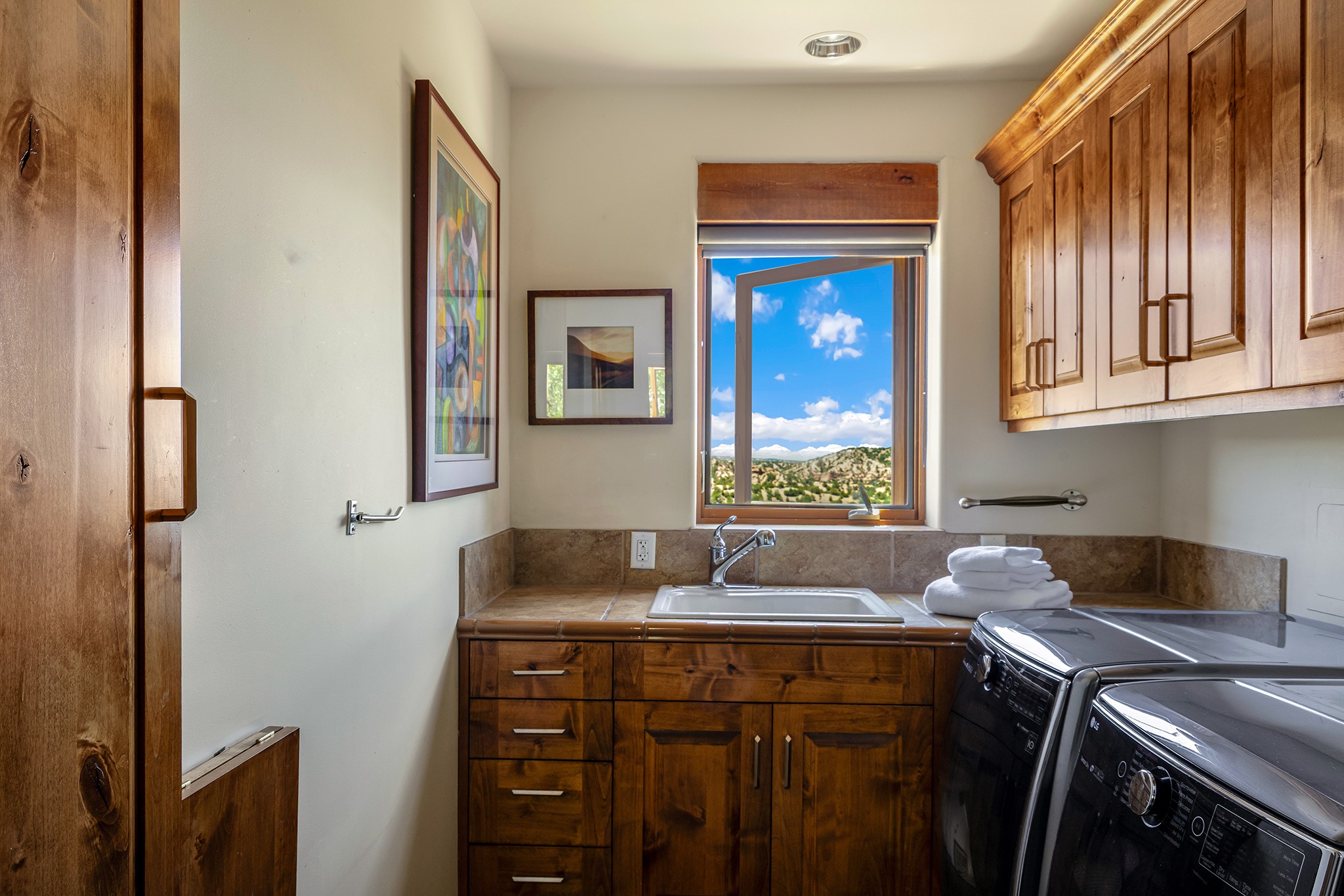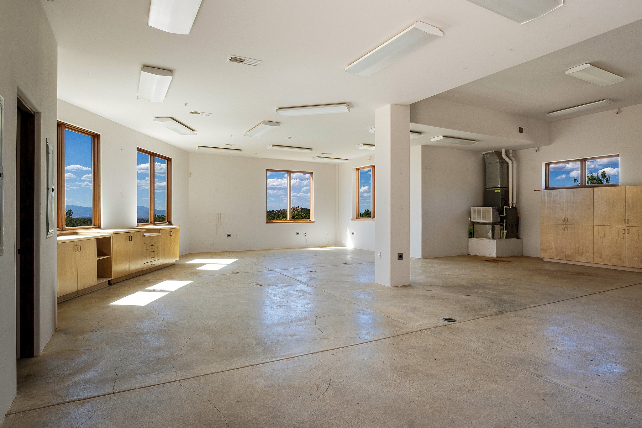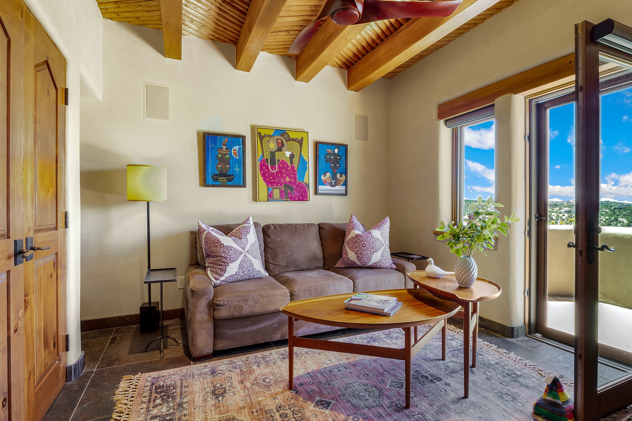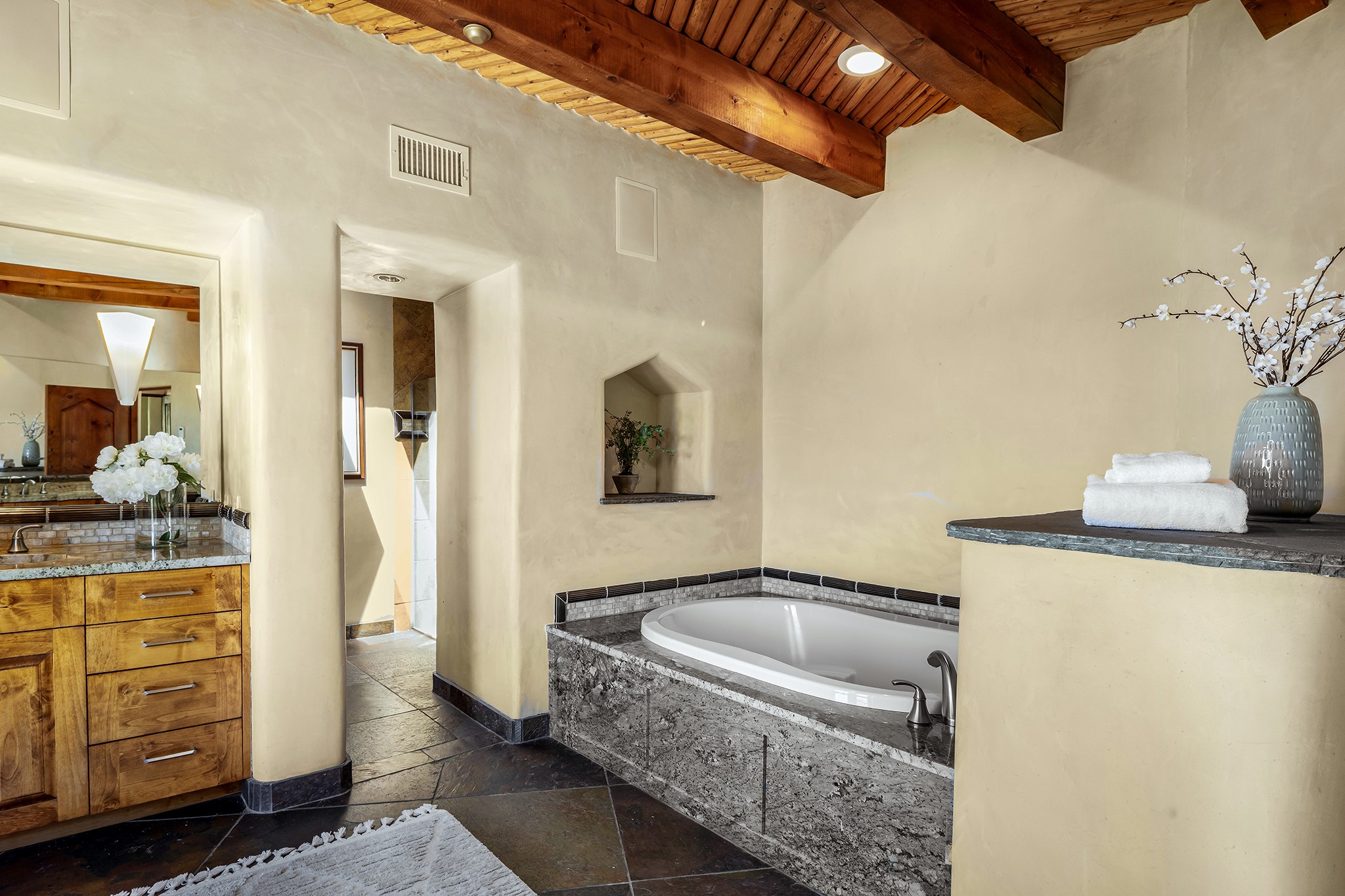 An exceptional Value in Bishop's Lodge Hills & Villas! Perched above the Tesuque hills on 2.38 acres, 9 Lodge Circle offers a rare combination of panoramic mountain views and a unique Southwestern design--all just minutes from the Plaza. Set within the gated community of Bishop's Lodge Hills and Villas, this extraordinary property includes a 4,300 sq. ft. main residence and a versatile 1,500 sq. ft. detached studio, with commanding views of both the Jemez and Sangre de Cristo mountain ranges. The main home is a masterclass in design, showcasing a unique architectural blend of contemporary and Southwestern influences. The central living area features disappearing glass doors that open to a sweeping west-facing portal--perfect for soaking in Santa Fe's golden-hour light. An outdoor cantina with a gas fireplace and built-in grill sets the stage for elegant al fresco entertaining.The chef's kitchen is equally inspired, with a spacious island, cozy banco, butler's pantry, dumbwaiter, and an expansive picture window framing the Sangres. A dramatic dining room with a raised octagonal ceiling and fireplace offers a captivating setting for both intimate and grand gatherings. The primary suite is a private sanctuary, complete with a secluded hot tub for sunset views and stargazing. Two guest suites each offer ensuite baths, while a separate office provides quiet space for work or reflection. The detached 1,500 sq. ft. studio--originally a woodworking shop-- brimming with potential as a creative studio, gym, or guest quarters. As a bonus, ownership includes social membership privileges at the world-renowned Bishop's Lodge Resort. With its new price of $3,395,000, this exceptional property presents a compelling value in one of Santa Fe's most coveted locations--where design, privacy, and inspiration converge.