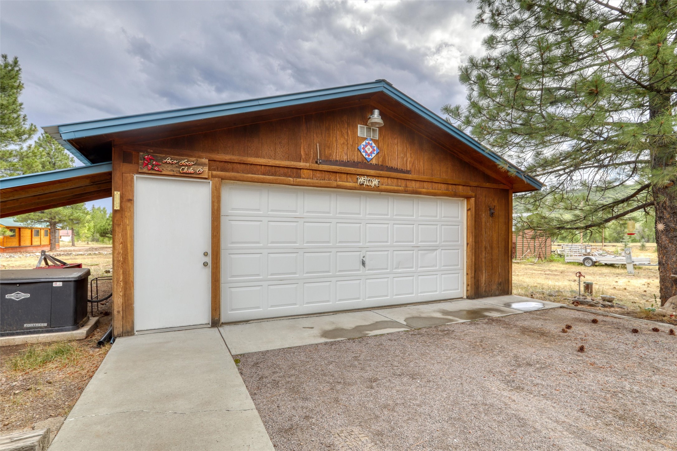 If you are looking for a cozy cabin to spend weekends, summers or permenately relocate to, this location is both convenient to Chama and the Chama River. Rio Chama Estates has year round access along county road 343 and the local public fishing access is less than a block away. With two bedrooms, 2 baths and an open kitchen and living concept, this layout is both private but also great for entertaining and guests. All the appliances will stay and include trash compactor, dishwasher, range, refrigerator and washer/dryer. There is an attached 1 car garage and a detached 2 car garage, which is great for all the mountain toys or expansive workshop space. Already set up for for your furry creatures, the dog pens stay and the electronic doggie door is optional. The owner has taken great care of the property and recently installed a brand new, state approved septic system and back up generator for when the public power goes out. Deer and elk freely roam the area, as well as turkey and the occassional bear passing through. Birding is also spectacular in Northern NM. Enjoy the recreational opportunities available in the area from this well maintained home base.