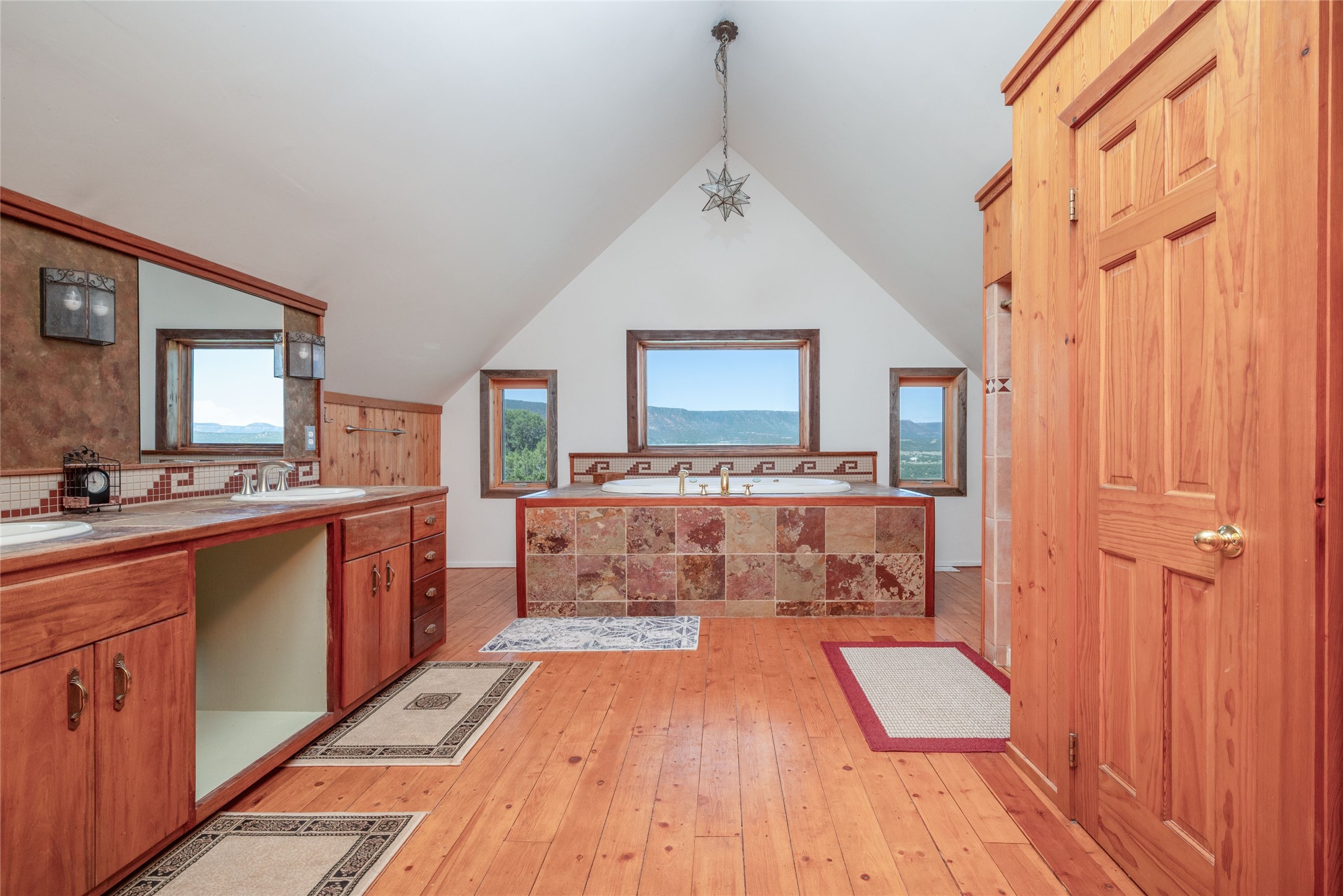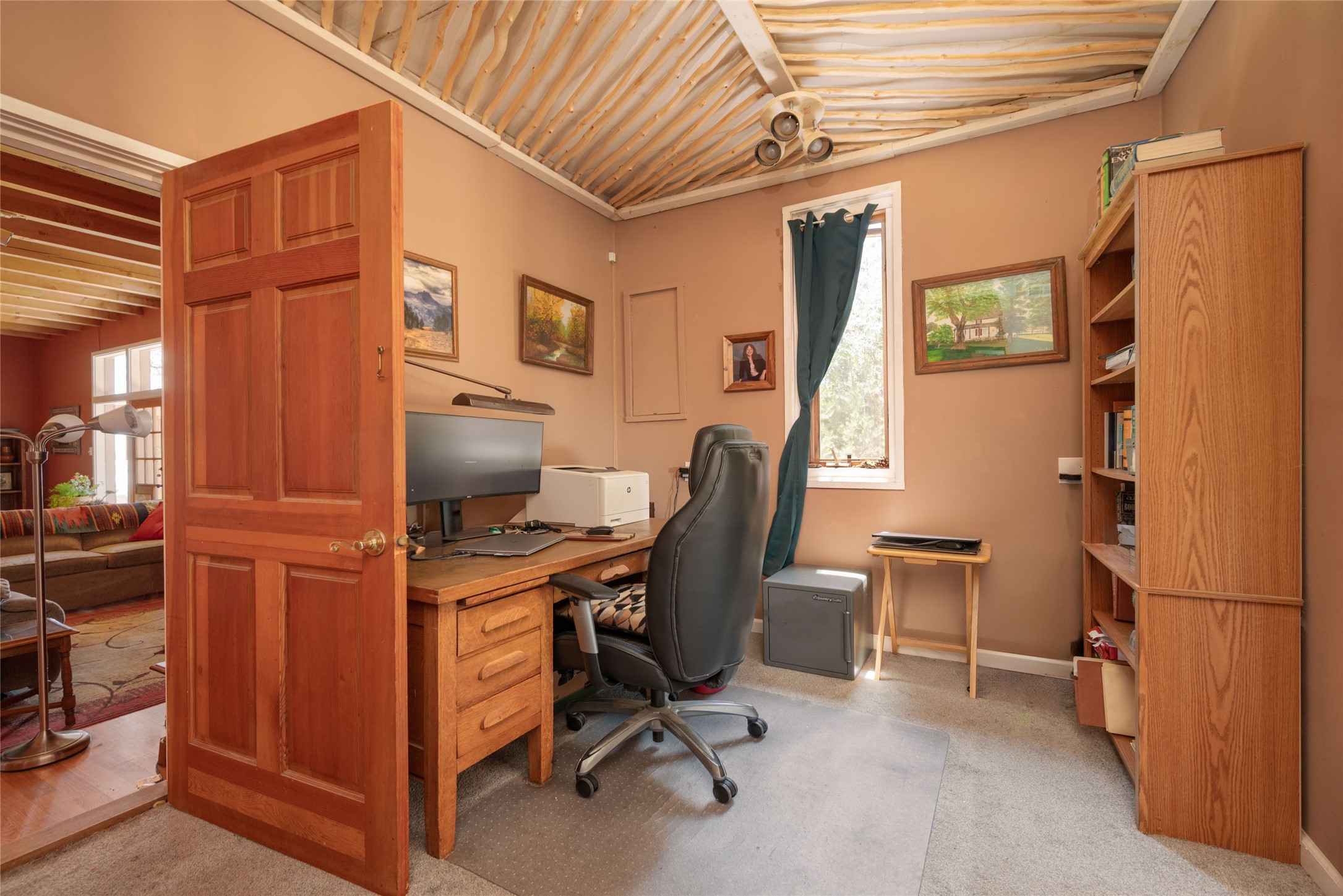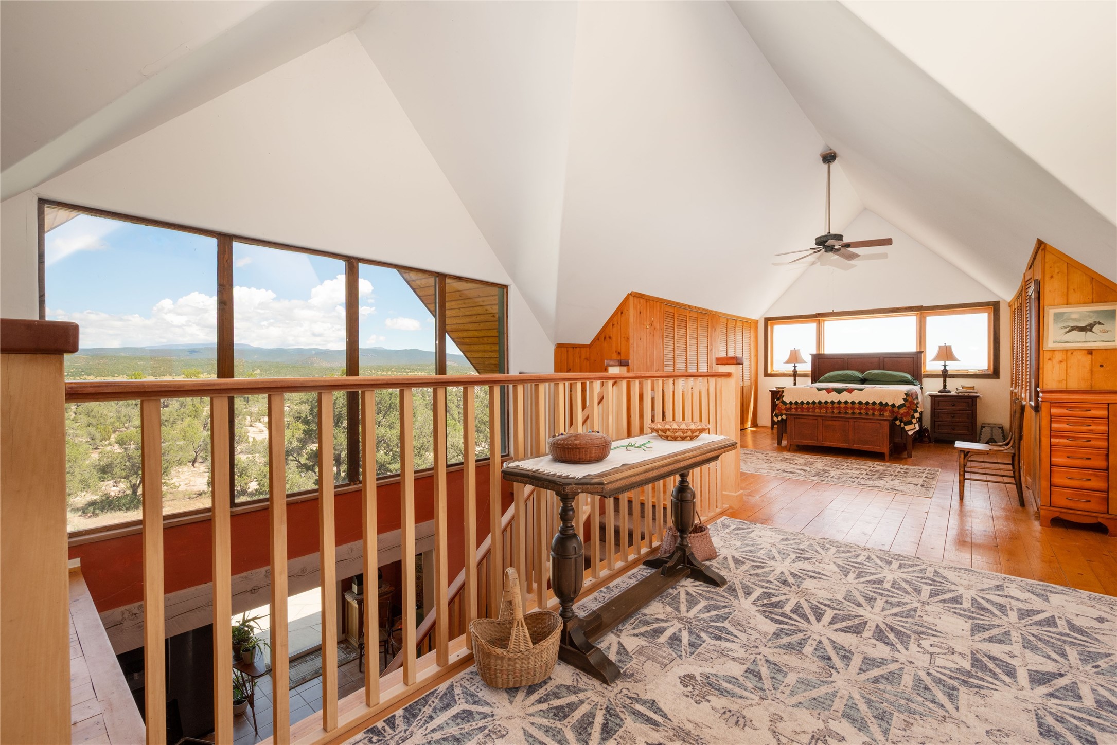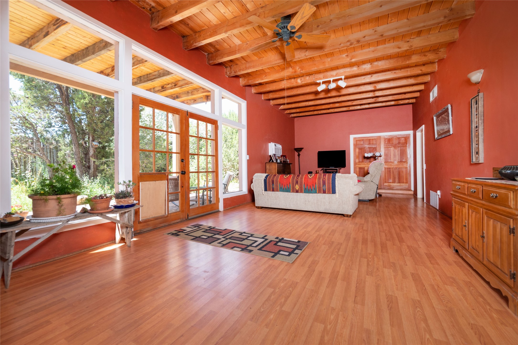 Expansive Views and Endless Possibilities: A Country Retreat on 10 Acres Near Santa FeTucked away in the tranquility of Northern New Mexico, this distinctive property offers a rare combination of privacy, natural beauty, and versatility. Situated on 2 acres with three additional deeded lots--totaling 10 acres--this home invites a lifestyle immersed in sweeping vistas, open skies, and quietude, all within easy reach of Santa Fe.The main residence spans 2,214 square feet, plus 969 sq.ft guest house for 3,383 sq.ft. thoughtfully designed to capture the light and landscape from every room. Warm wood beams, natural flooring, and vaulted ceilings bring a rustic elegance to the interior, enhancing the home's connection to its surroundings. A sun porch entry welcomes you in, setting the tone for a home that is both inviting and expansive.The heart of the home is a custom-designed kitchen with a generous island and adjacent dining area. A gas fireplace adds warmth and ambiance, making it a comfortable space for both quiet meals and lively gatherings. With three bedrooms and three baths, the layout offers flexibility, with the bedrooms that can serve as home offices.The primary suite is a true retreat, featuring a private walk-out balcony, a luxurious whirlpool tub, and breathtaking 360-degree views of the surrounding high plateaus and mountains. Every aspect of this space is designed to create a sense of peace and immersion in the landscape.Attached to the main home is a 969-square-foot guest house, complete with a private entrance, view patio, and three-quarter bath. Whether used for visiting family, long-term guests, or as a rental opportunity, this space offers comfort and privacy without compromising on style.Beyond the living spaces, the property presents substantial value in its land. The three additional lots included in the sale not only offer privacy but also development potential. One of the lots (Lot 3) is already equipped with a transformer and community water access, making it ready for construction--ideal for a second home, studio, or income-generating property.Modern infrastructure meets rural living, with high-speed internet already in place and reliable year-round road access. Located just 25 minutes from Eldorado and another 10 minutes from Santa Fe, the home offers a rare balance: peaceful country living within commuting distance to town amenities, cultural attractions, and restaurants.This is more than a home--it's an opportunity to embrace a different pace of life, where wide-open space, architectural warmth, and modern comfort converge. Whether you're seeking a full-time residence, a family compound, or an investment with room to grow, this remarkable 10-acre estate invites you to imagine the possibilities.