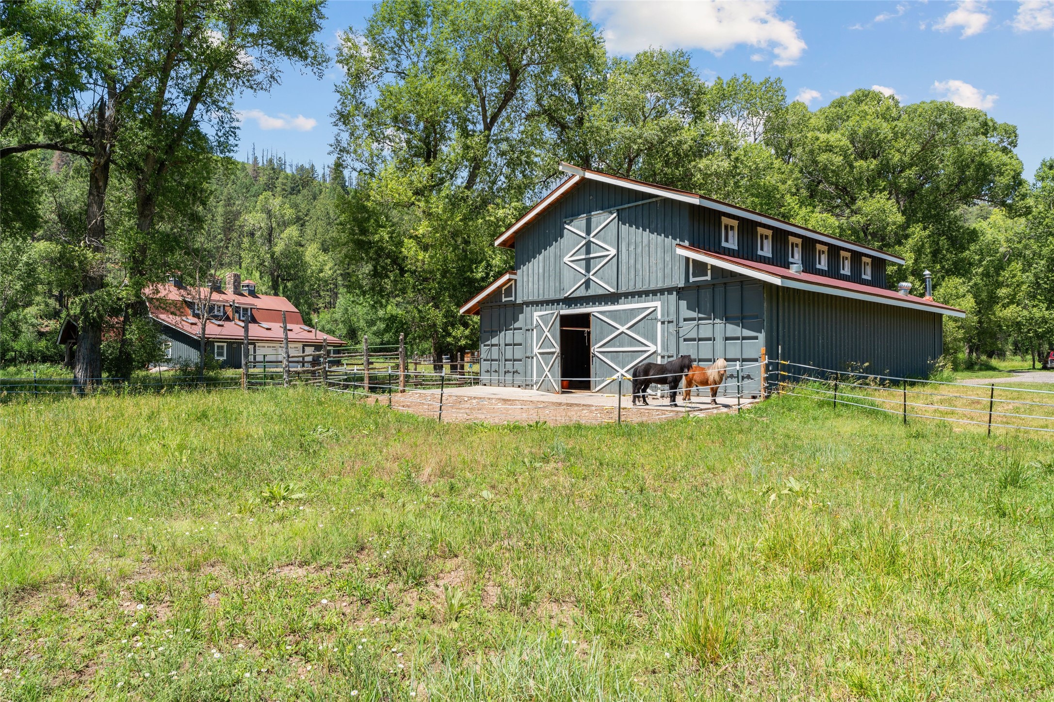 Rio de Vega is a remarkable 74.54-acre legacy estate offering unmatched natural beauty, abundant water, and exceptional infrastructure just minutes from Las Vegas, NM and the United World College. Known to the family as "The Playground," this property blends comfort, creativity, and Northern New Mexico wilderness in a way that is truly rare.The custom 4,200 sq. ft. main residence--originally a barn kit--was transformed into a warm, refined home by designer Pedro Marquez, featuring pine siding, alder doors, and thoughtful architectural detail throughout. A 2,000 sq. ft. guesthouse provides additional space and privacy with its own 500-gallon propane tank and independent septic system. A third septic and 220 electric are already installed, creating a ready site for a future home or structure. The 2,610 sq. ft. drive-through barn is a standout feature, built atop teak-floored storage containers and framed with canyon-harvested red fir. Additional outbuildings include a rebuilt, powered chicken house and multiple storage structures.Water is one of the property's greatest assets, with nearly half a mile of Gallinas River frontage, three ponds (including spring-fed and bentonite-sealed), and a water table only 6 feet deep. Jersey barriers along the riverbank help protect the property during high-water events. High-speed internet, a Cummins generator, and year-round access support easy, reliable living.The land is alive with incredible wildlife, including elk, deer, turkey, and other native species that frequent the property daily. Rio de Vega also comes with existing elk tags, and per the seller, landowners apply annually to the New Mexico Department of Game & Fish for E-Plus Landowner Permits--a process the current owner has never had difficulty obtaining.With its scenic landscape, strong infrastructure, abundant water, and exceptional recreational potential, Rio de Vega is a rare opportunity to own a truly special Northern New Mexico estate.