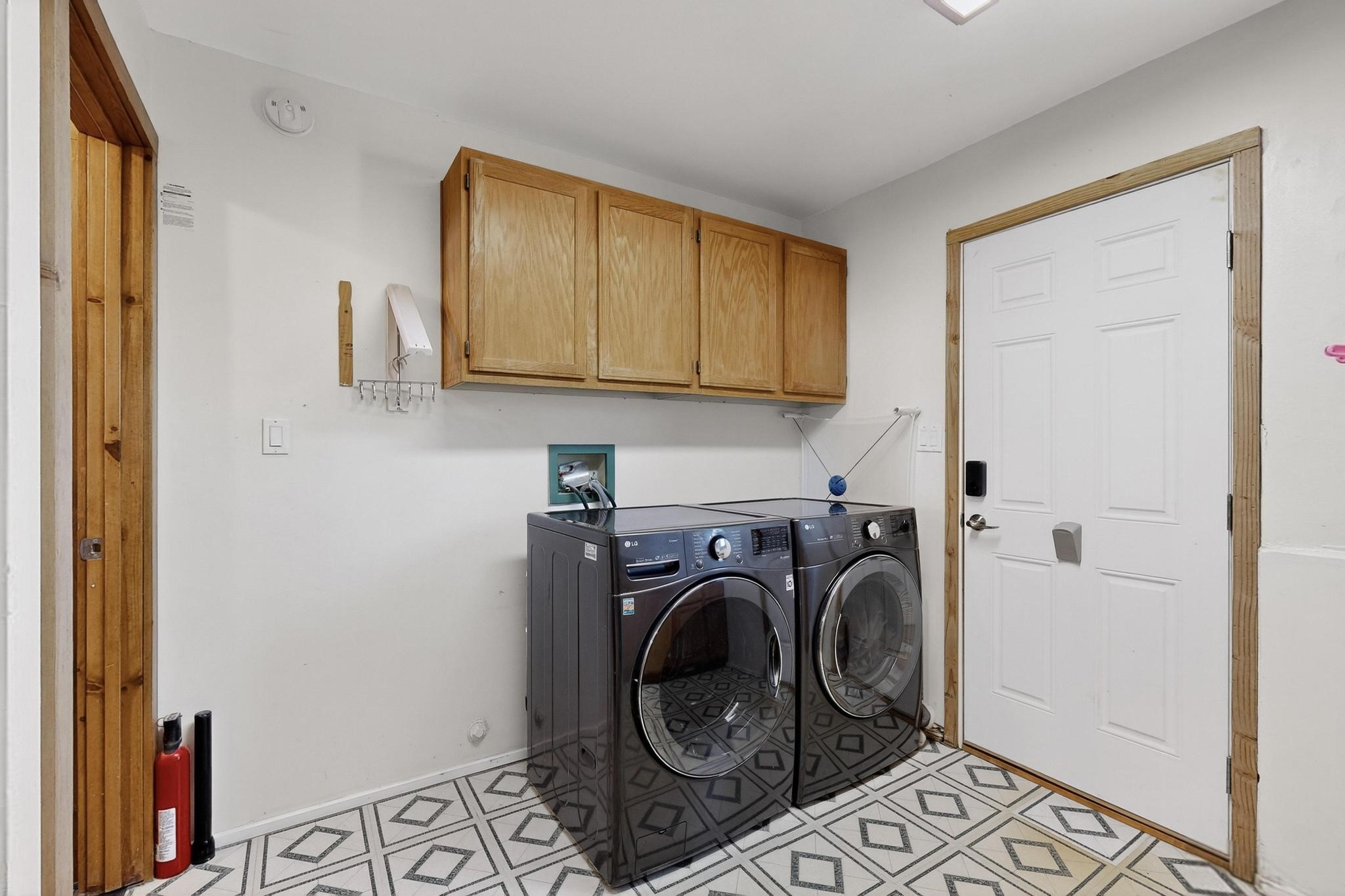 Priced to Sell! Wonderful passive solar trilevel design nestled on a hilltop with decks and a lighted gazebo enjoy the sweeping Sangre's and Pecos mountain views. A flexible floorpan with the owners suite, kitchen, dining and living areas on the main level. A TV / family room, and an office upstairs with a view deck. A walk out lower level includesl 2 guest bedrooms, a full bath and laundry. The 36' x 29' heated garage also has a workshop and storage room. In 2023 the stucco and roof were replaced, 3 Bosch mini splits added, a new tankless hot water heater, plus new windows and storm doors. 2 trex/wood decks, rain downspouts and the kitchen appliances. In 2024 the well pump was replaced, and there is a 1500 gallon underground cistern. The underground 500 gallon propane tank is owned, the hot tub is ready with fabulous views. All this on 5 acres, No HOA, horses and chickens welcome, only minutes to Eldorado area local shopping and services, or into historic Santa Fe.