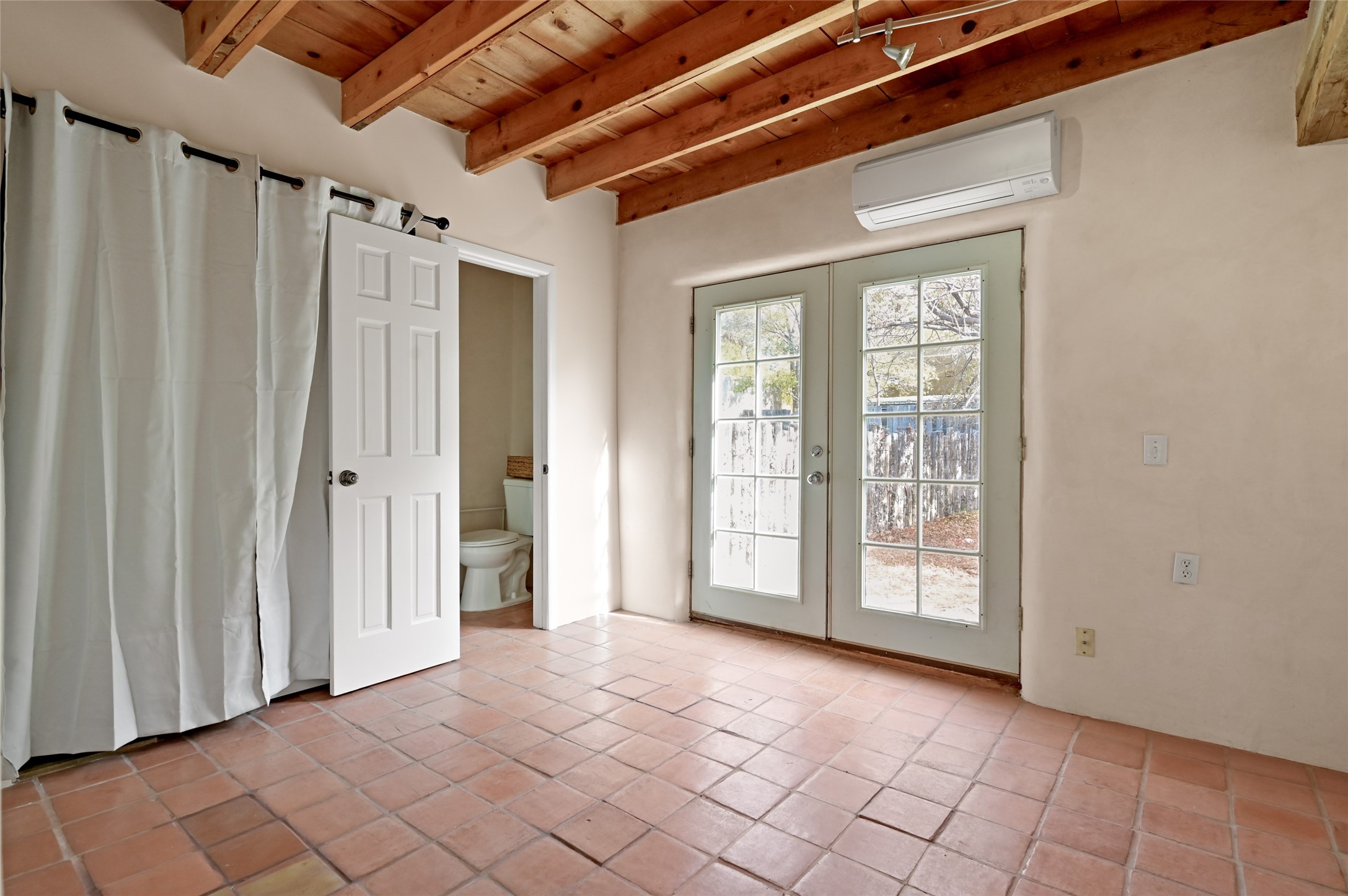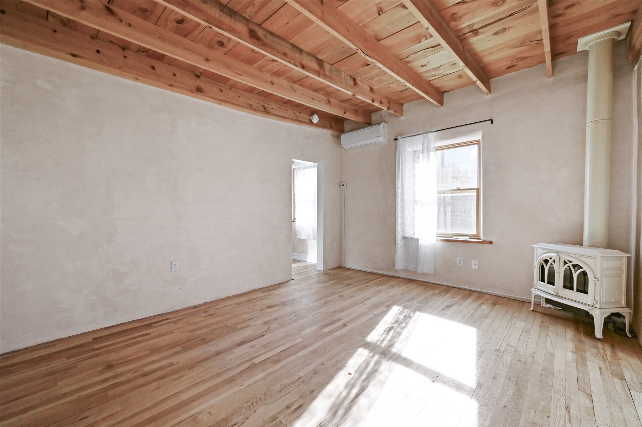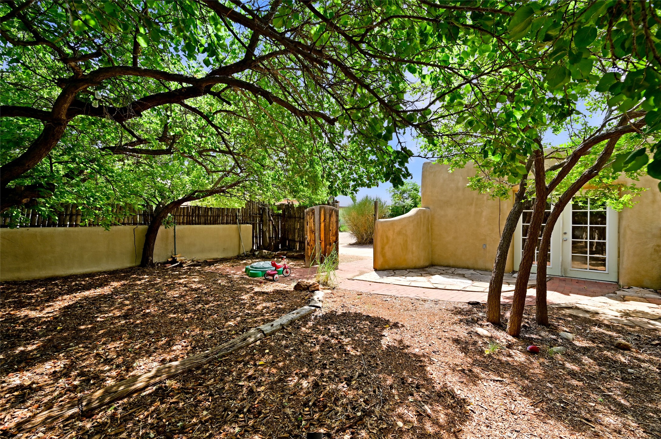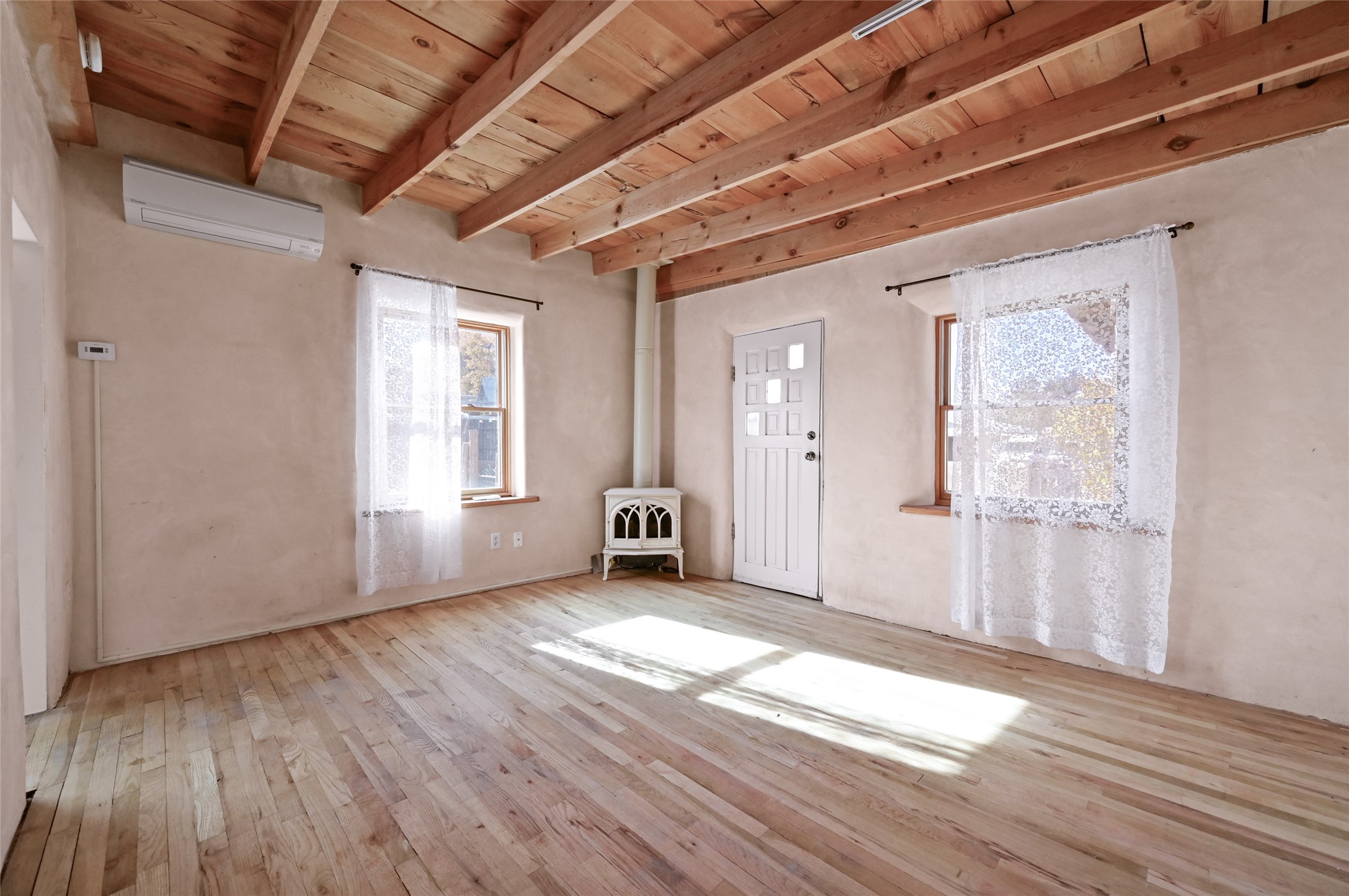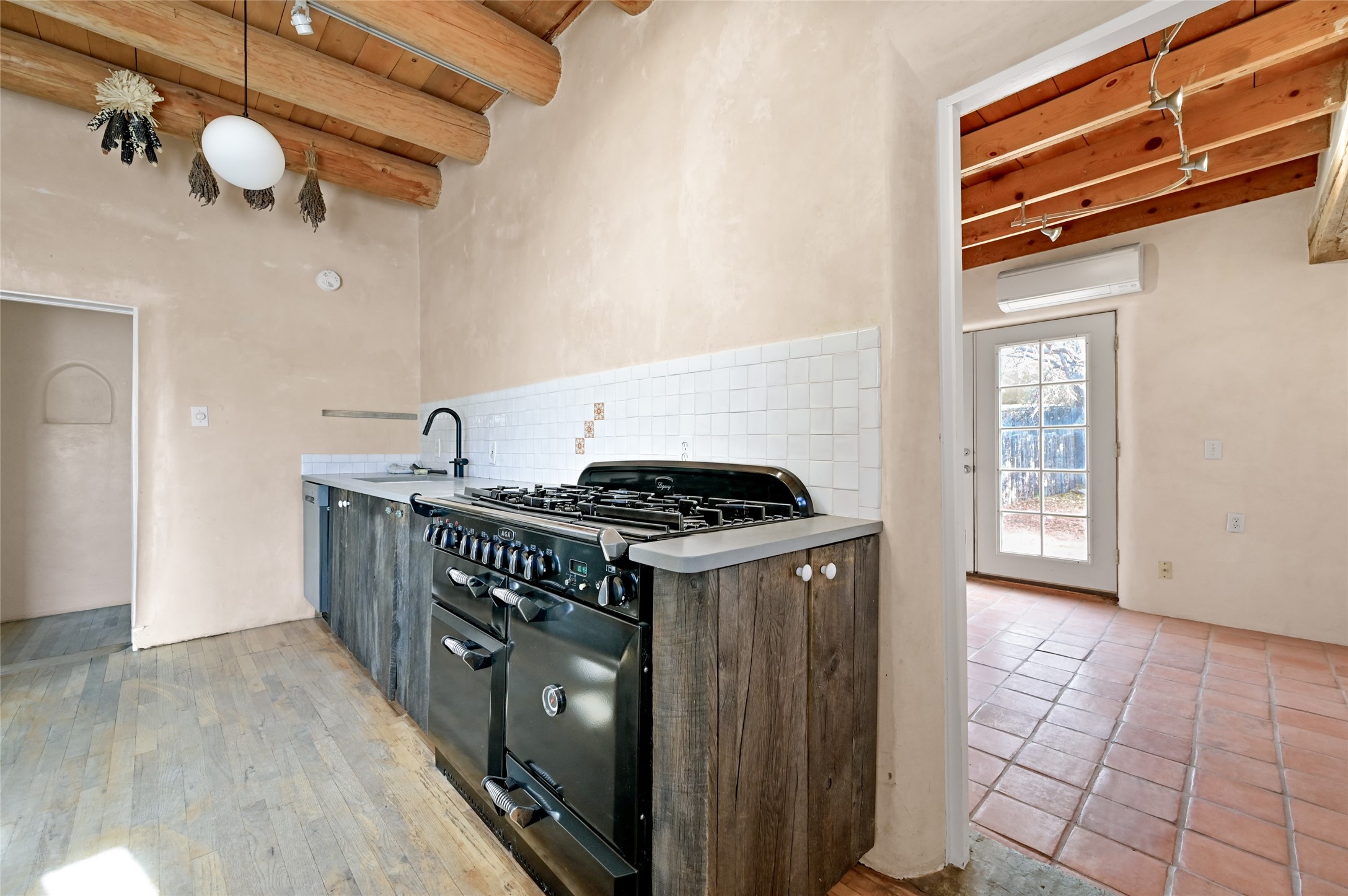 Charming 2 bed/2.5 bath + bonus room/office single level adobe home on corner lot w/thoughtful modern upgrades in centrally located neighborhood. Walk to coffee shops, restaurants, parks, and ride the Rail Trail to the farmers market, concerts, and events in the Railyard District and historic Santa Fe Plaza just minutes away. Versatile ~1400sf layout w/bright South facing living room & eat-in kitchen w/abundant cabinet space, designer AGA oven, & new stainless-steel appliances. Classic Santa Fe details throughout with hardwood floors, vigas, niches, Talavera tile, and plaster walls paired with recent updates such as a brand new renovated half bath in the bonus room/office. Enjoy customizable temperature control with zoned heating/cooling with mini splits and gas fireplaces & heaters. Ample outdoor living and entertaining space with large walled front and back yards with mature apricot trees. Don't miss your chance to own this cozy adobe home in the heart of Santa Fe!