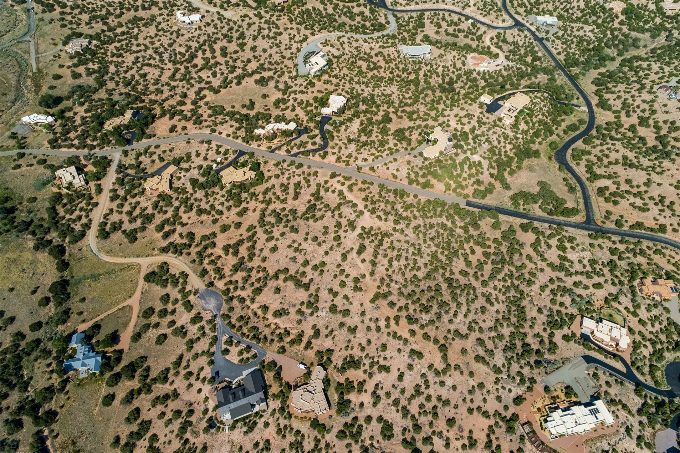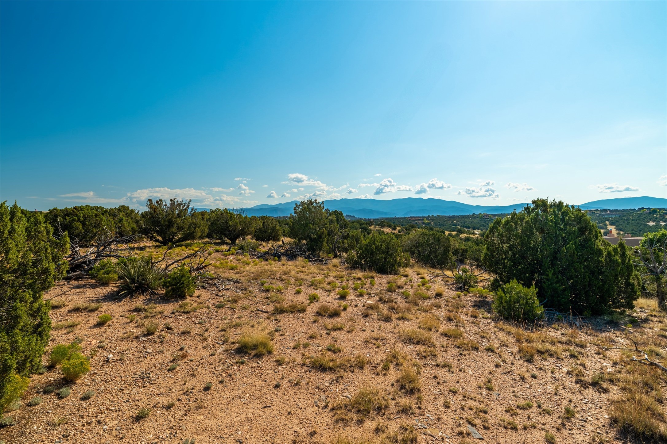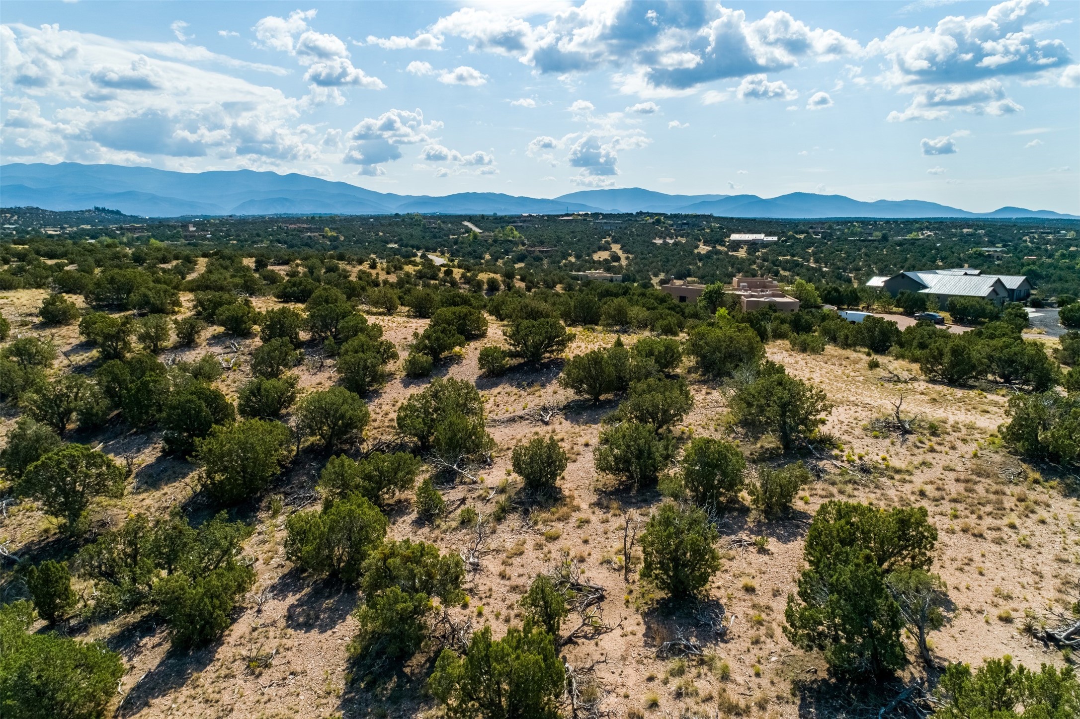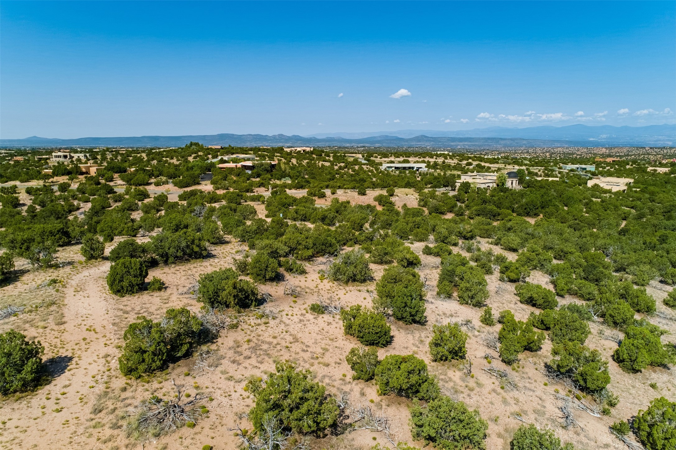 This outstanding 7.5-acre "top-of-the world" estate lot offers proximity to town, ease of access, privacy and sweeping panoramic views. The offering consists of two lots that can be used to craft an exceptional estate or multi-generational compound. This is the only lot of this size in the area with generous building site options and a shared well. Natural gas and electricity are in the street. The unobstructed views of the Sangre de Cristo, Jemez and Sandia Mountains make this an exceptional offering. Building plans and consultation available from Modern Design+Construction.