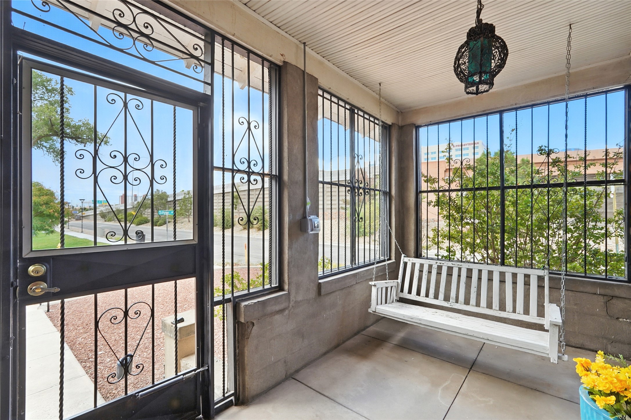 Seller to offer up to $10,000 towards buyers closing costs or interest rate buy down, REC with 20% down Discover the soul of historic Albuquerque in this captivating Huning Highlands 2 story bungalow! This 4 bedroom gem radiates timeless style and character, from its gorgeous original hardwood floors and crown molding to the stunning natural stone facade. Gather around the cozy fireplace or retreat to the beautifully updated kitchen, featuring sleek quartz countertops, a subway tile backsplash, and a charming breakfast nook. Step into a private paradise in the lush backyard, a verdant haven brimming with vibrant flower gardens, fragrant rose bushes, and towering trees--an entertainer's dream! The home also boasts an updated bathroom, a newer roof, and a huge laundry room with endless storage. An automatic gate leads to a two-car garage and carport. ...Plus, a fantastic basement offers.......even more possibilities. All this, perfectly situated across from Highland Park, with the city's best dining, shopping, and museums just moments away. This isn't just a house; it's a piece of history, reimagined.