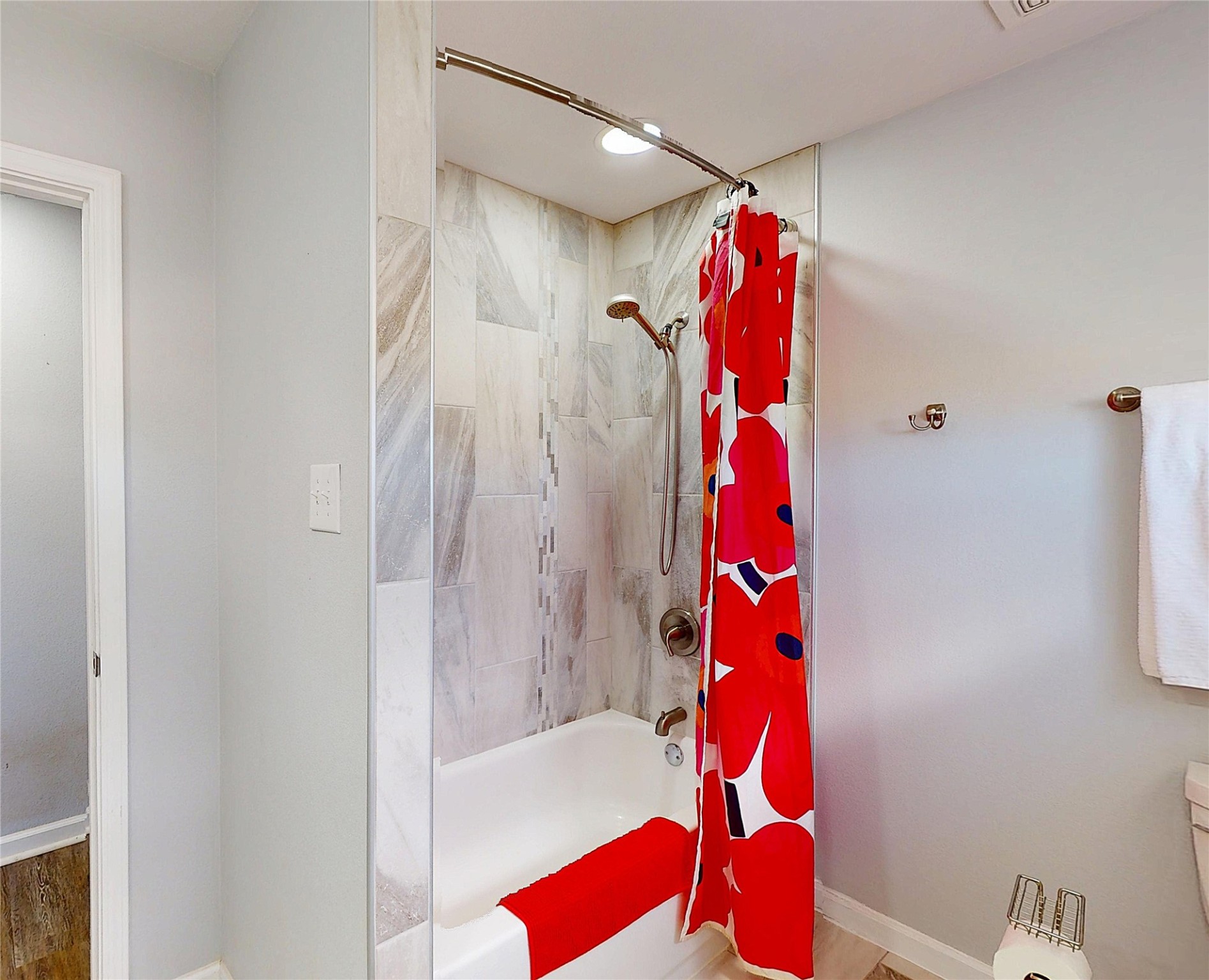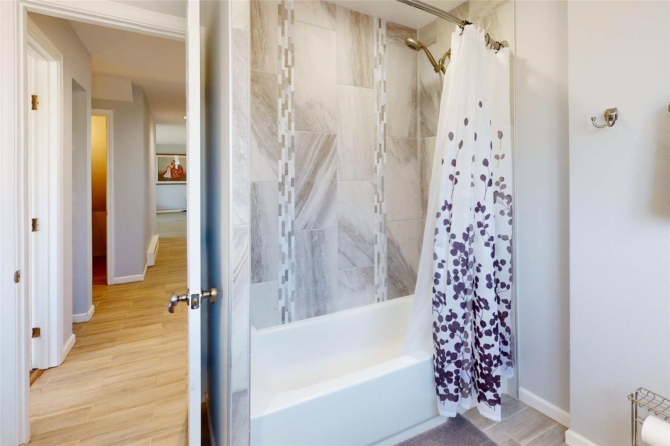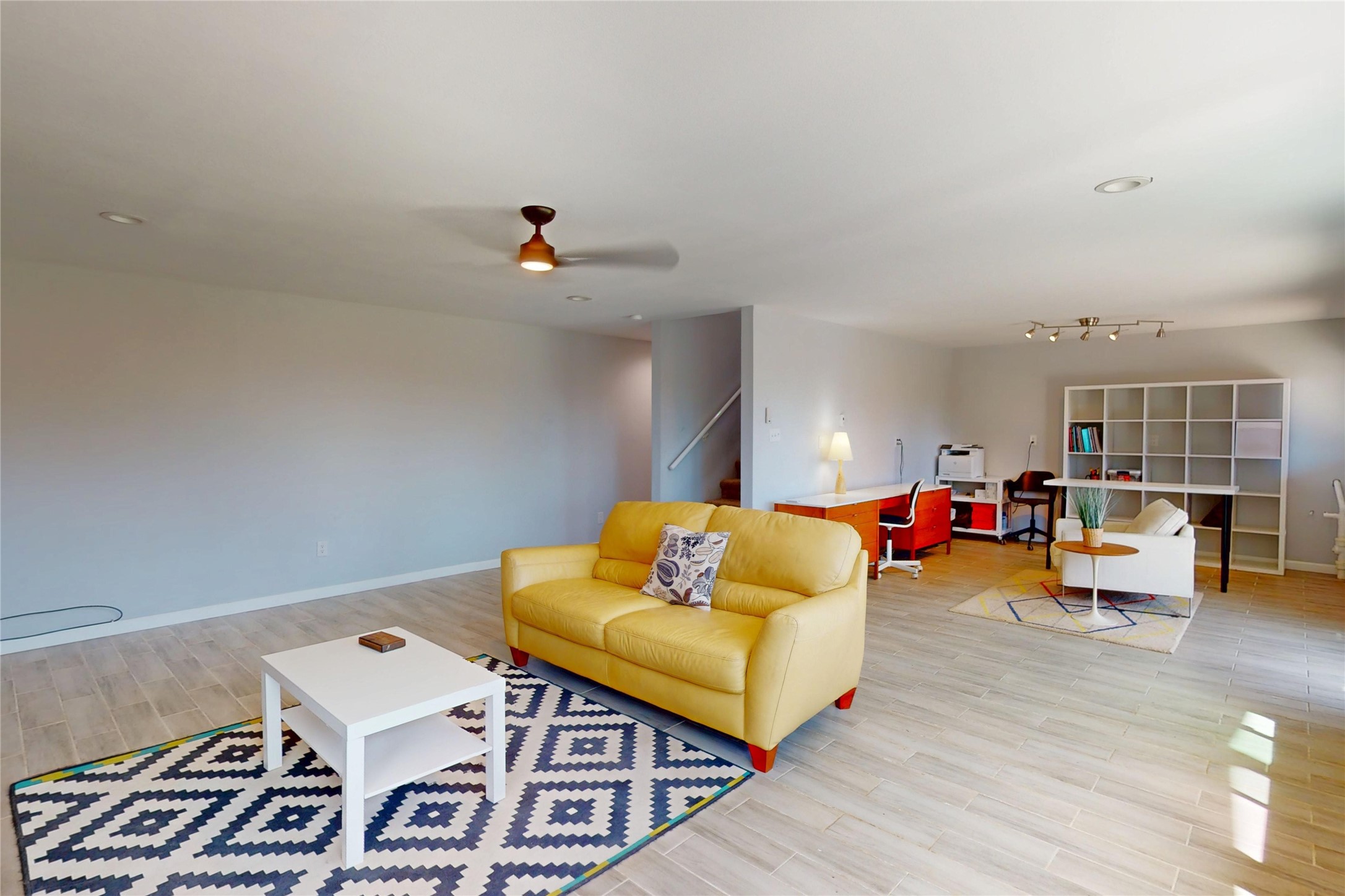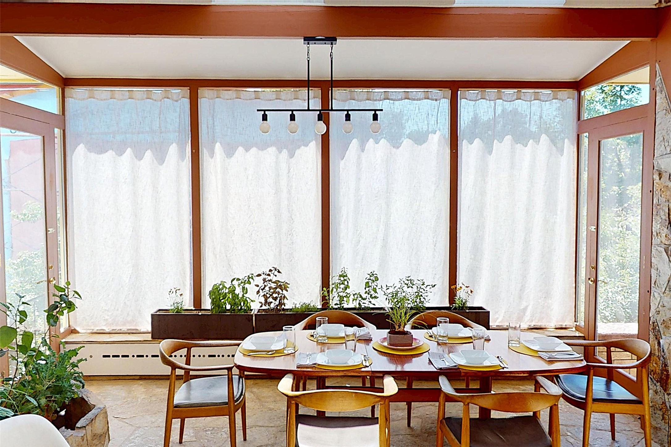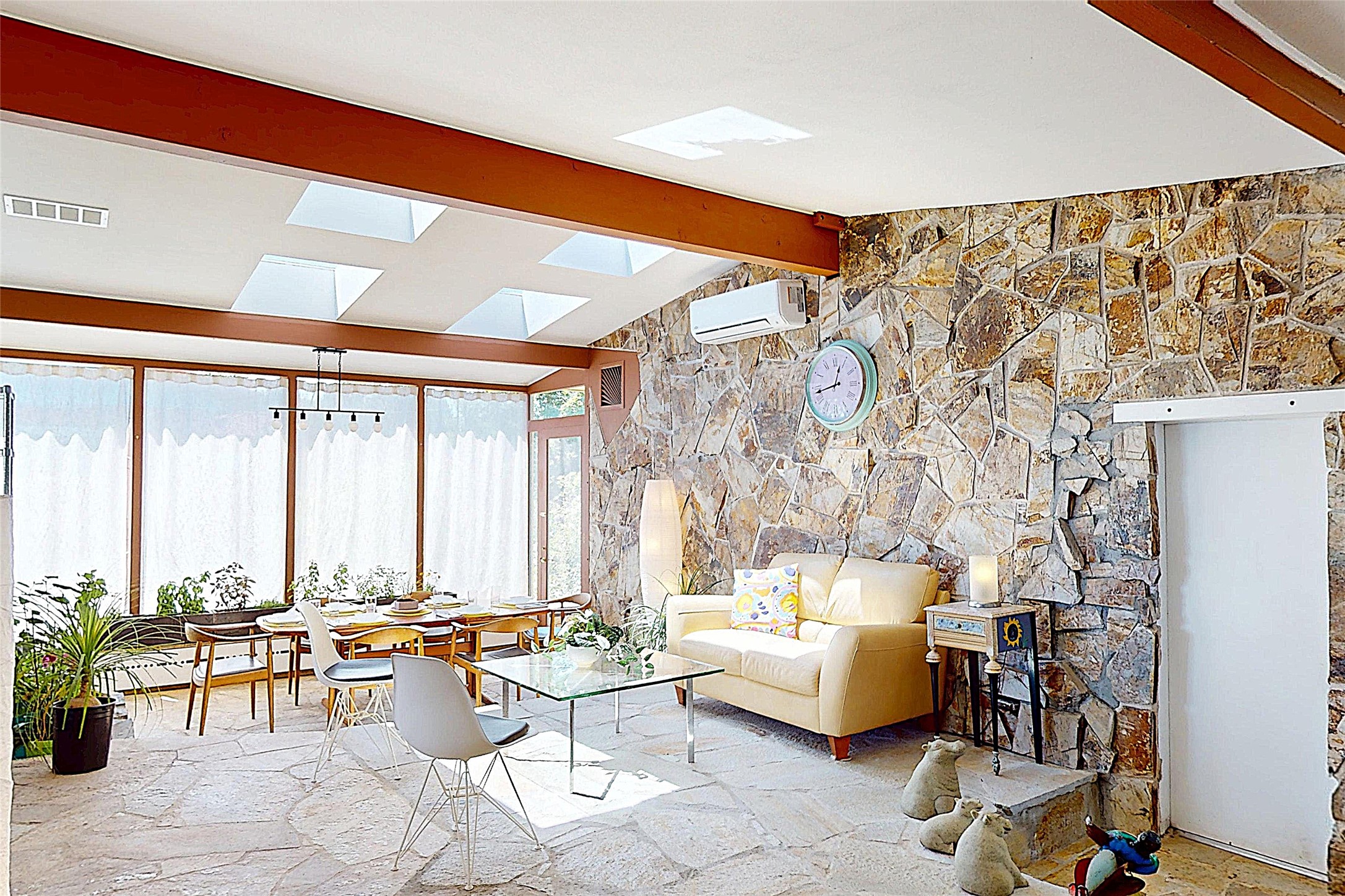 Perched on the canyon's edge, this 3,200+ sq. ft. home offers sweeping canyon and mountain views. The sun-filled entry atrium, with expansive windows and flagstone flooring, welcomes you into the home with a versatile space that offers so many options. Through French doors, the spacious living room features vaulted ceilings with exposed beams, a cozy fireplace, and picture windows that frame the stunning scenery. The living area opens to the kitchen, complete with updated cabinetry, quartz countertops, and stainless-steel appliances, including a Bosch dishwasher and a Caf dual-oven induction stove. Just off the kitchen is a deck where you can enjoy spectacular sunrises or evening shade with canyon breezes. The main level hosts a primary suite with an ensuite bath featuring shaker style cabinets and a curved-glass shower. A second bedroom with deck access and a full bath complete this level. Downstairs, a large den with brick fireplace opens to the fully fenced backyard, joined by a third bedroom, full bath, generous laundry room, and abundant storage. Mini splits create year-round comfort, complemented by gas hot water heat and two fireplace inserts. Outdoor amenities include terraced landscaping, a covered patio, and a backyard with access to the historic Gonzales Road Trail, connecting to the Bayo Canyon Trail system. Barranca Elementary, community pool, tennis courts, soccer fields, and a park with pavilion are all close by. Upgrades include: 2025: Quartz countertop, sink, disposal, ceiling fans, and entry door, 2024: South side re-stuccoed, new gutters/guard rails, refrigerator, and microwave, 2023: dishwasher, dual oven stove, vinyl plank flooring in living room/bedrooms, xeriscaping, and backyard patio 2022: Metal roof, mini splits, garage doors, fencing, water heater, washer/dryer and bathroom updates. With so many recent improvements, this home feels fresh, modern. Don't miss this one. Schedule your showing today!