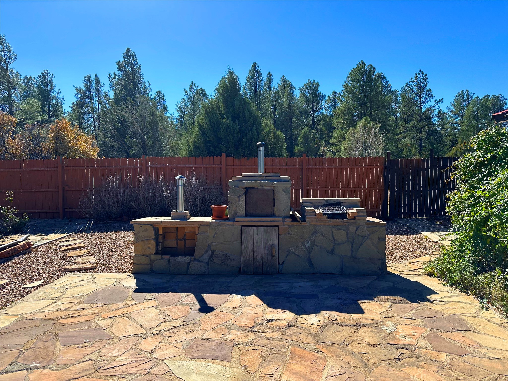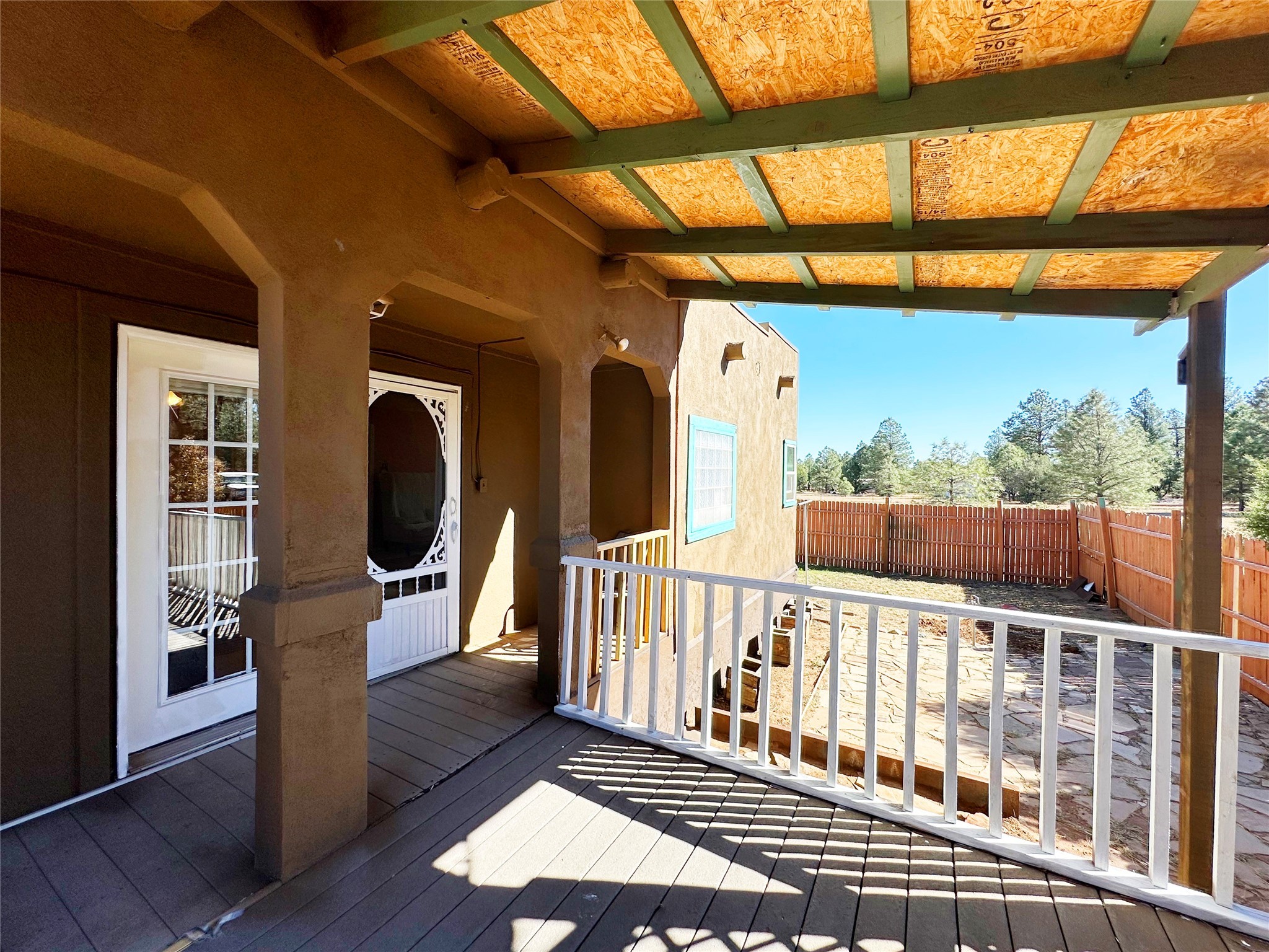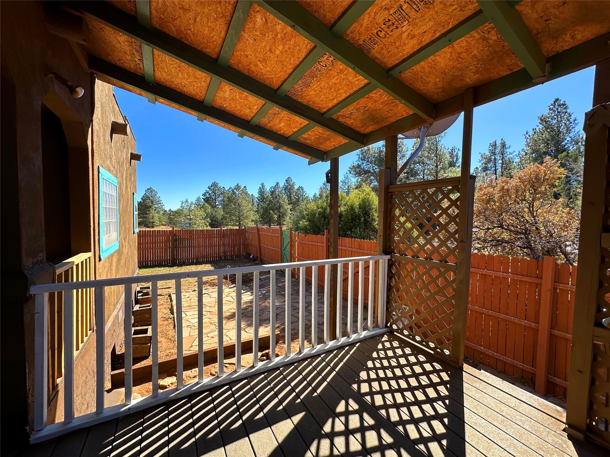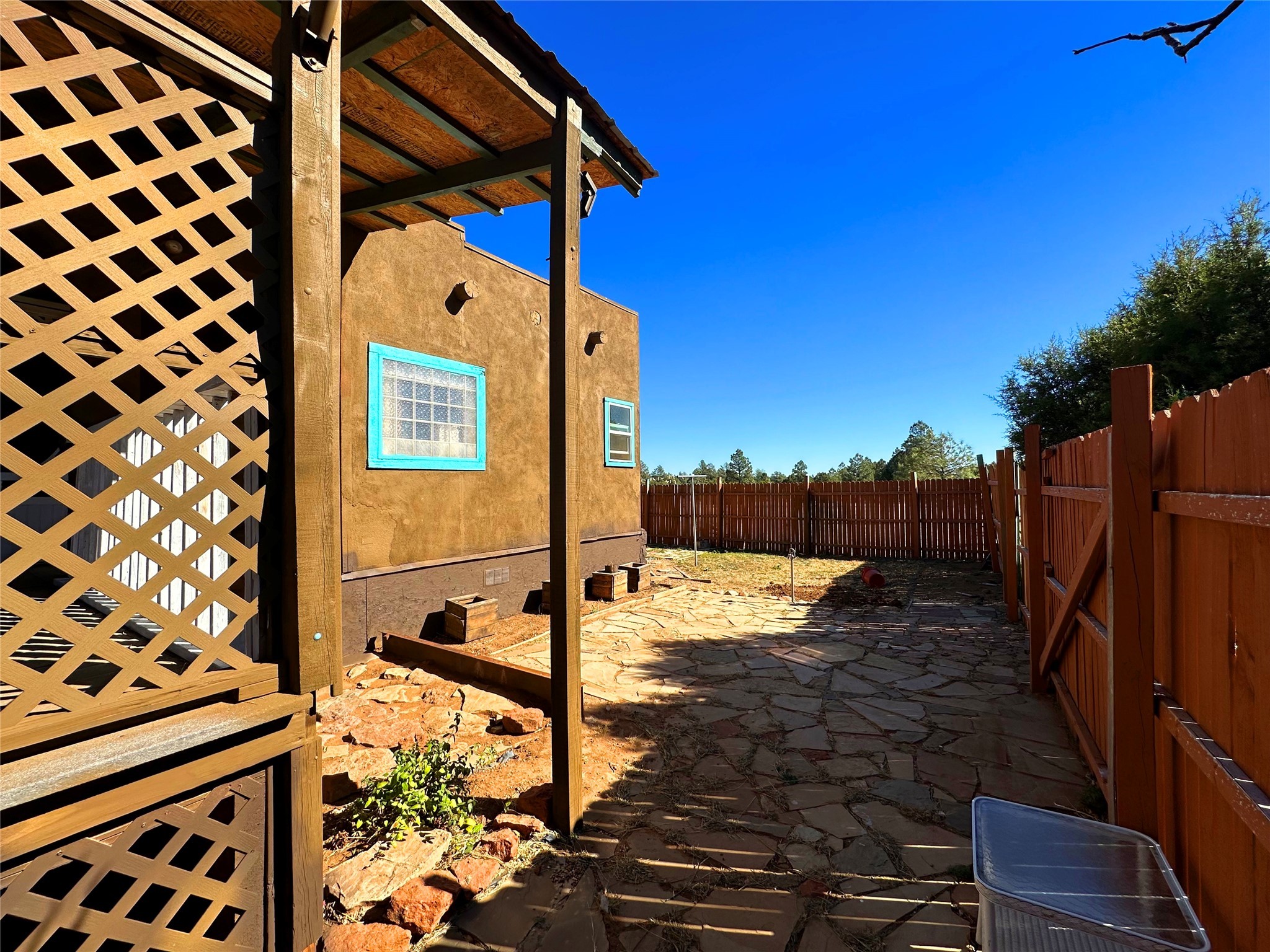 Welcome home to this delightful 2 bedroom, 2 bath modular home on 5.04 acres of stunning New Mexico landscape in San Geronimo. This beautifully level property offers breathtaking panoramic mountain views, rolling meadows, and graceful pine trees - your own natural sanctuary. The thoughtfully designed master suite serves as your personal haven, featuring a comfortable sitting area and access to its own private covered deck where you can unwind after a fulfilling day. Additionally, the home features an expansive wrap-around deck offering commanding views of the iconic Hermit's Peak and spectacular sunsets across the crisp mountain landscape.The spacious kitchen provides generous storage and counter space, ideal for preparing meals or entertaining. The den offers wonderful flexibility with its