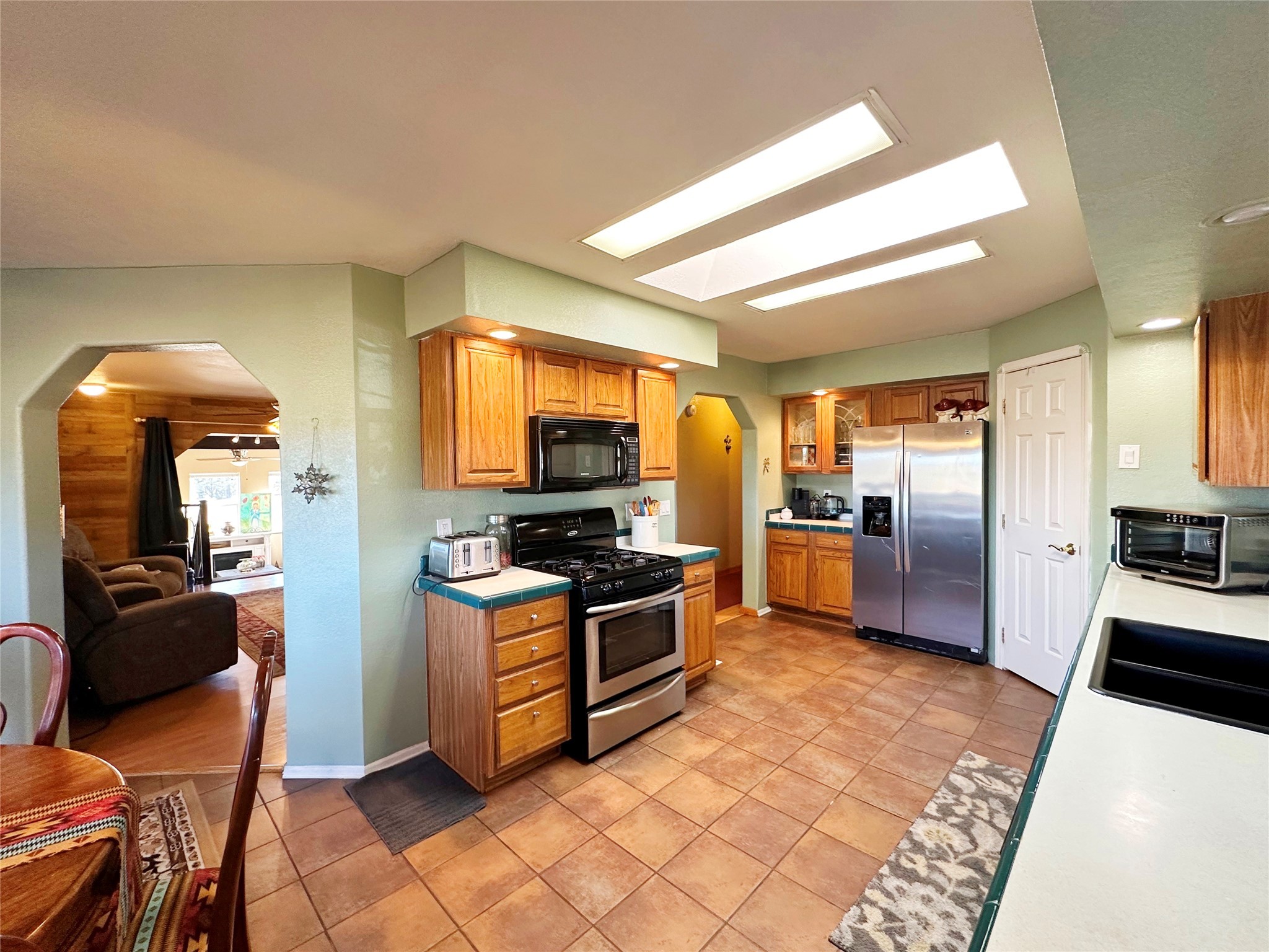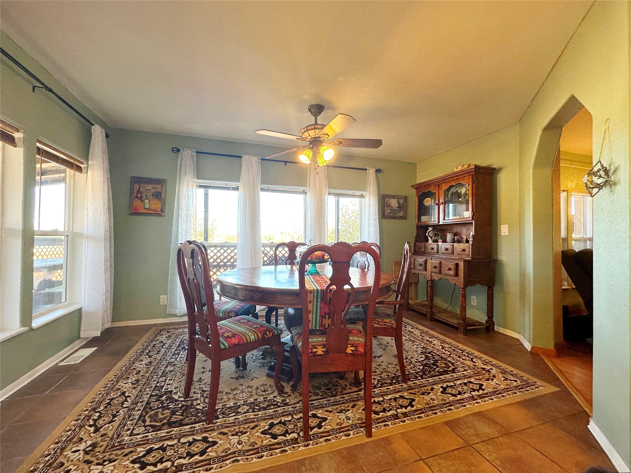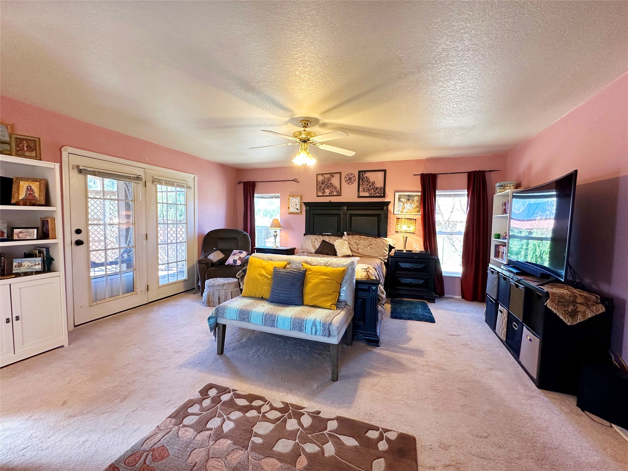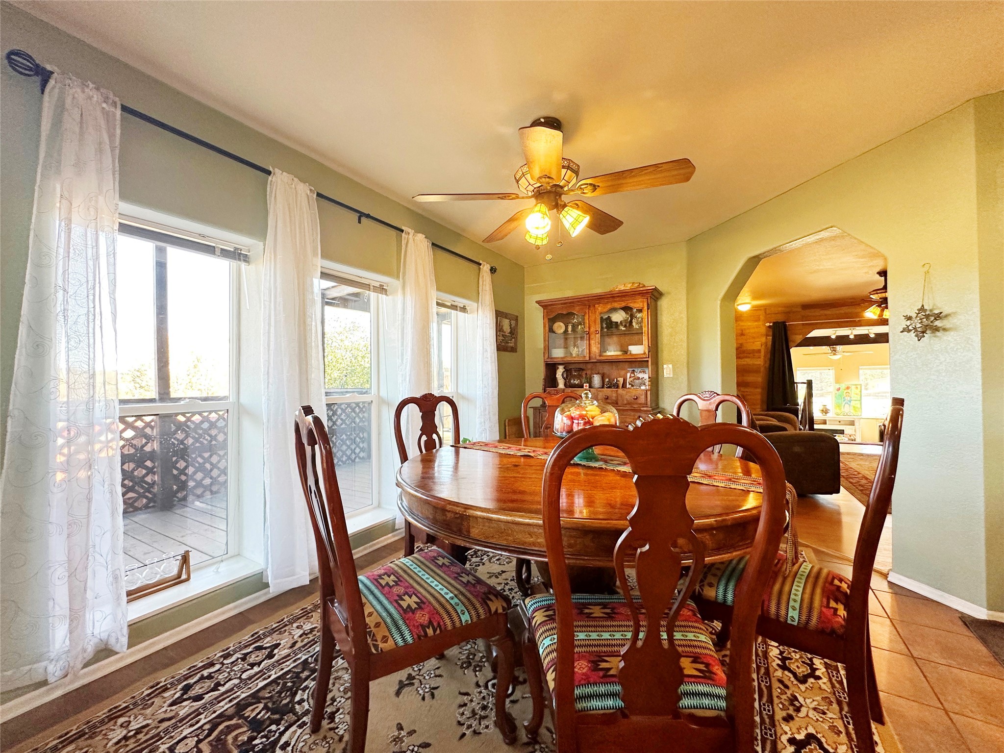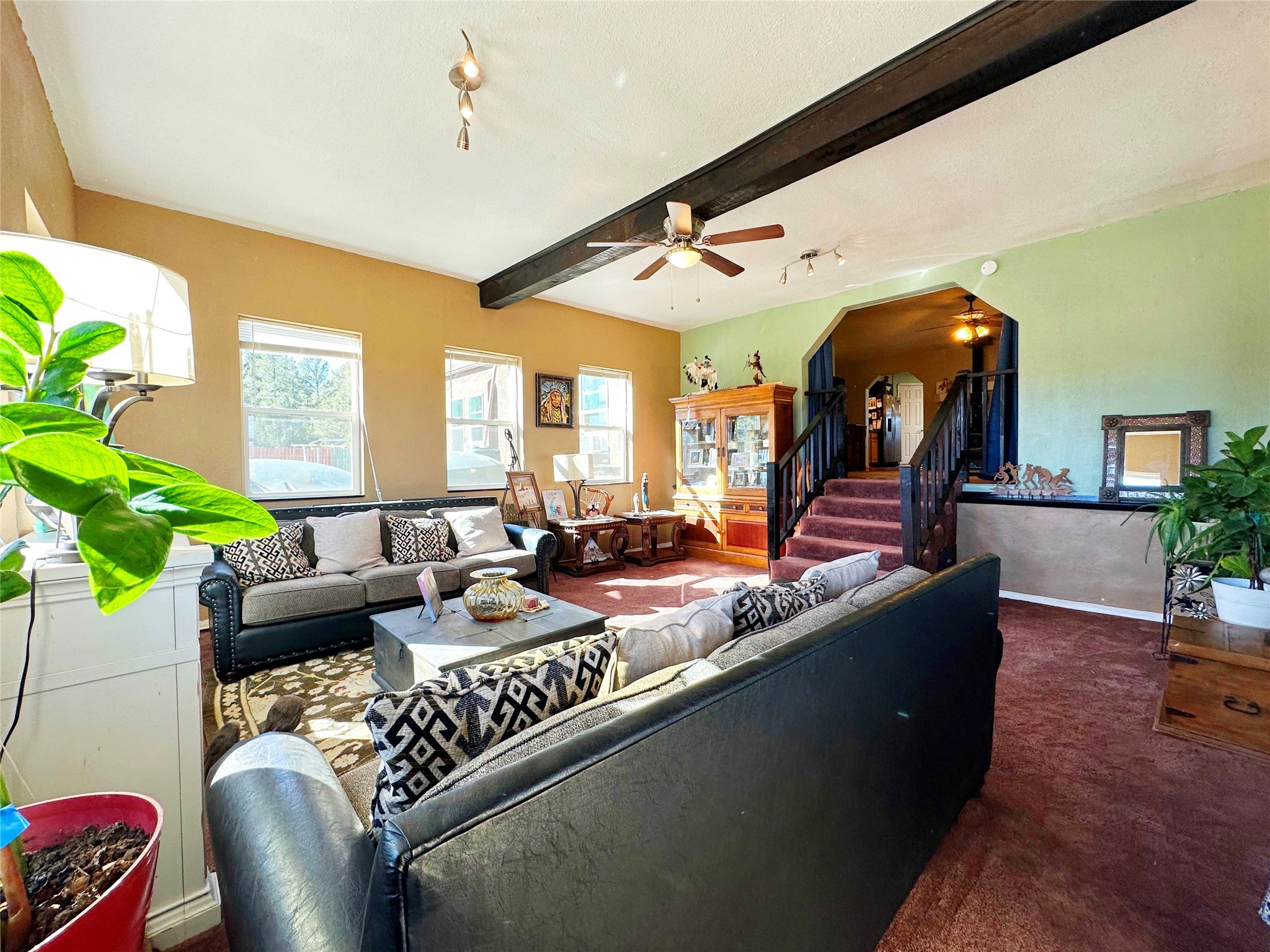 Welcome home to this delightful 2 bedroom, 2 bath modular home on 5.04 acres of stunning New Mexico landscape in San Geronimo. This beautifully level property offers breathtaking panoramic mountain views, rolling meadows, and graceful pine trees - your own natural sanctuary. The thoughtfully designed master suite serves as your personal haven, featuring a comfortable sitting area and access to its own private covered deck where you can unwind after a fulfilling day. Additionally, the home features an expansive wrap-around deck offering commanding views of the iconic Hermit's Peak and spectacular sunsets across the crisp mountain landscape.The spacious kitchen provides generous storage and counter space, ideal for preparing meals or entertaining. The den offers wonderful flexibility with its