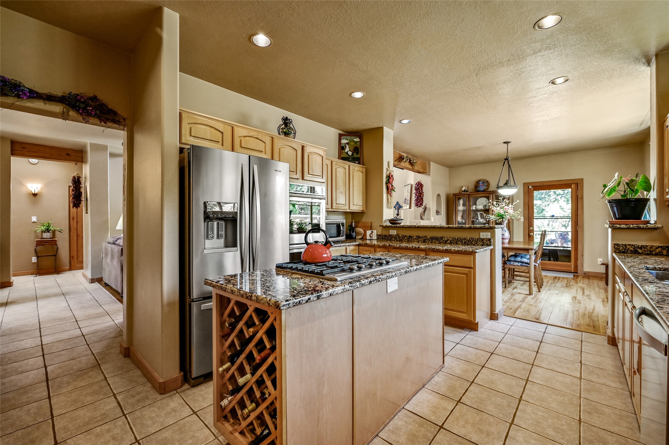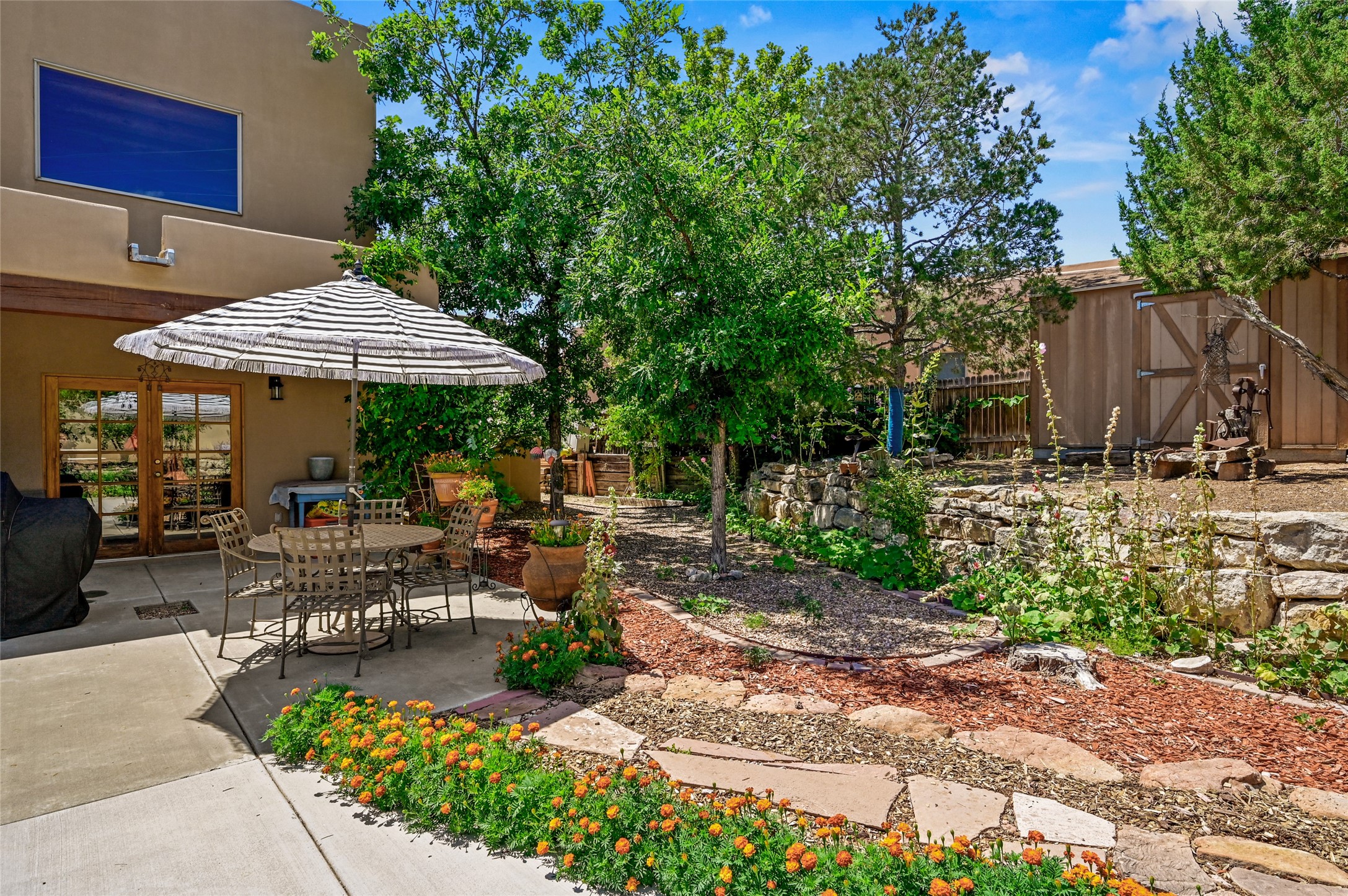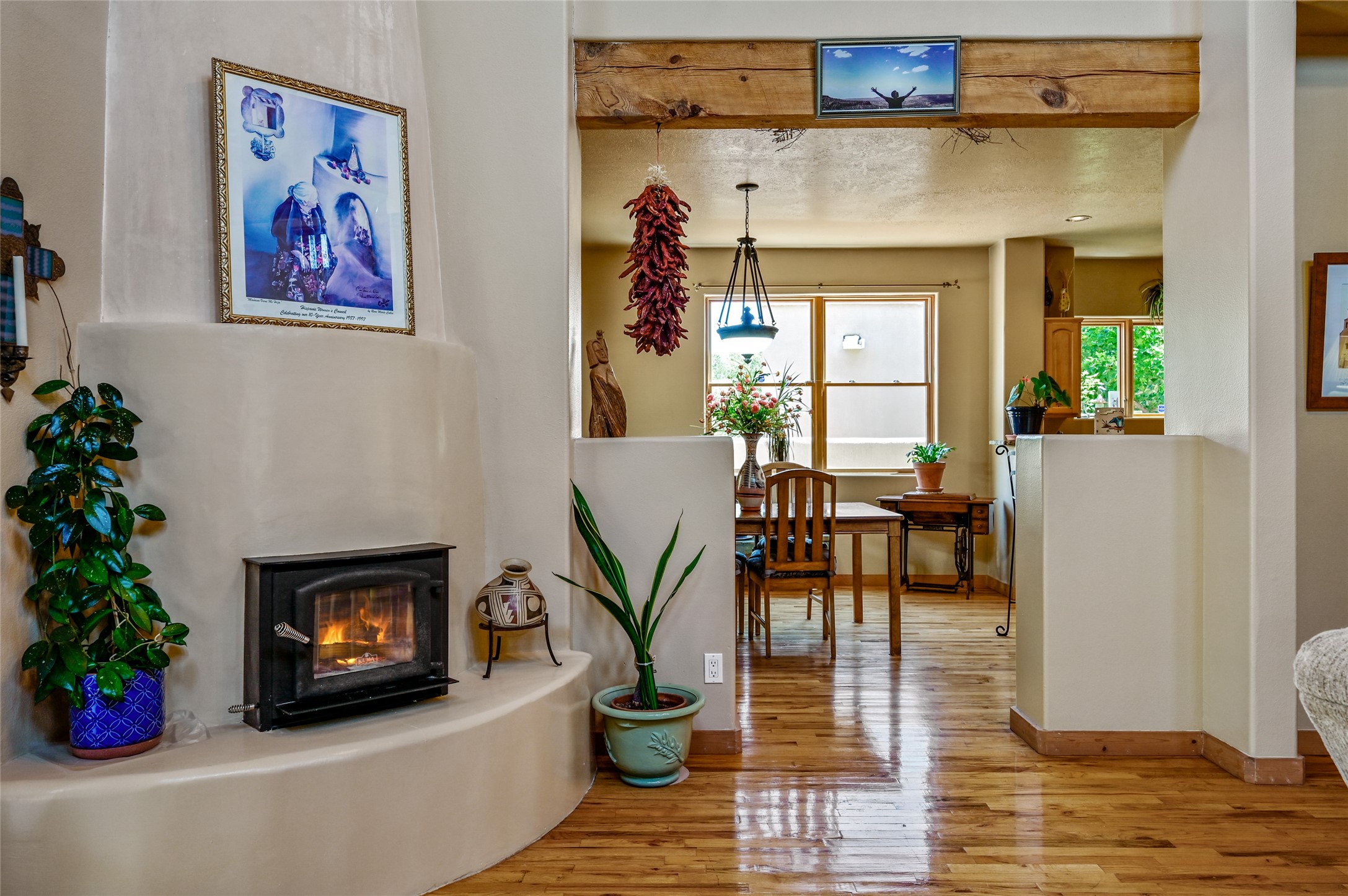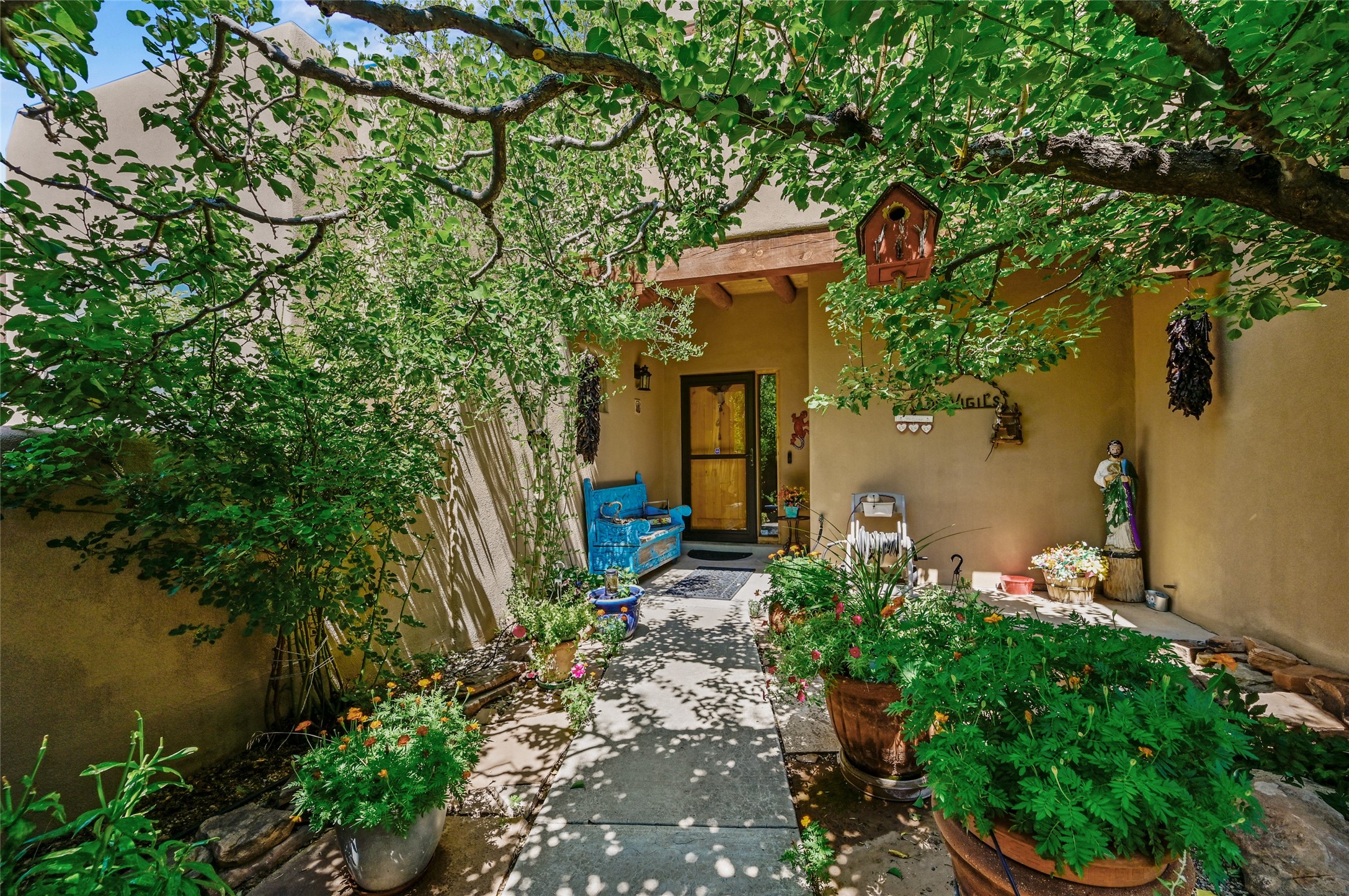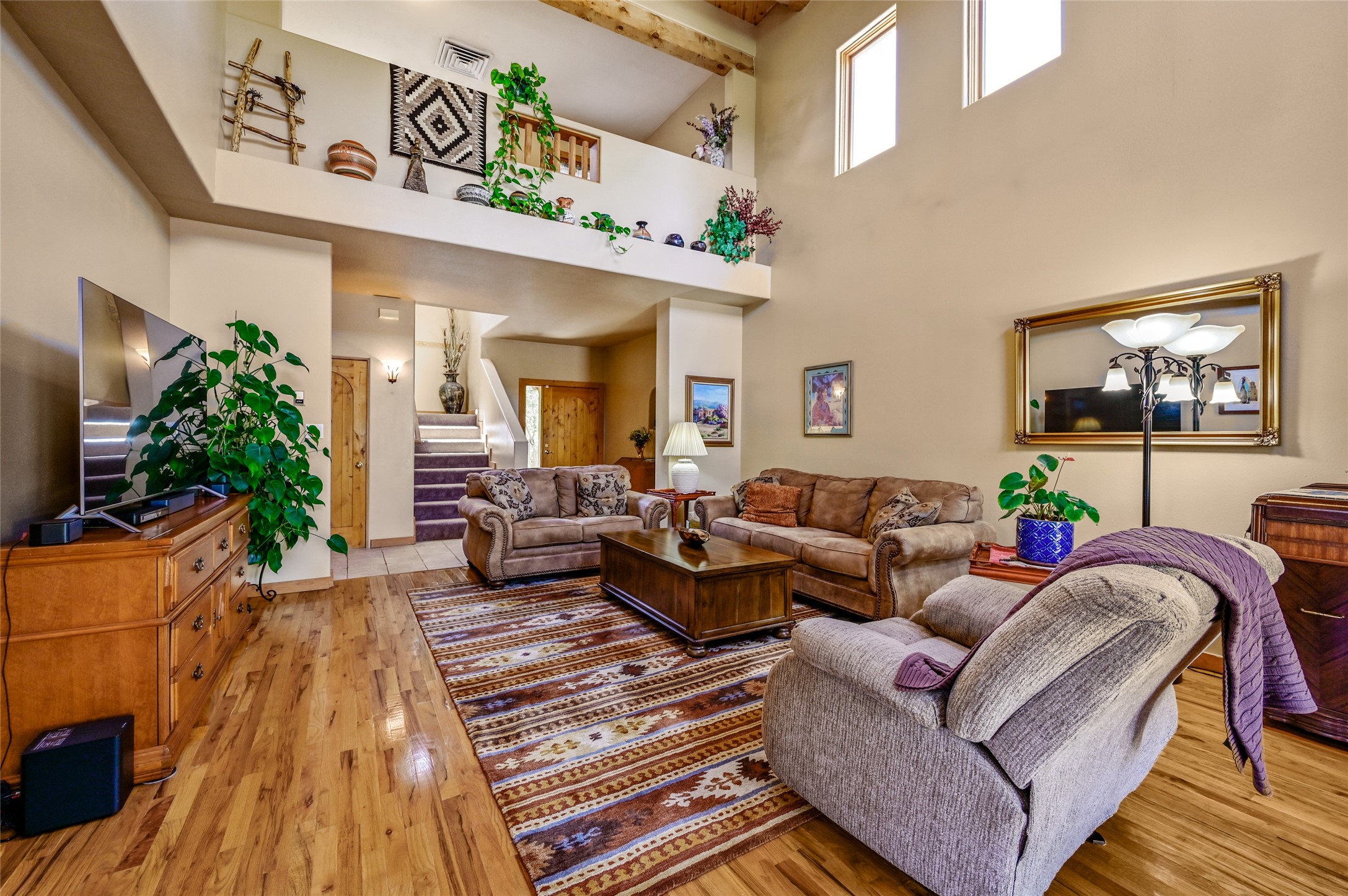 Welcome to this one-owner home in the sought-after Pueblos del Sol community. This custom two-story home offers 3 bedrooms and 2 full bathrooms, a thoughtful layout, and ample natural light throughout. The house has been lovingly maintained over the years, featuring newer kitchen appliances, Pella windows, and an updated roof. Front and back landscaped yards offer a quiet retreat and space to unwind. Two separate decks provide stunning views of the Sangre de Cristo, Sandia, and Ortiz mountain ranges--perfect for enjoying morning coffee or sunsets. Backing up to open space and trails, the property offers privacy and a connection to nature.