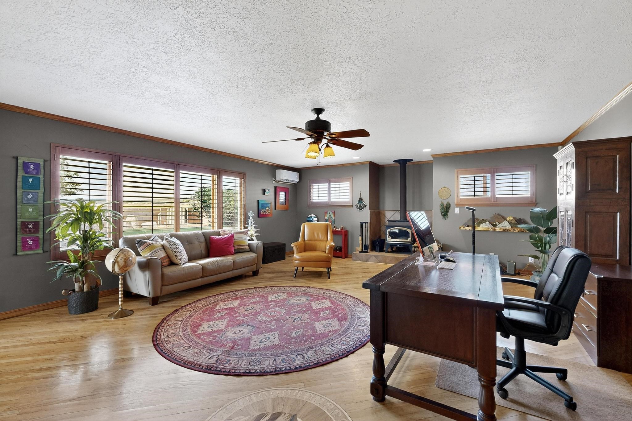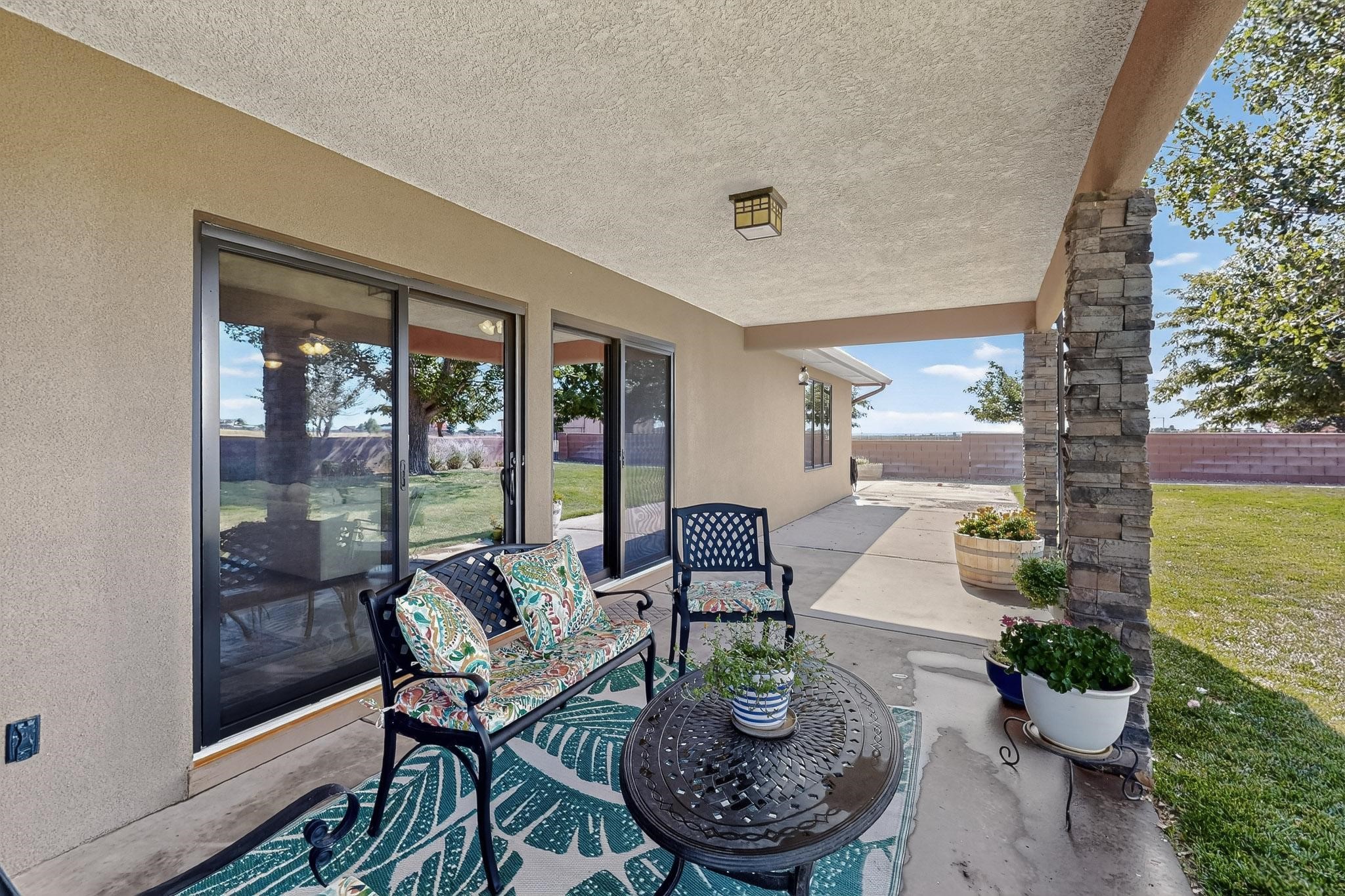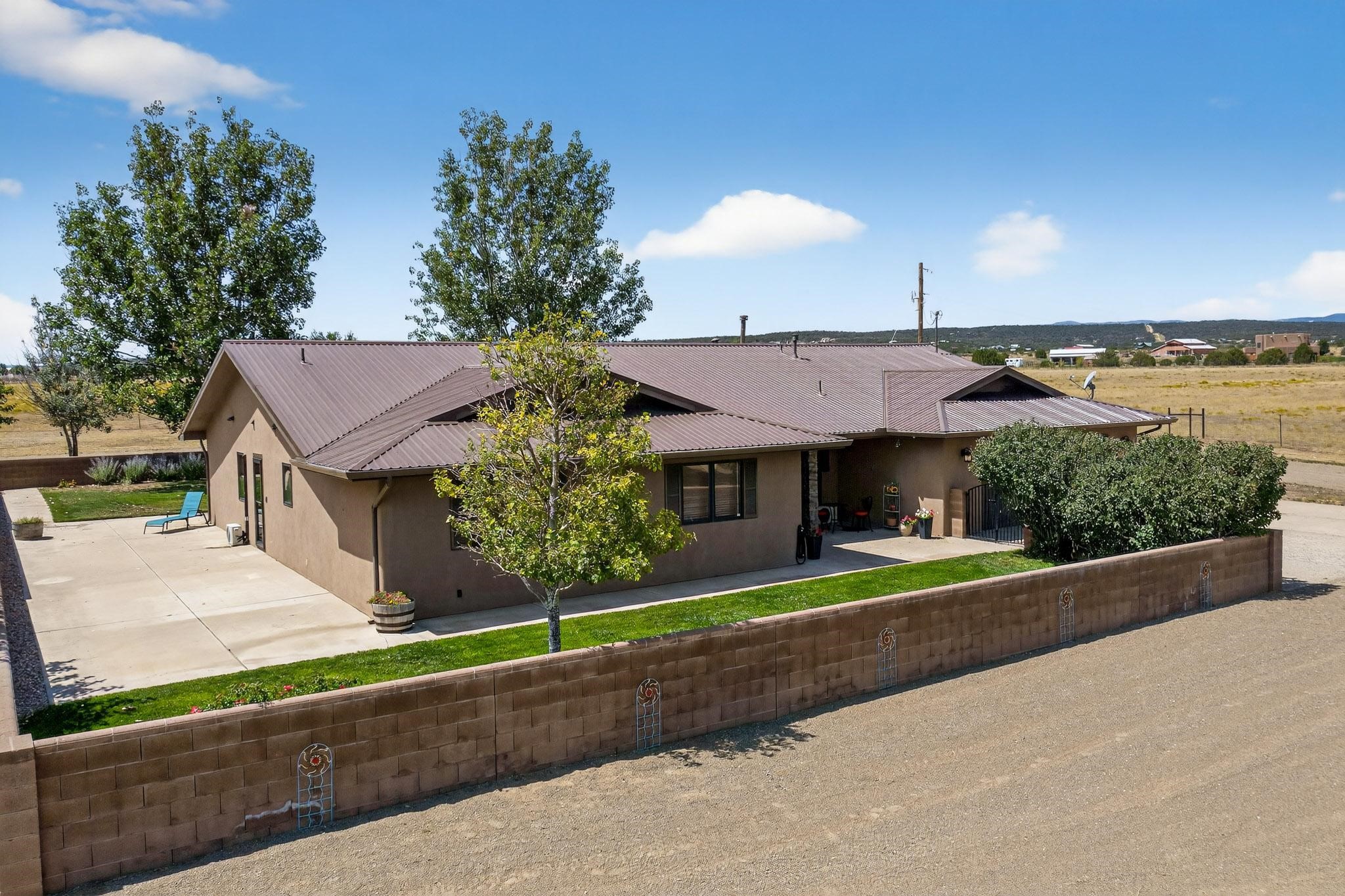 This true equine estate has finally come on the market so don't miss your opportunity to own this amazing property. 38.8 acres fully fenced and cross fenced! 3051 heated sqft of main home and guest suite. This estate home boasts hardwood floors throughout, with custom touches, large spacious open floor plan with great room and kitchen for entertaining, primary bedroom suite with wall to wall closets, double vanities, and exterior access. 3bed 2bath main home, 2 living areas, gourmet stainless steel kitchen, laundry room with storage. There are so many built in storage and closets the possibilities are endless on how you use it. Oversized finished 2 car garage with built in storage. 4 stall barn with finished tack room, and 1 bedroom, 1 bath, kitchenette, walk in closet: guest suite.Not only are you going to love this estate, but your animals will love it too! Full sized arena for your use and three cross fenced pastures all with barn loafing sheds. Water has been run throughout the property to the barns for the convenience of keeping the critters taken care of. The approx. 2300 sqft barn has pull through capability, a finished tack room, 4 walk out stalls, hay storage, rubber floor mats, and a 363 sqft guest living quarters! A large equine estate like this doesn't come up for sale in the East Mountains/Southern Santa Fe County area too often, and none are as nice and custom as this property. If you are needing a place to kick up your boots, let your critters stretch their legs, and for yourself to relax from dawn to dusk, you have found your 38.8 acre slice of paradise with this equine estate.
