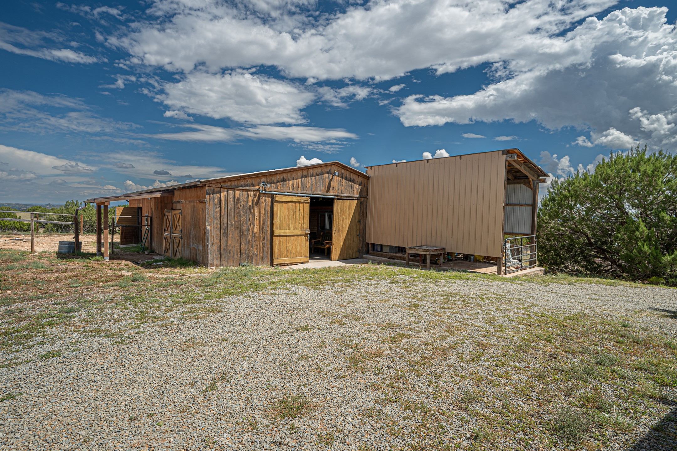 Oro Viejo Ranch is a timeless sanctuary on 106 acres. A harmonious blend of natural splendor, meticulous craftsmanship, and modern convenience. There are breathtaking panoramic views of the Sangre de Cristo, Ortiz Mountains, Cerrillos Hills, and the iconic Lone Butte. The main residence showcases authentic Southwest style, adobe and rastra construction. It features intricate plasterwork, recycled wood vigas, and a heated indoor pool, the rooftop deck offers truly unobstructed views. The solid oak cabin adds rustic charm, originally owned by the Hoover family, and rebuilt on-site. Horse enthusiasts will appreciate the six-stall, barn, tack room, workshop, covered hay storage, electric, and hot water, and protected outdoor runs. A insulated chicken coop provides the perfect setup for fresh eggs, while a private well with a large storage tank ensures a reliable water source.A convenient RV hookup is also available on the property.