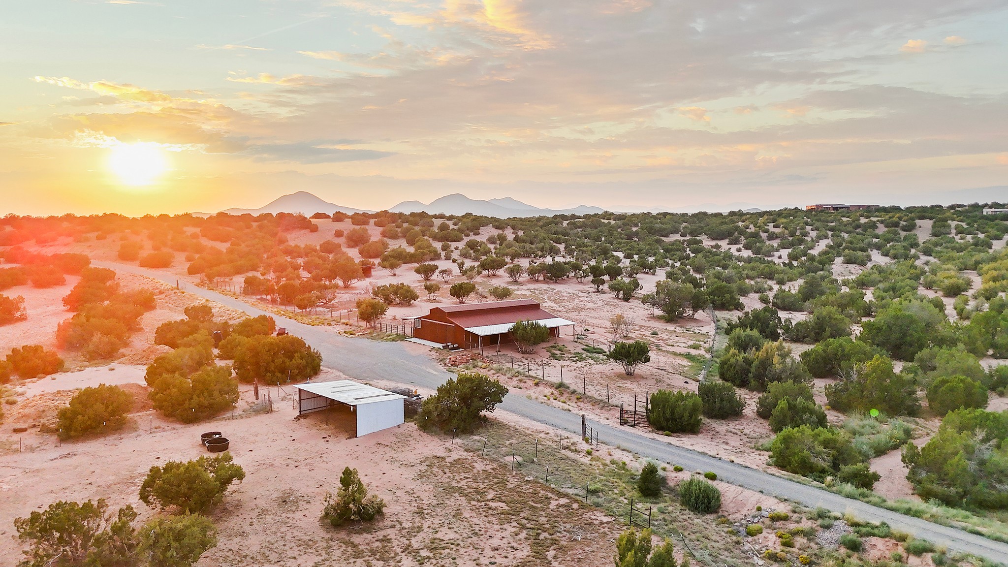 Welcome to this one-of-a-kind property just south of Santa Fe, featuring 364 prime and private acres with some of the best expansive mountain views around! The exceptional acreage consists of three contiguous and separately deeded parcels, providing tremendous versatility and numerous development possibilities for a new owner. The phenomenal 8,000+/- sqft steel-framed and insulated workshop/warehouse (constructed in 2018) is equipped with all one could dream of, including a 2-bedroom, 2-bath living quarters. Additional features include: 220v power, a strong producing well with 11,000 gallon holding tanks, 2 internet boosters, and a reverse osmosis water system, to name a few. There is also a fully-fenced/well-constructed/insulated barn with water and power in addition to a separate shelter for the animals. The unparalleled majestic views of the Ortiz Mountains are truly outstanding. This opportunity is the one you've been waiting for! Come make your dream a reality today by taking advantage of this rare offering.